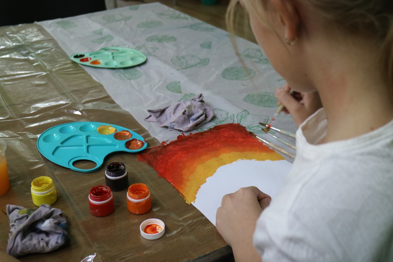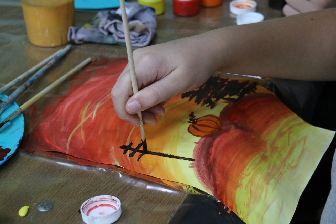 Золотую осень со всем буйством красок изобразили ребята на сегодняшнем занятии библиоАРТа «Букварельки».