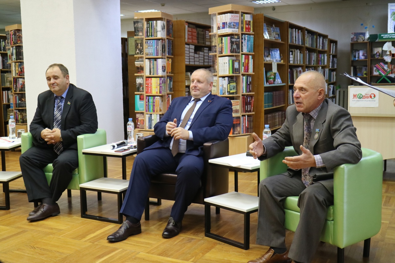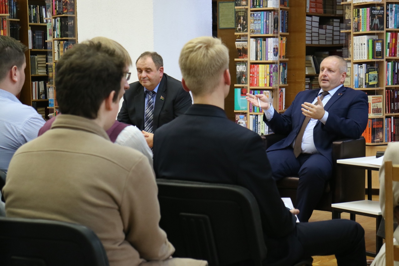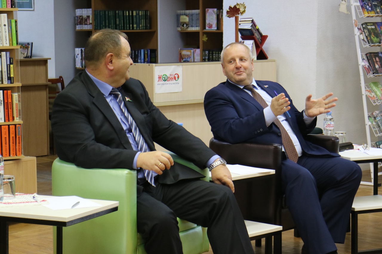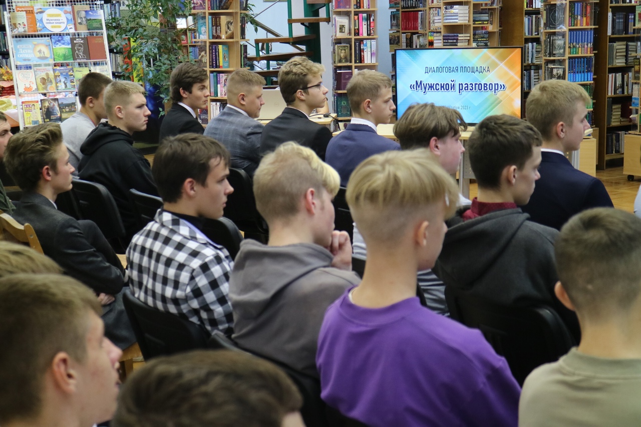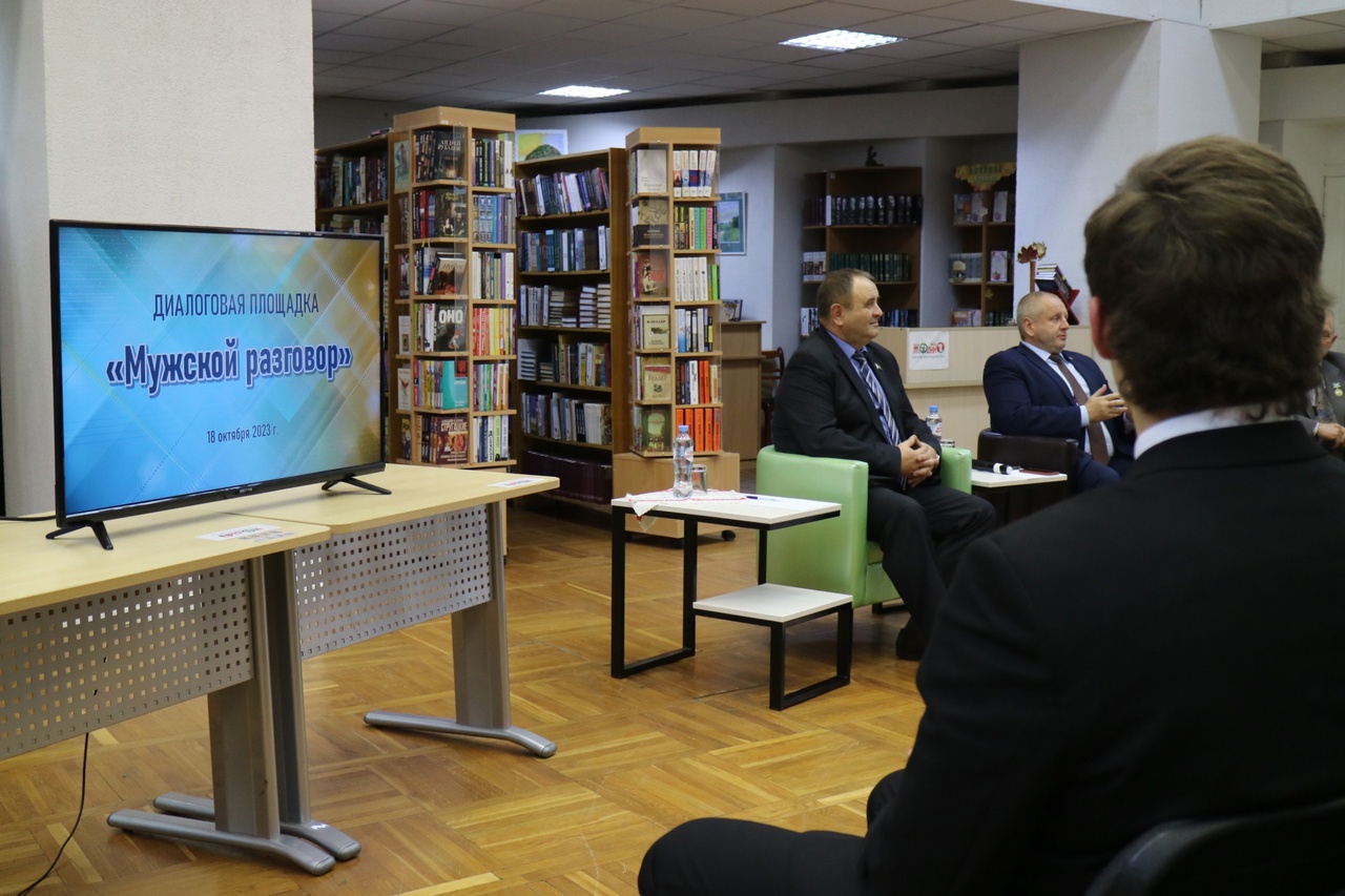 Диалоговая площадка «Мужской разговор», приуроченная к Неделе родительской любви и, в частности, ко Дню отца, состоялась 18 октября на базе Центральной городской библиотеки г. Жодино. В разговоре приняли участие председатель горисполкома Дмитрий Заблоцкий, директор гимназии №1 Геннадий Коршун, руководитель центра патриотического воспитания молодежи «Вектор» Игорь Лазарев. В формате ток-шоу, открыто отвечая на самые разные вопросы старшеклассников и учащихся колледжей г. Жодино, спикеры раскрывались перед аудиторией.