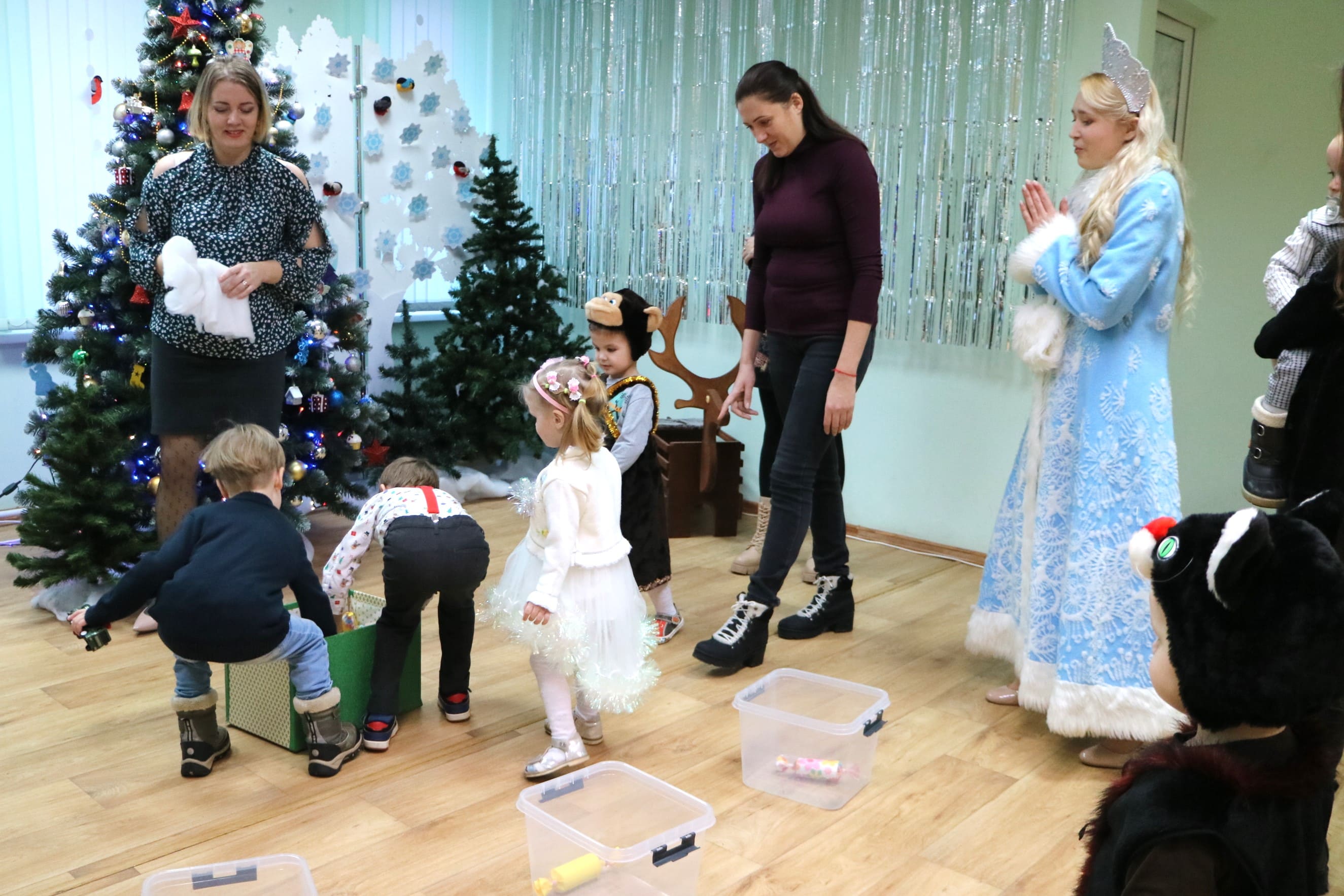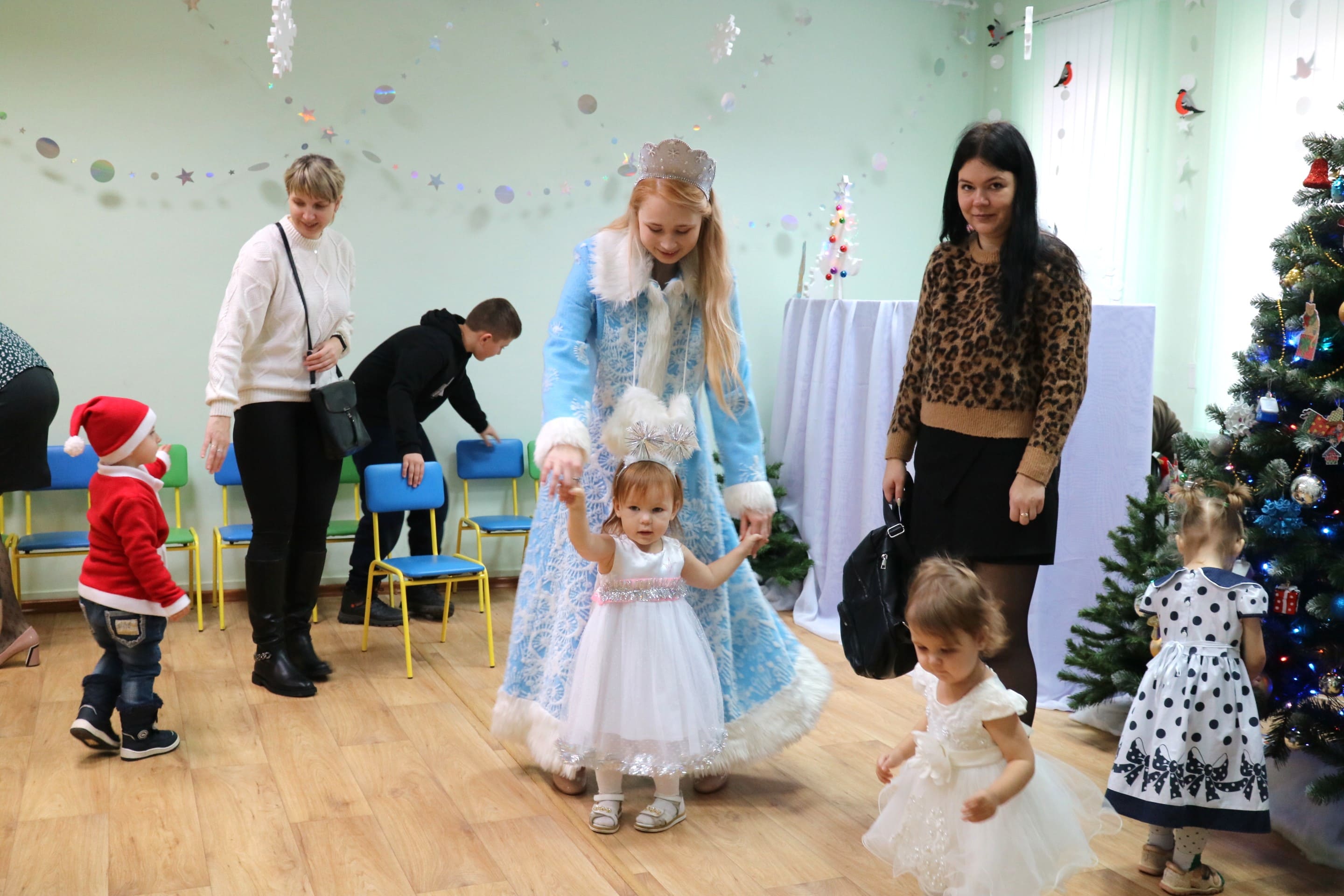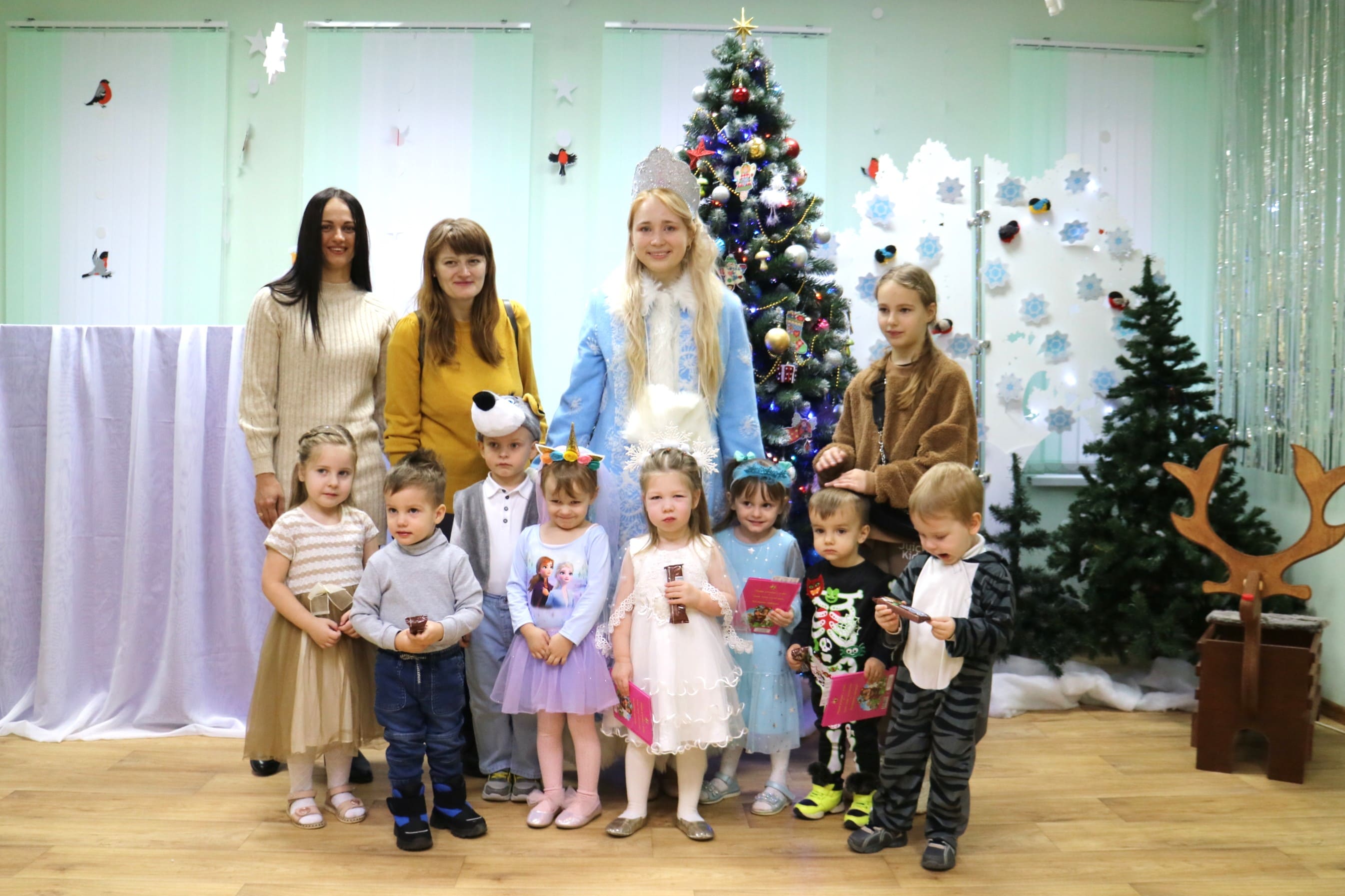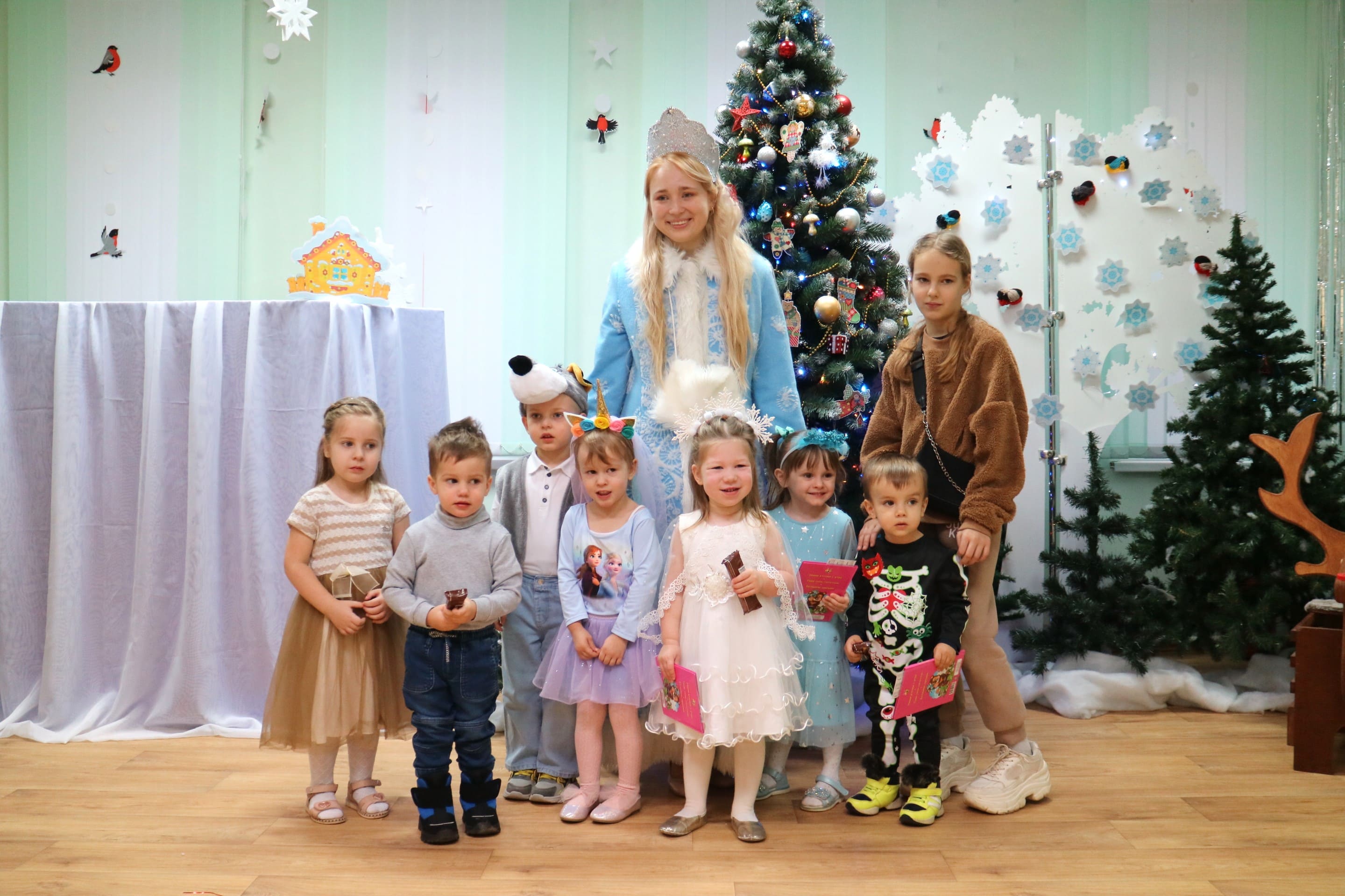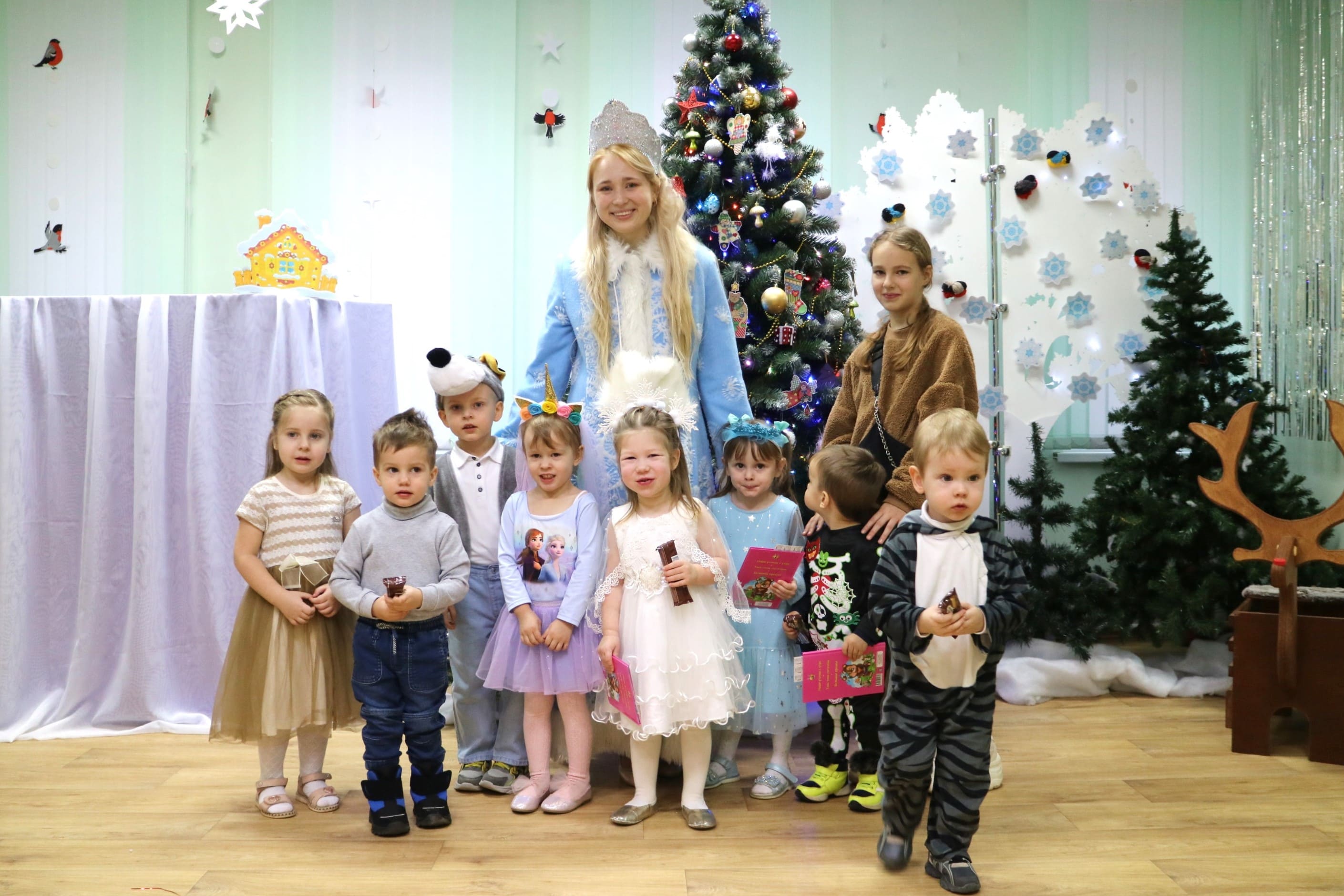 Каждый ребенок в конце праздника получил от Снегурочки подарок и станцевал новогодний танец с героями праздника.
