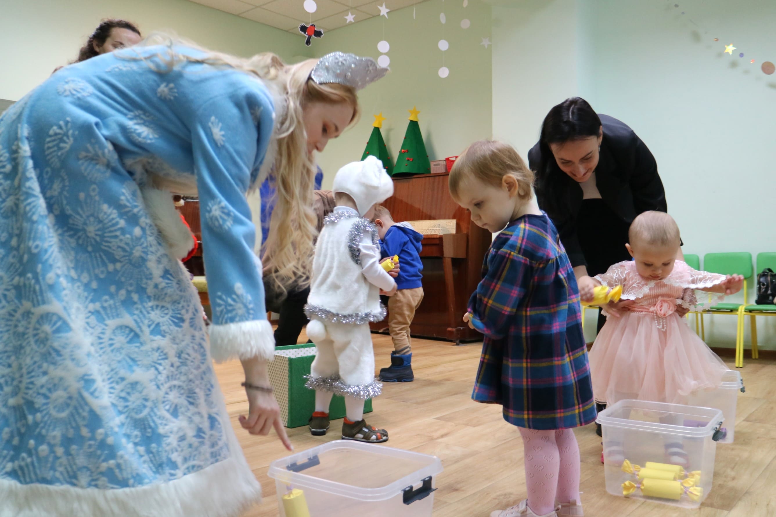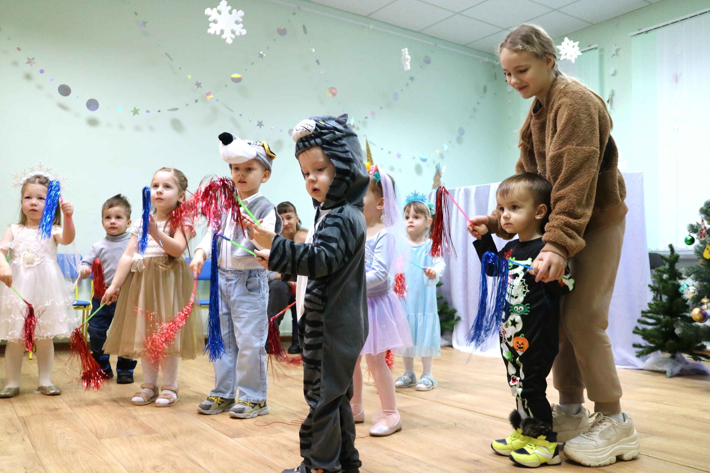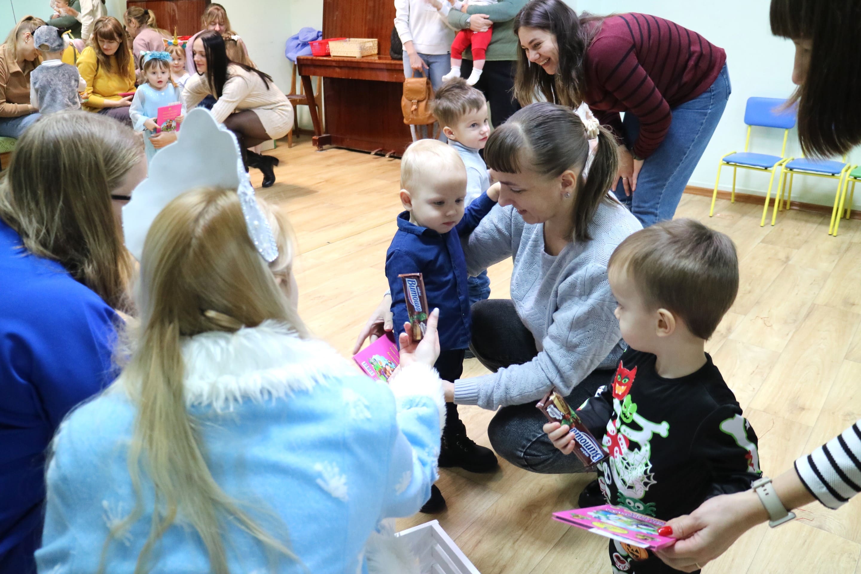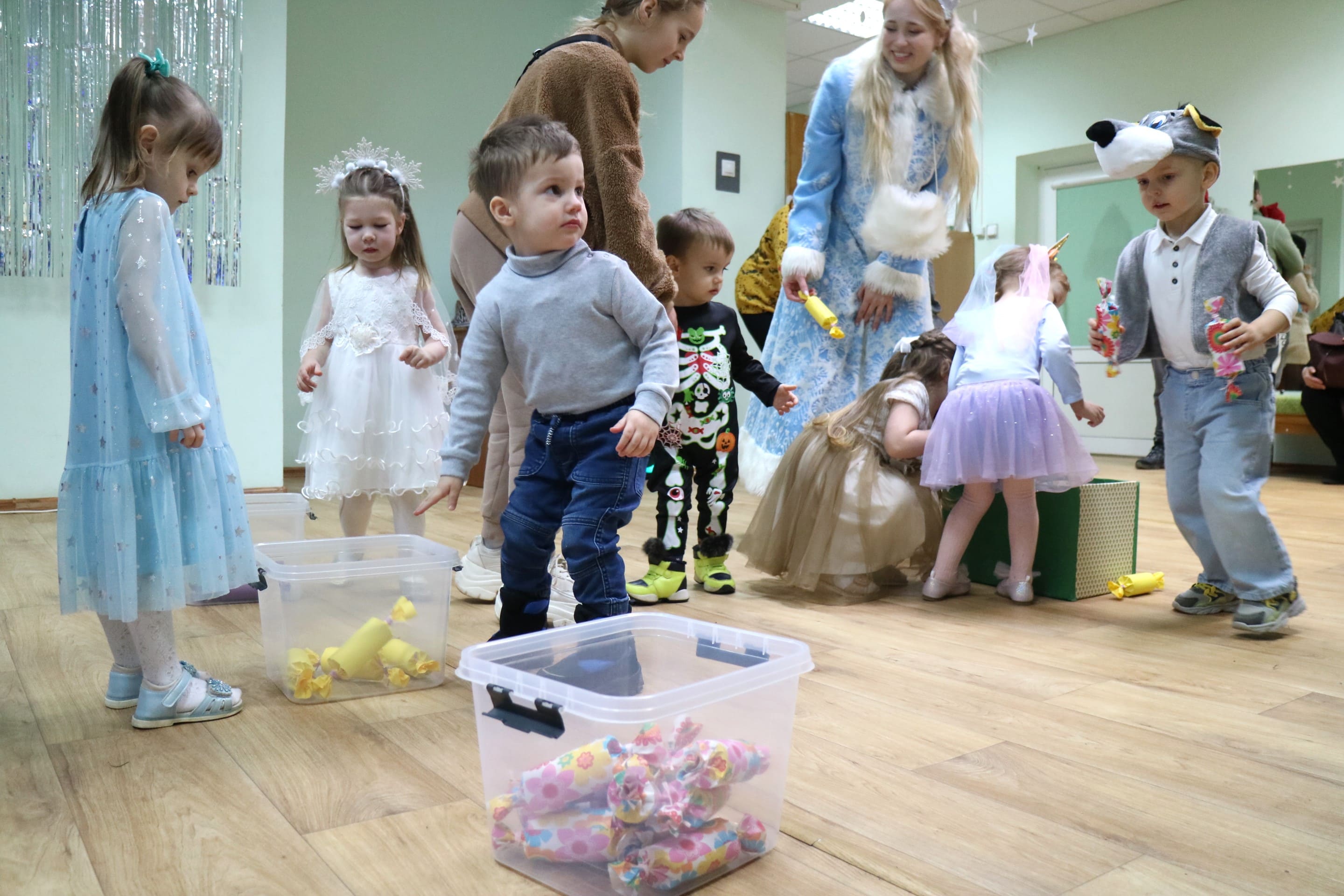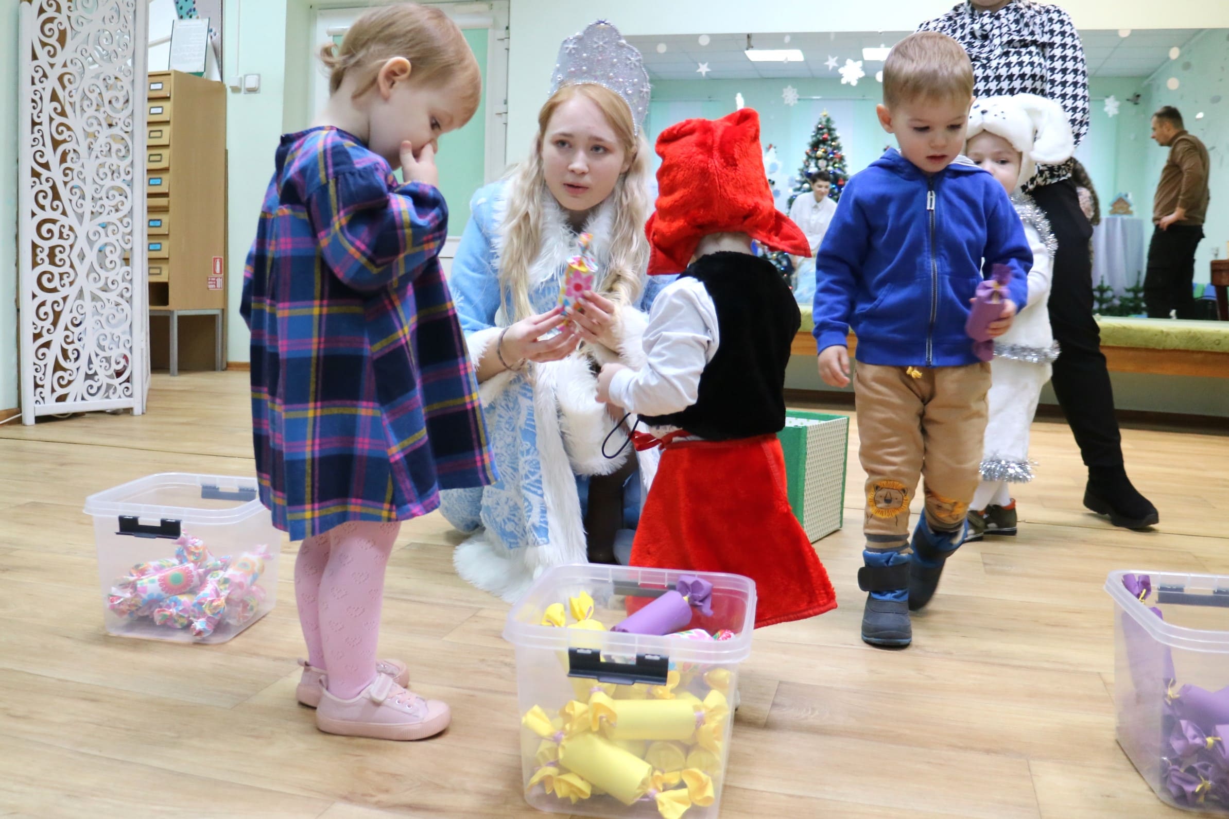 Каждый ребенок в конце праздника получил от Снегурочки подарок и станцевал новогодний танец с героями праздника.