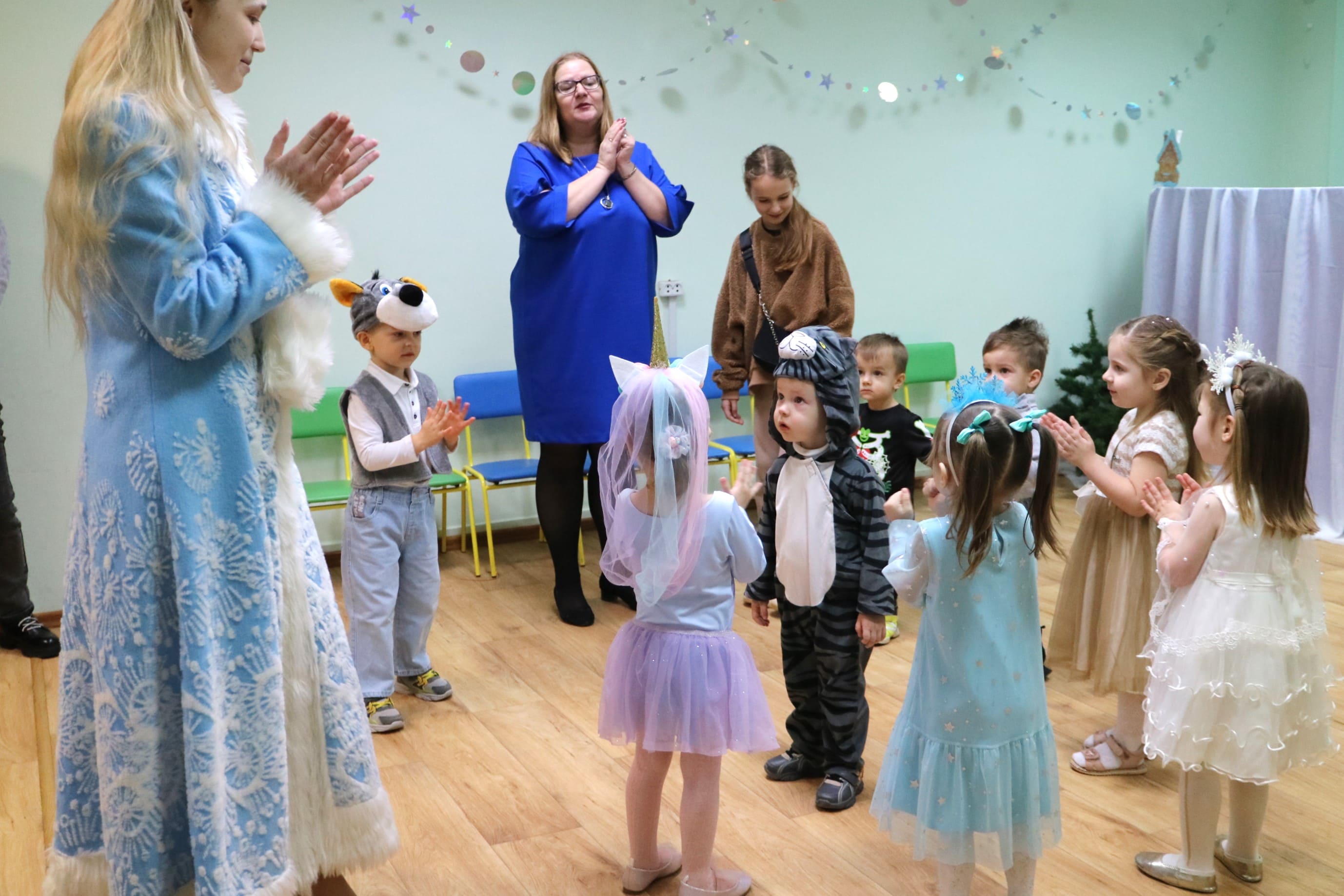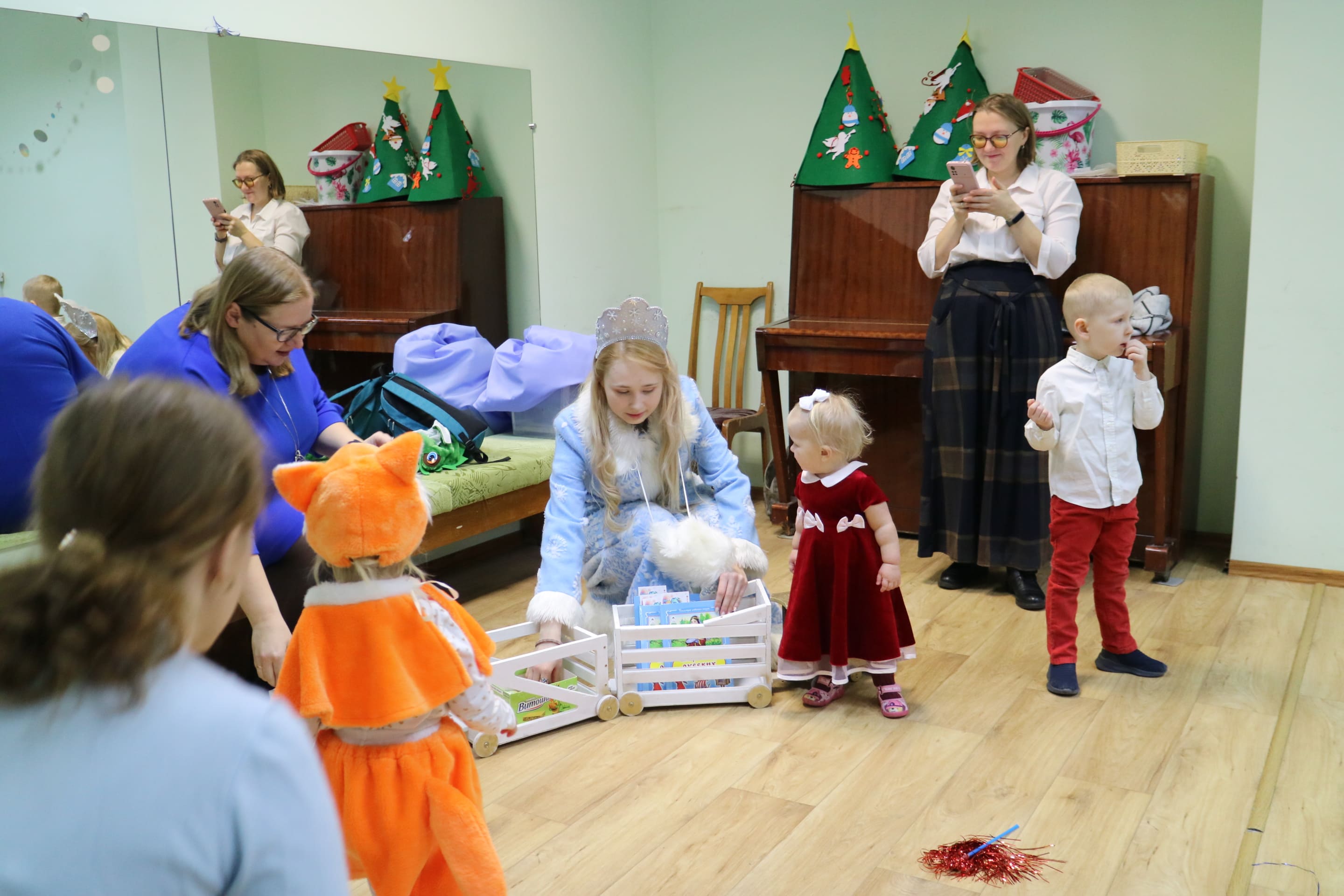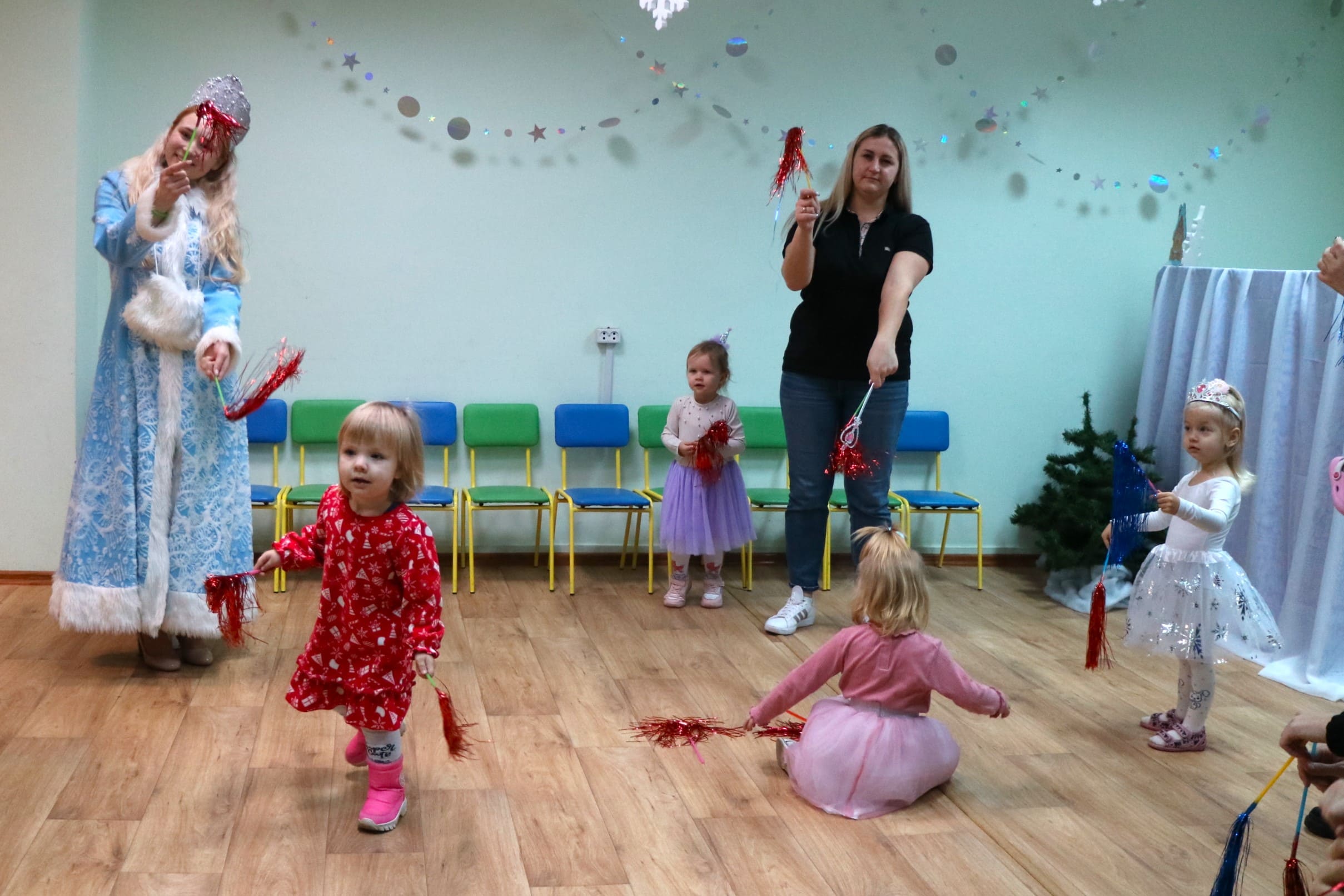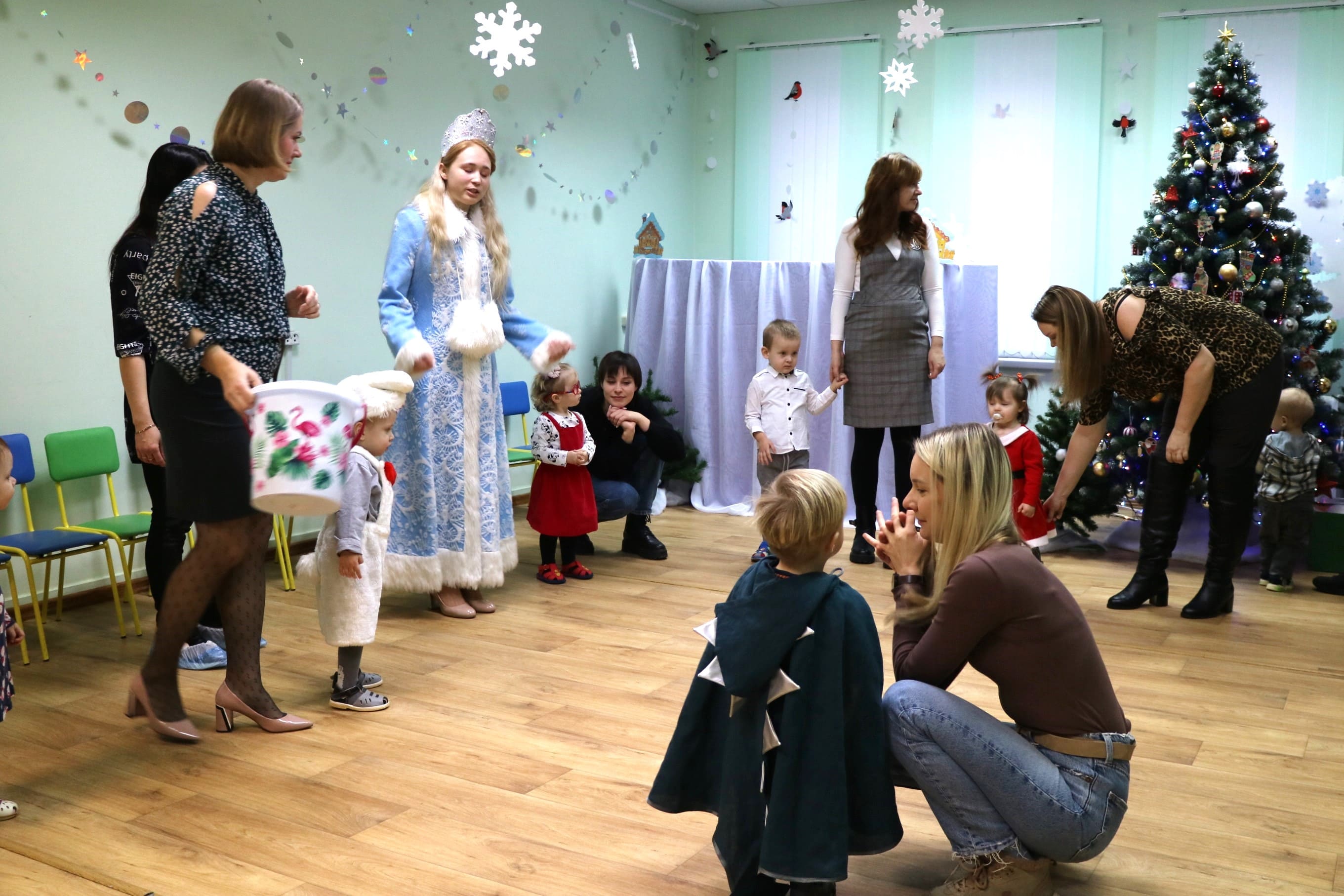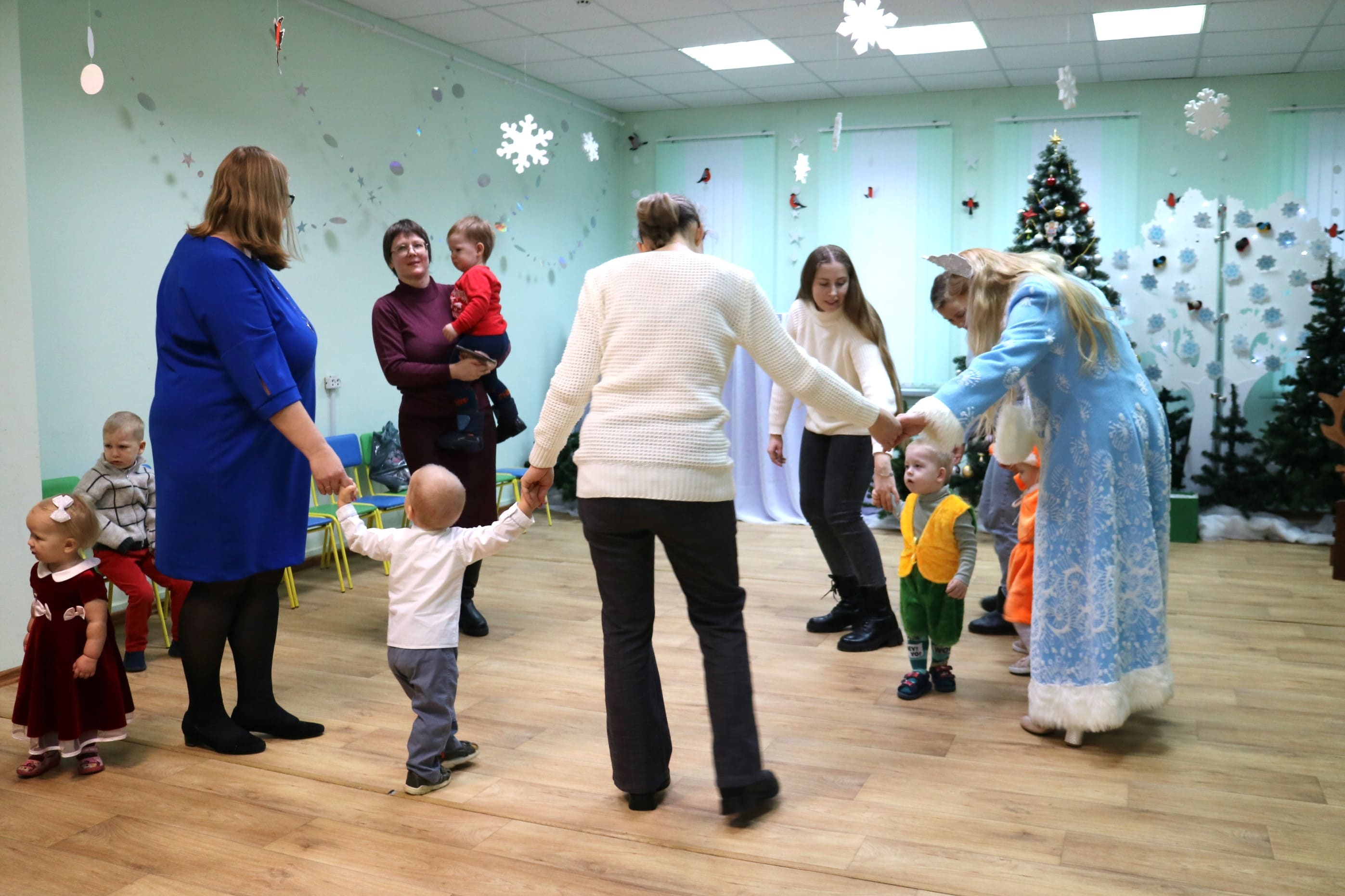 Каждый ребенок в конце праздника получил от Снегурочки подарок и станцевал новогодний танец с героями праздника.