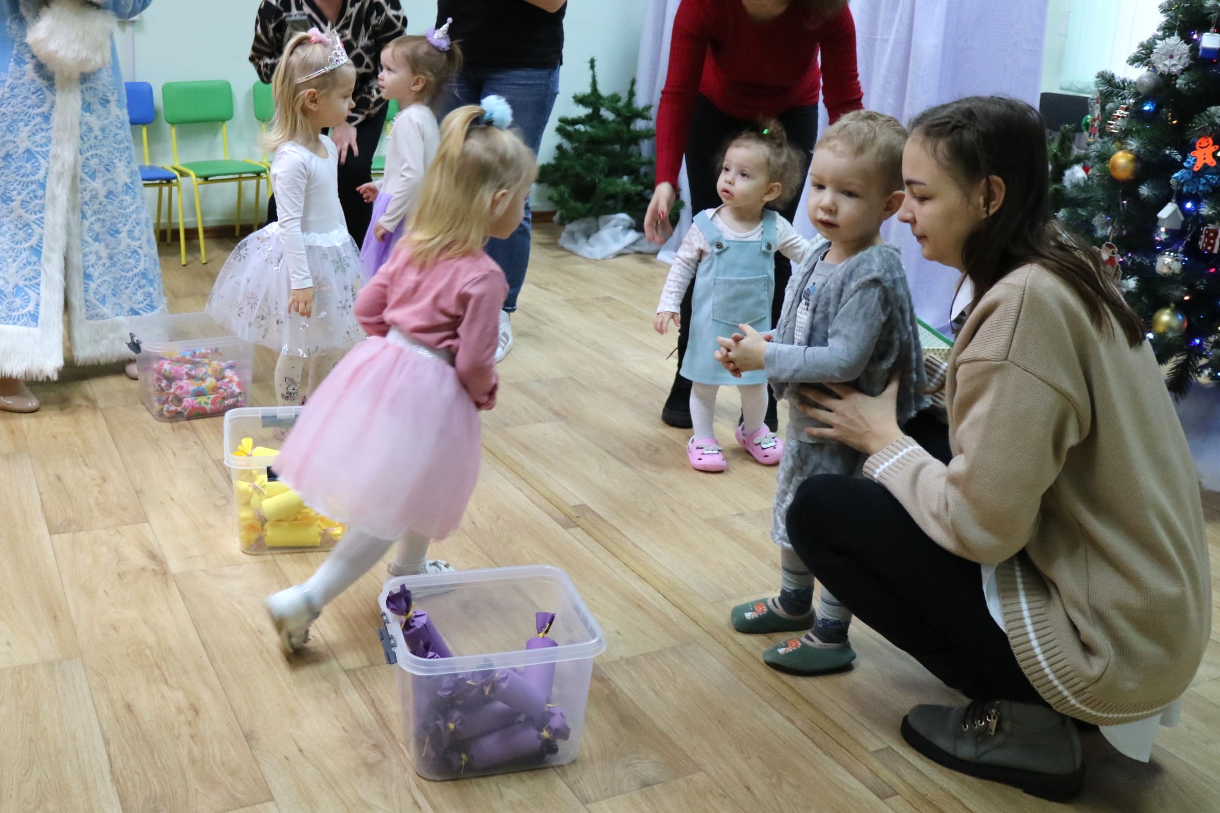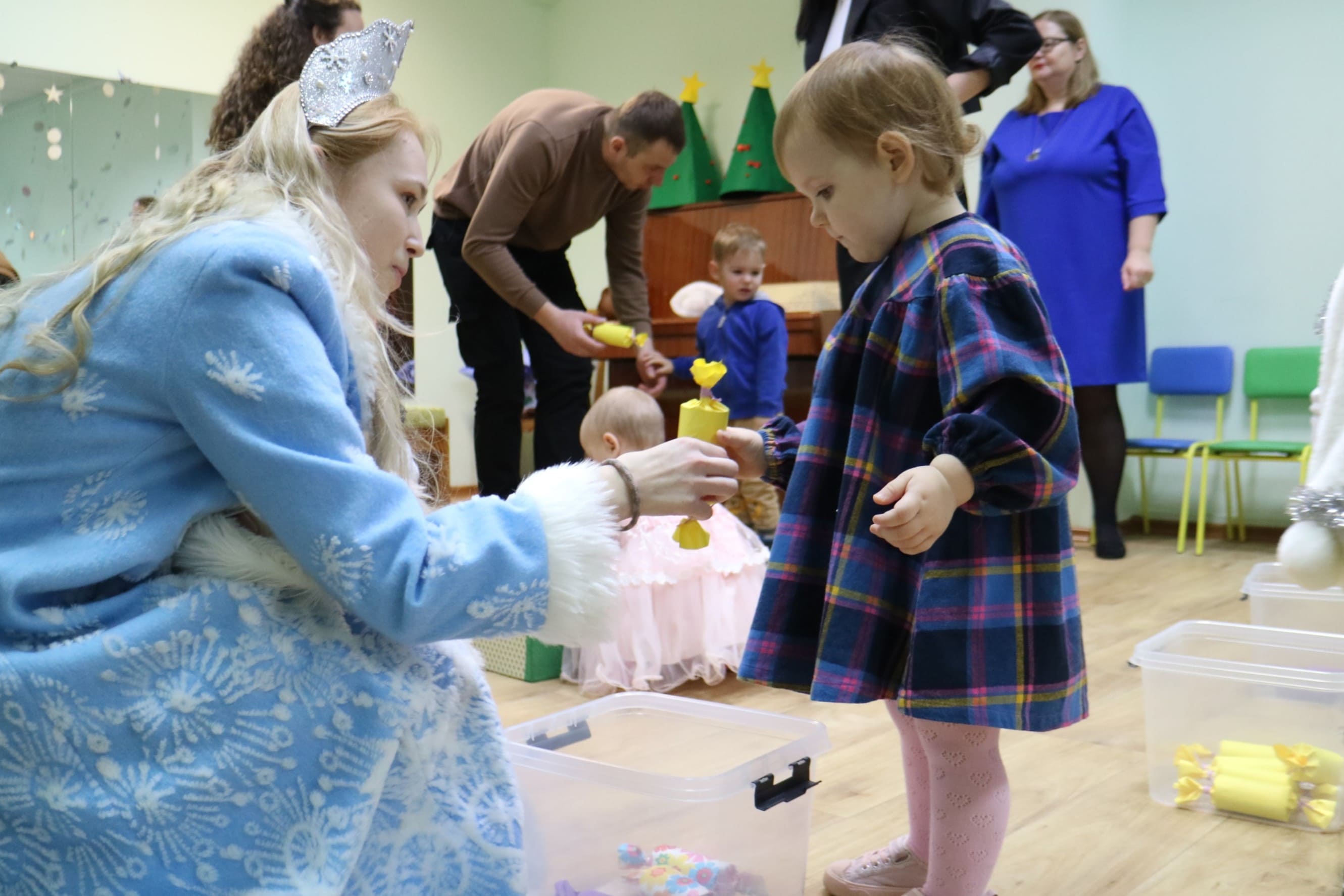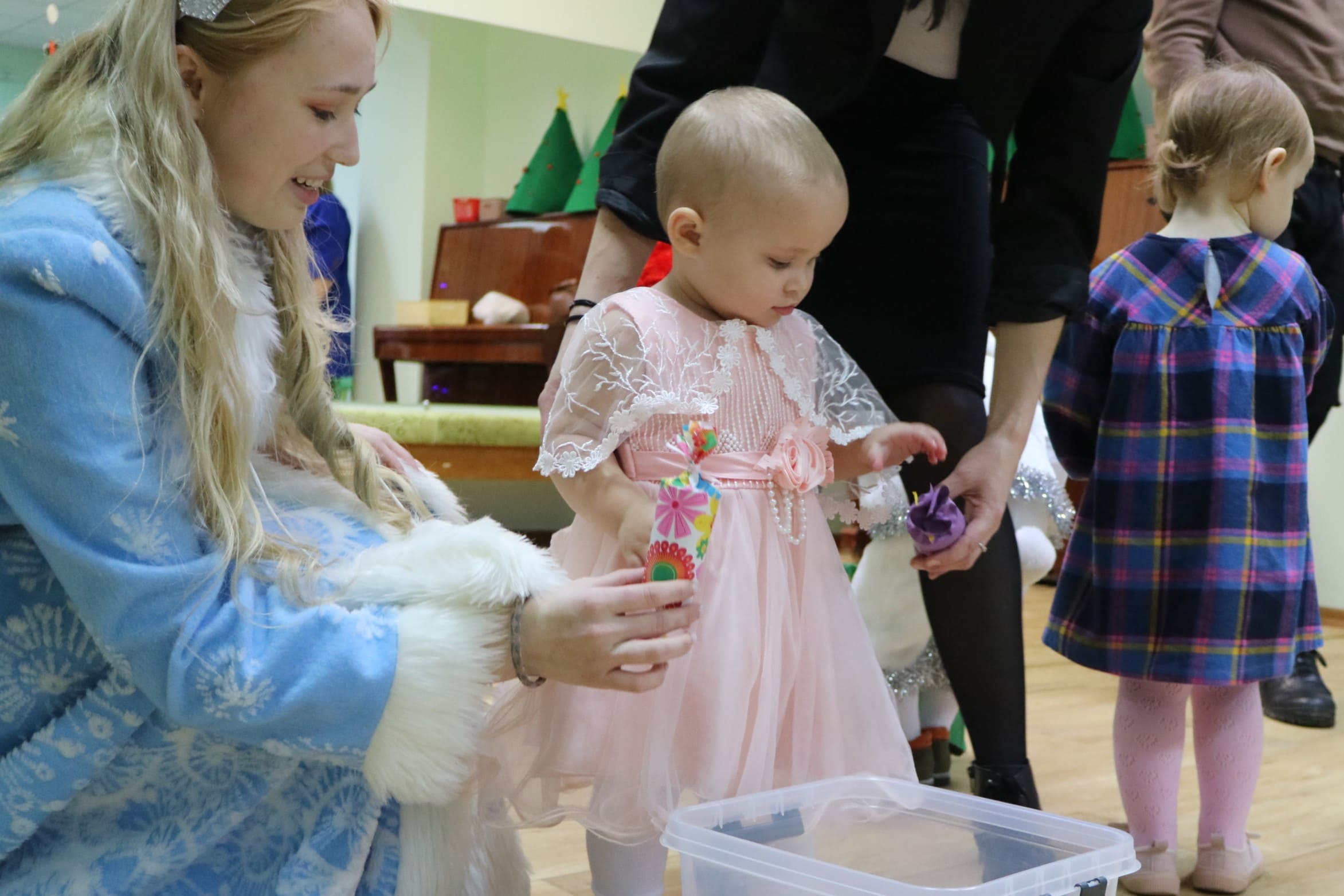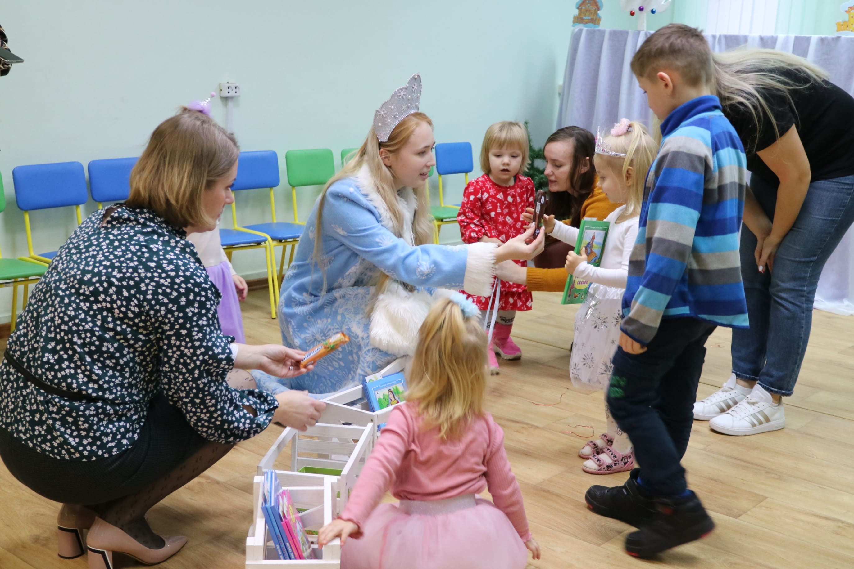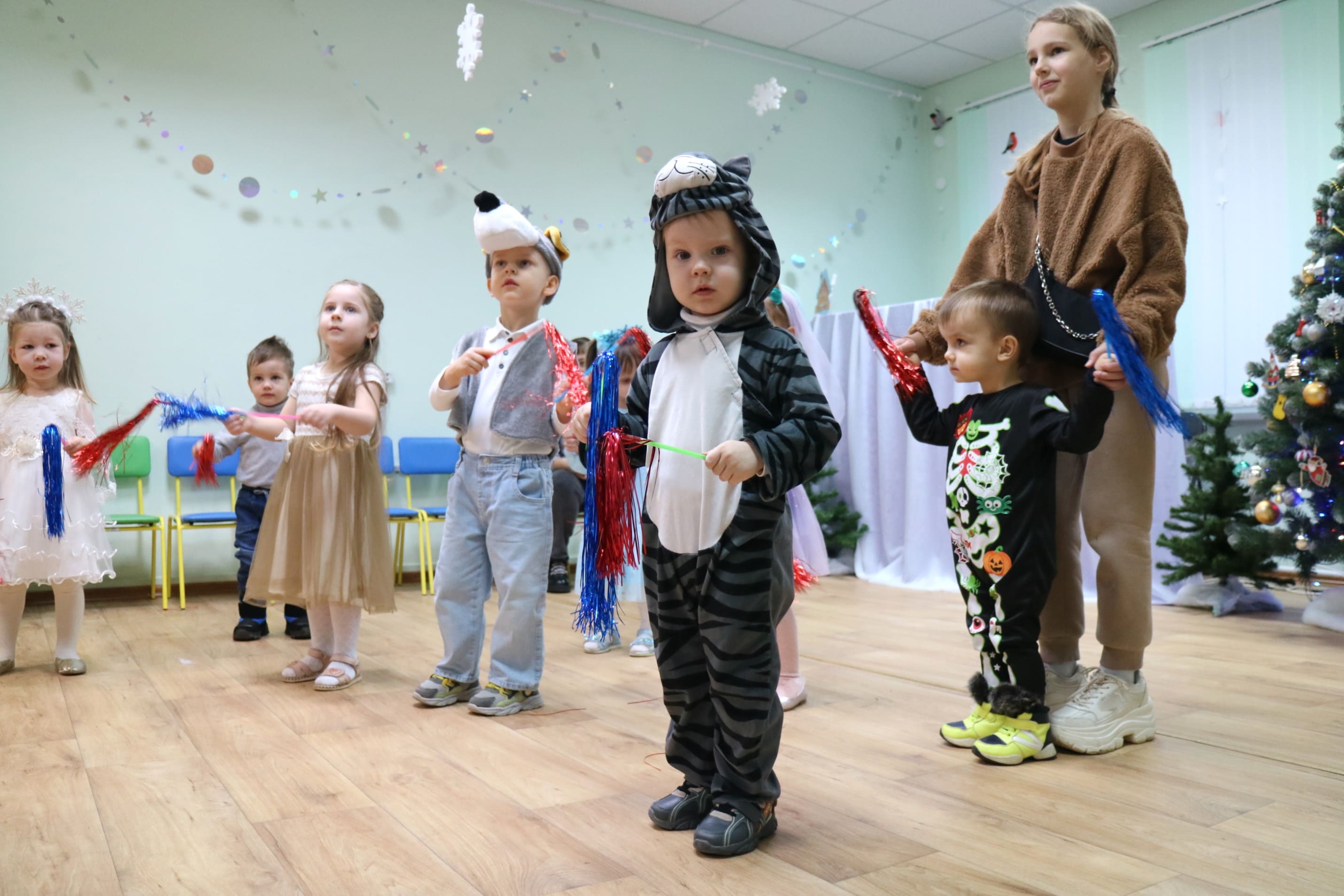 Каждый ребенок в конце праздника получил от Снегурочки подарок и станцевал новогодний танец с героями праздника.