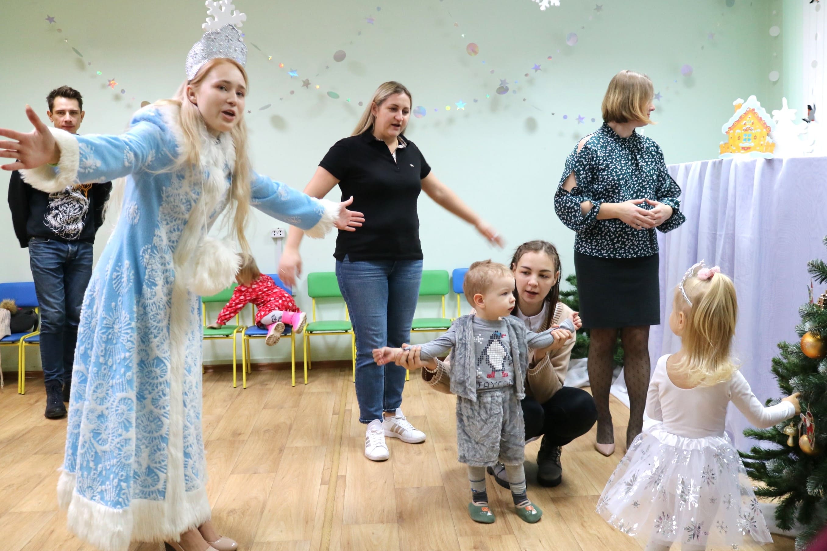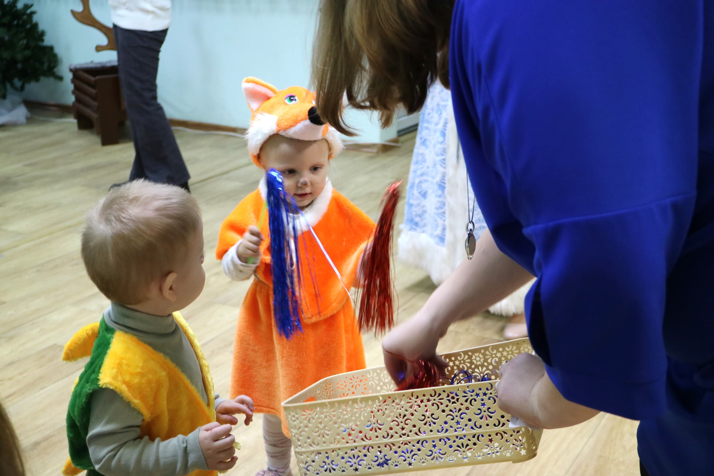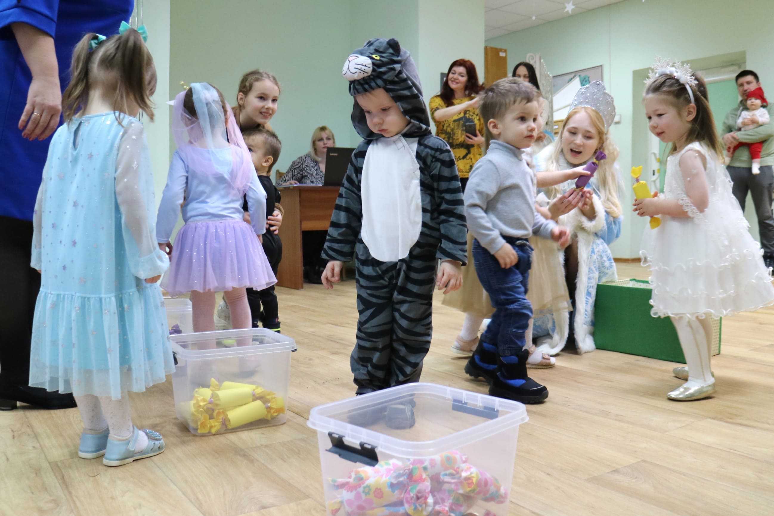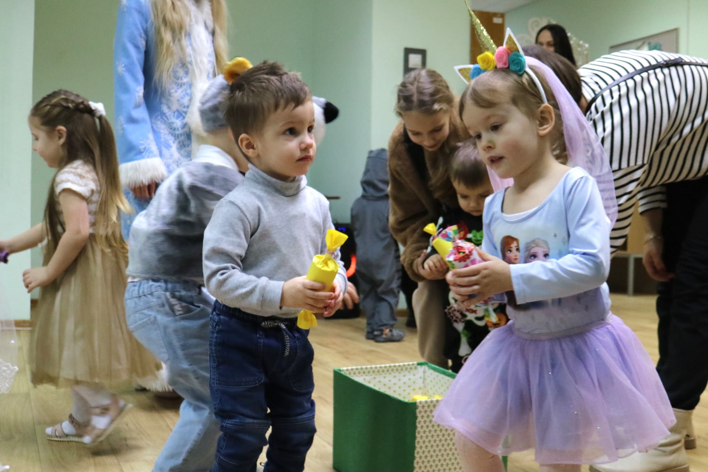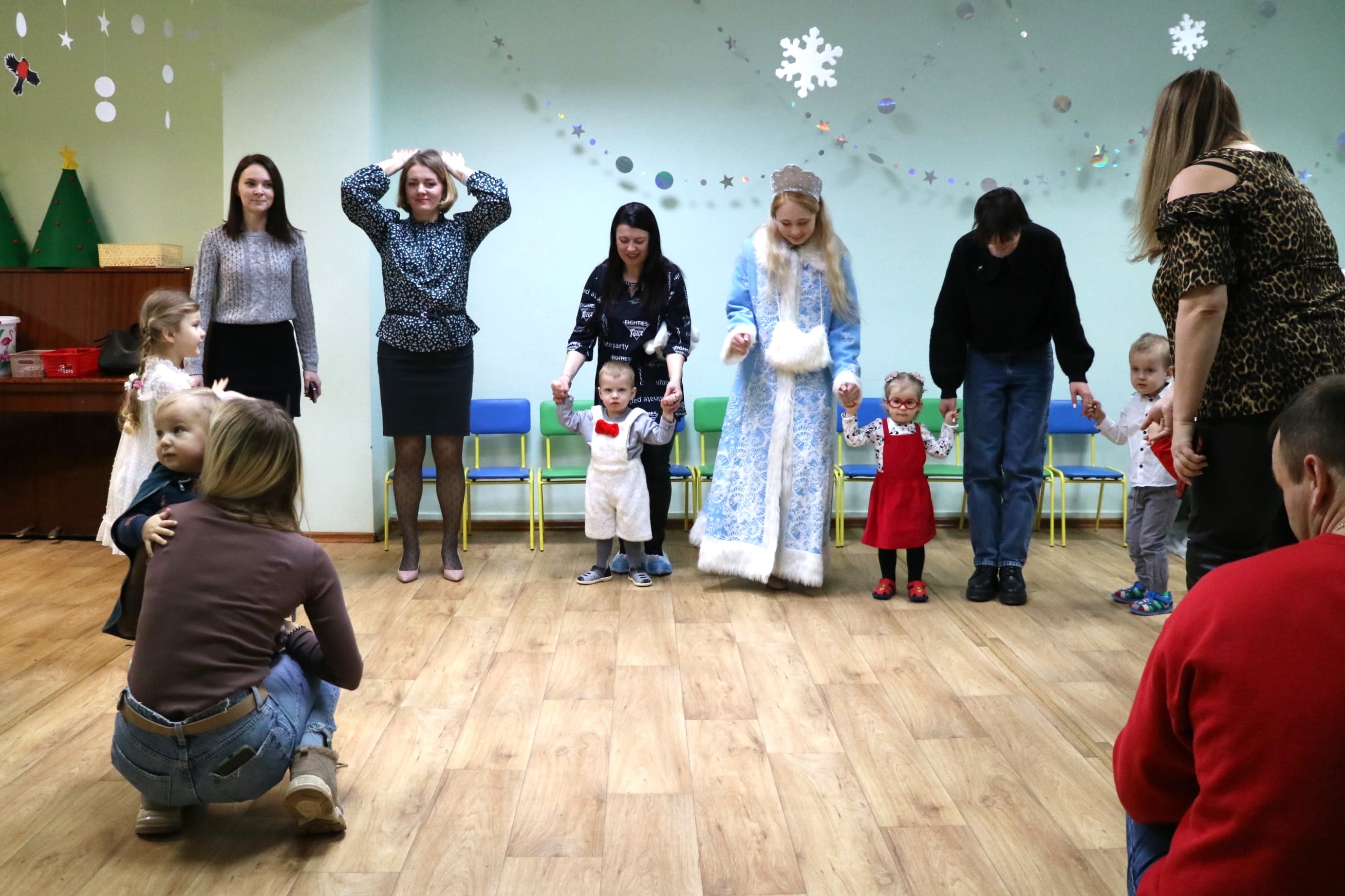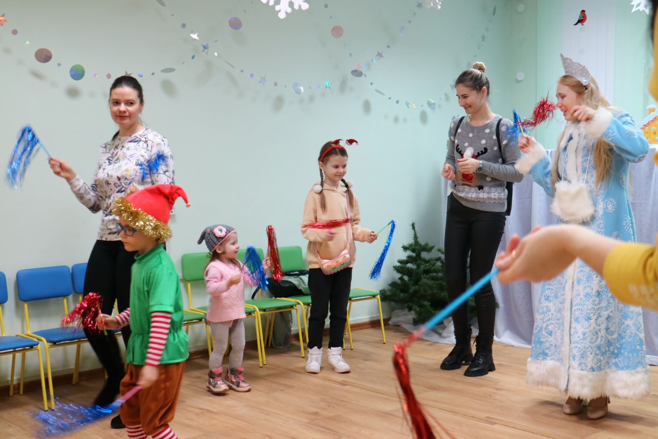 Каждый ребенок в конце праздника получил от Снегурочки подарок и станцевал новогодний танец с героями праздника.