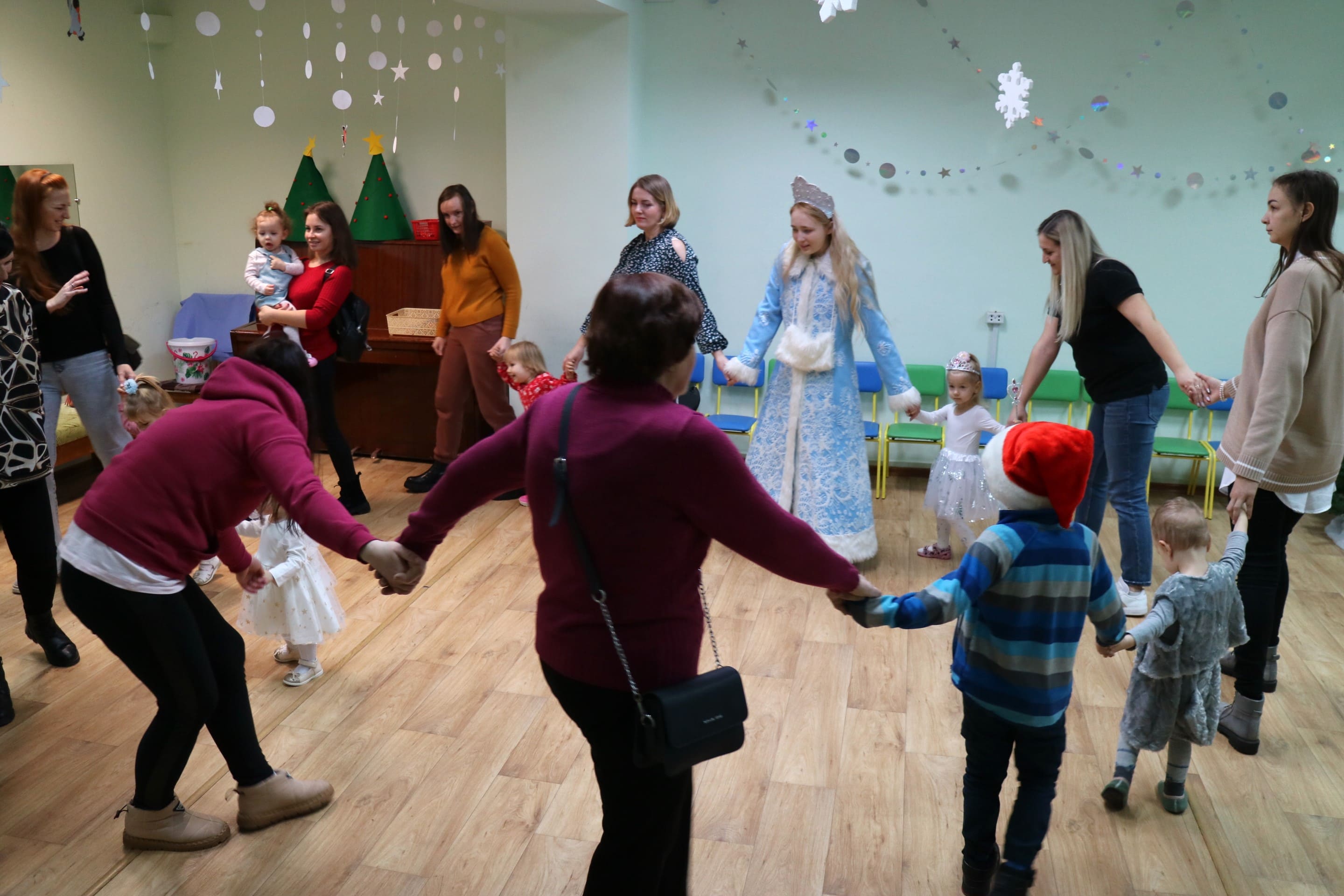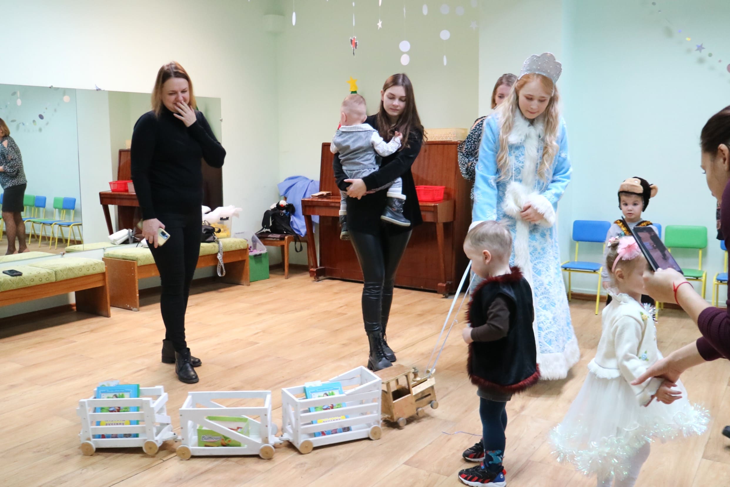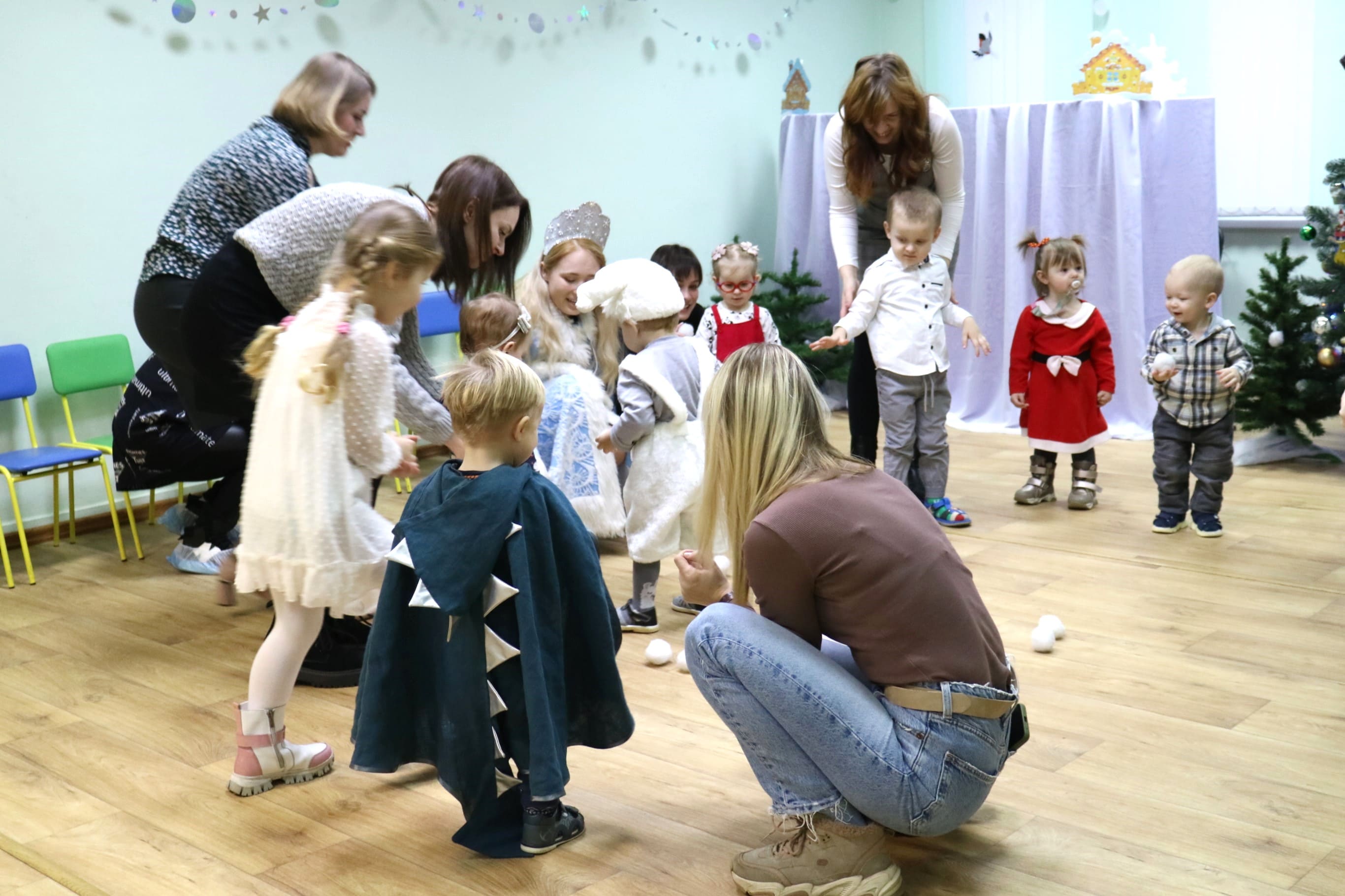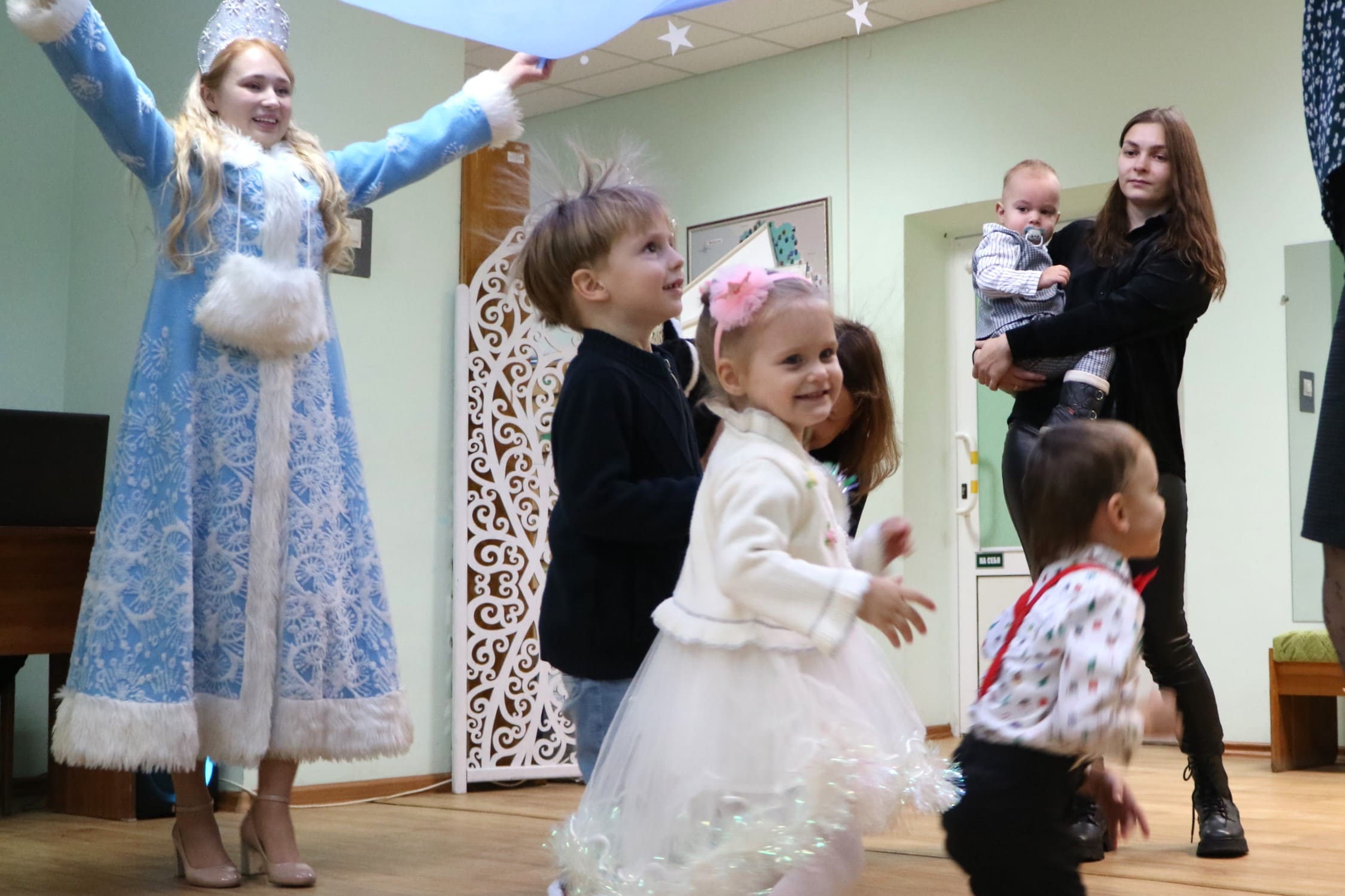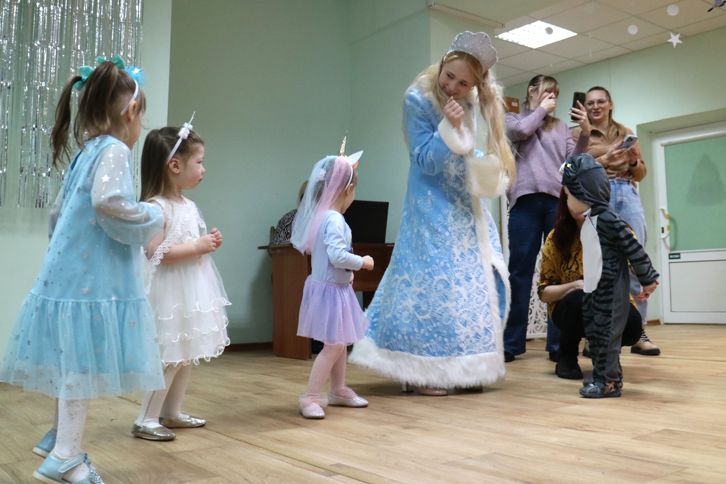 Каждый ребенок в конце праздника получил от Снегурочки подарок и станцевал новогодний танец с героями праздника.