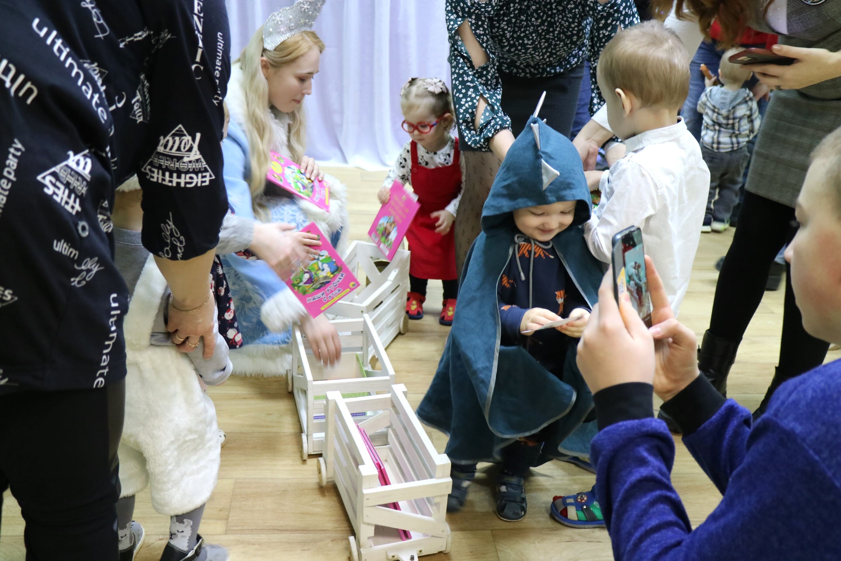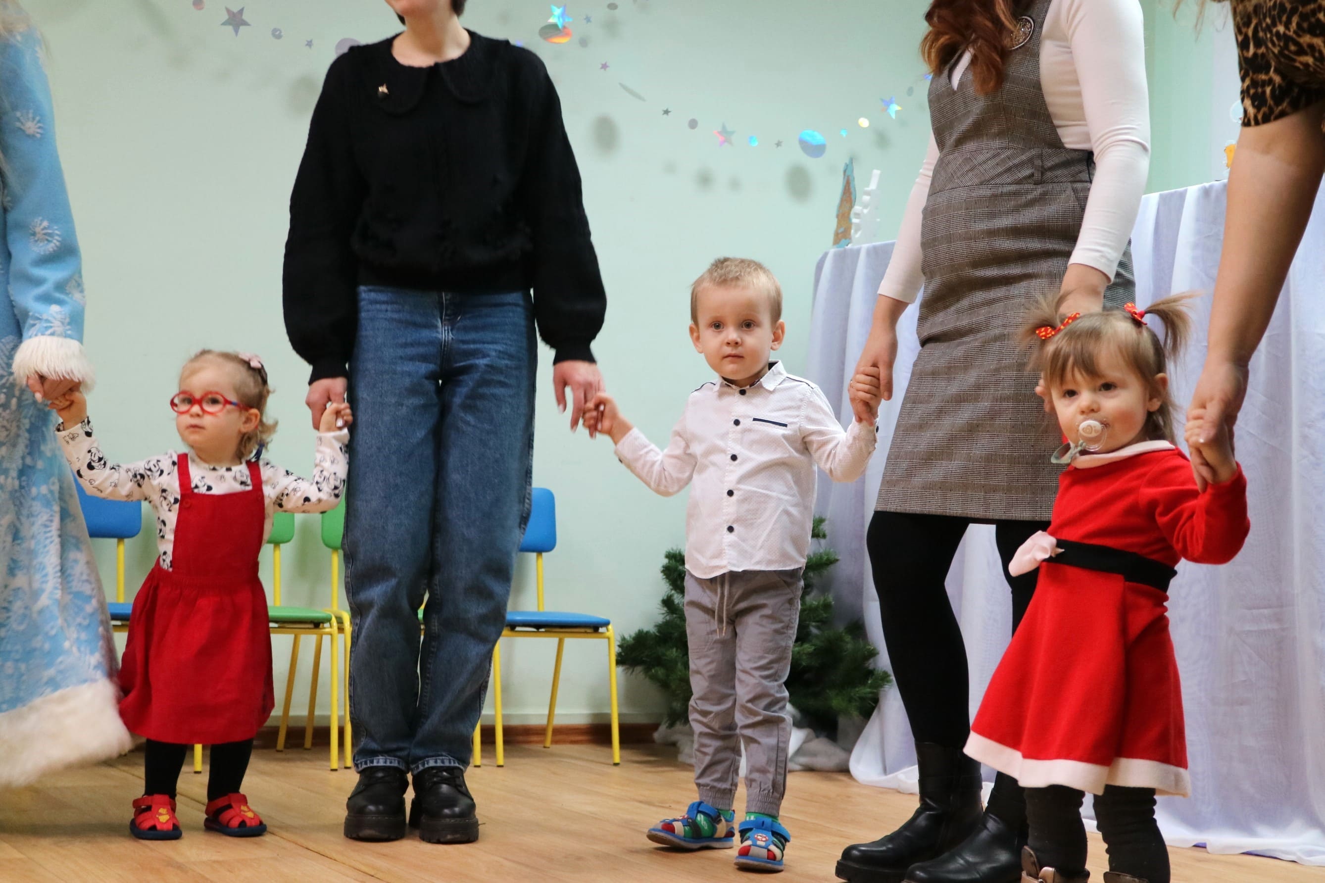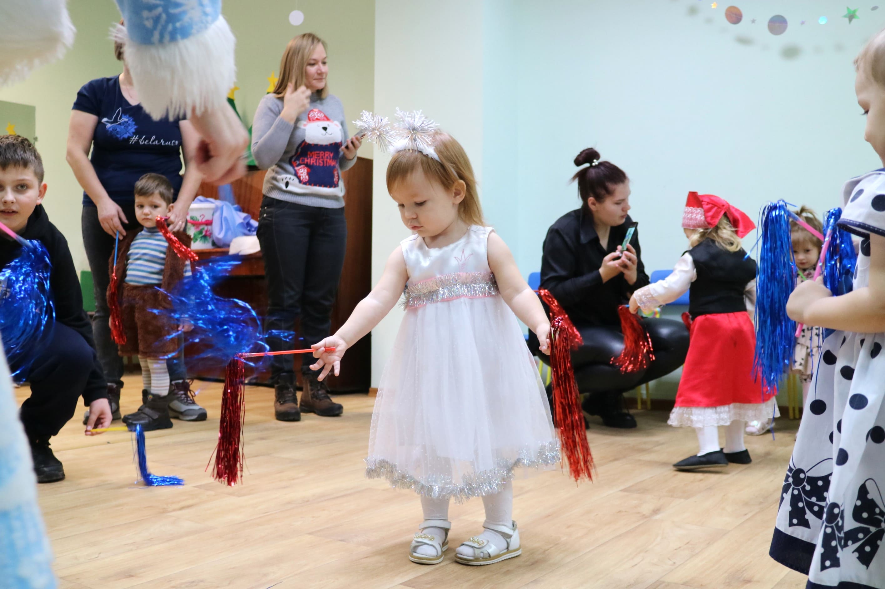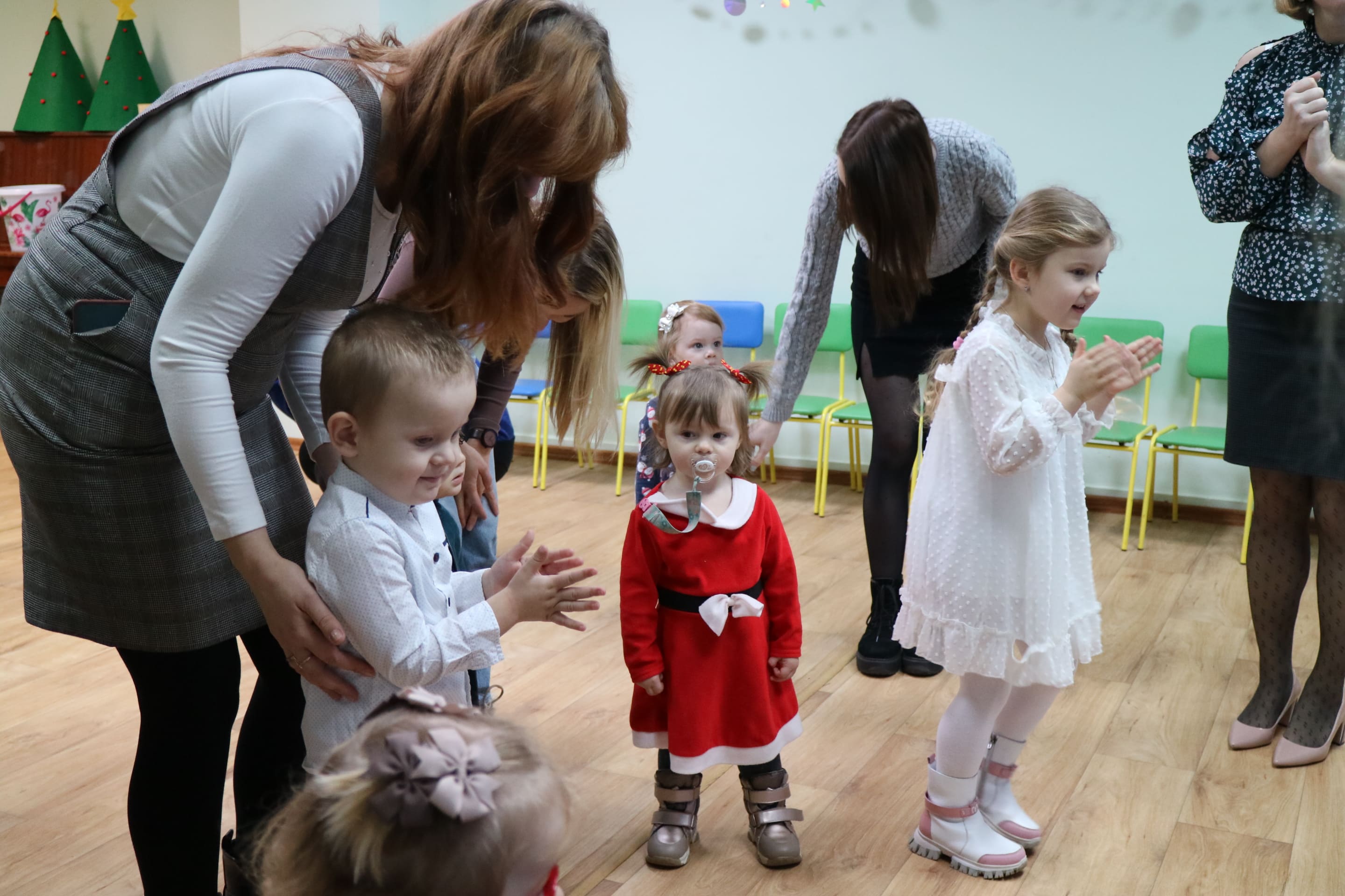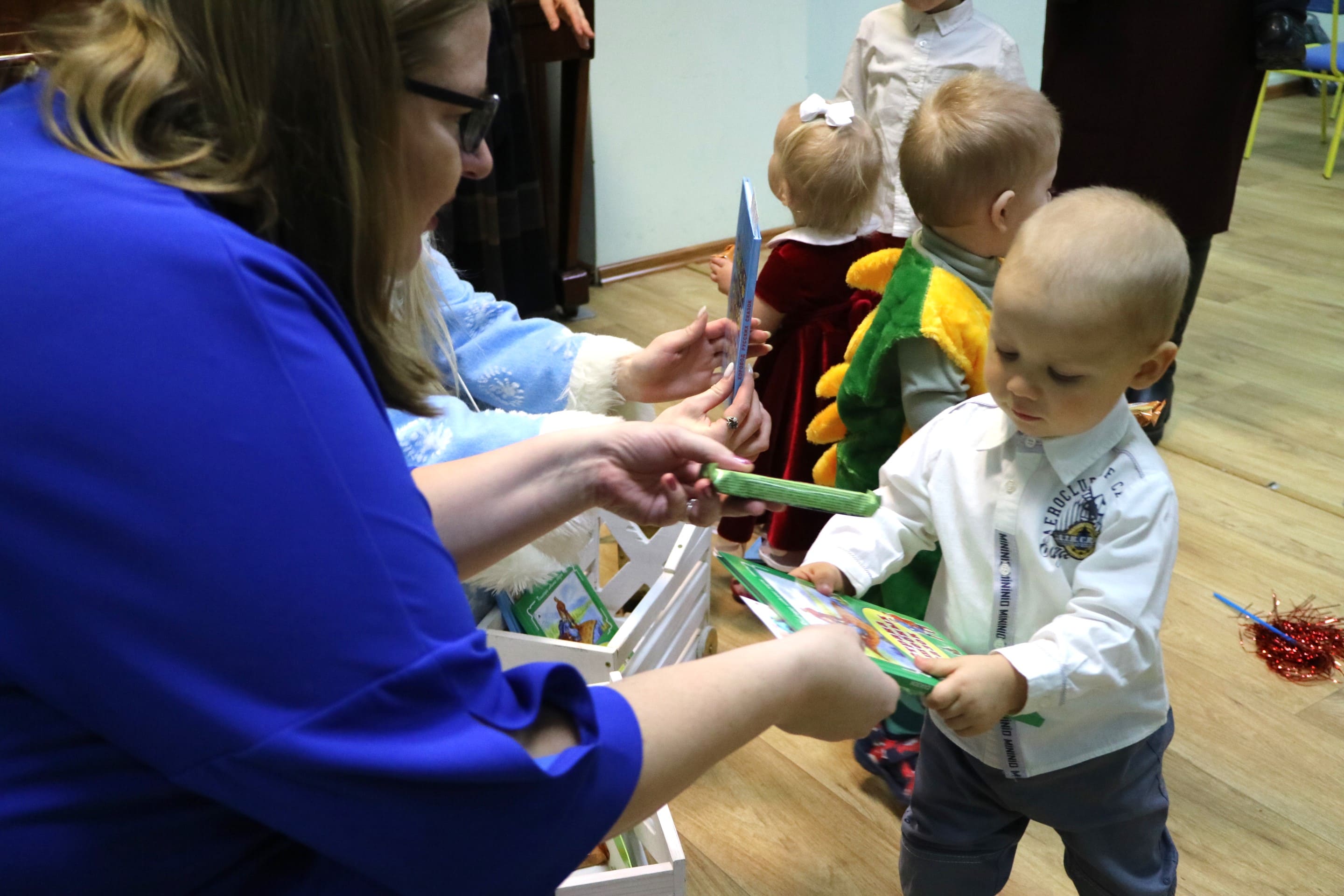Каждый ребенок в конце праздника получил от Снегурочки подарок и станцевал новогодний танец с героями праздника.