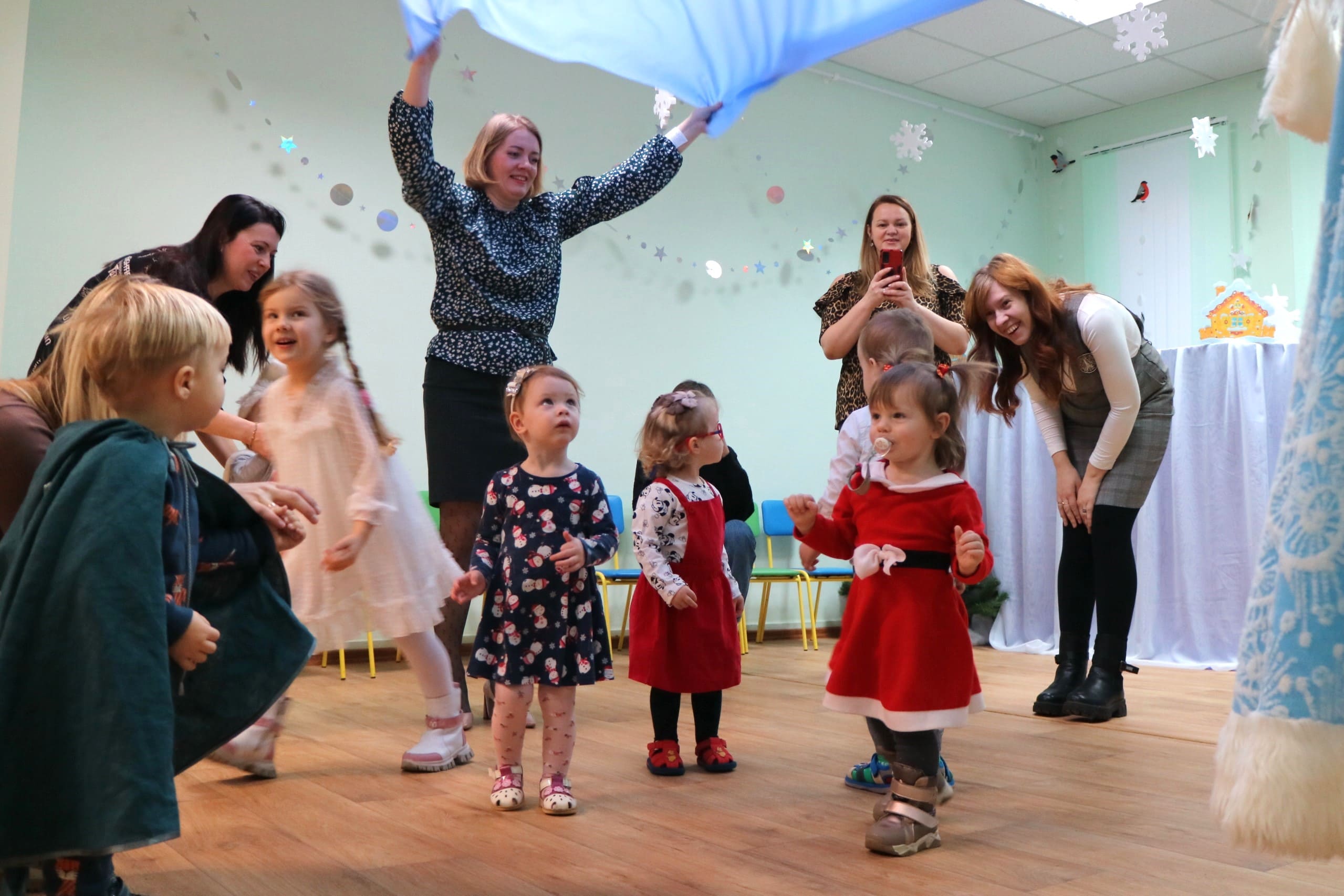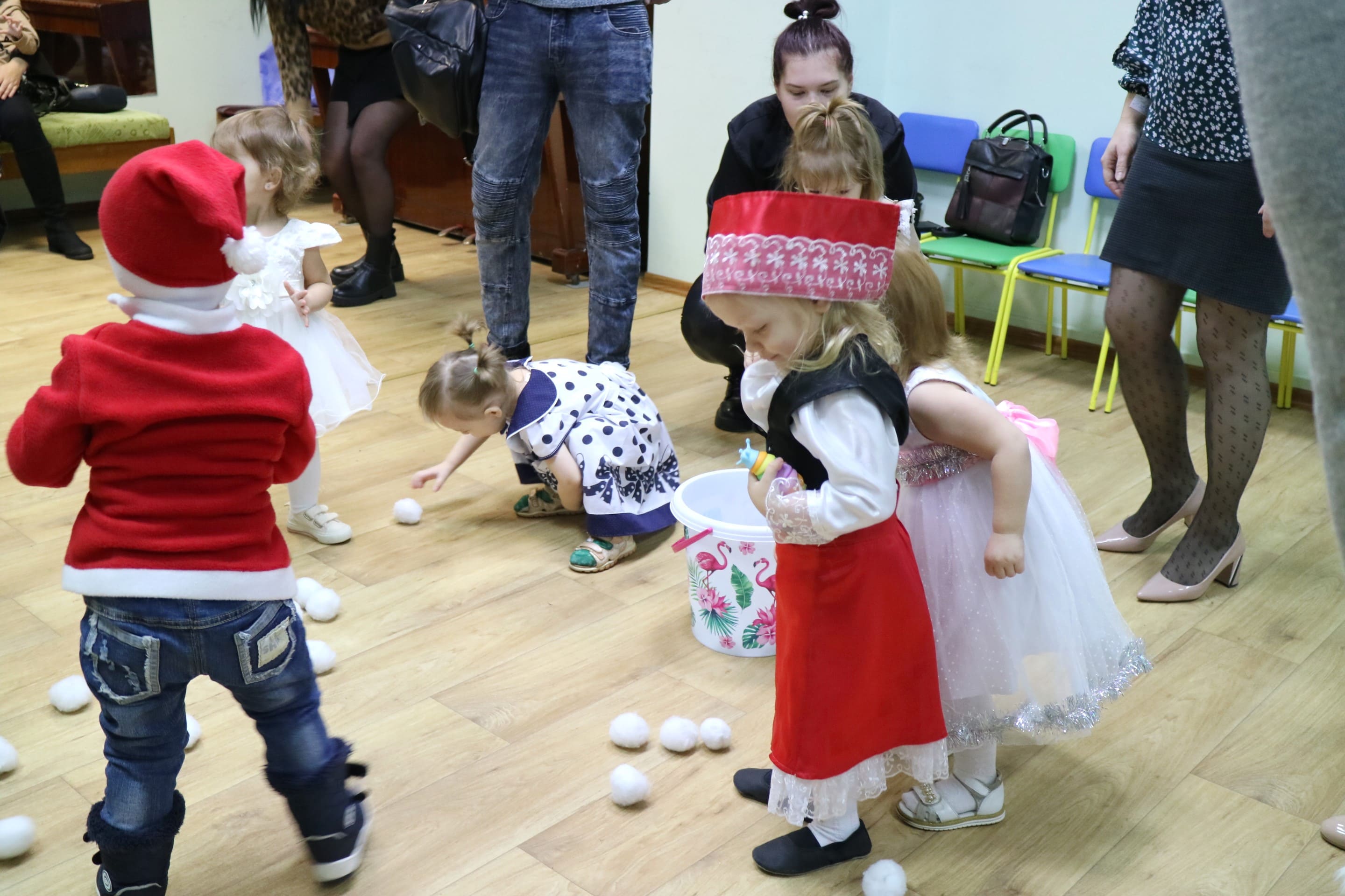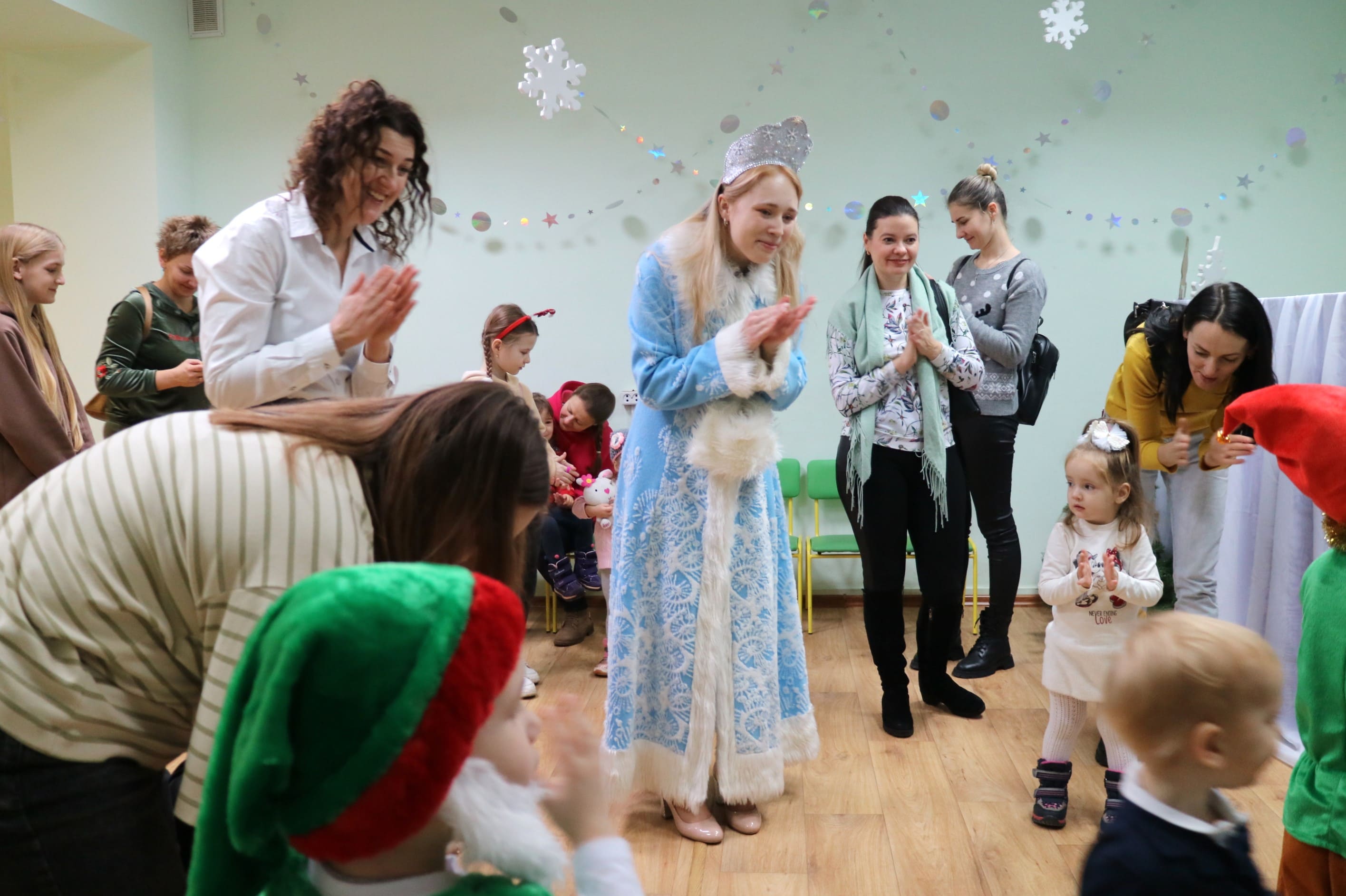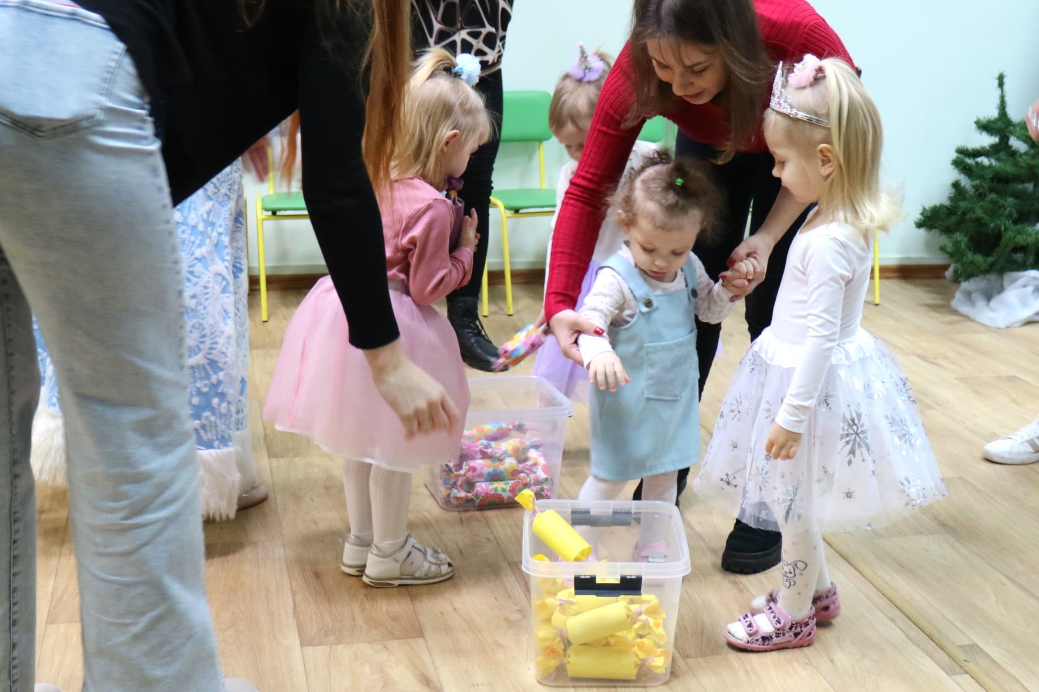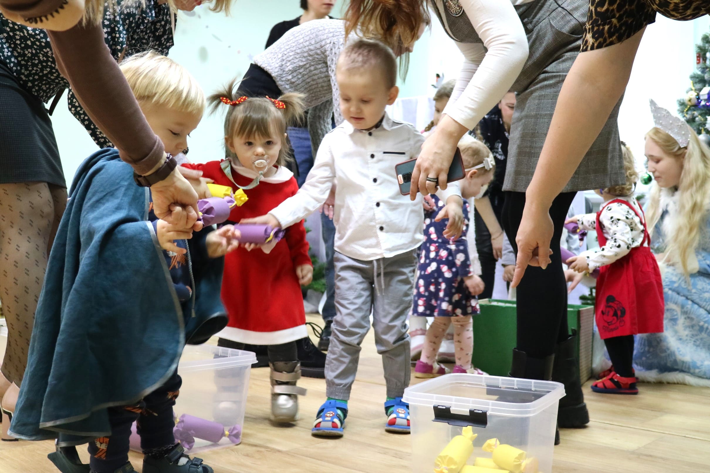 Каждый ребенок в конце праздника получил от Снегурочки подарок и станцевал новогодний танец с героями праздника.