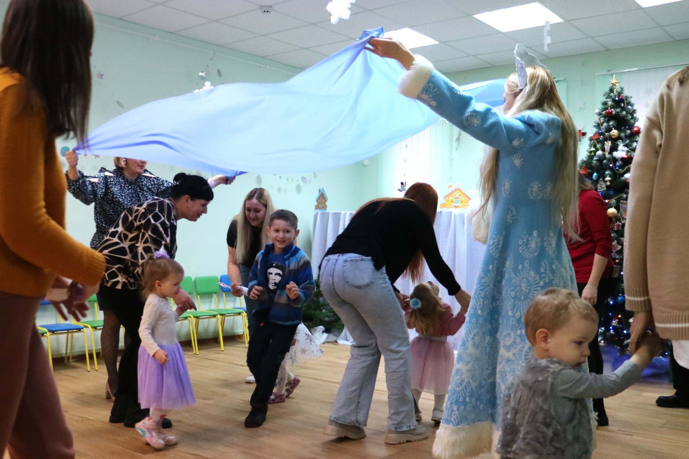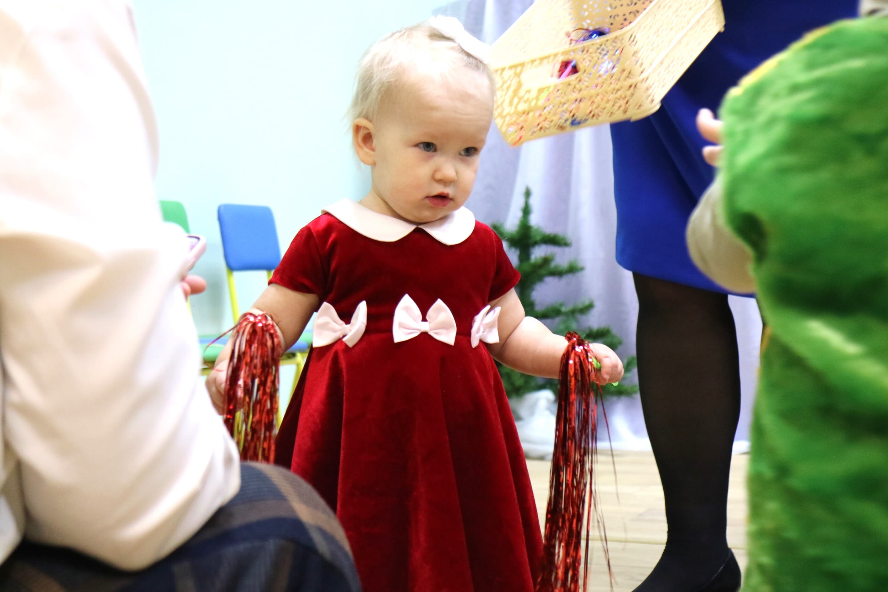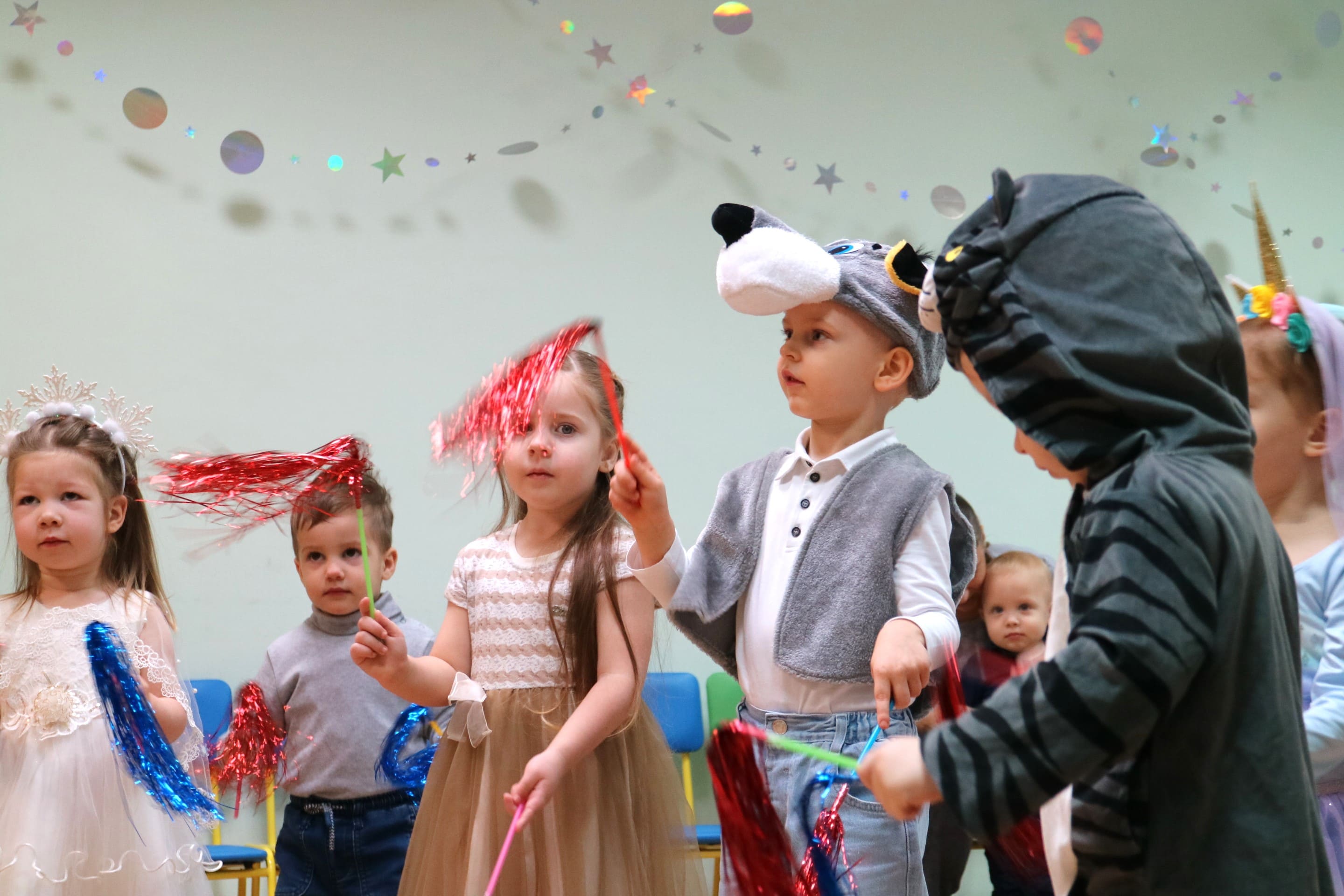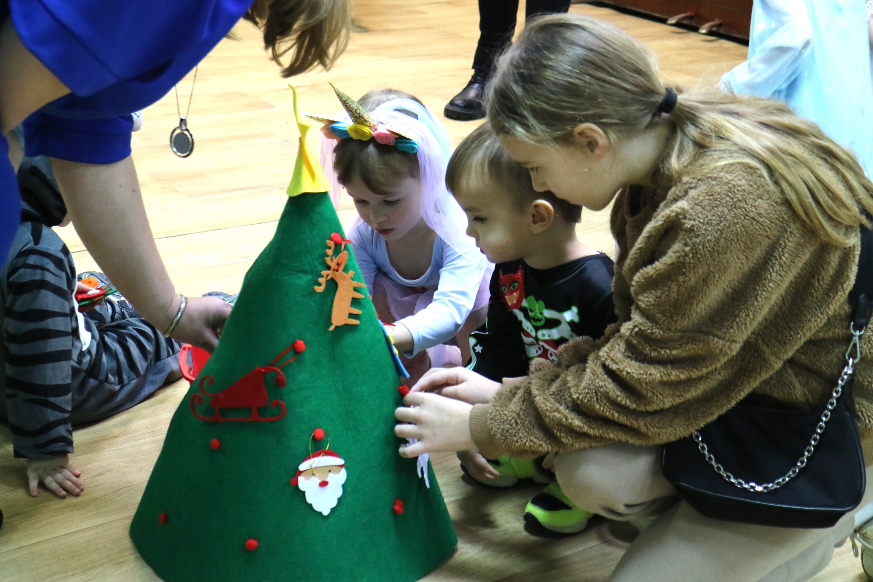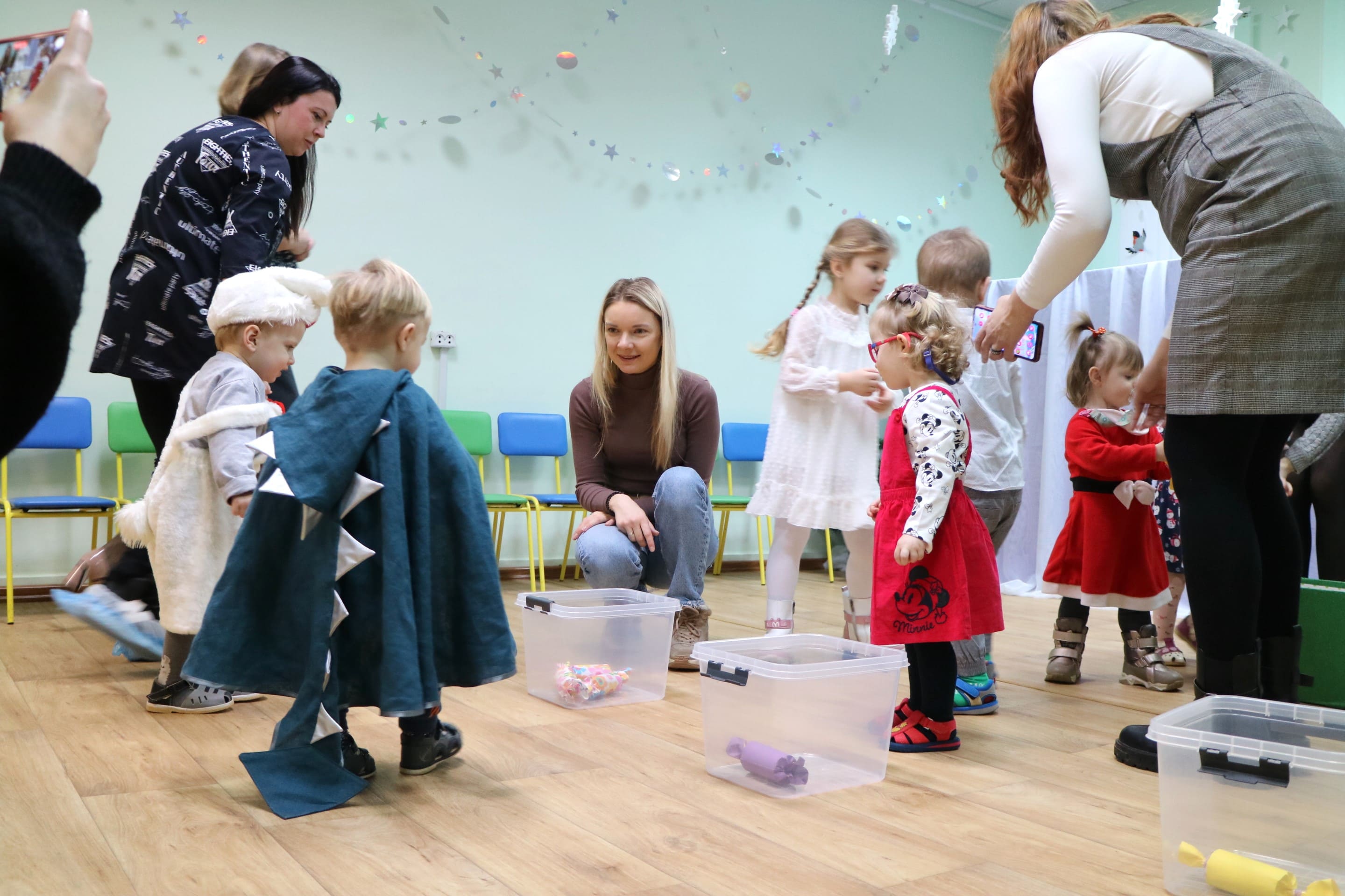 Каждый ребенок в конце праздника получил от Снегурочки подарок и станцевал новогодний танец с героями праздника.
