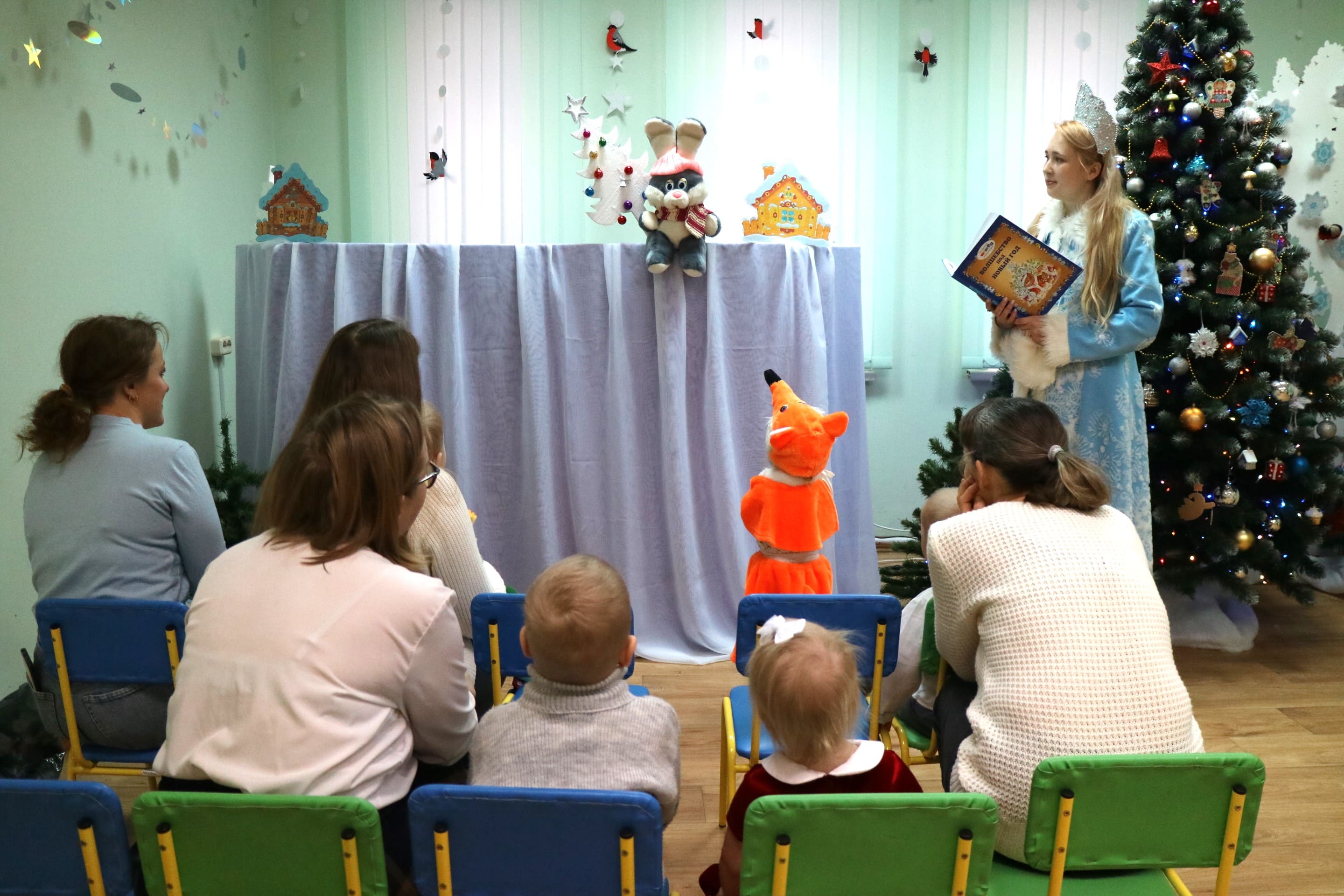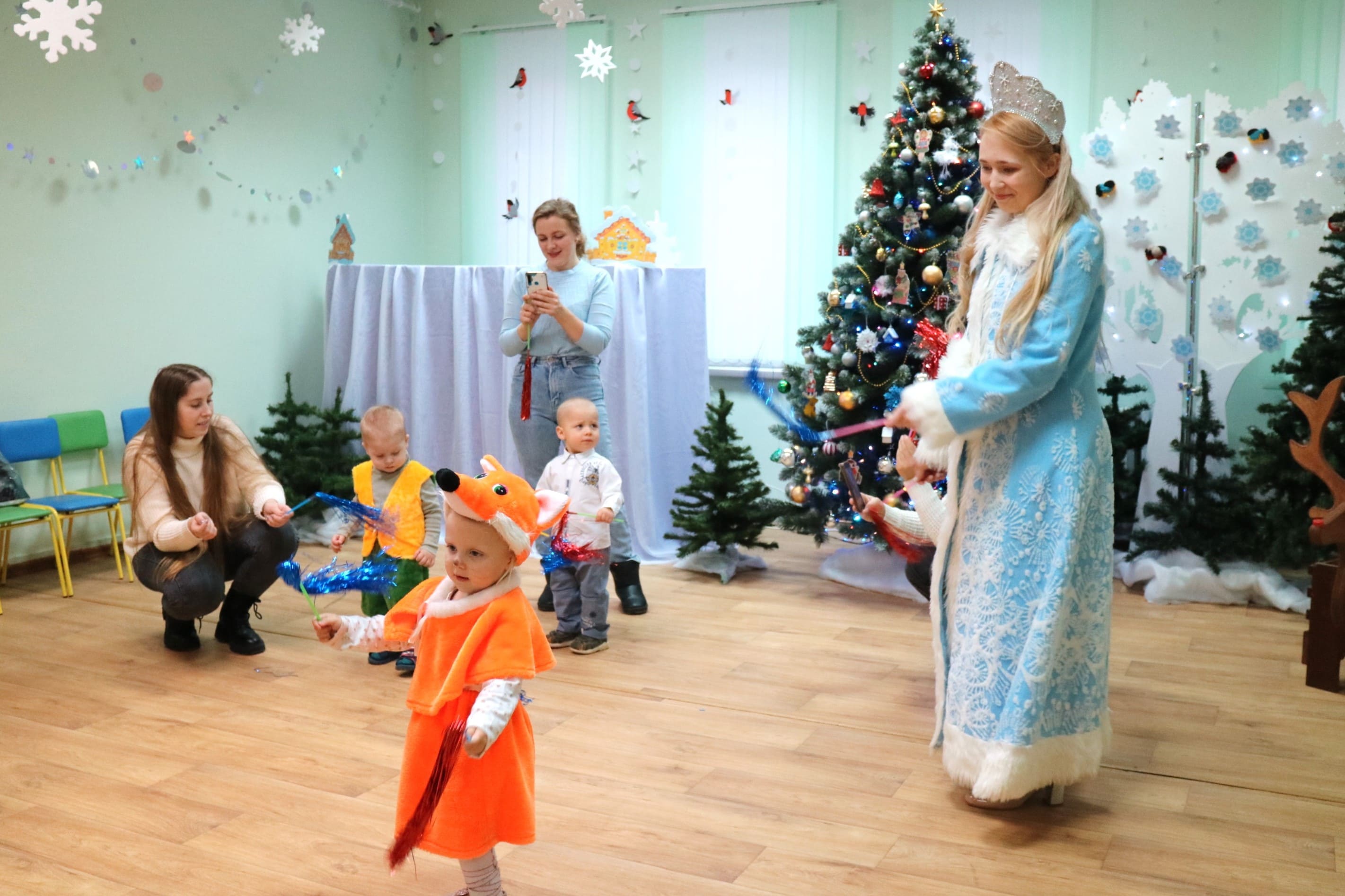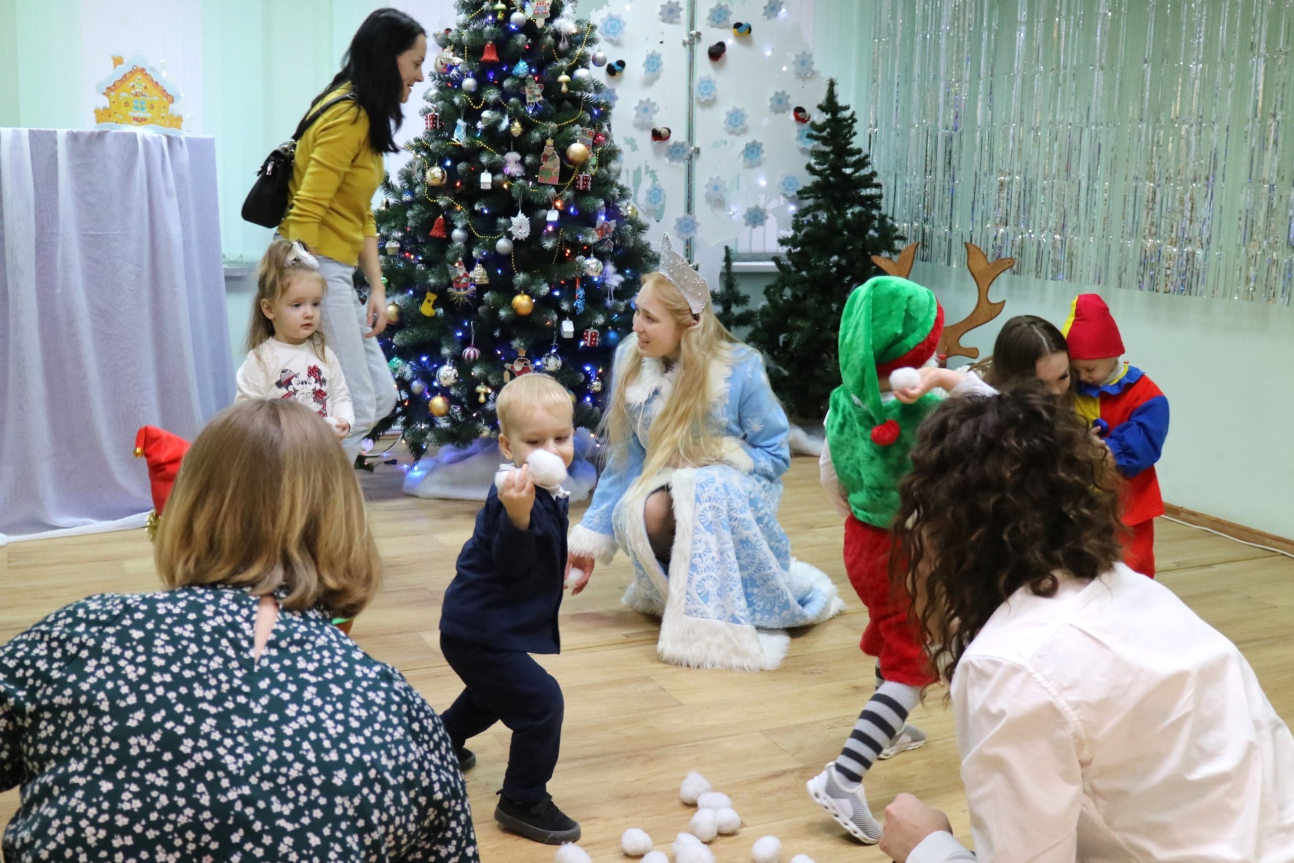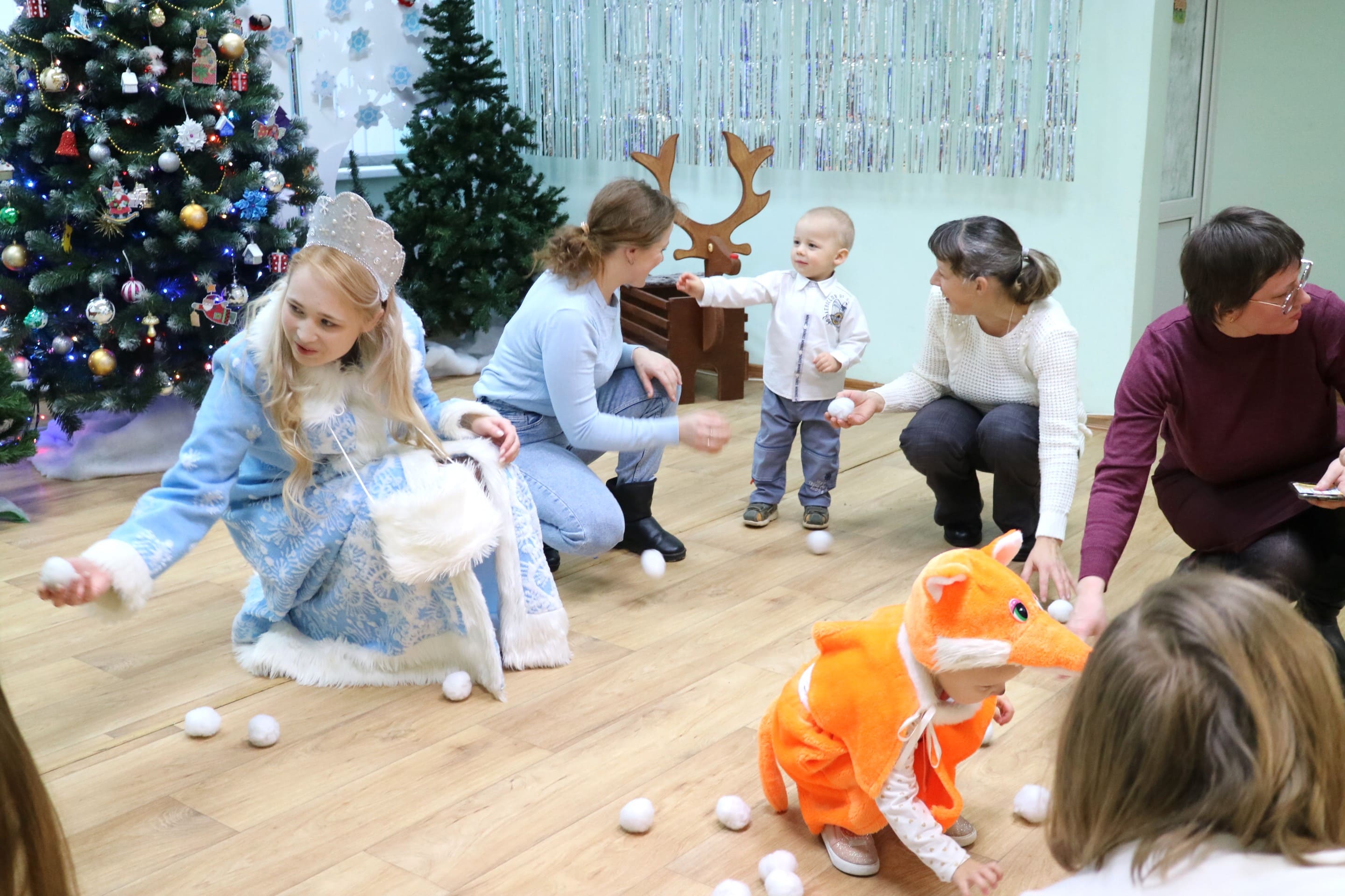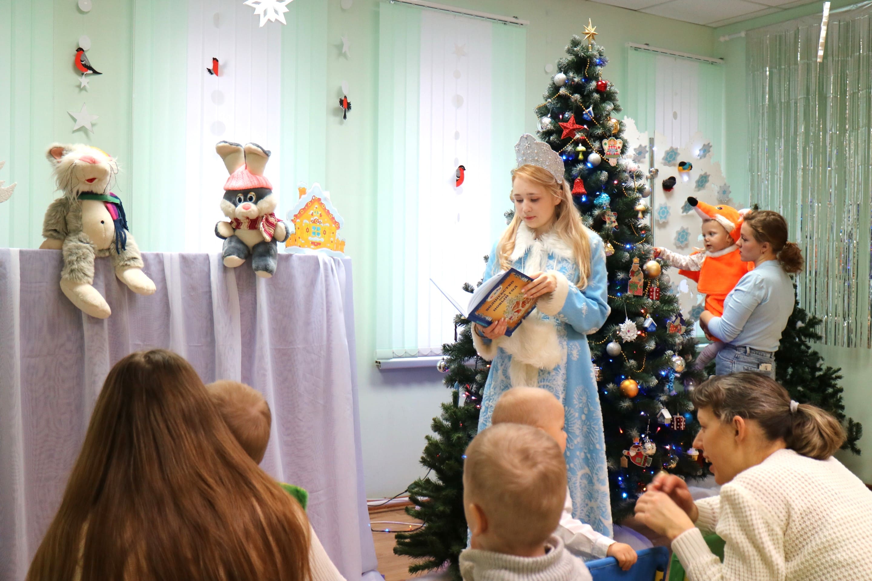 Вместе со Снегурочкой малыши водили хороводы, зажигали огоньки на елочке, играли в снежки, прятались от зимней метели, помогали Дедушке Морозу разложить конфеты. А также ребята поучаствовали в интерактивном кукольном спектакле: помогли Зайчику вернуть новогоднюю елочку и встретить Новый год весело.