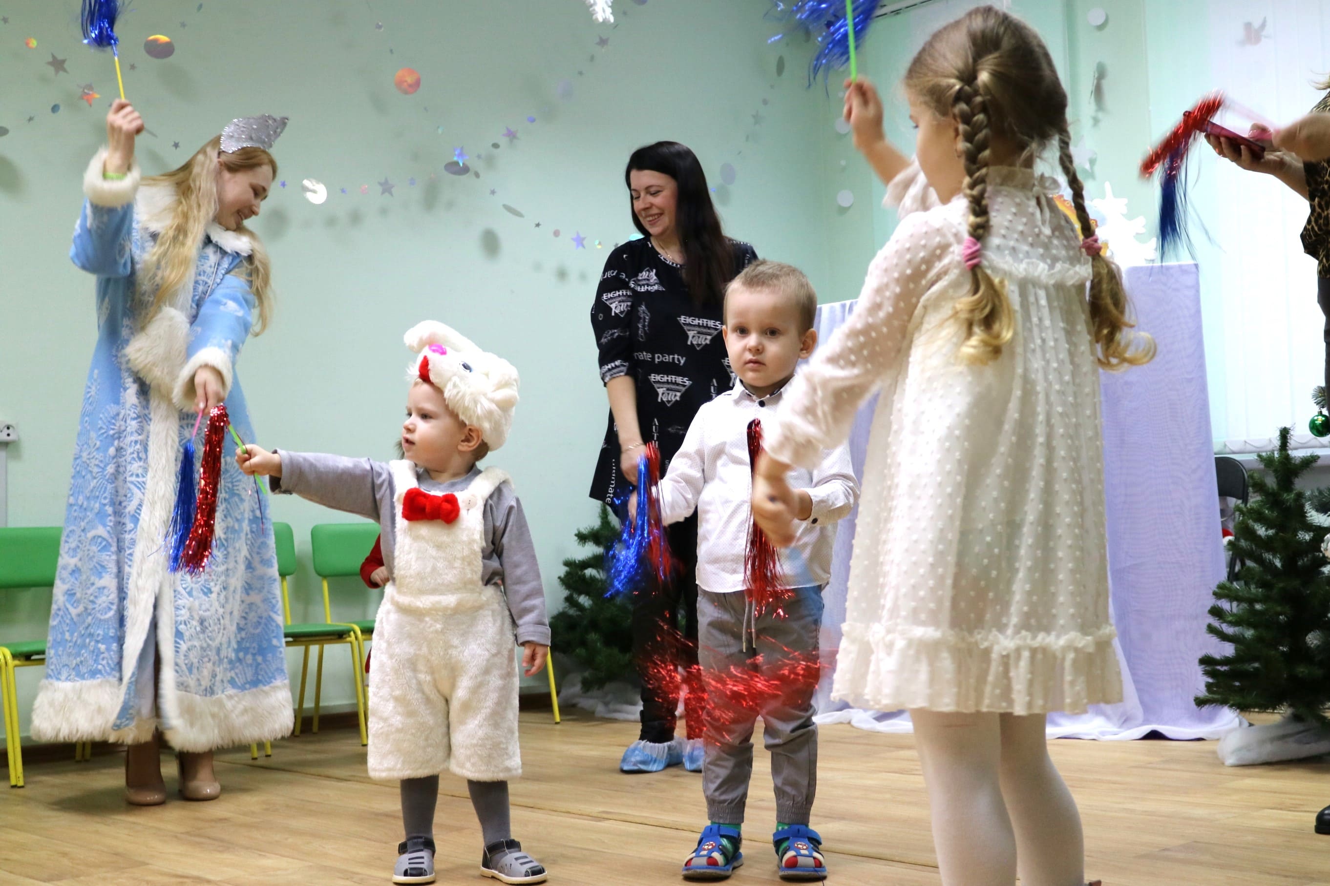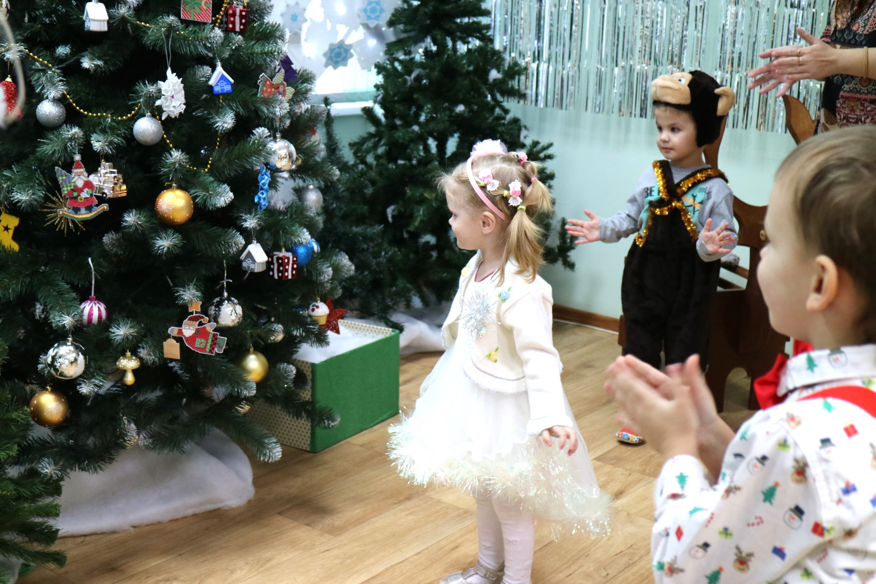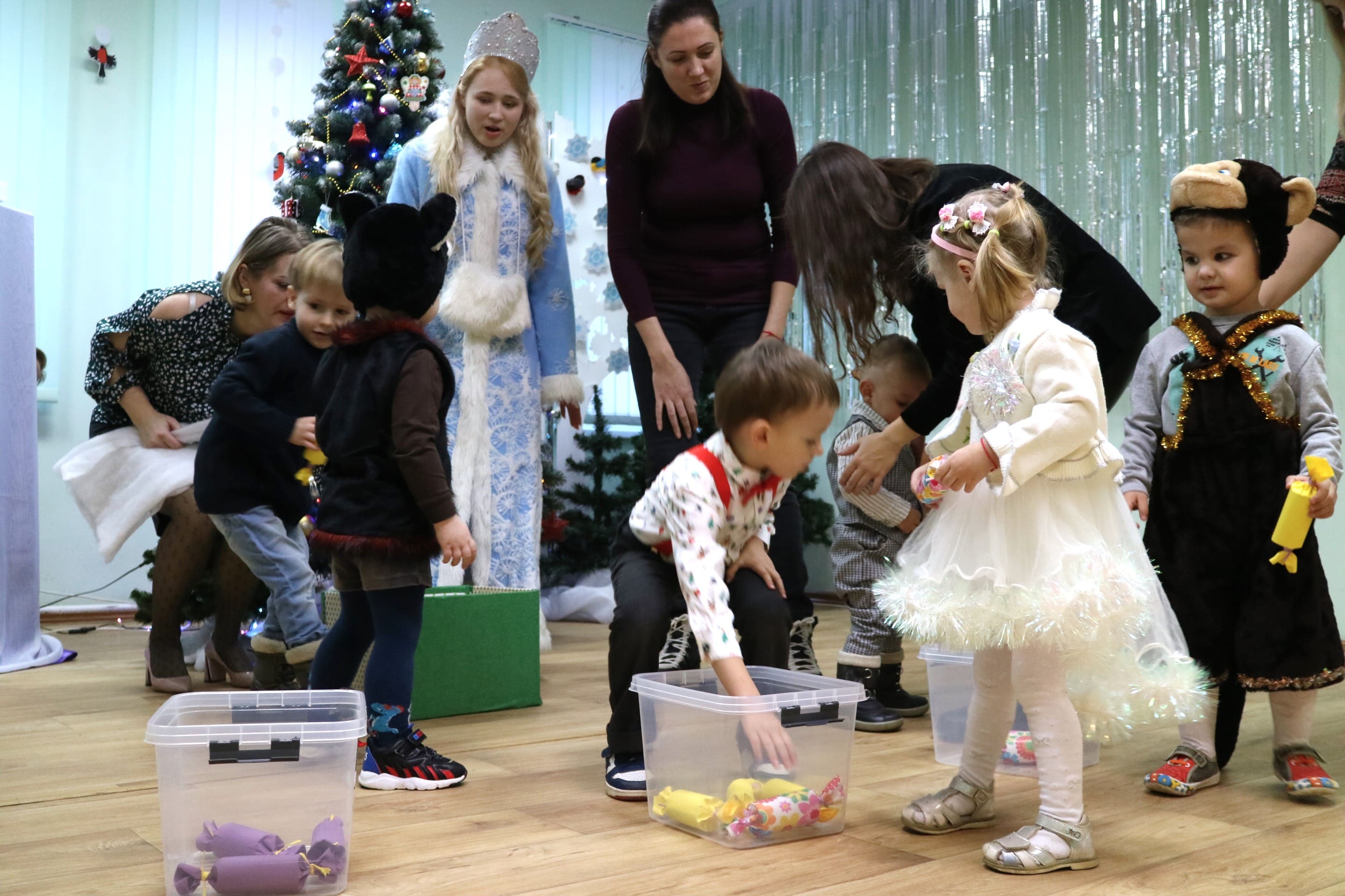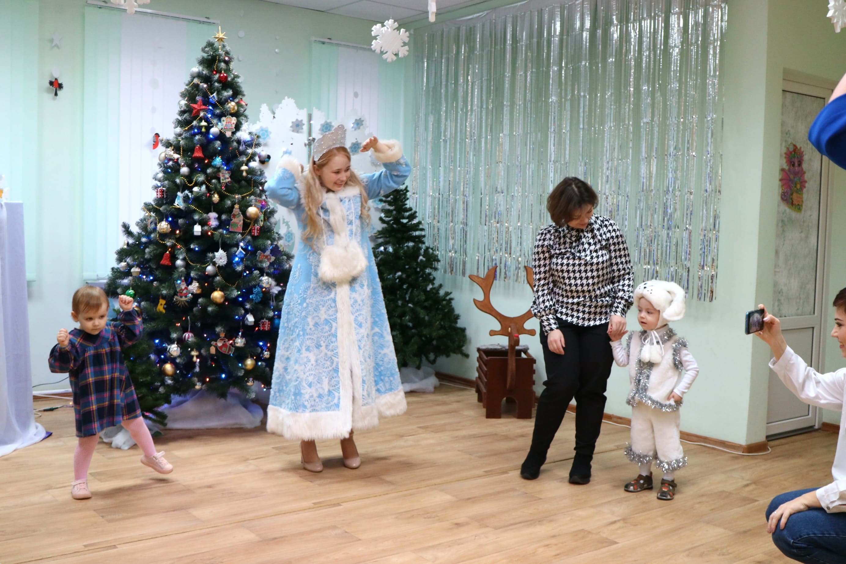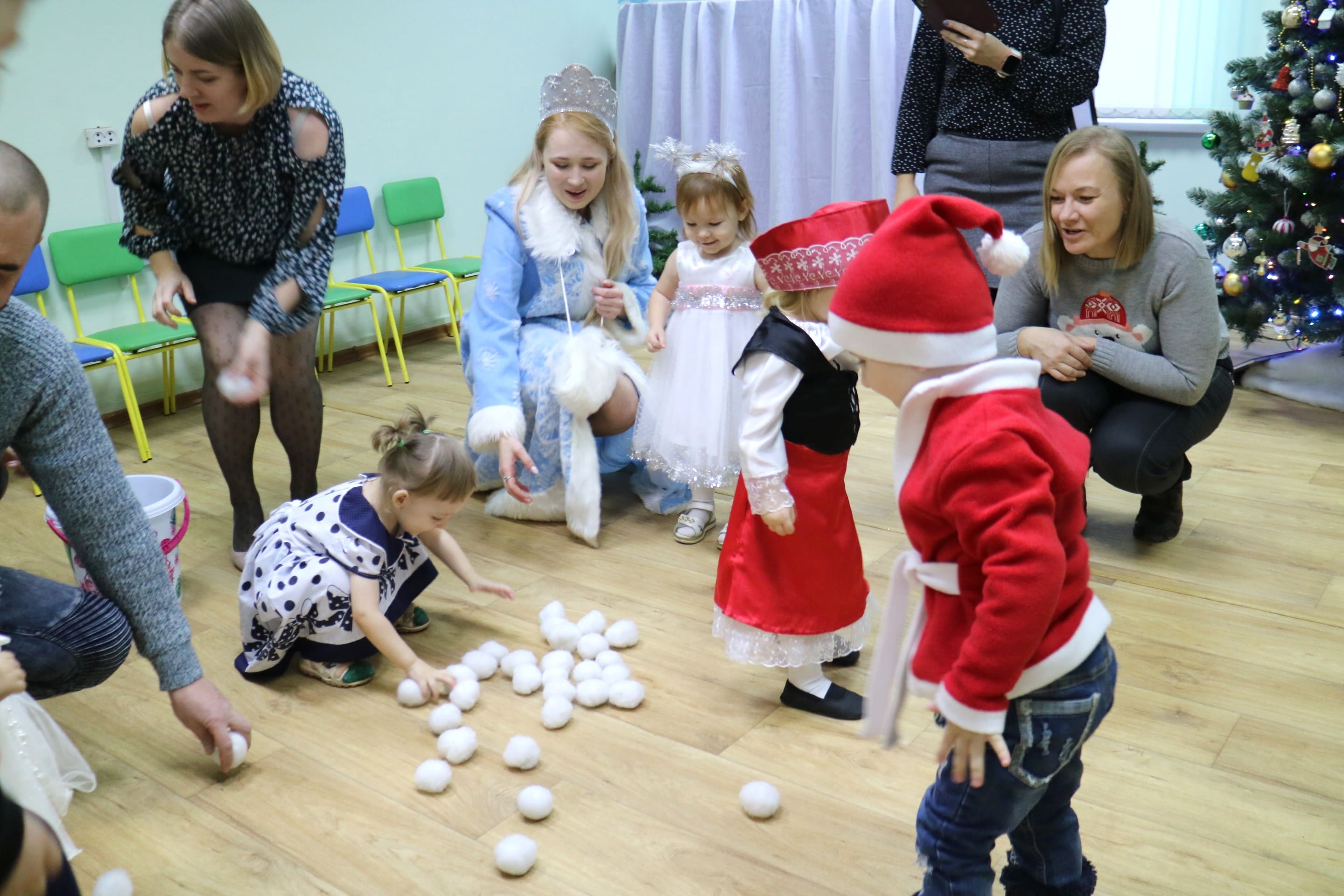 Вместе со Снегурочкой малыши водили хороводы, зажигали огоньки на елочке, играли в снежки, прятались от зимней метели, помогали Дедушке Морозу разложить конфеты. А также ребята поучаствовали в интерактивном кукольном спектакле: помогли Зайчику вернуть новогоднюю елочку и встретить Новый год весело.