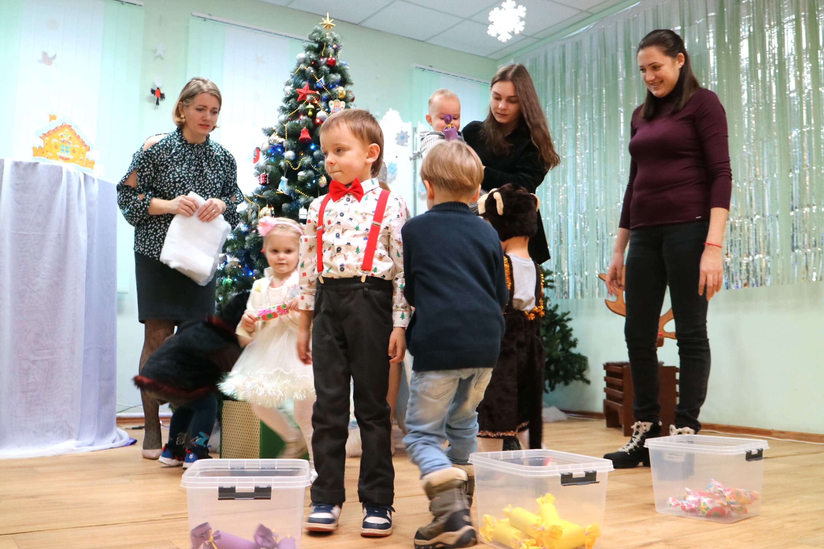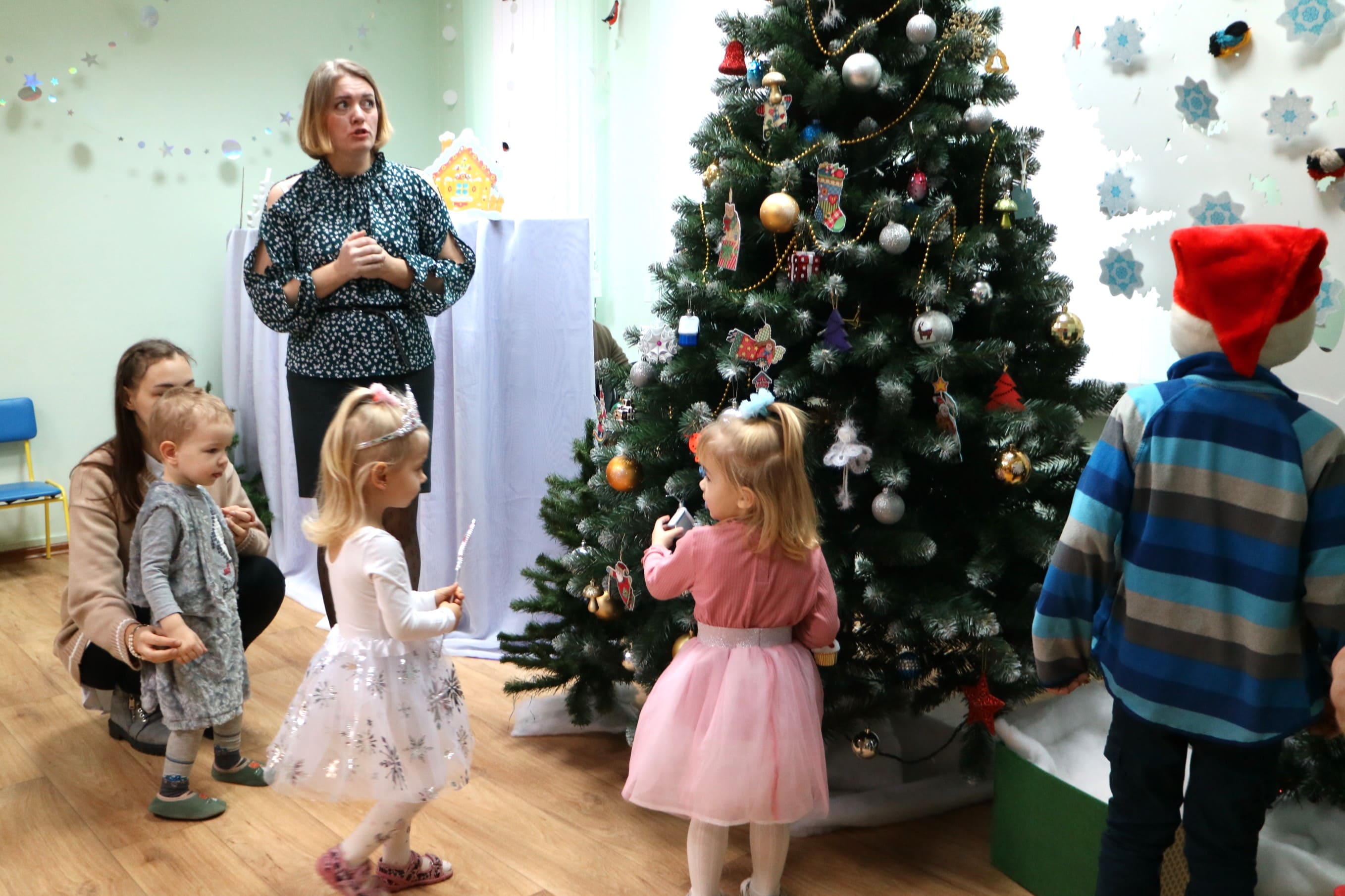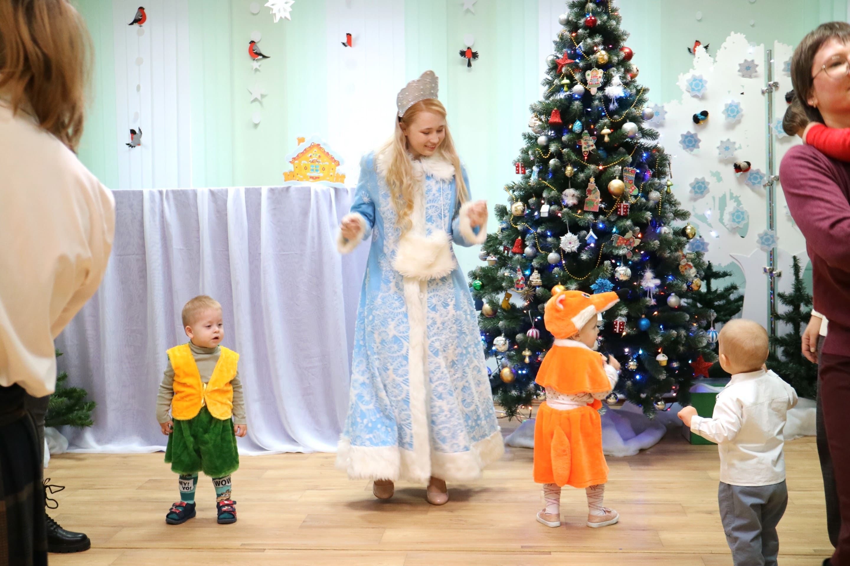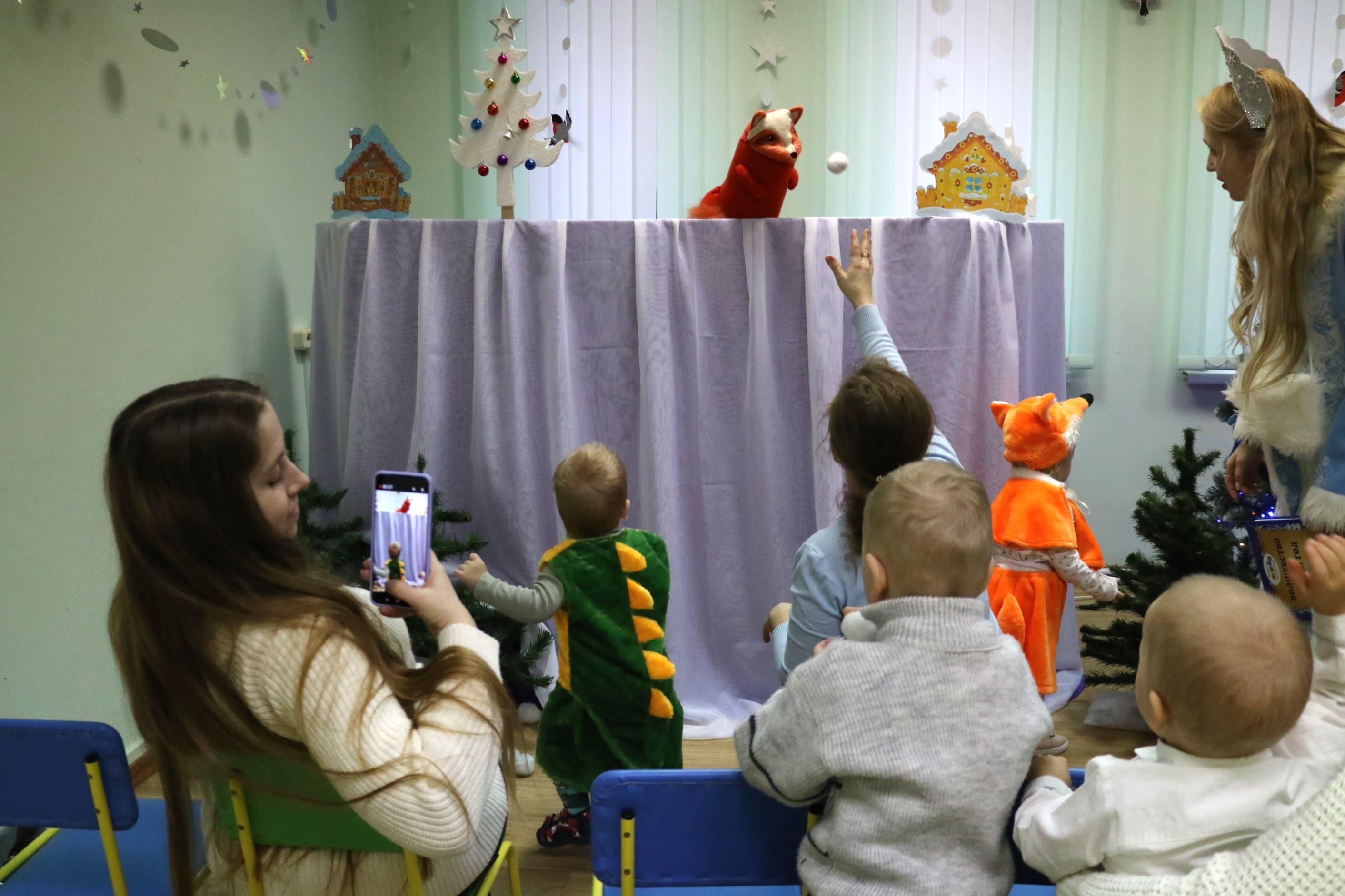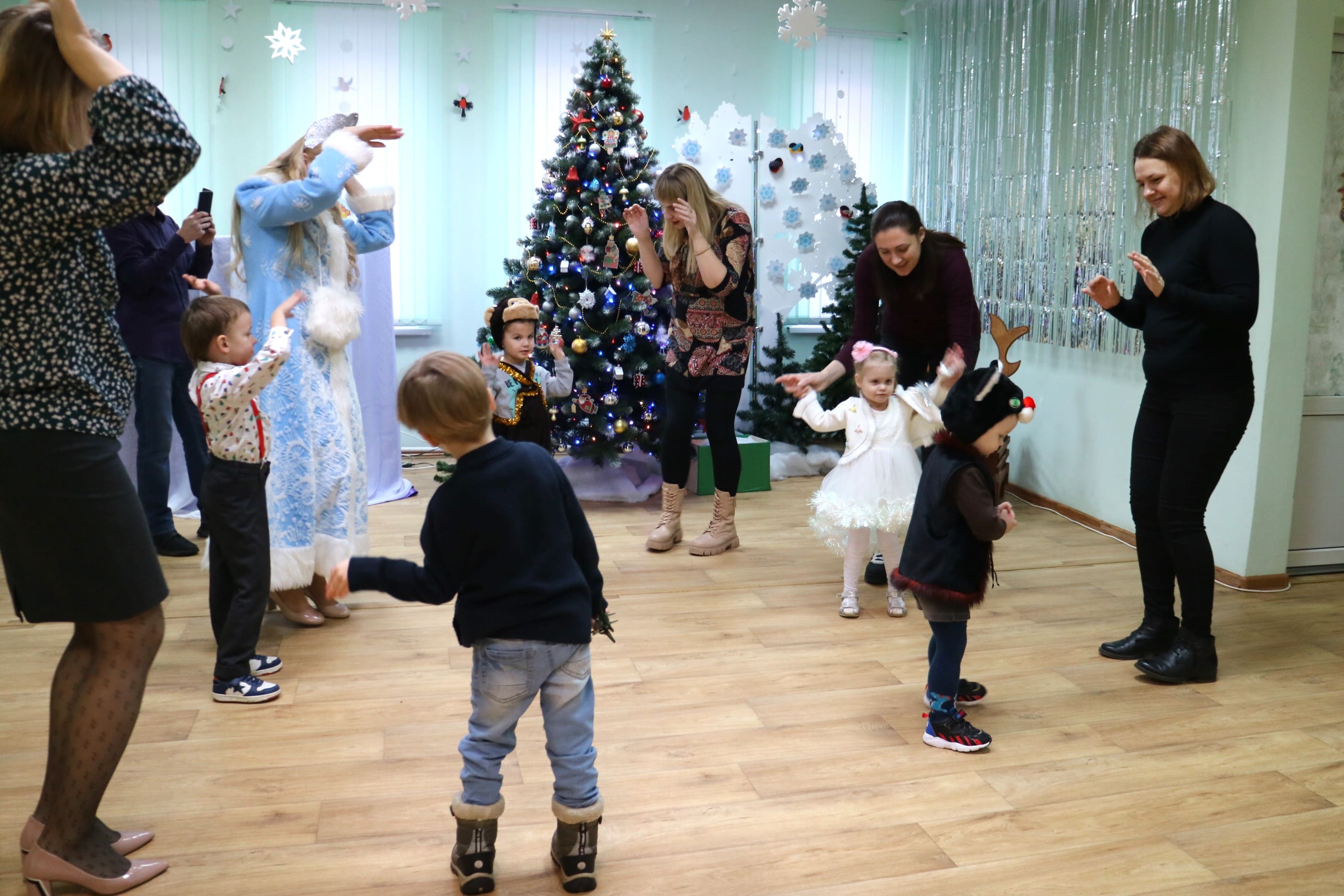 Вместе со Снегурочкой малыши водили хороводы, зажигали огоньки на елочке, играли в снежки, прятались от зимней метели, помогали Дедушке Морозу разложить конфеты. А также ребята поучаствовали в интерактивном кукольном спектакле: помогли Зайчику вернуть новогоднюю елочку и встретить Новый год весело.