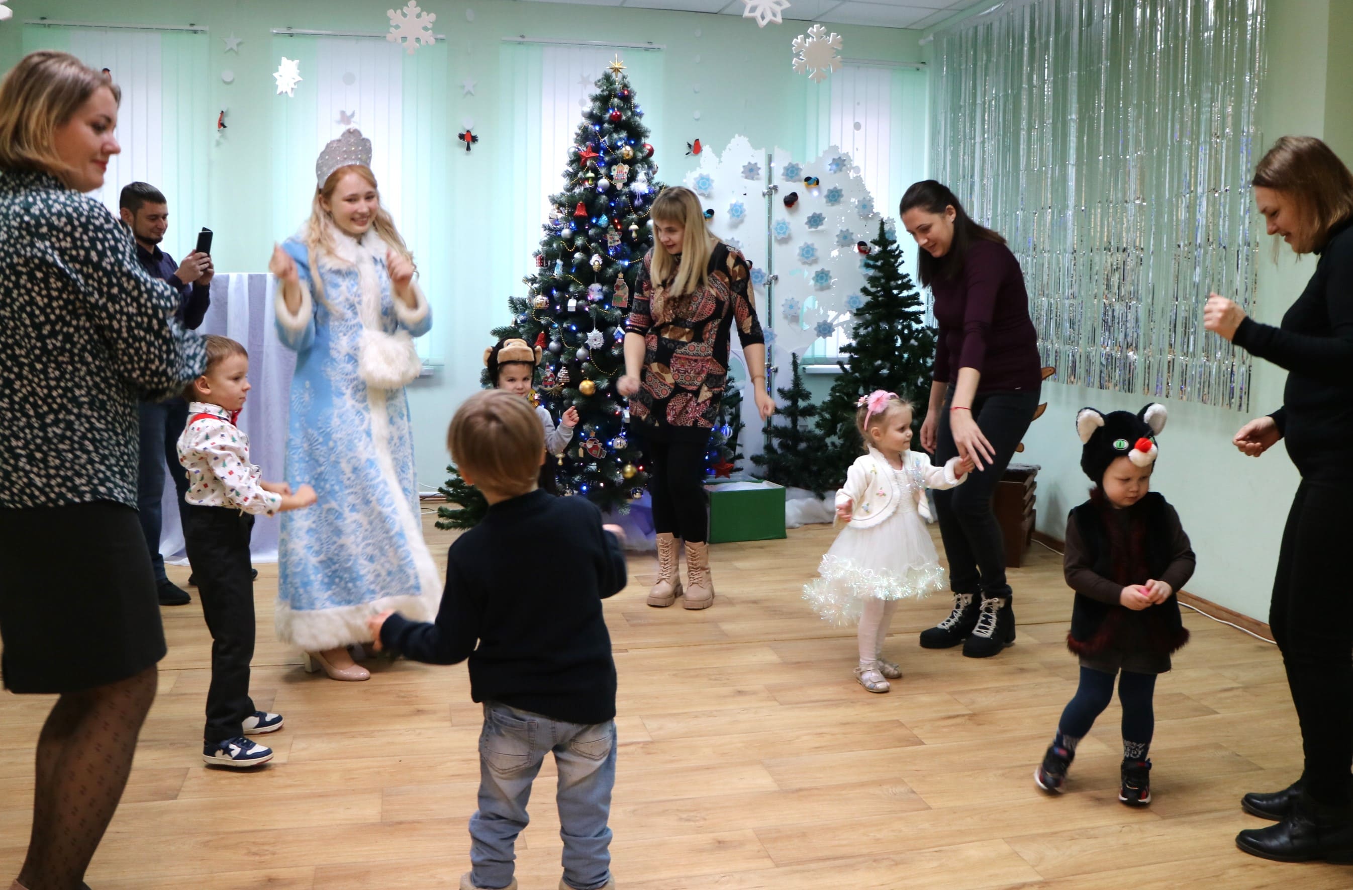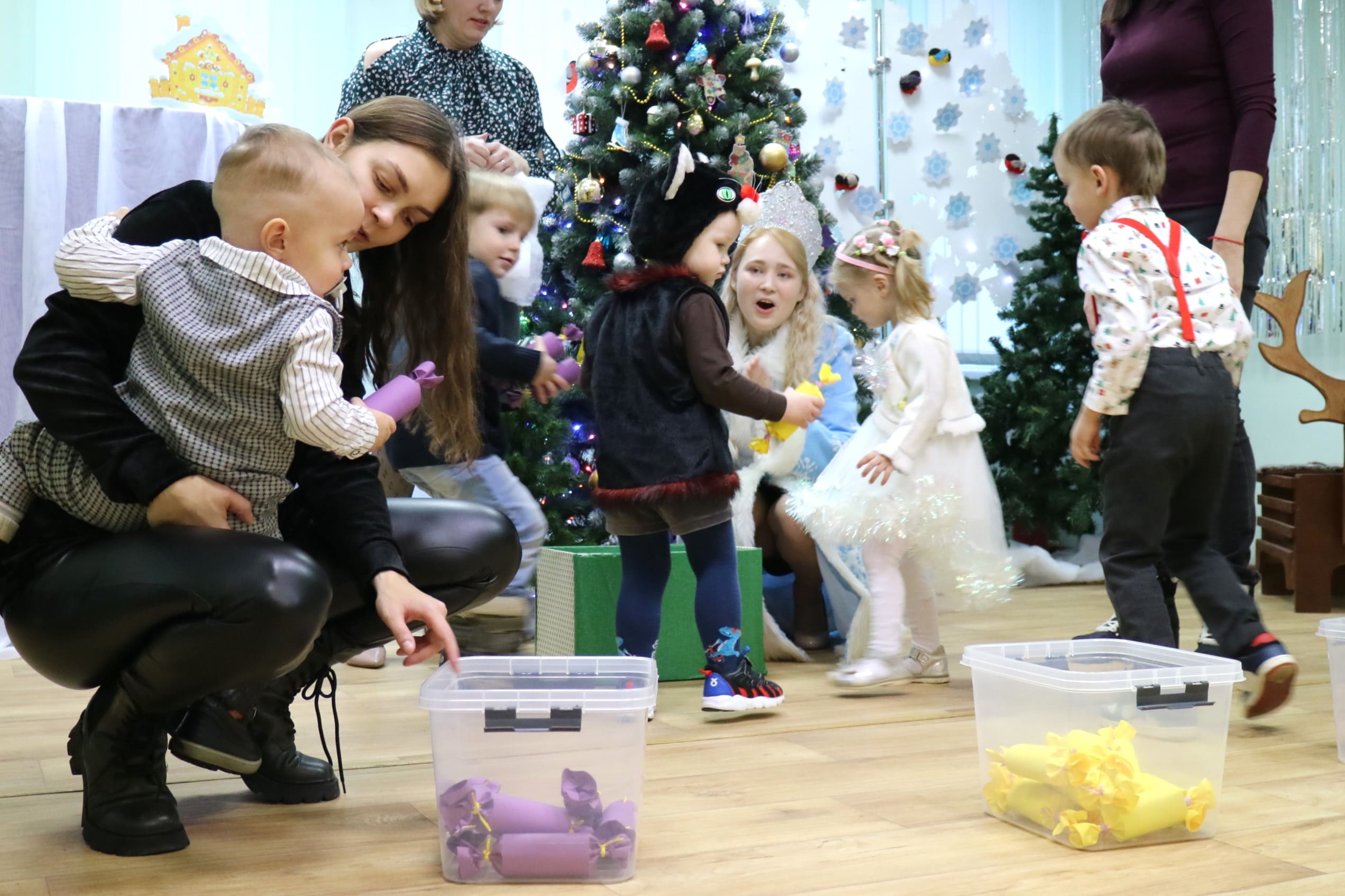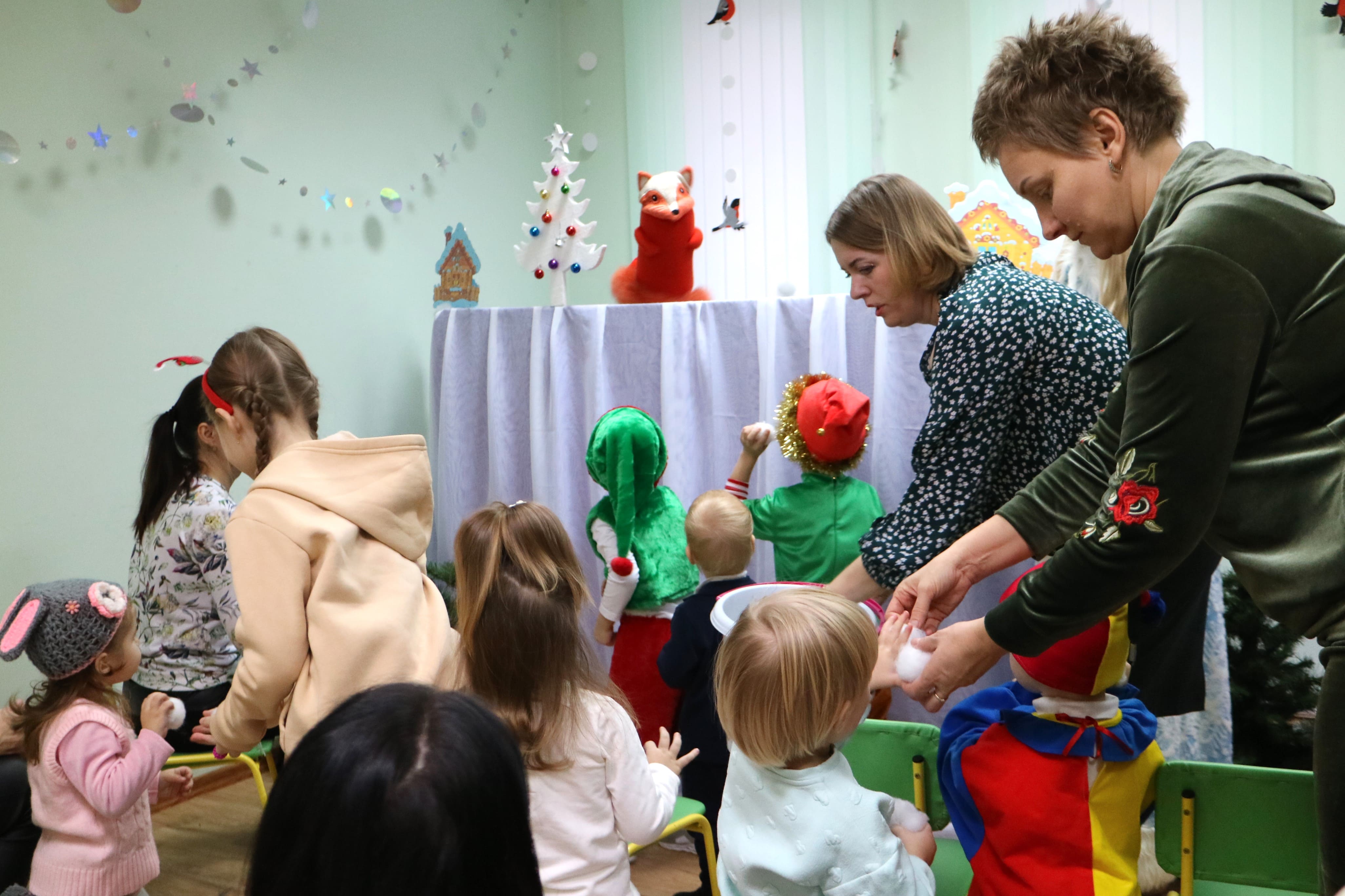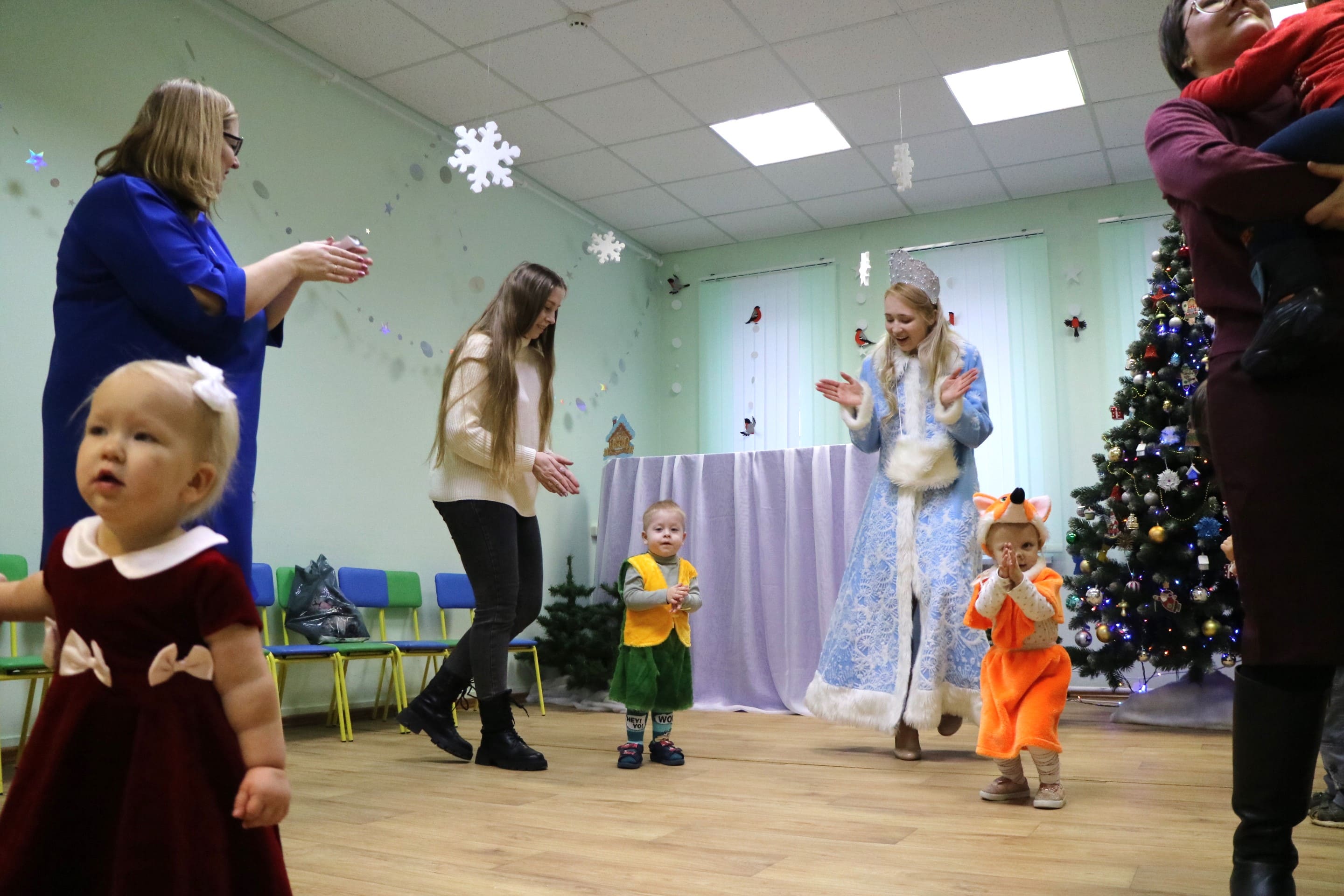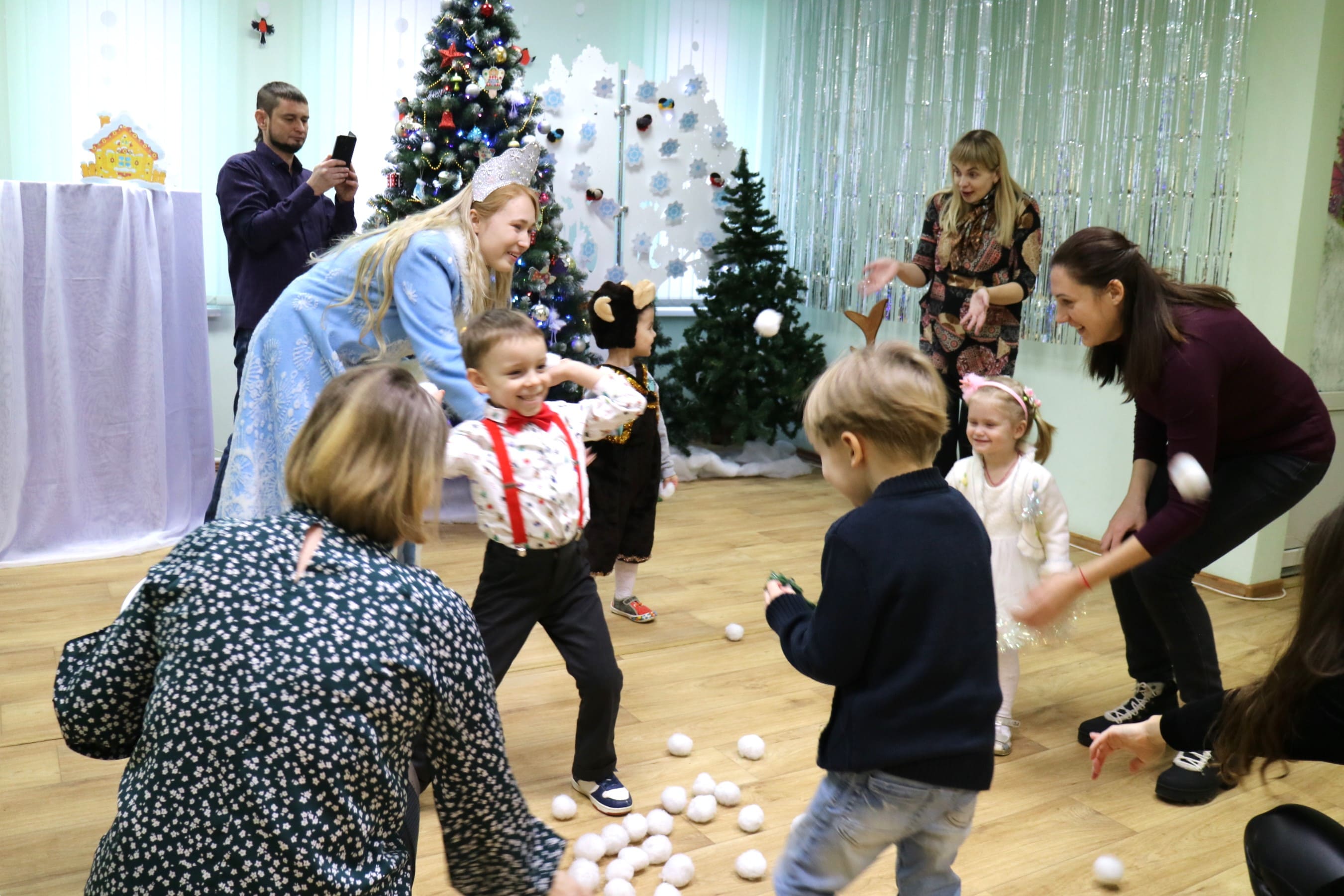 Вместе со Снегурочкой малыши водили хороводы, зажигали огоньки на елочке, играли в снежки, прятались от зимней метели, помогали Дедушке Морозу разложить конфеты. А также ребята поучаствовали в интерактивном кукольном спектакле: помогли Зайчику вернуть новогоднюю елочку и встретить Новый год весело.