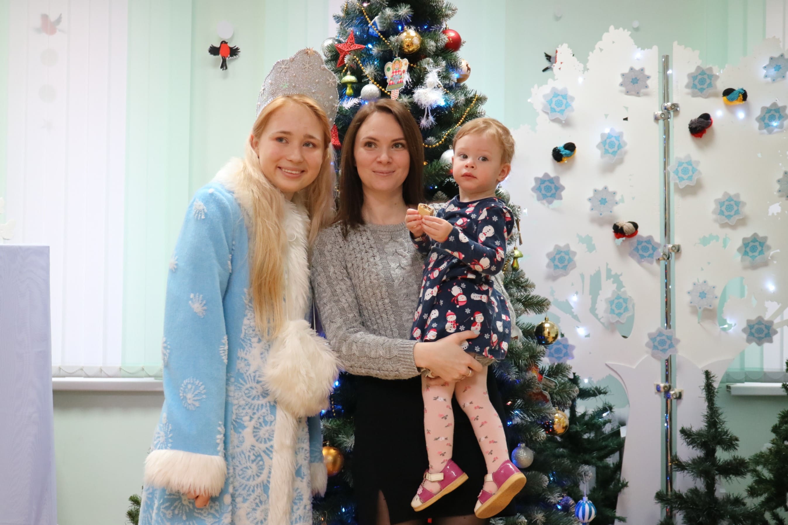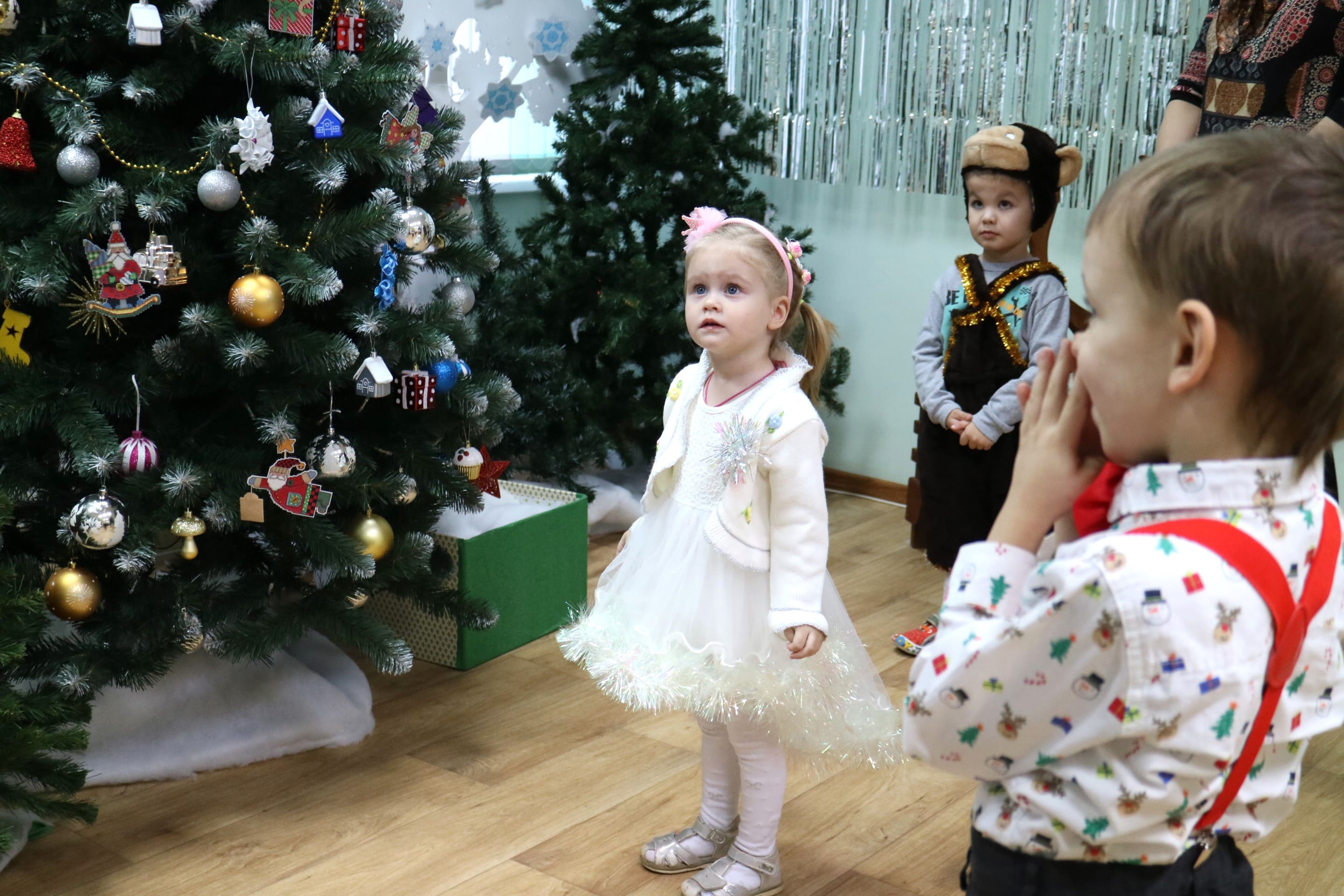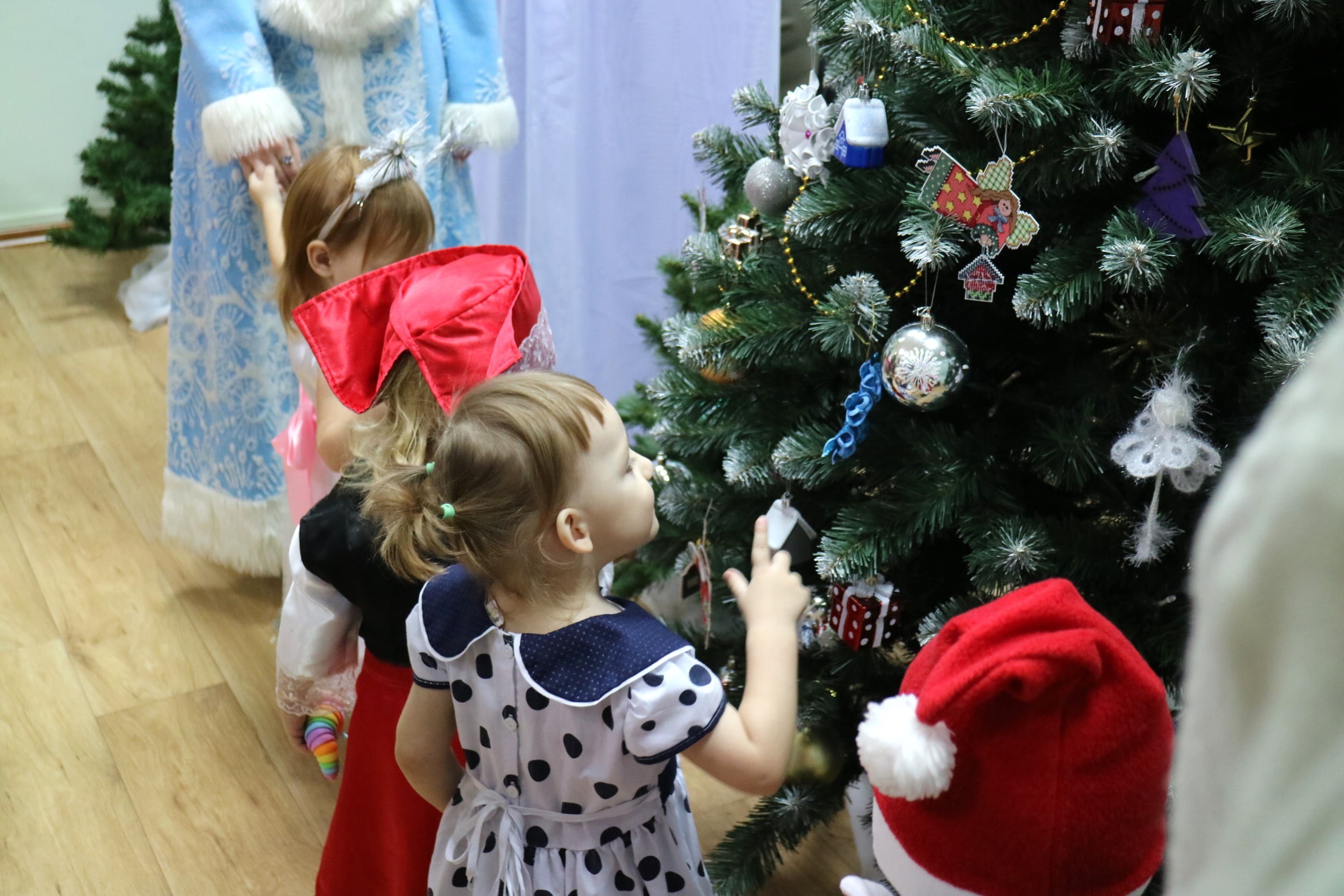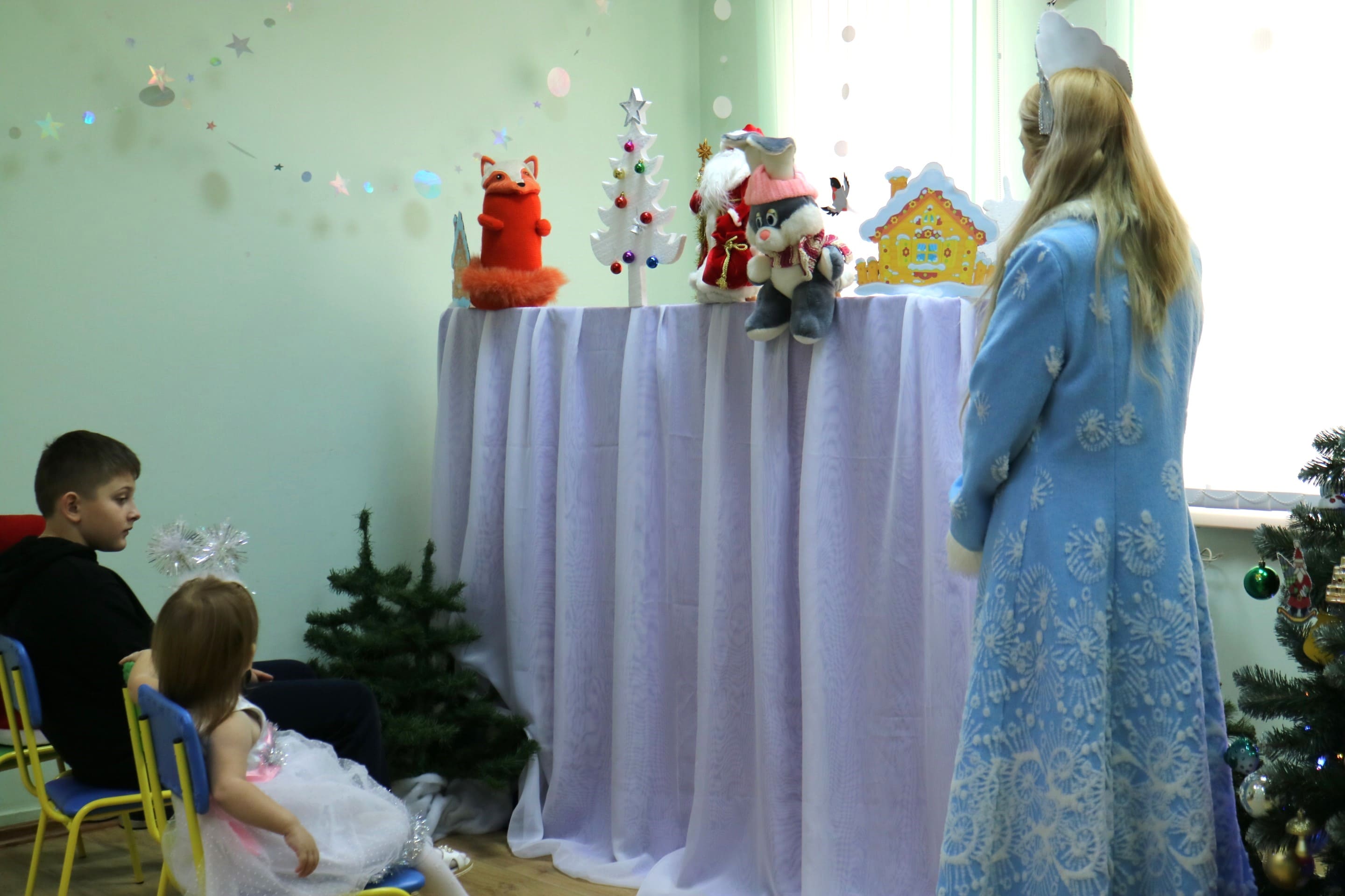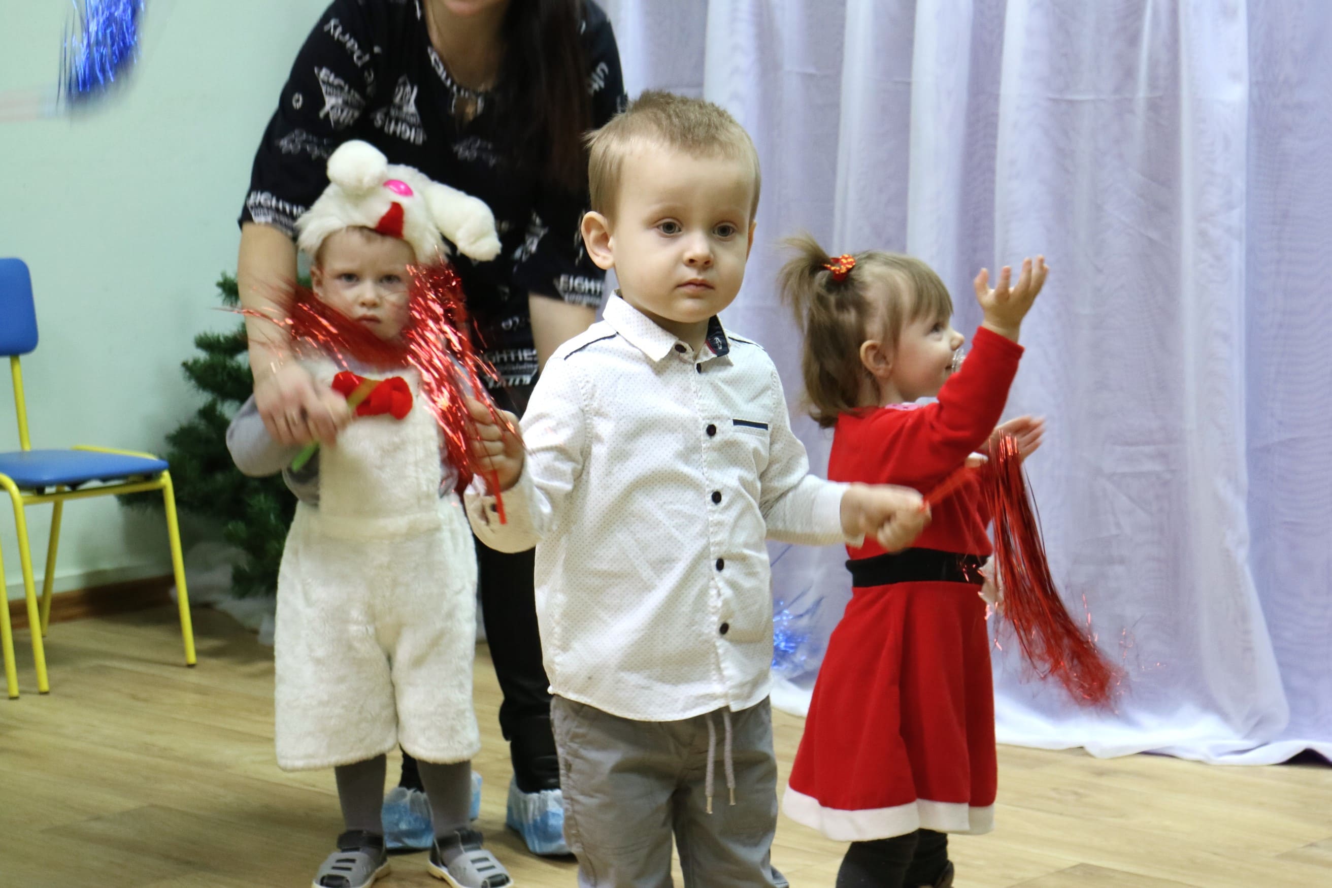 Вместе со Снегурочкой малыши водили хороводы, зажигали огоньки на елочке, играли в снежки, прятались от зимней метели, помогали Дедушке Морозу разложить конфеты. А также ребята поучаствовали в интерактивном кукольном спектакле: помогли Зайчику вернуть новогоднюю елочку и встретить Новый год весело.
