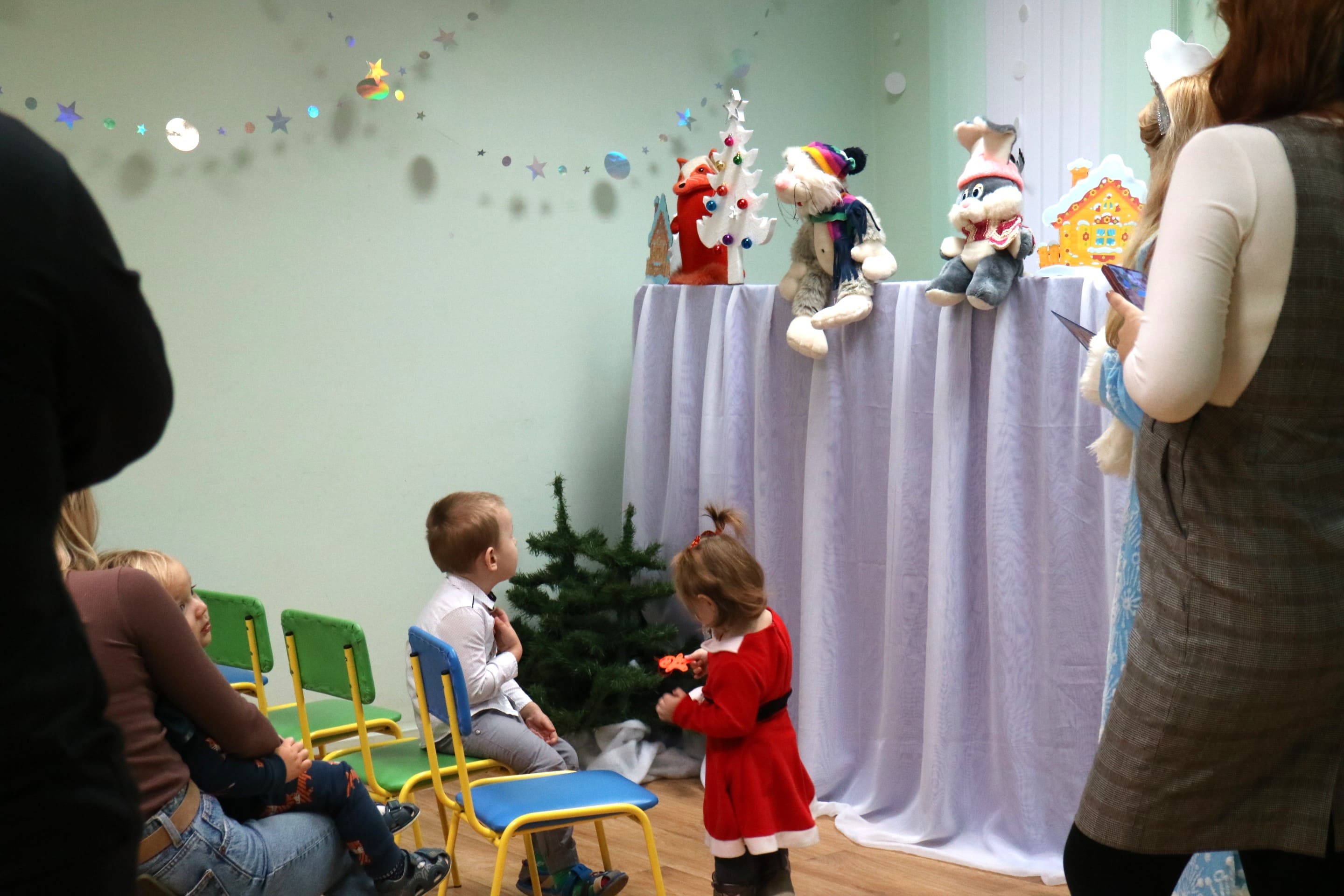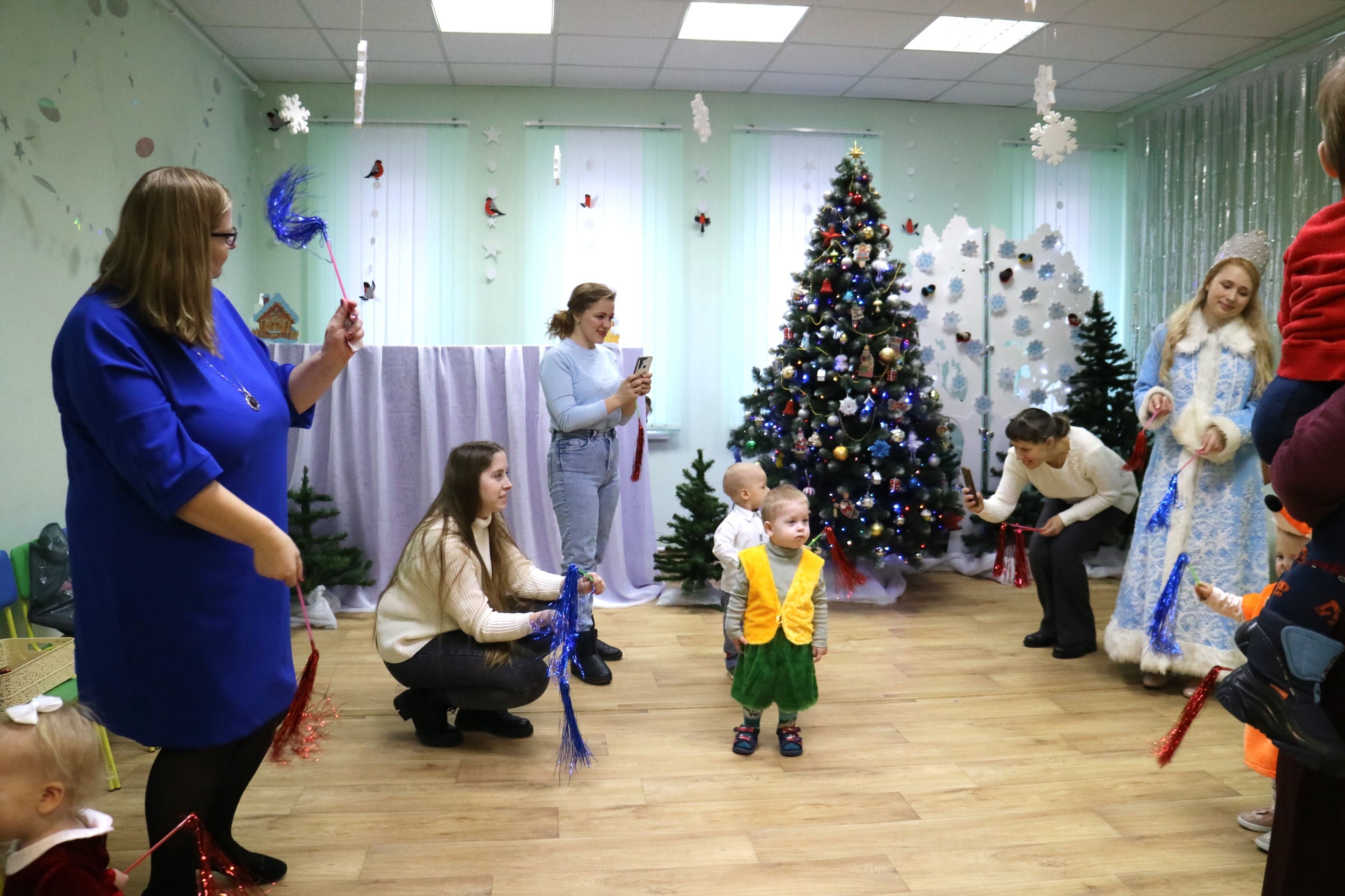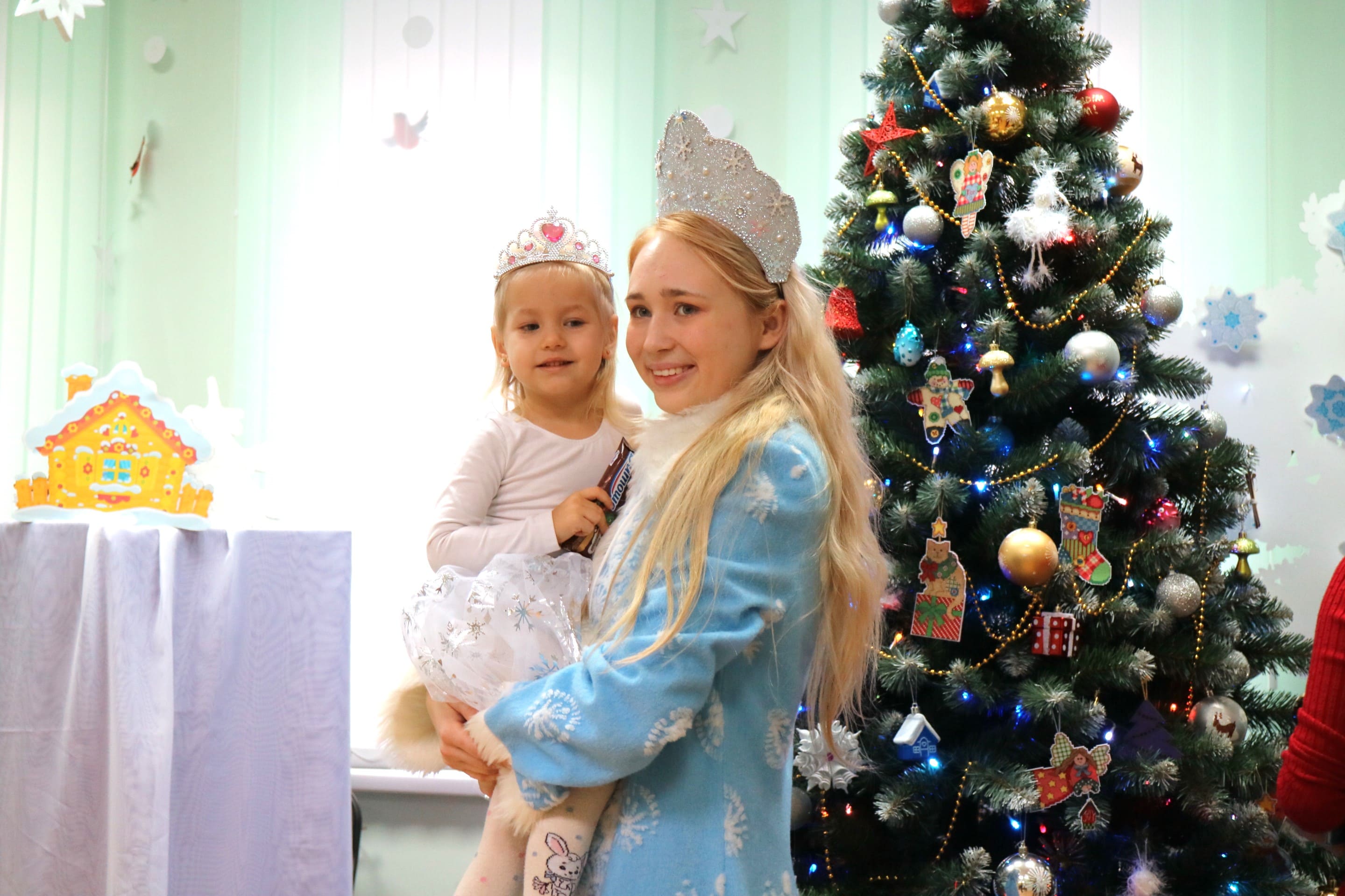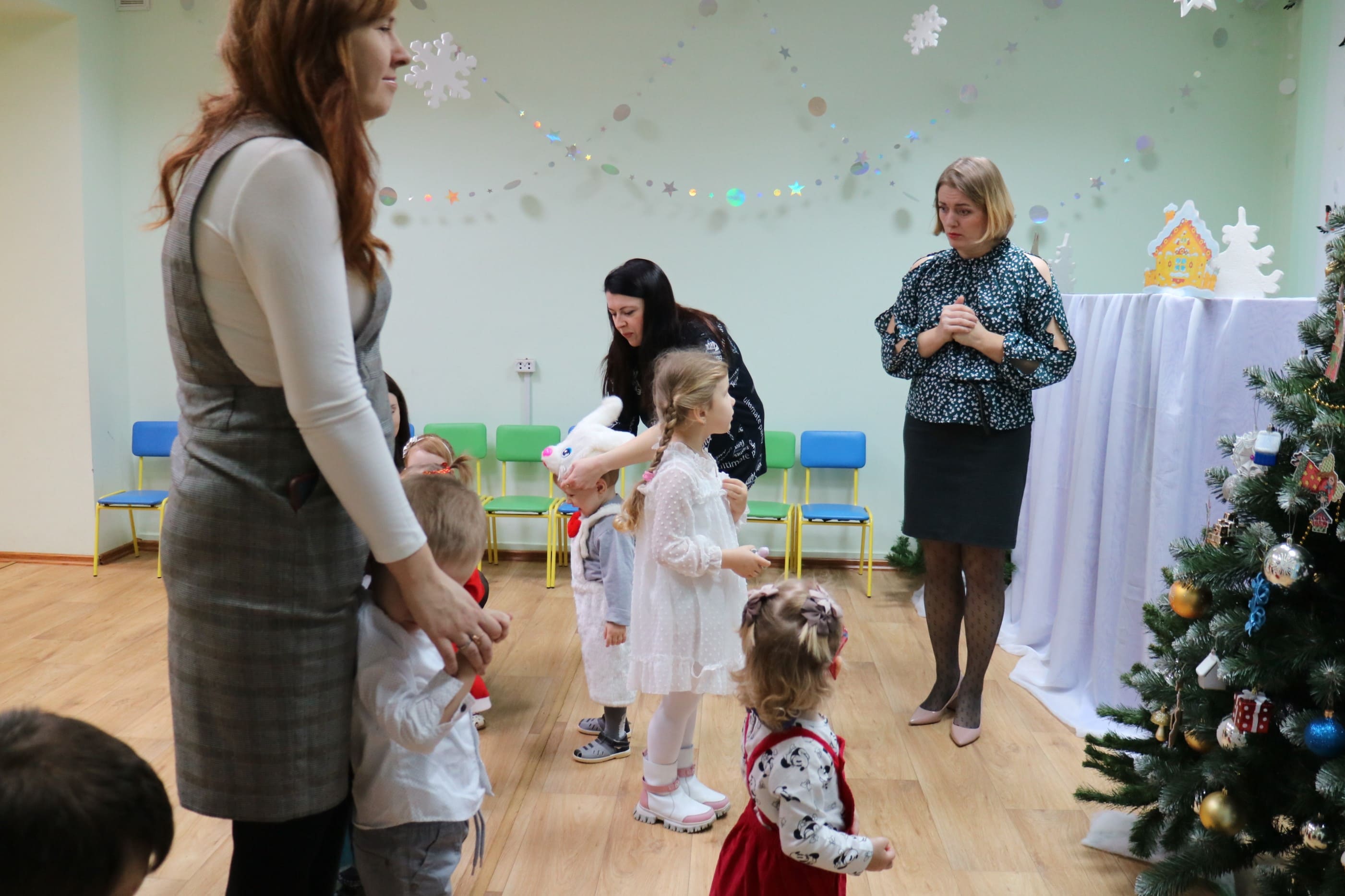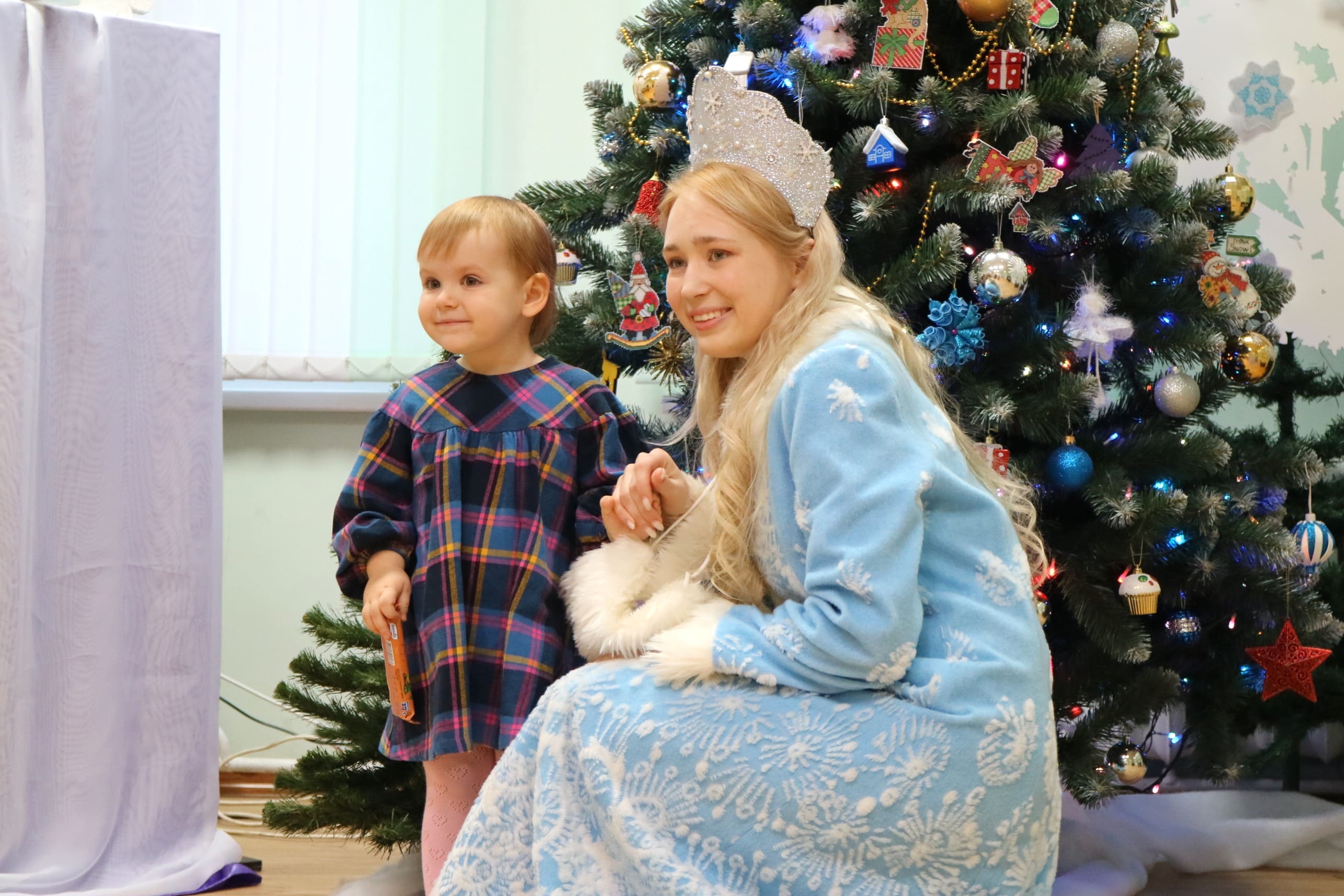 Вместе со Снегурочкой малыши водили хороводы, зажигали огоньки на елочке, играли в снежки, прятались от зимней метели, помогали Дедушке Морозу разложить конфеты. А также ребята поучаствовали в интерактивном кукольном спектакле: помогли Зайчику вернуть новогоднюю елочку и встретить Новый год весело.