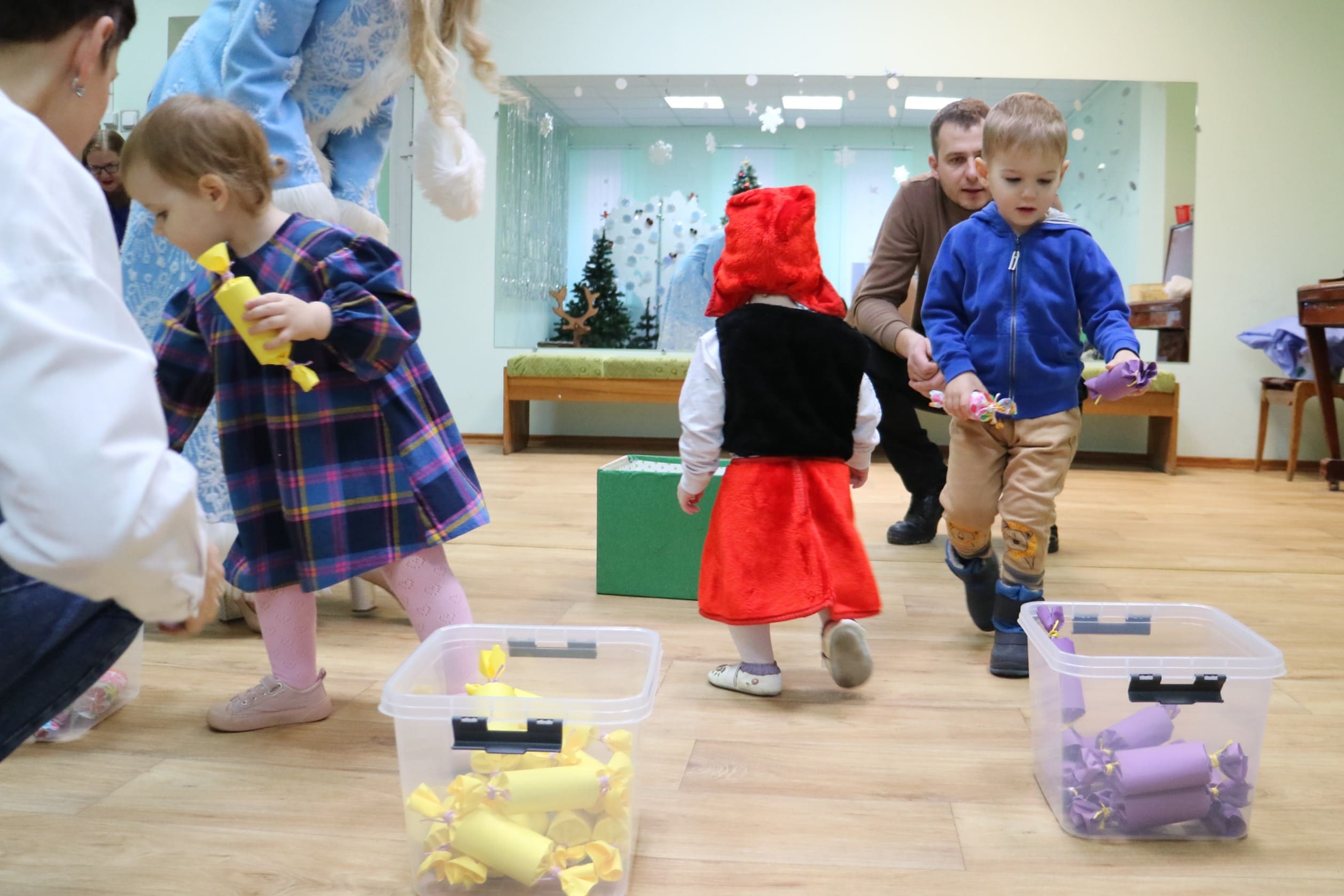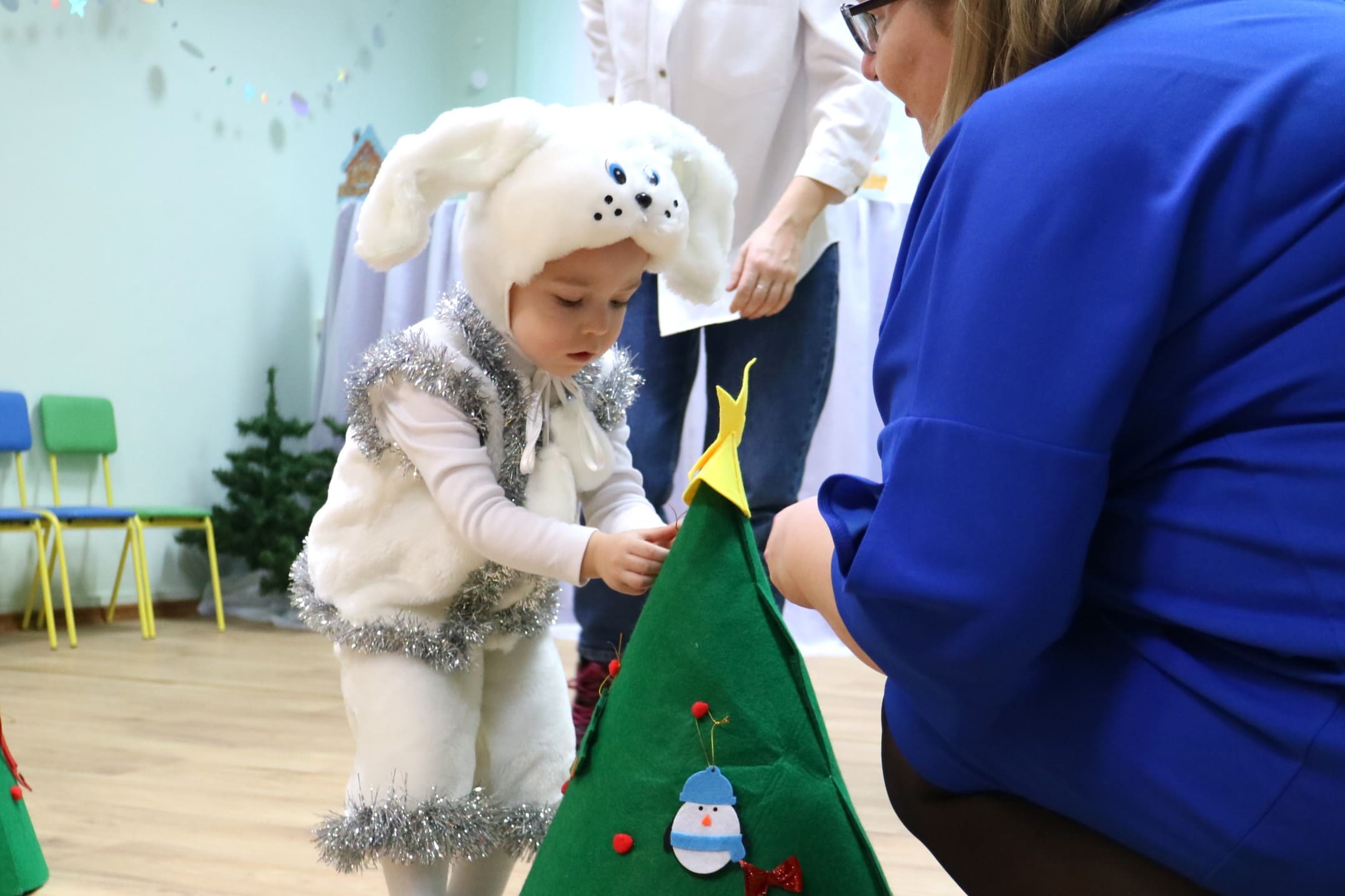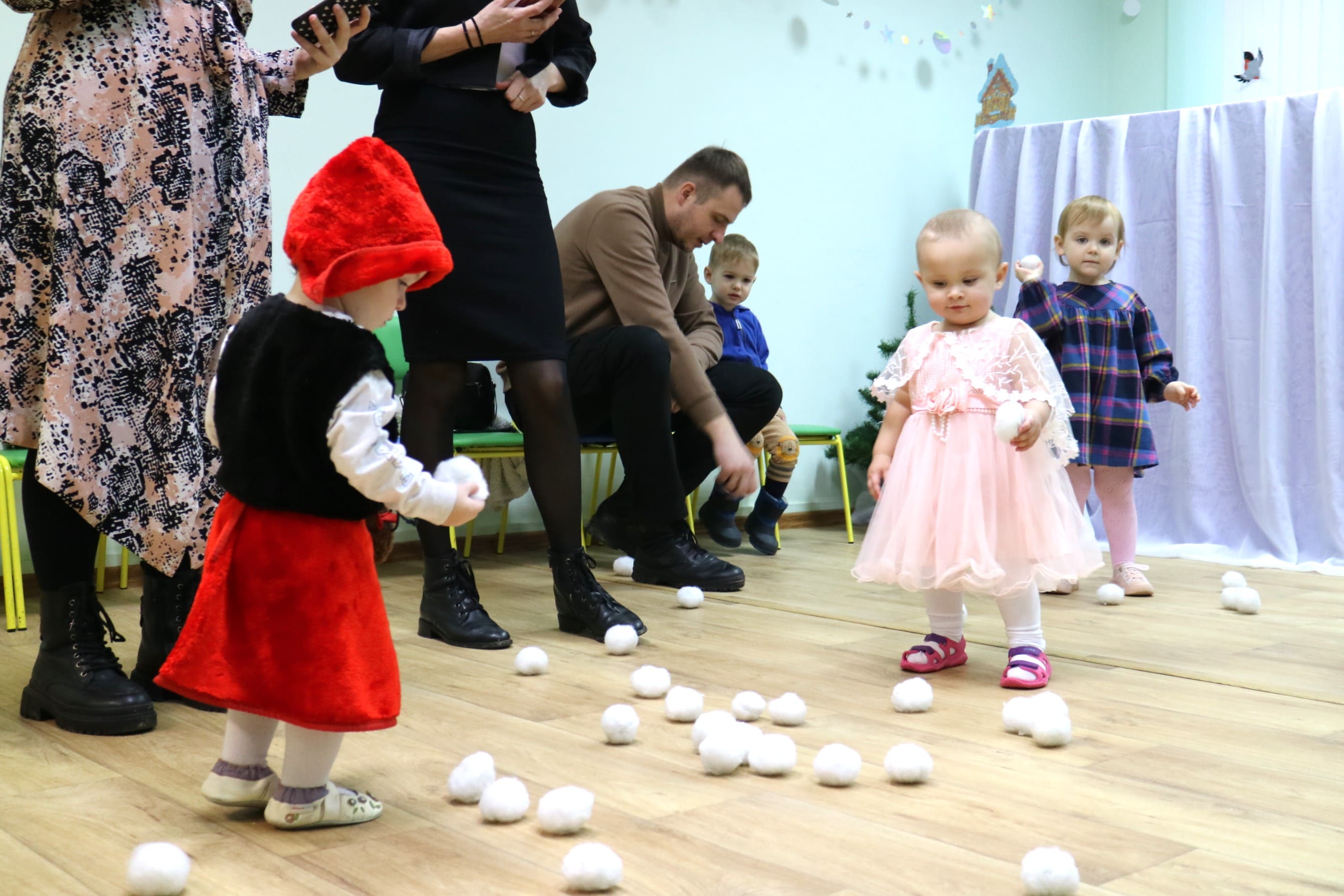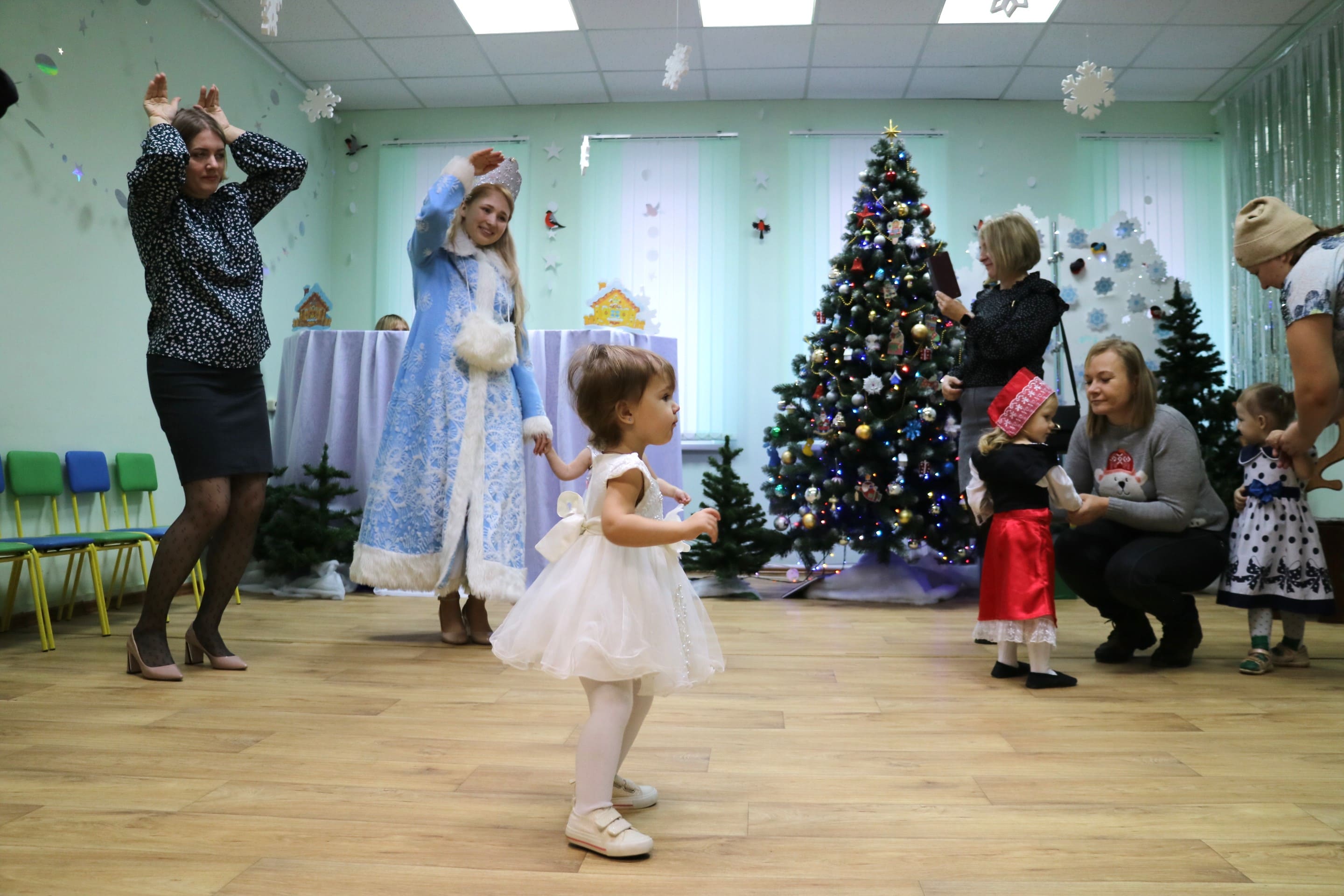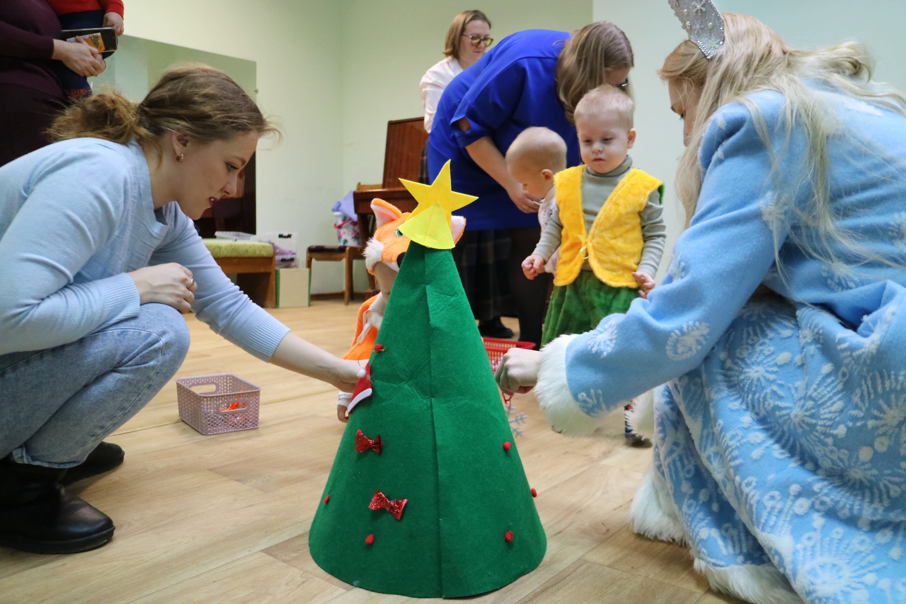 Вместе со Снегурочкой малыши водили хороводы, зажигали огоньки на елочке, играли в снежки, прятались от зимней метели, помогали Дедушке Морозу разложить конфеты. А также ребята поучаствовали в интерактивном кукольном спектакле: помогли Зайчику вернуть новогоднюю елочку и встретить Новый год весело.