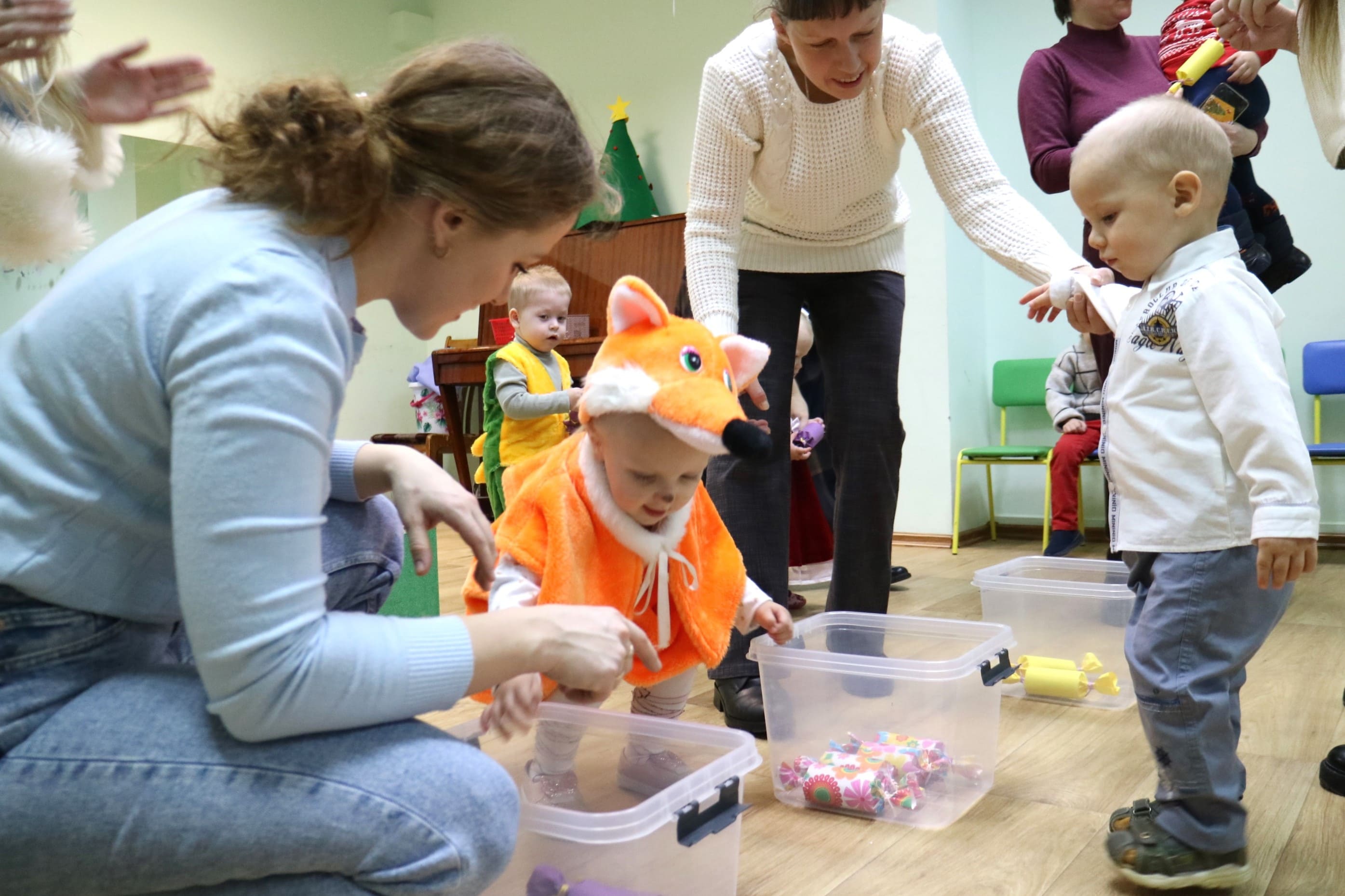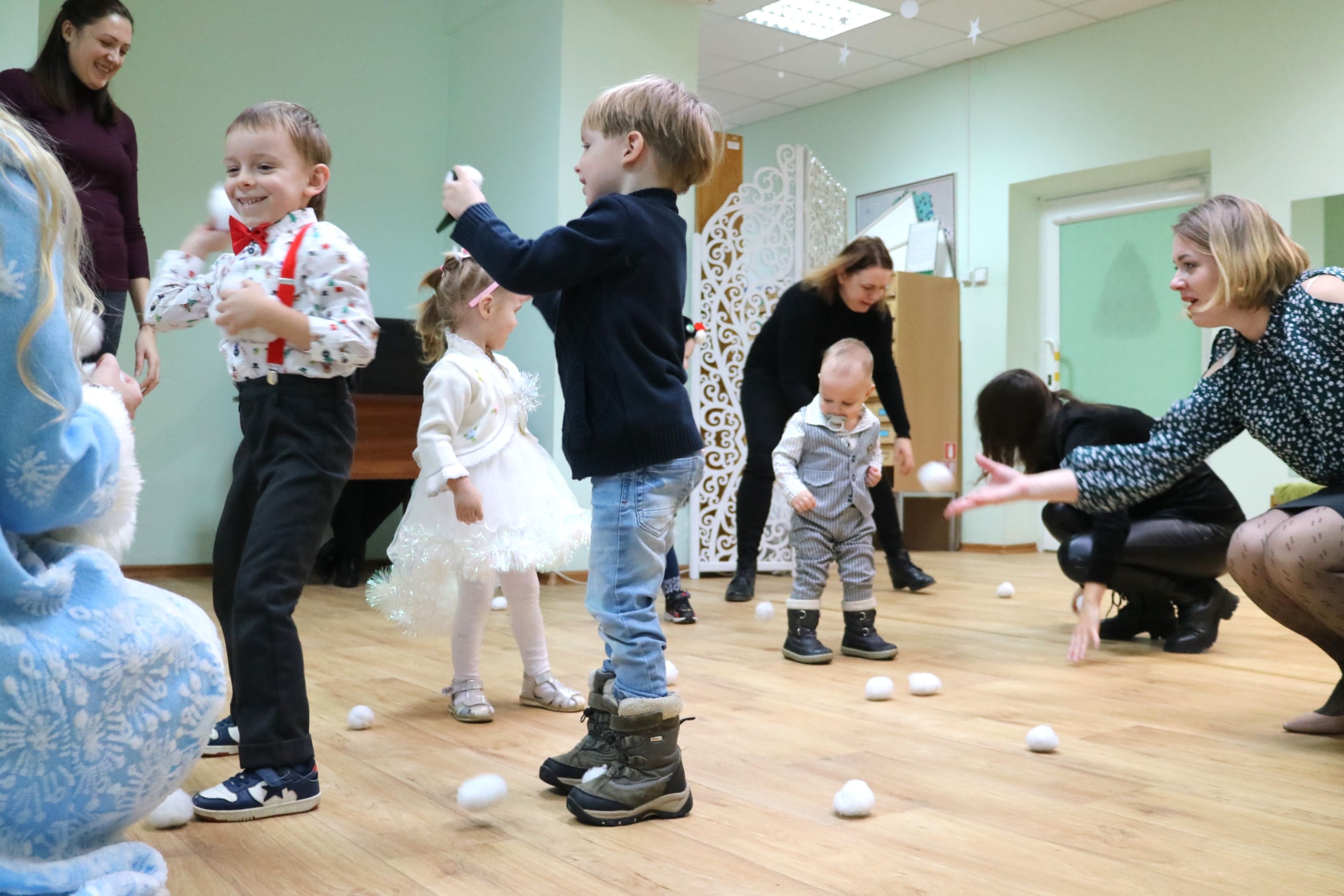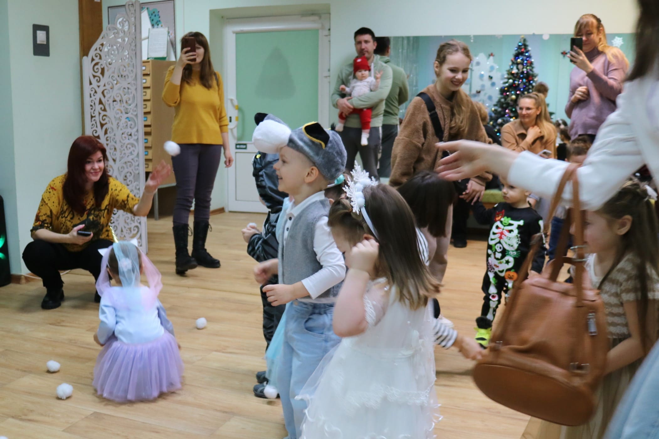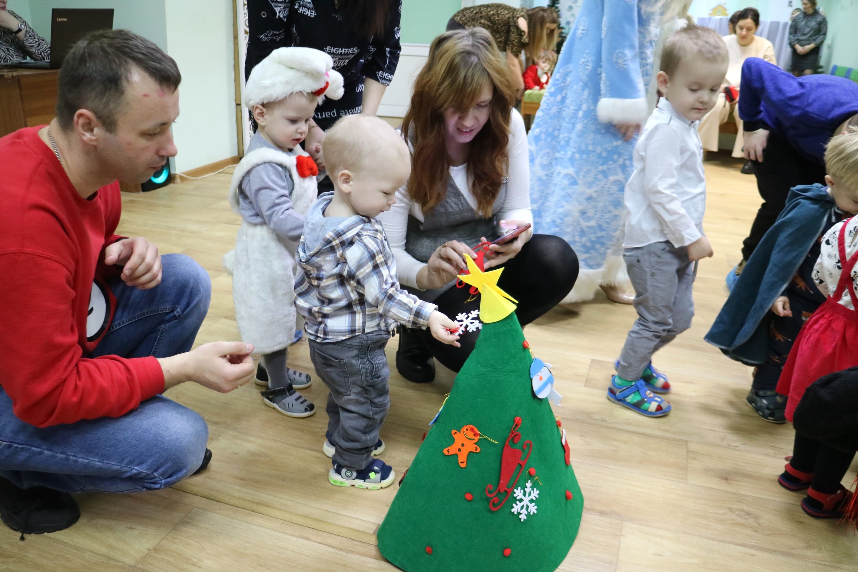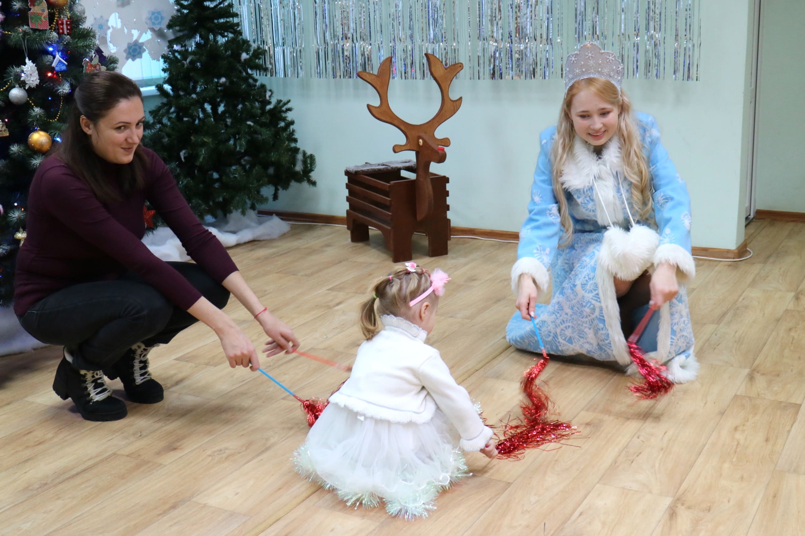 Вместе со Снегурочкой малыши водили хороводы, зажигали огоньки на елочке, играли в снежки, прятались от зимней метели, помогали Дедушке Морозу разложить конфеты. А также ребята поучаствовали в интерактивном кукольном спектакле: помогли Зайчику вернуть новогоднюю елочку и встретить Новый год весело.