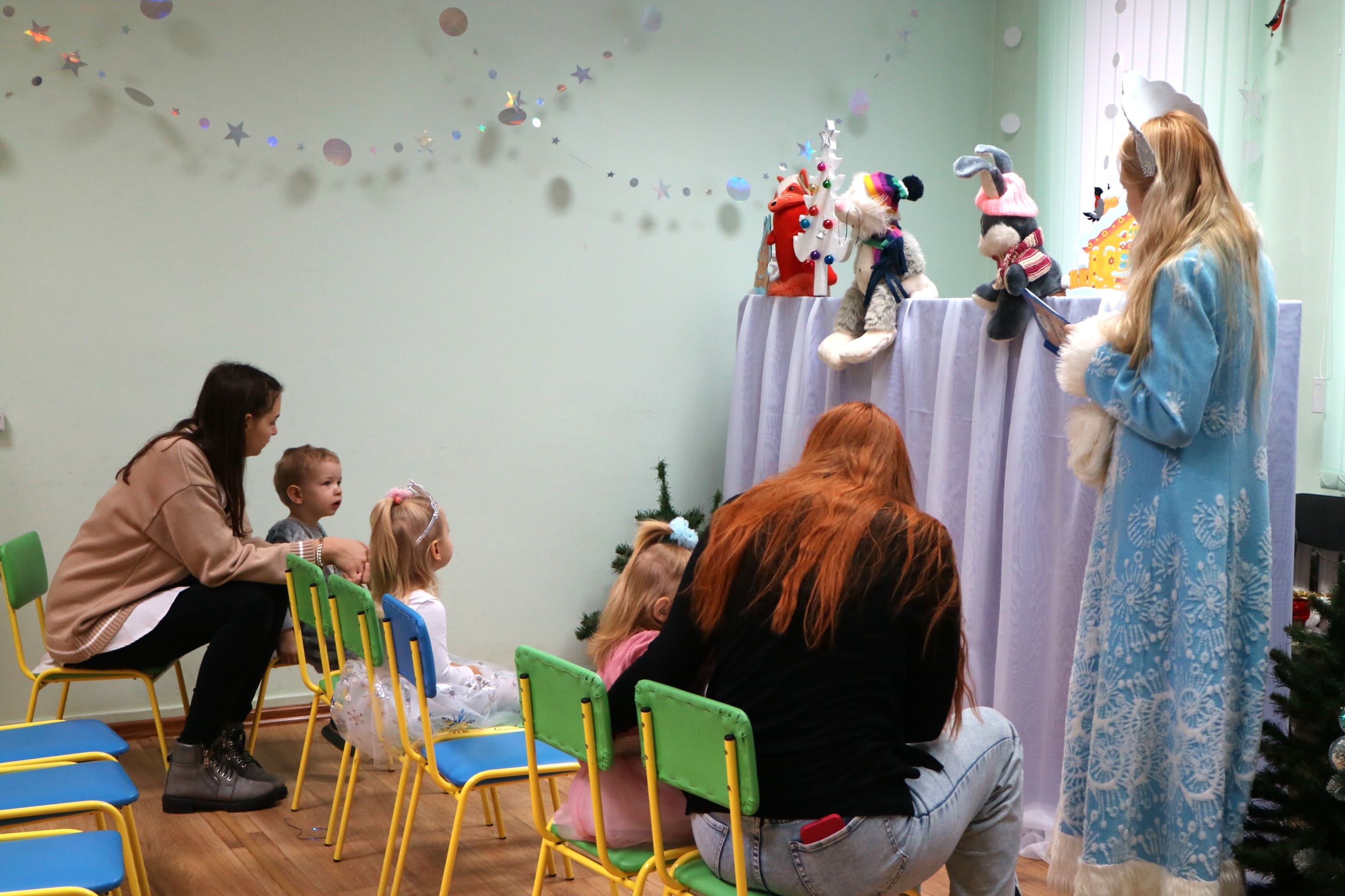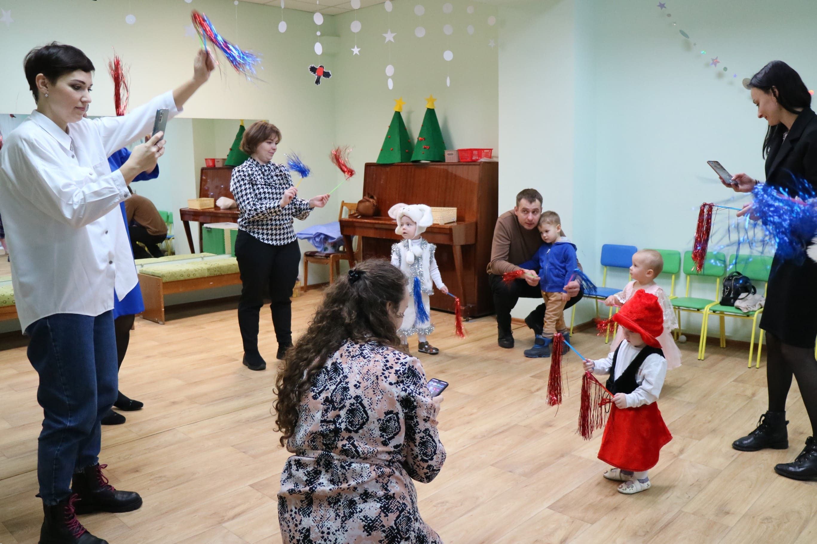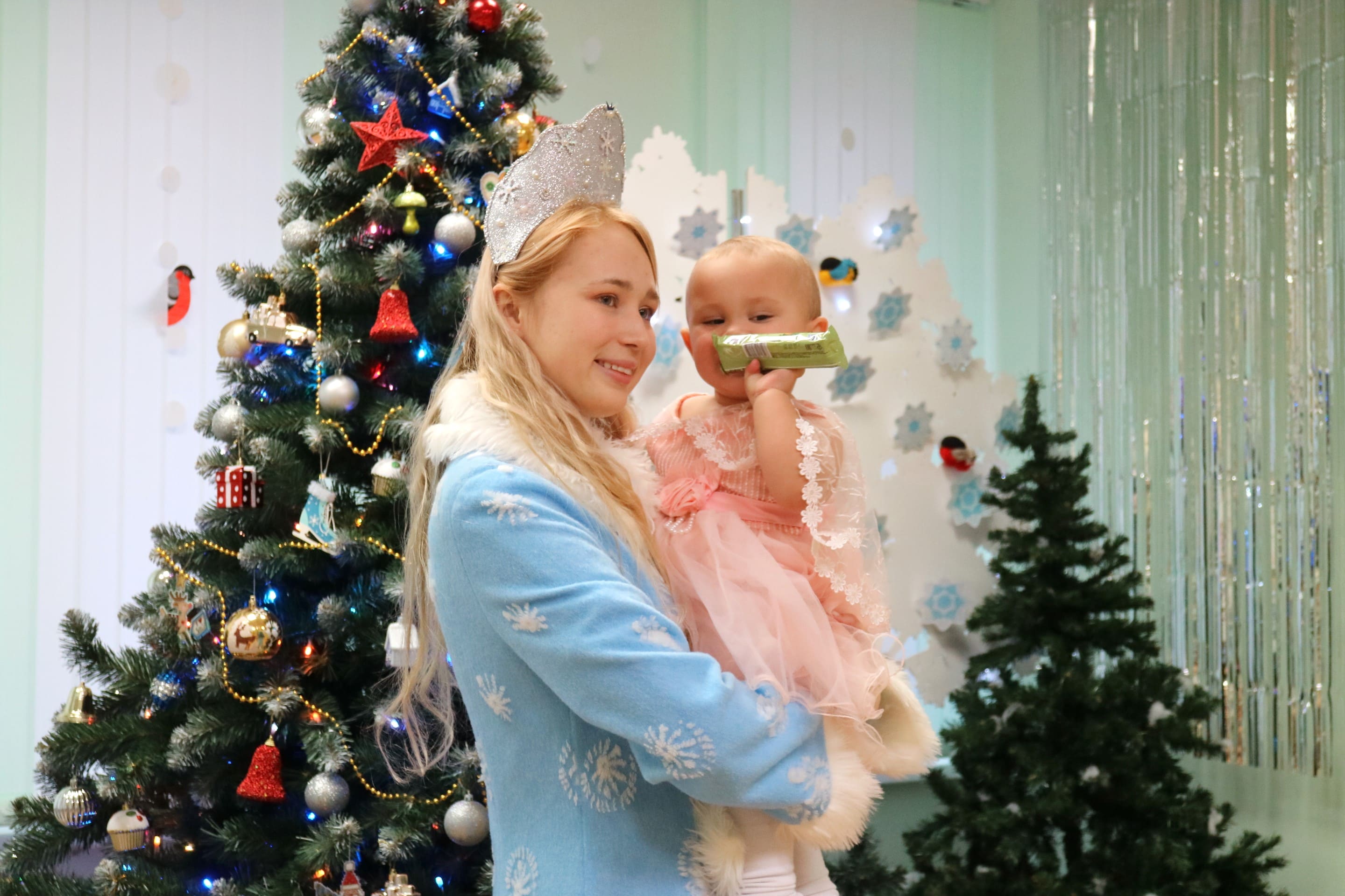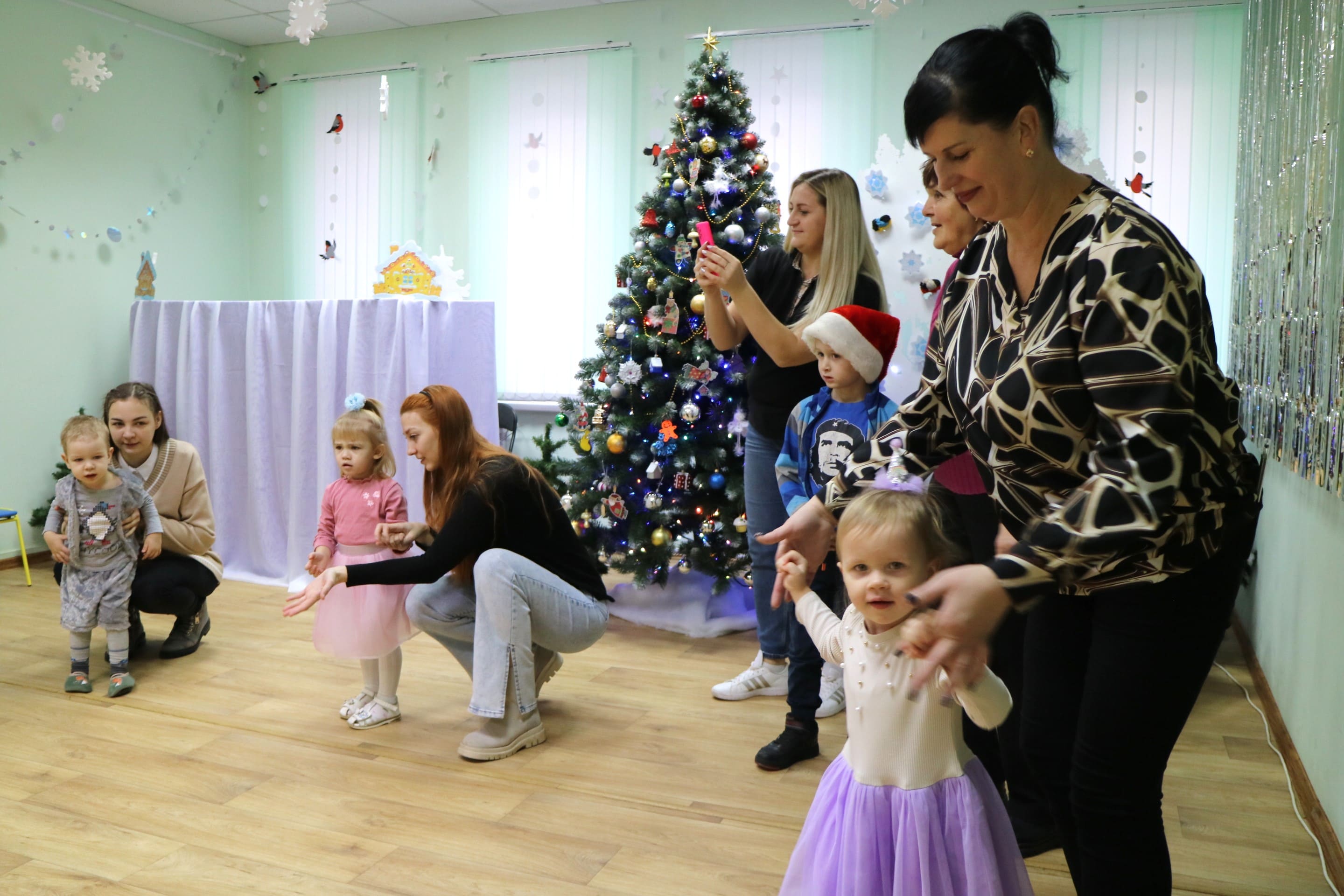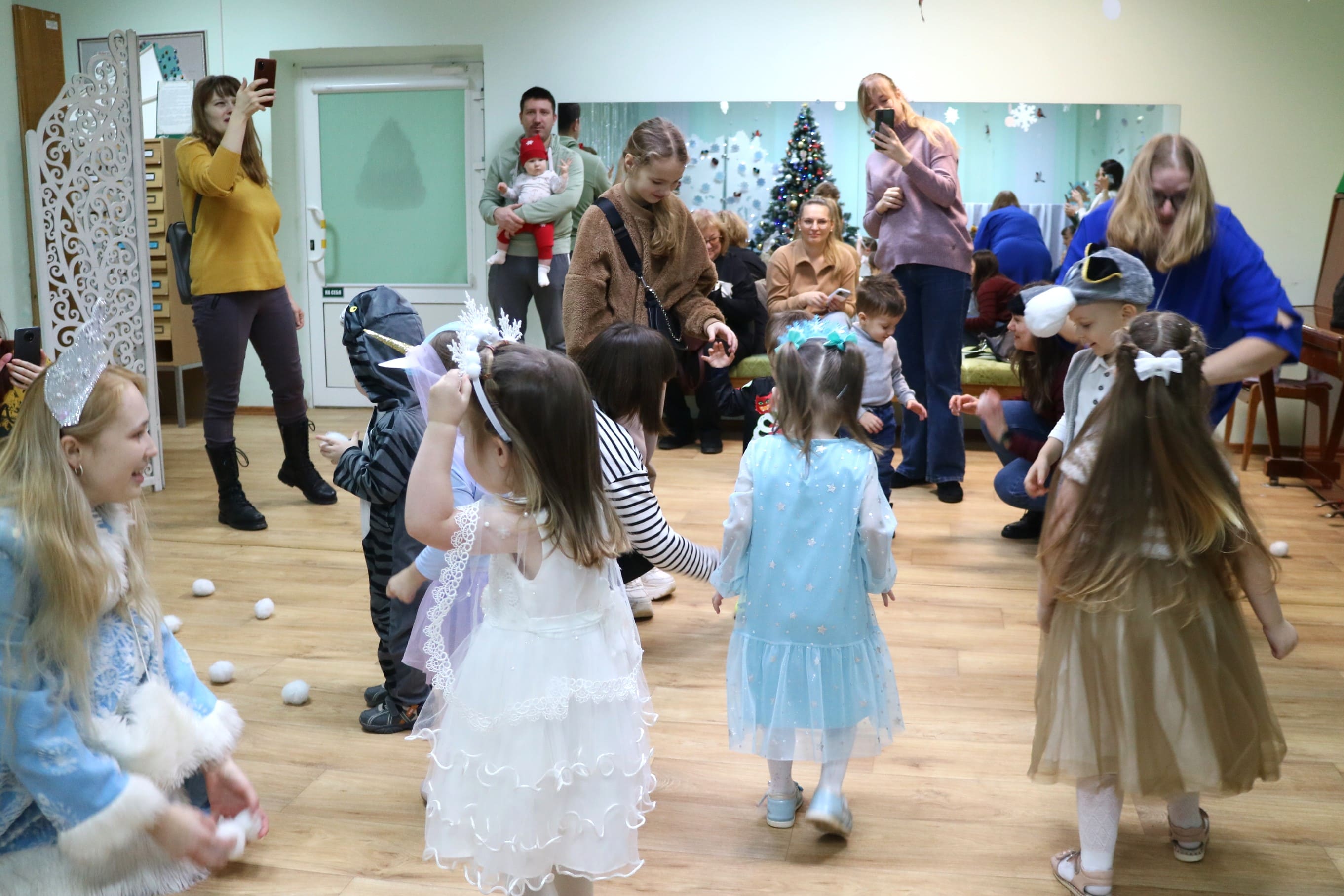 Вместе со Снегурочкой малыши водили хороводы, зажигали огоньки на елочке, играли в снежки, прятались от зимней метели, помогали Дедушке Морозу разложить конфеты. А также ребята поучаствовали в интерактивном кукольном спектакле: помогли Зайчику вернуть новогоднюю елочку и встретить Новый год весело.
