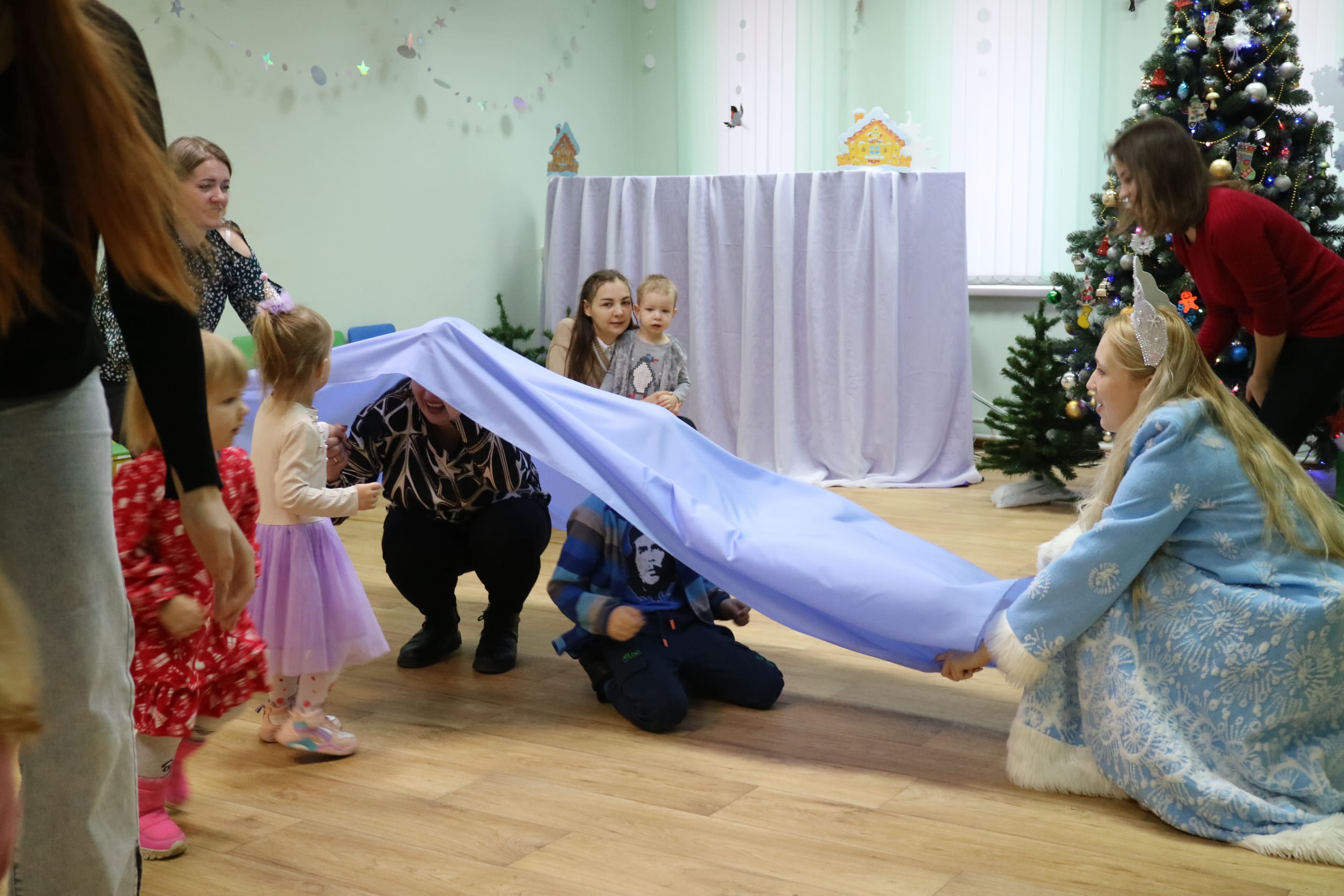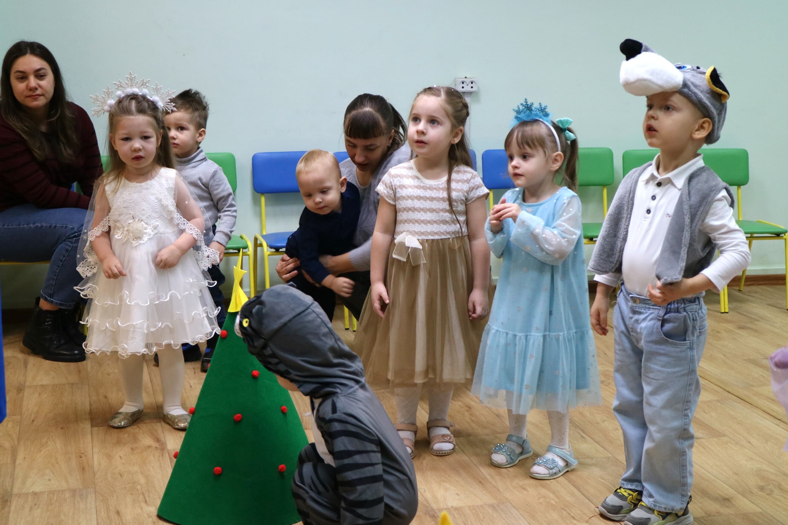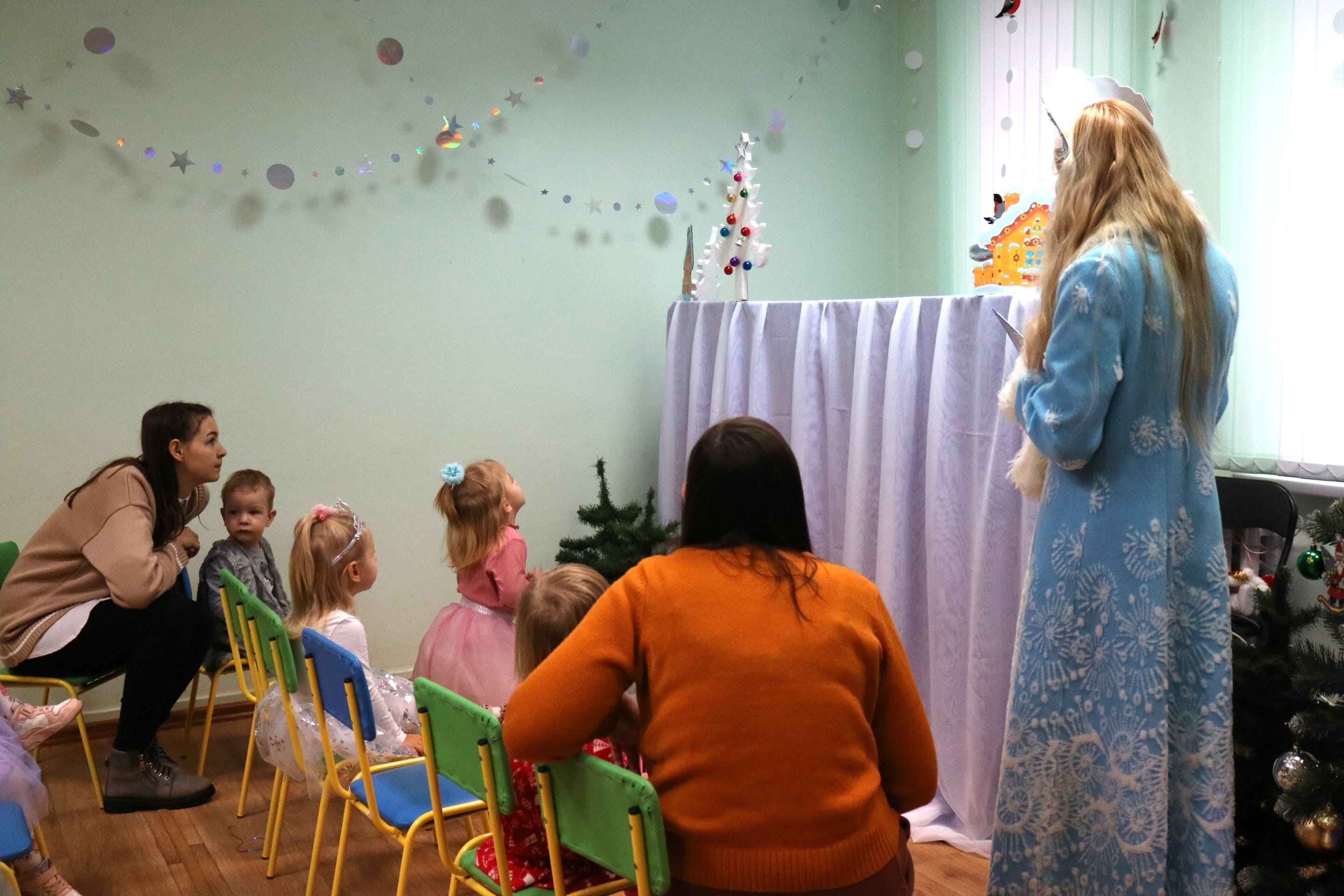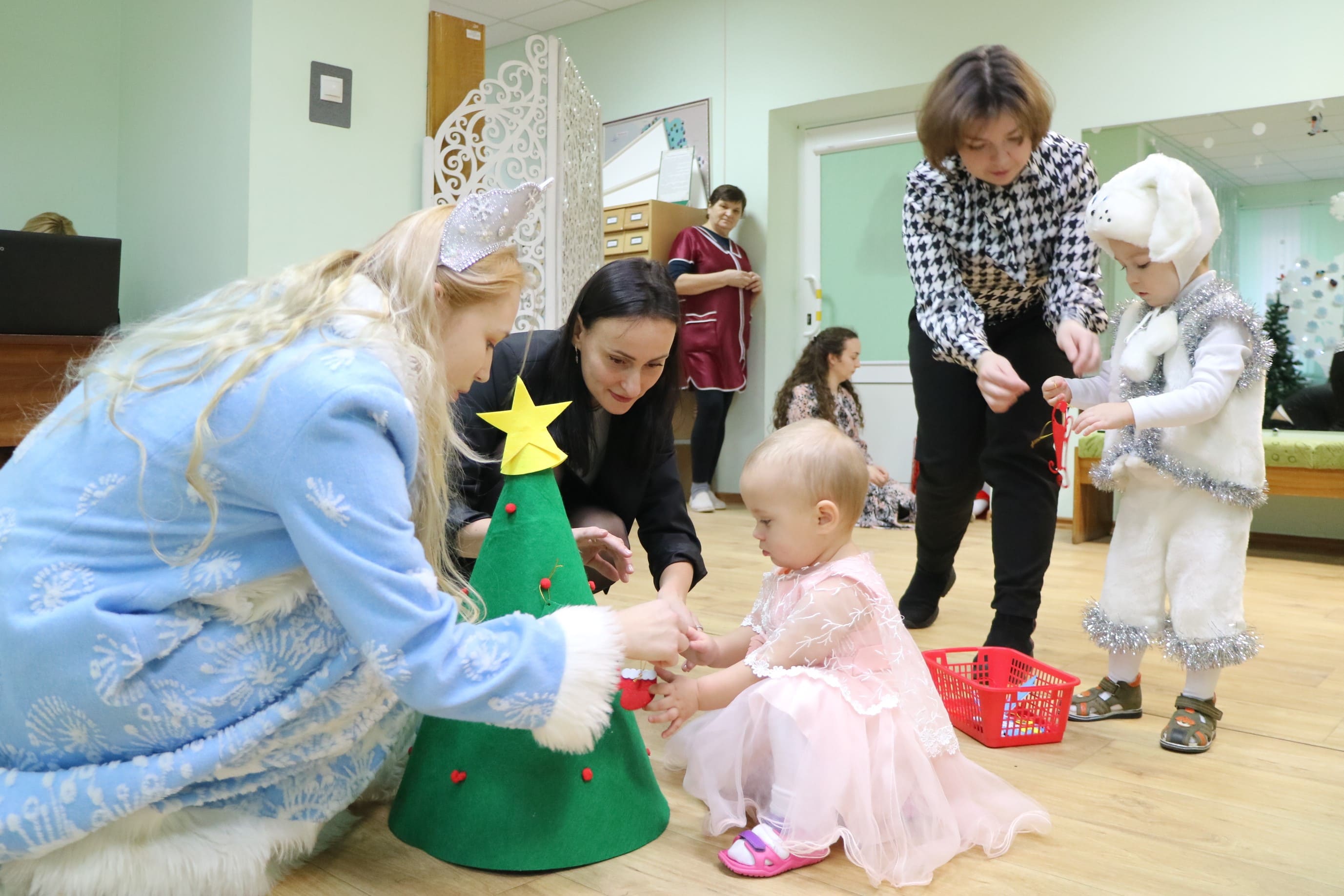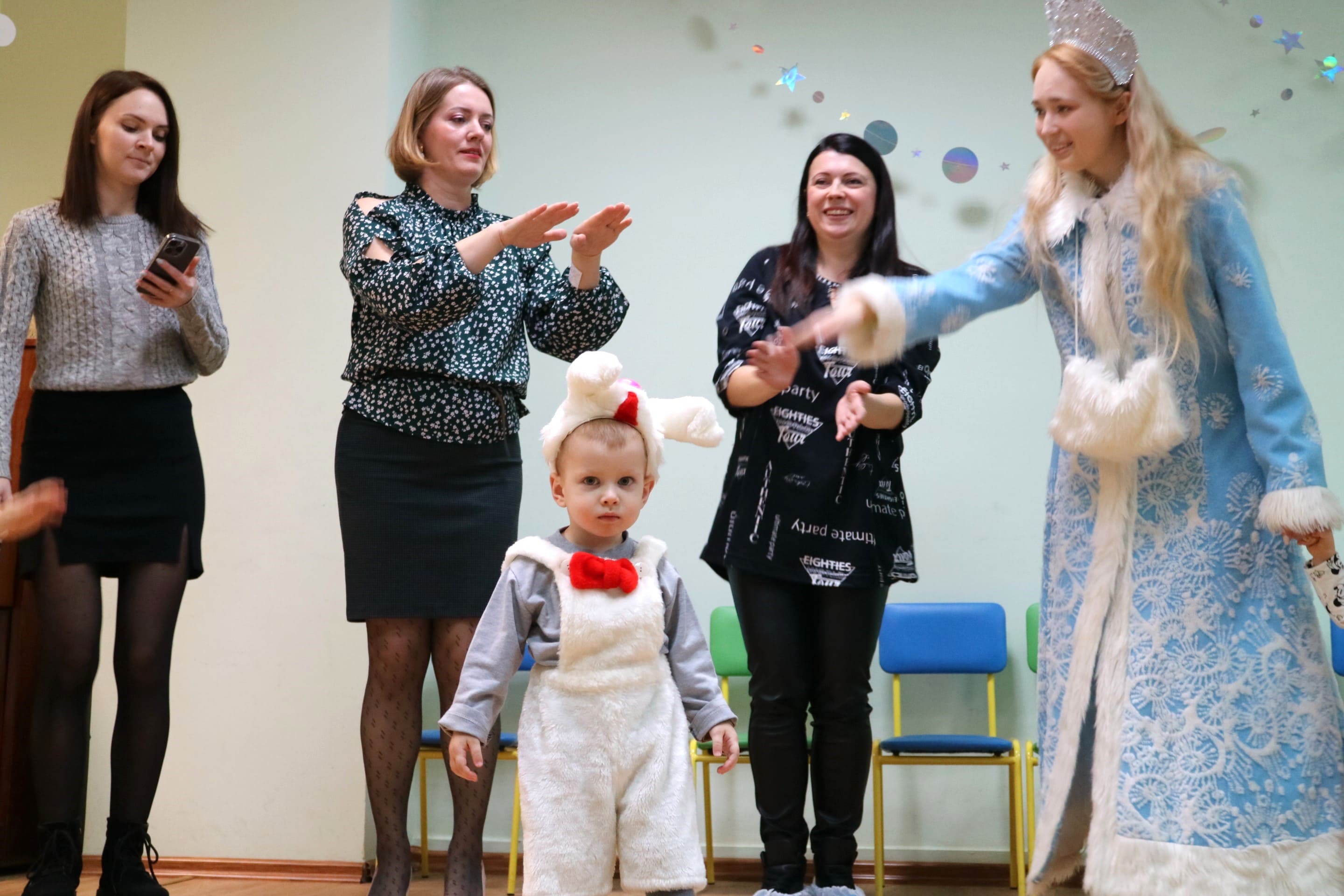 Вместе со Снегурочкой малыши водили хороводы, зажигали огоньки на елочке, играли в снежки, прятались от зимней метели, помогали Дедушке Морозу разложить конфеты. А также ребята поучаствовали в интерактивном кукольном спектакле: помогли Зайчику вернуть новогоднюю елочку и встретить Новый год весело.