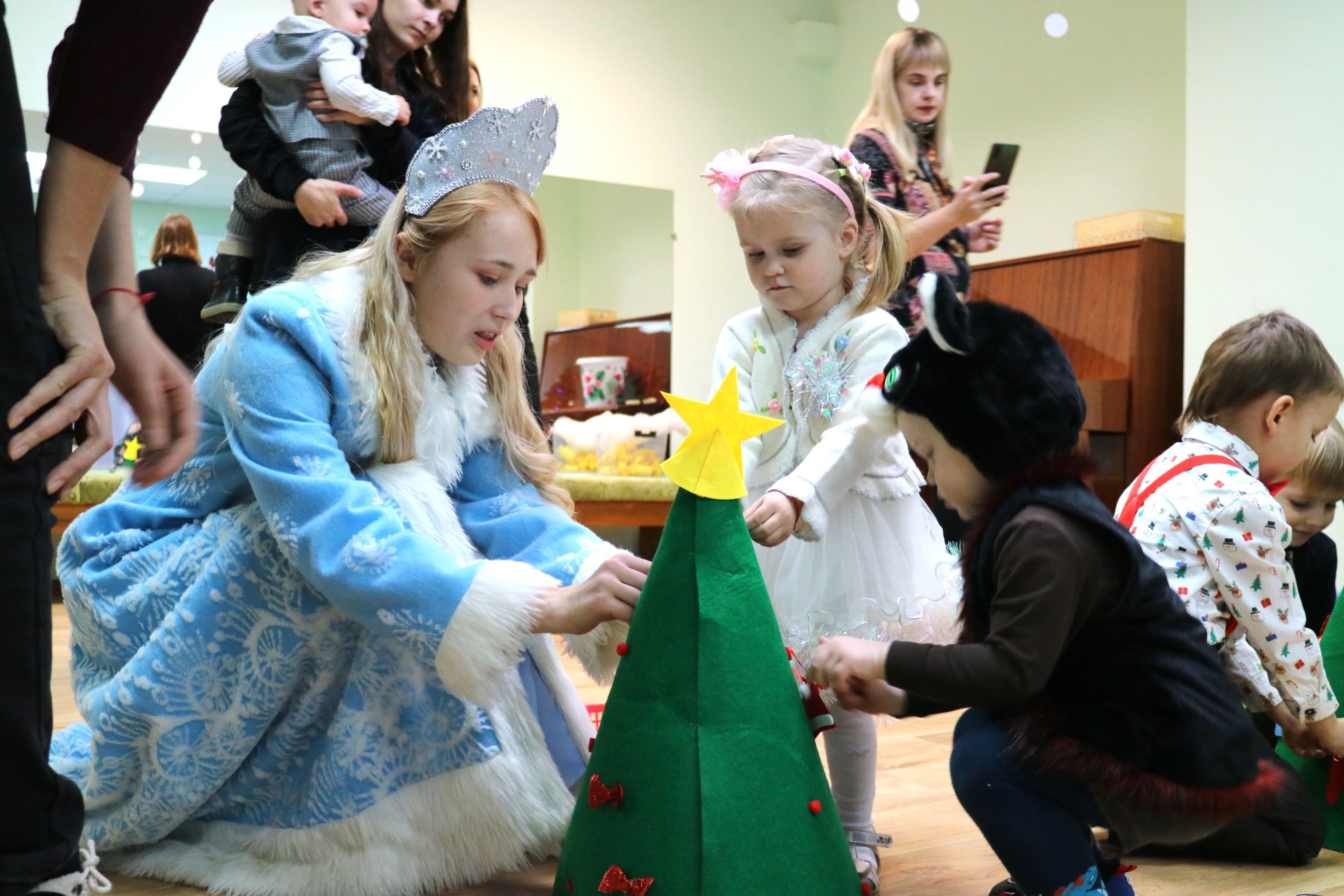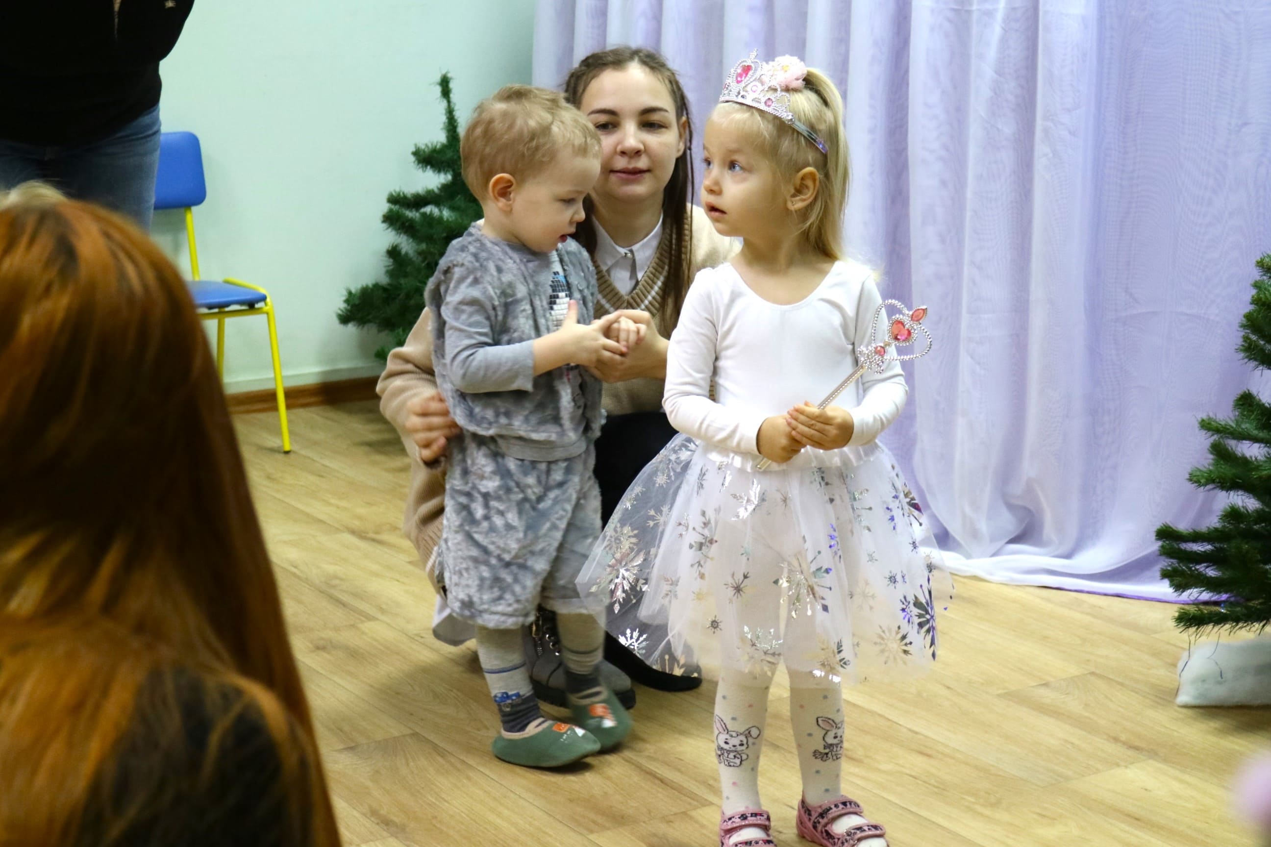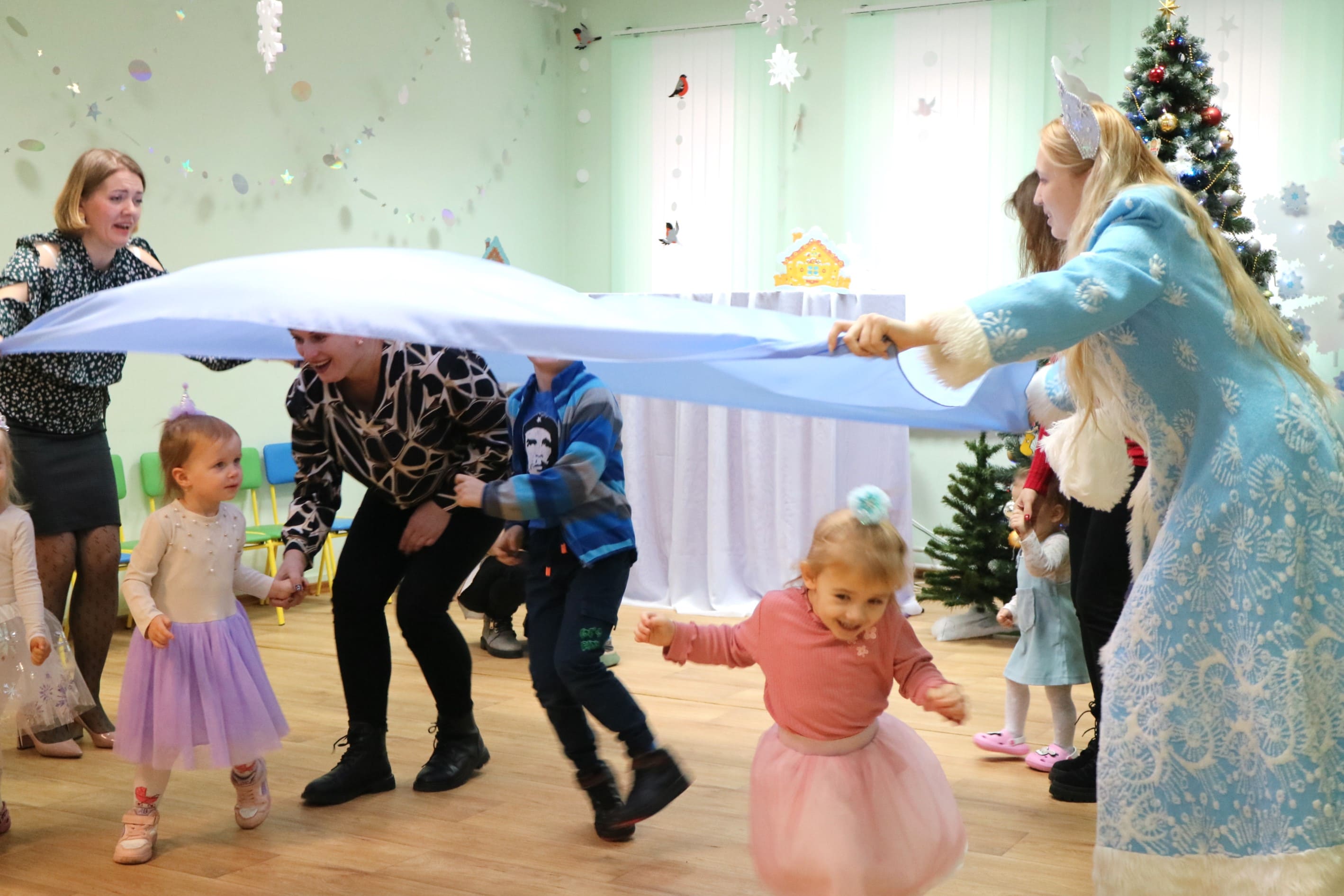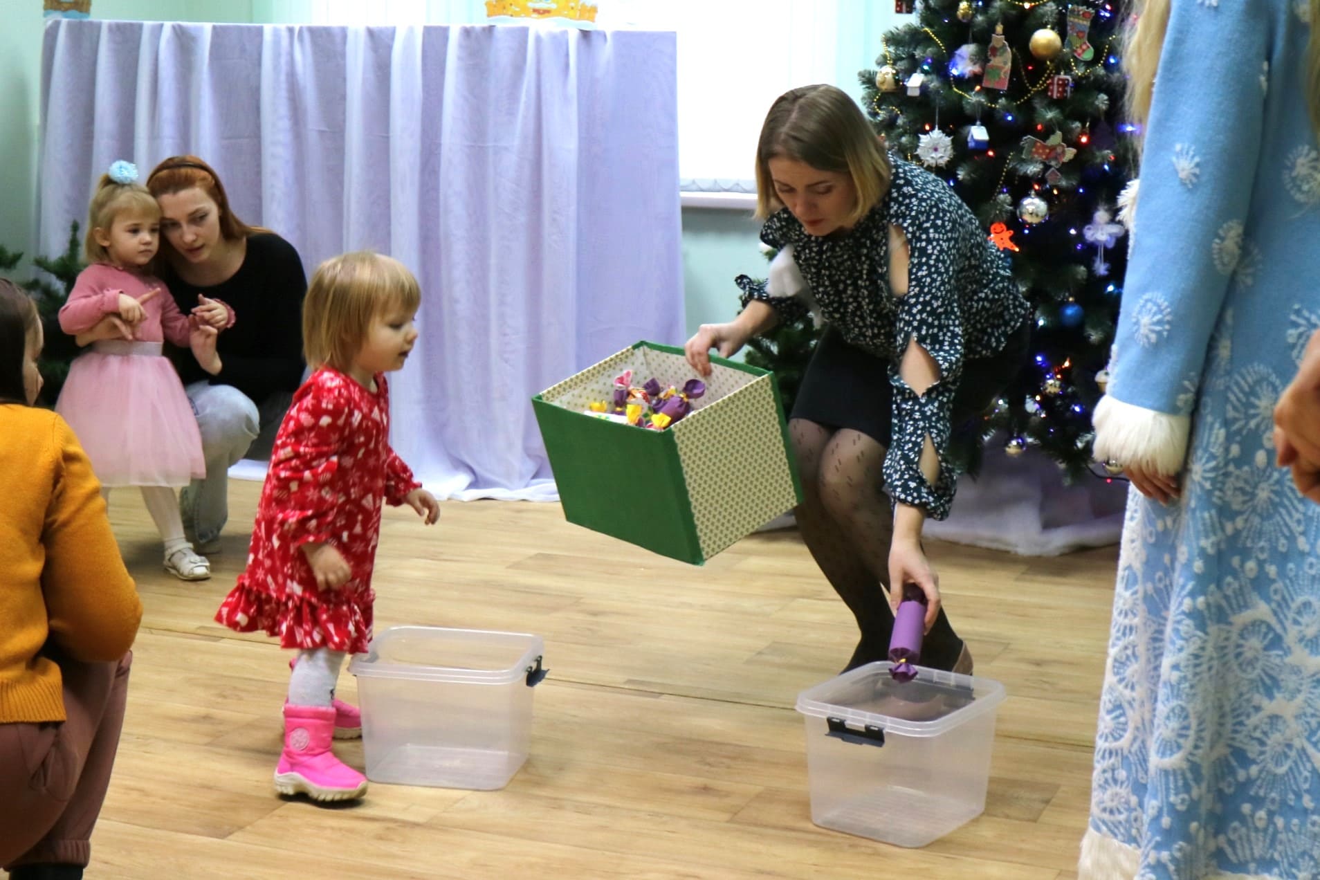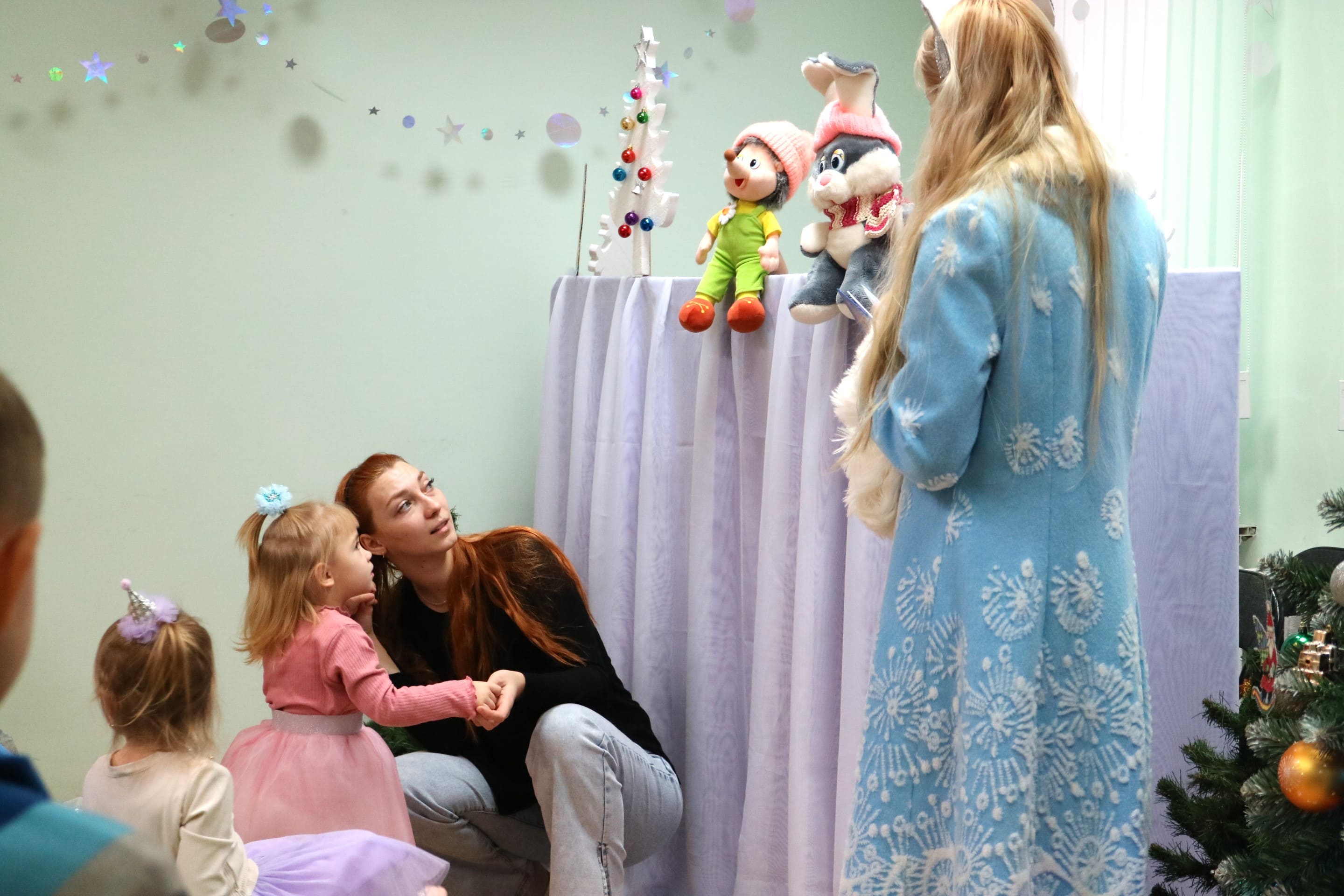 Вместе со Снегурочкой малыши водили хороводы, зажигали огоньки на елочке, играли в снежки, прятались от зимней метели, помогали Дедушке Морозу разложить конфеты. А также ребята поучаствовали в интерактивном кукольном спектакле: помогли Зайчику вернуть новогоднюю елочку и встретить Новый год весело.
