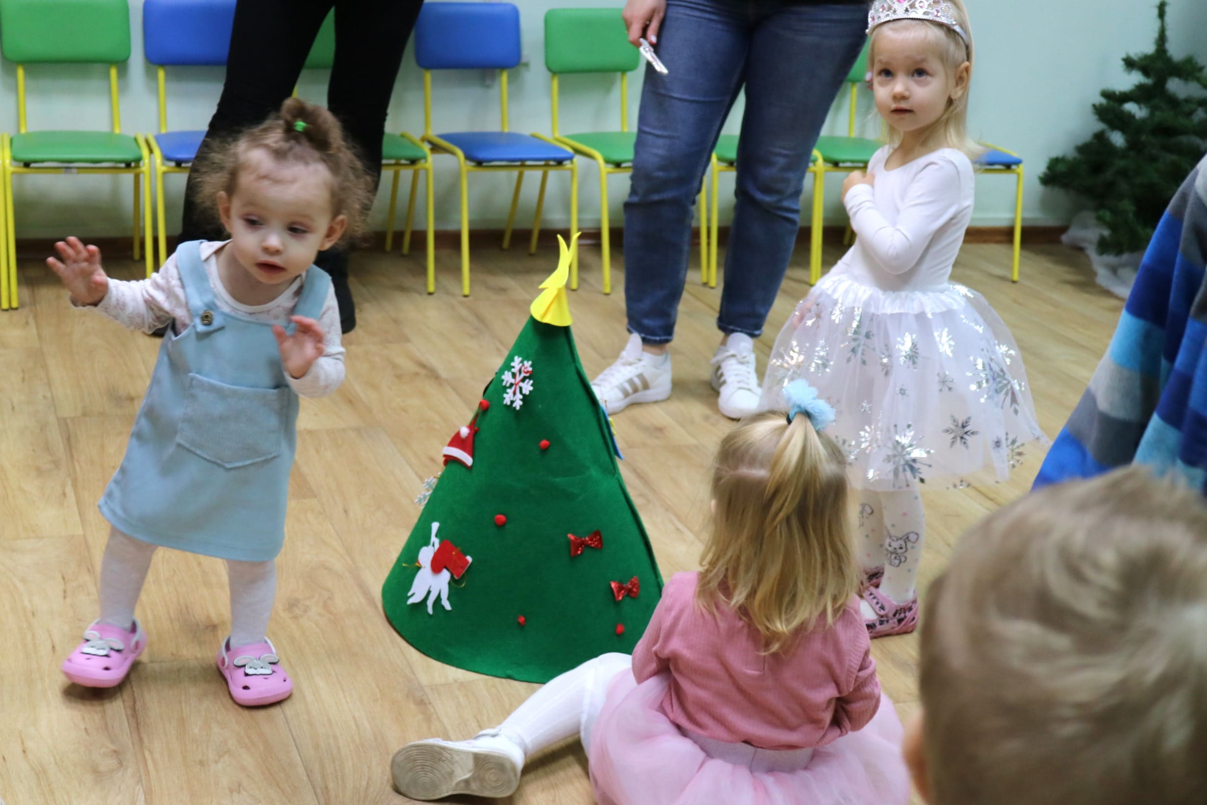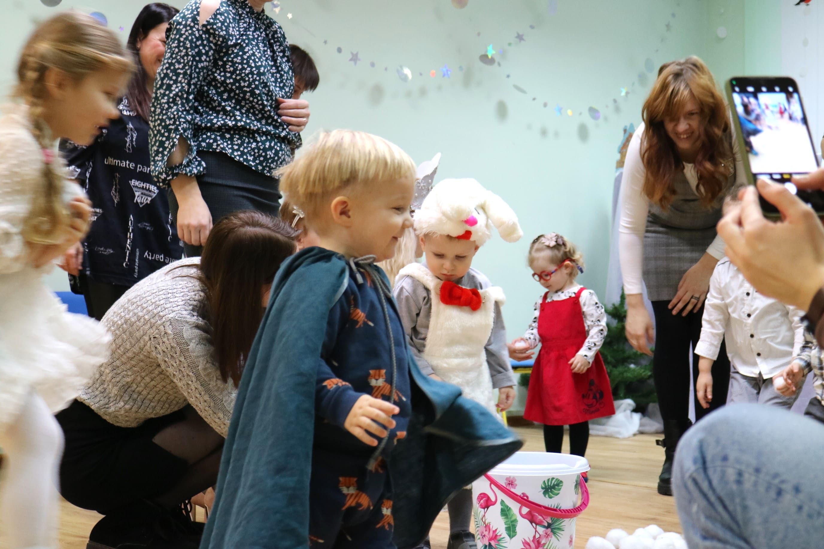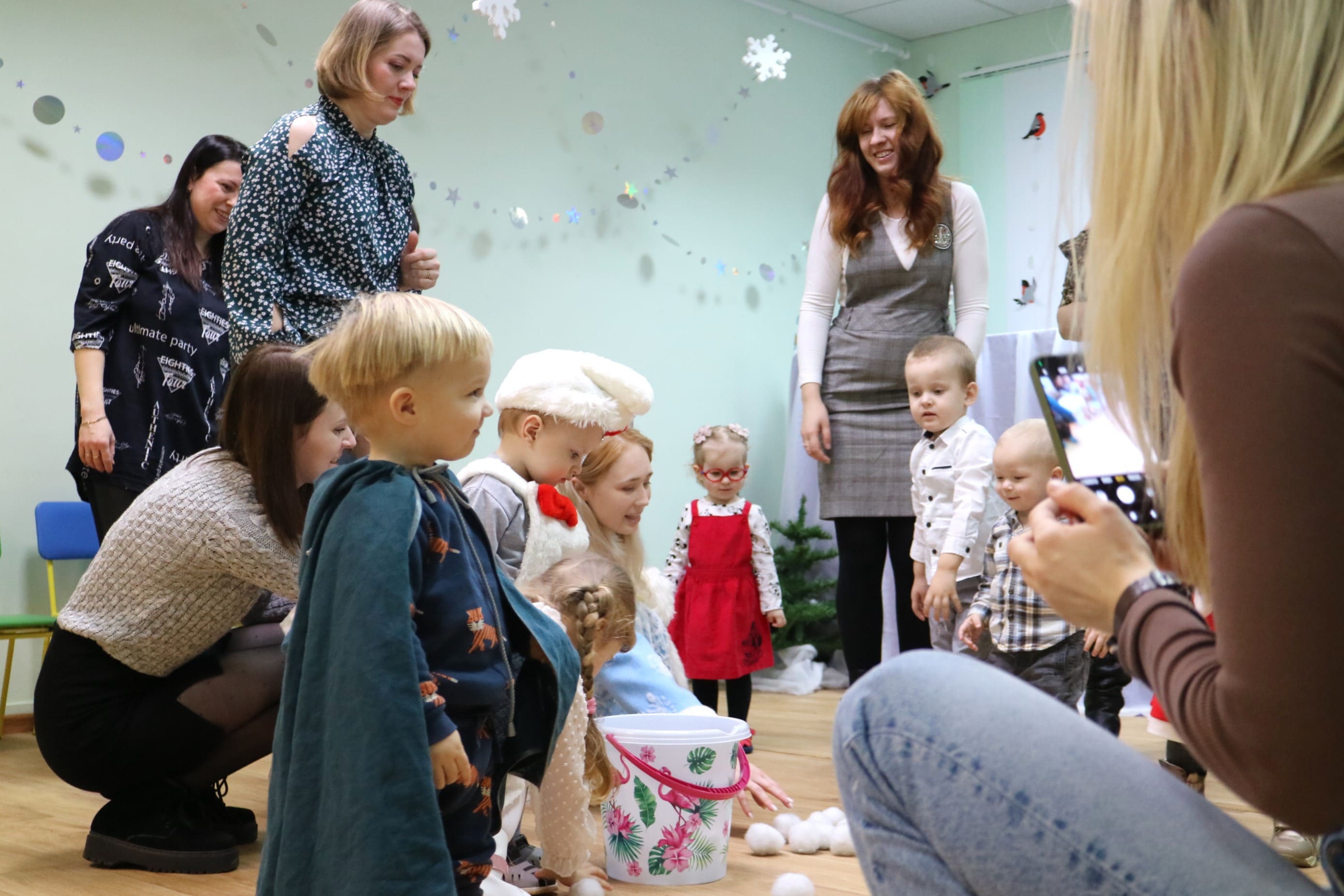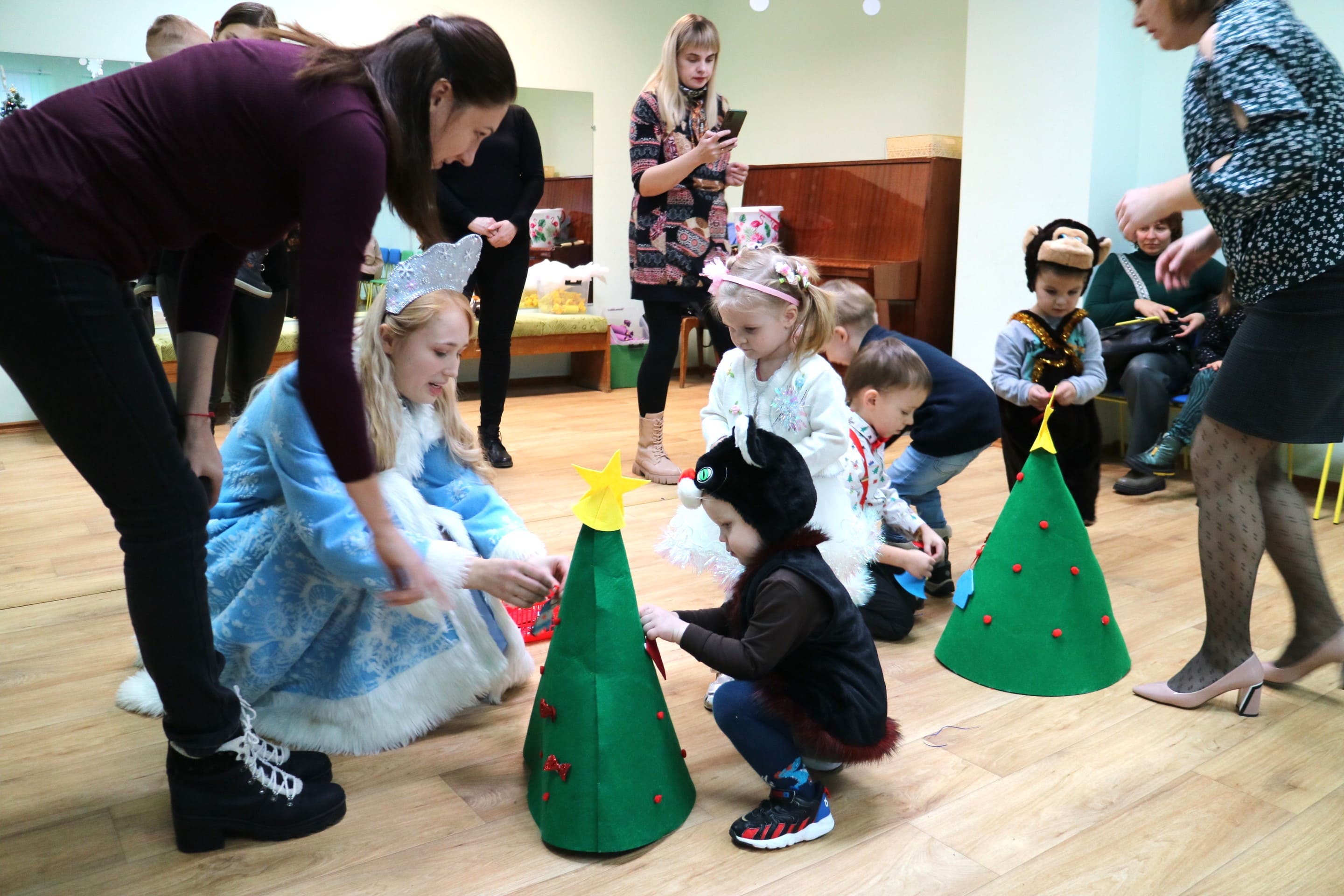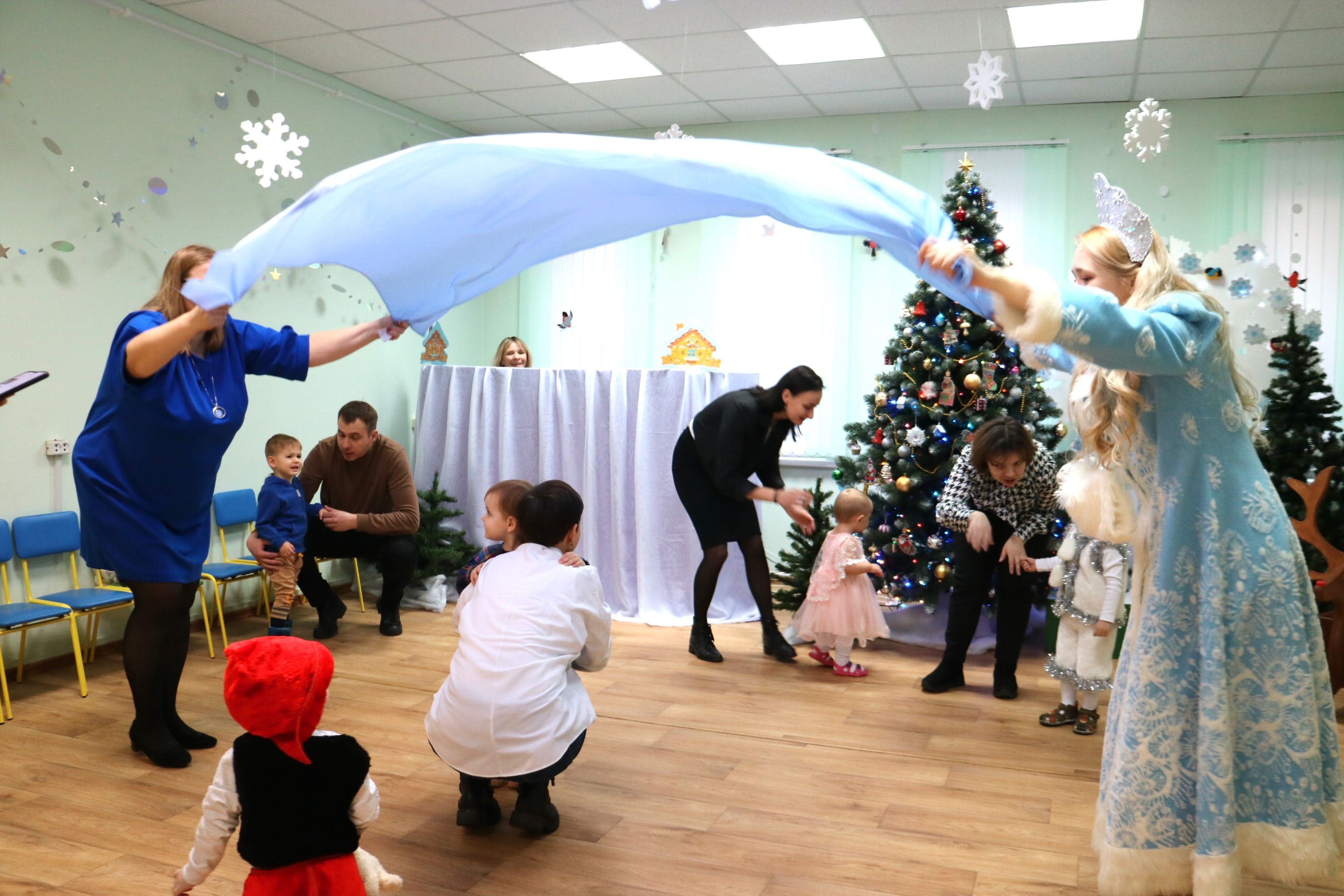 Вместе со Снегурочкой малыши водили хороводы, зажигали огоньки на елочке, играли в снежки, прятались от зимней метели, помогали Дедушке Морозу разложить конфеты. А также ребята поучаствовали в интерактивном кукольном спектакле: помогли Зайчику вернуть новогоднюю елочку и встретить Новый год весело.