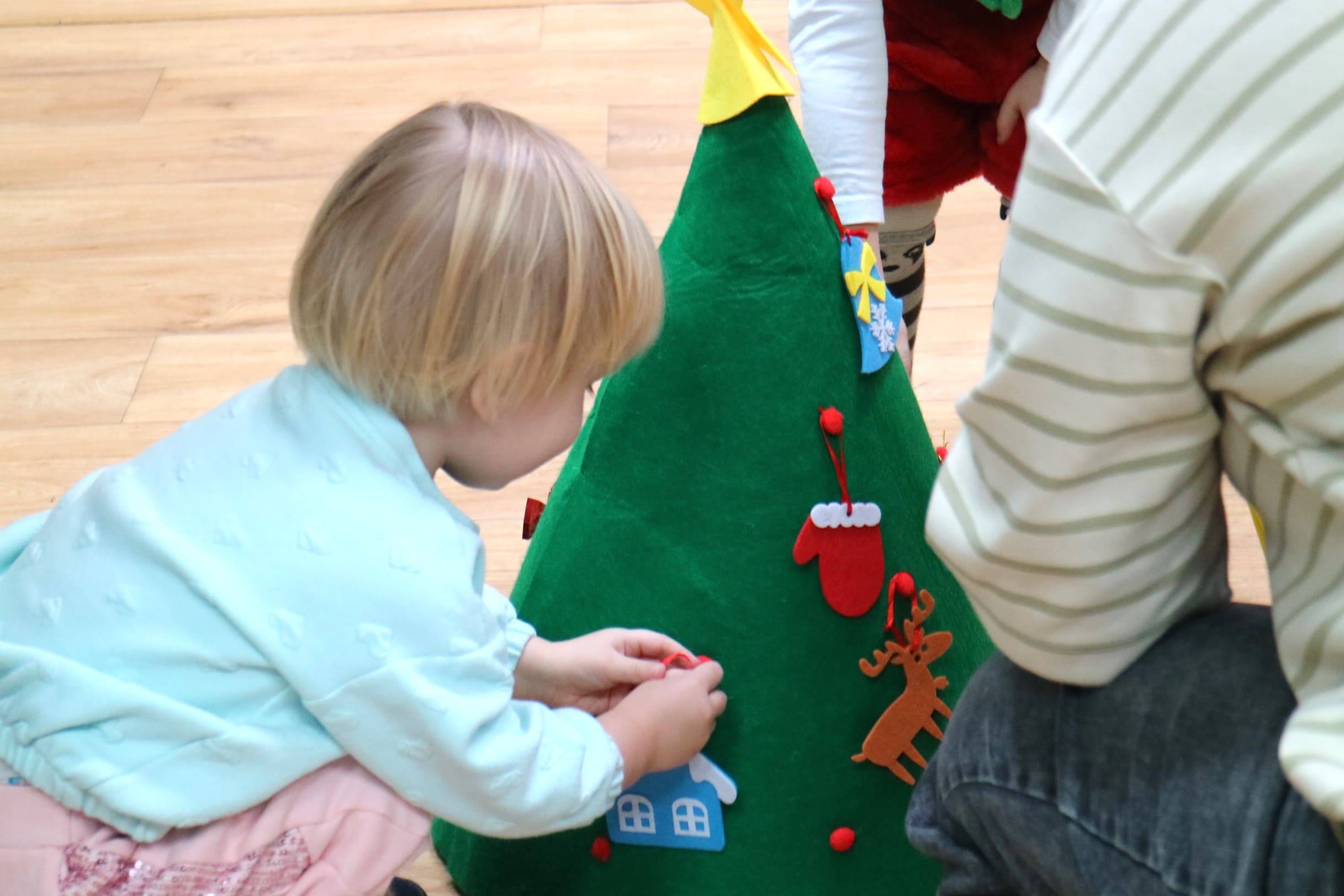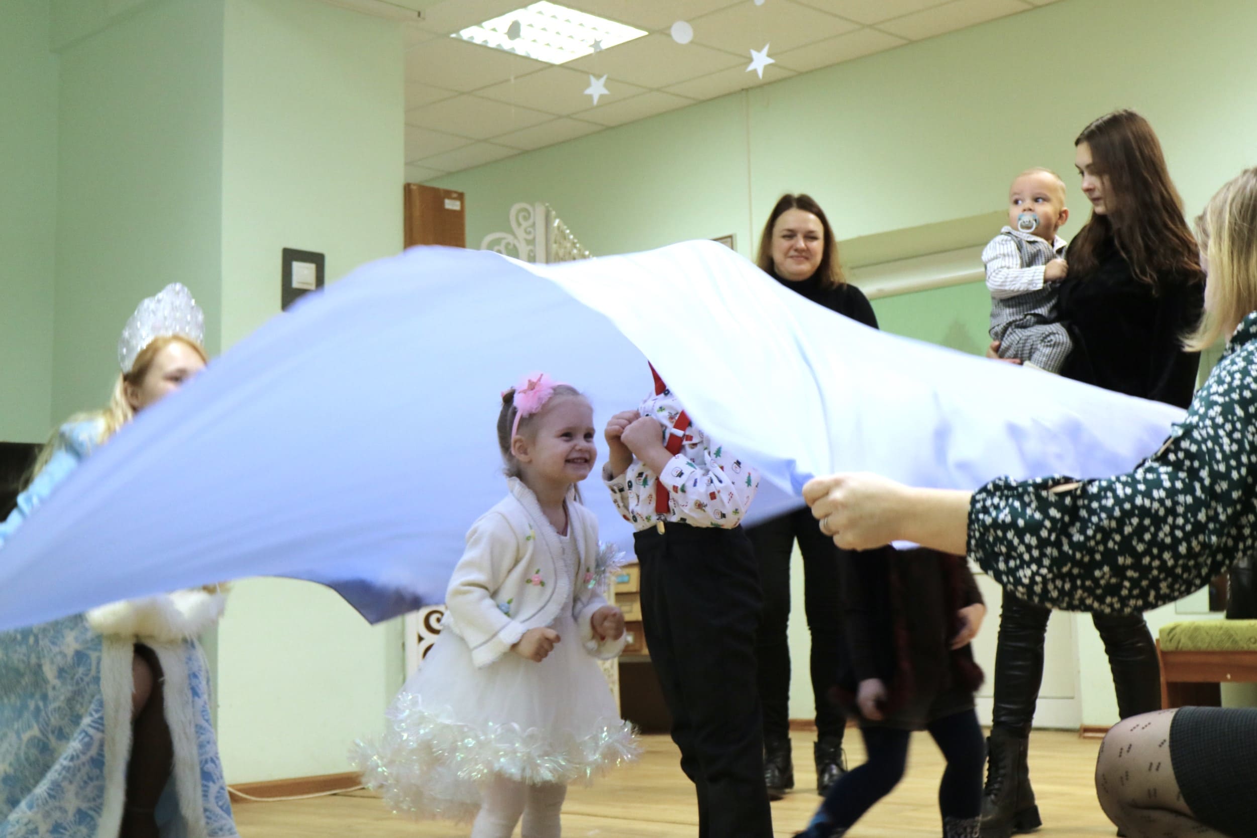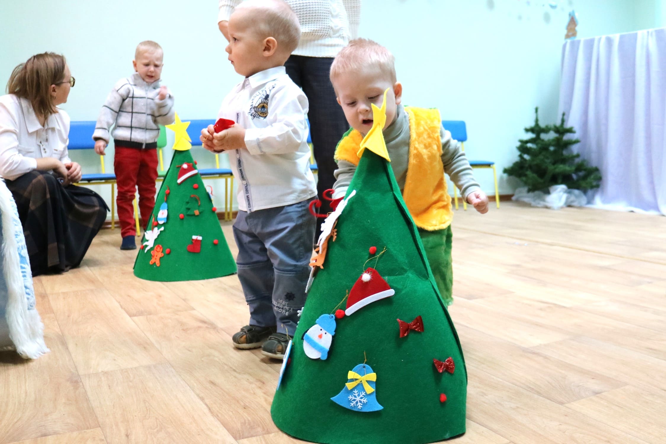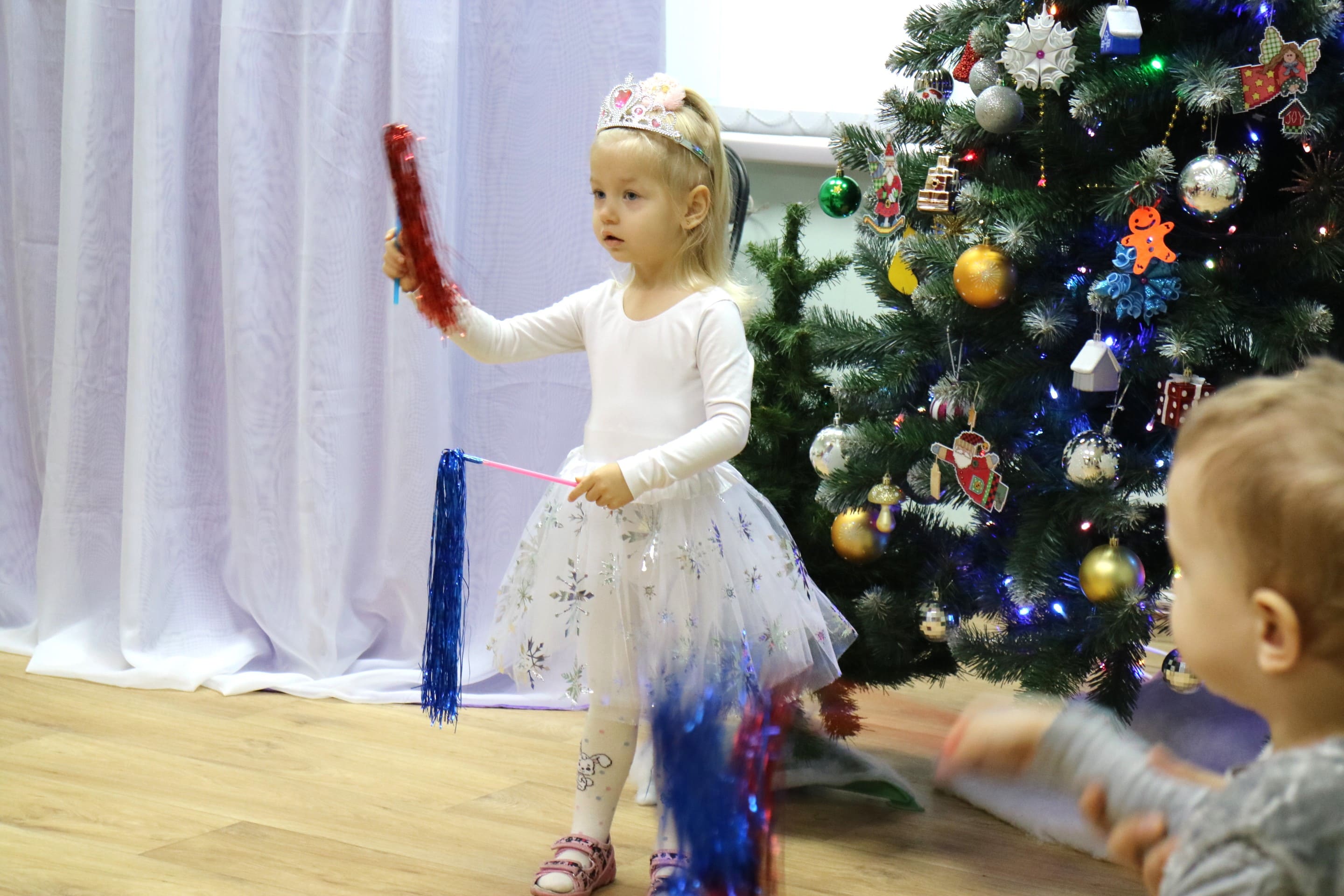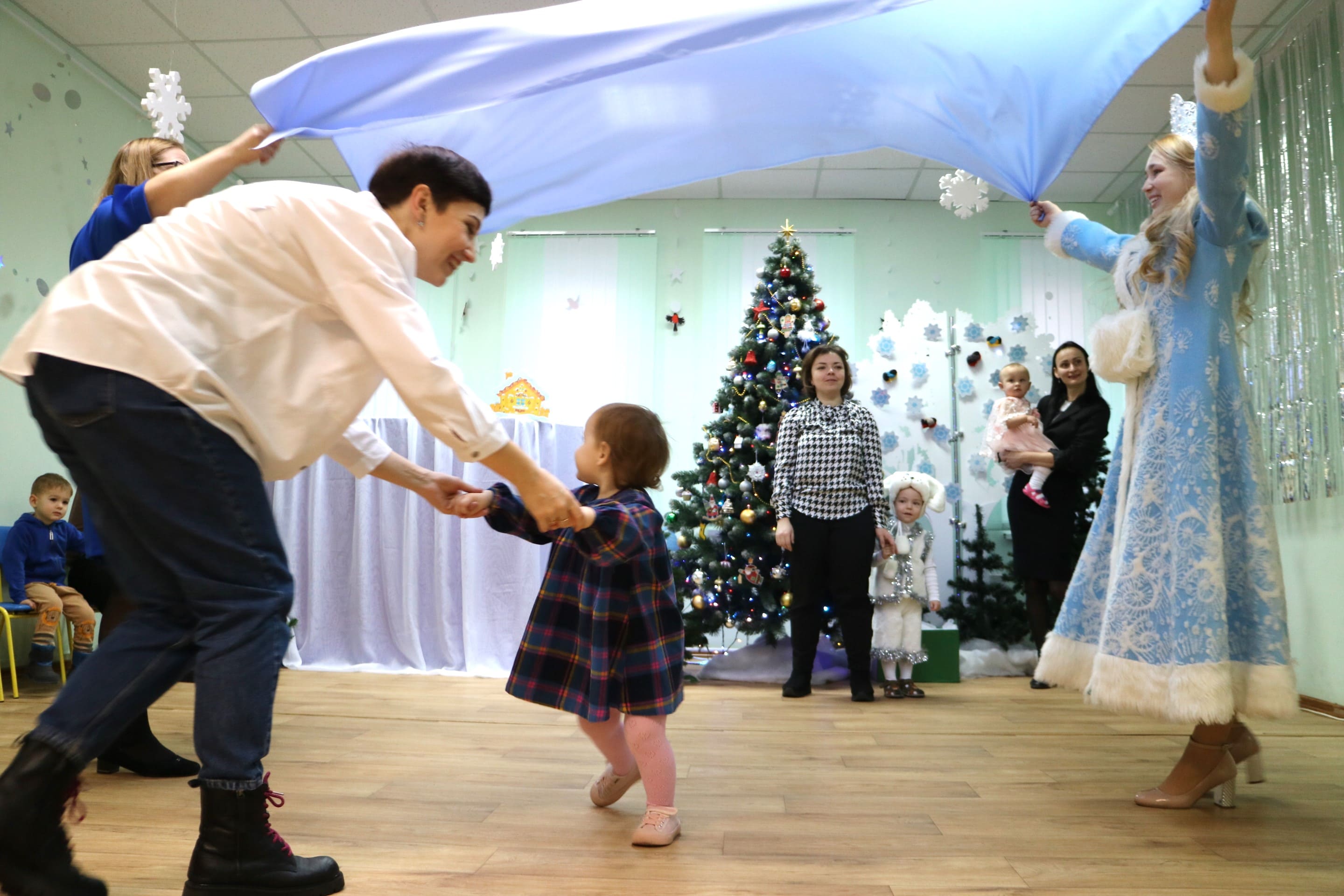 Вместе со Снегурочкой малыши водили хороводы, зажигали огоньки на елочке, играли в снежки, прятались от зимней метели, помогали Дедушке Морозу разложить конфеты. А также ребята поучаствовали в интерактивном кукольном спектакле: помогли Зайчику вернуть новогоднюю елочку и встретить Новый год весело.