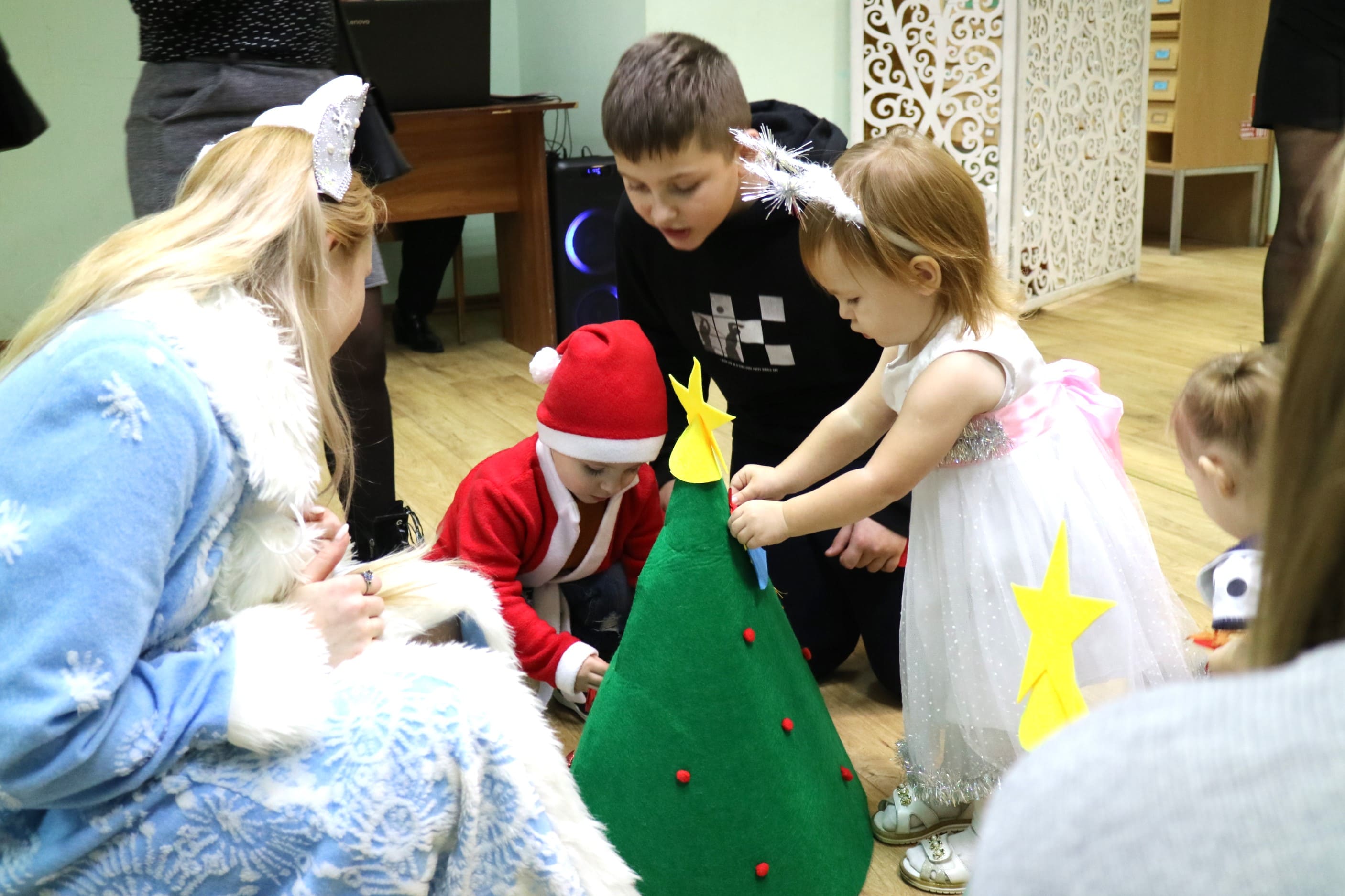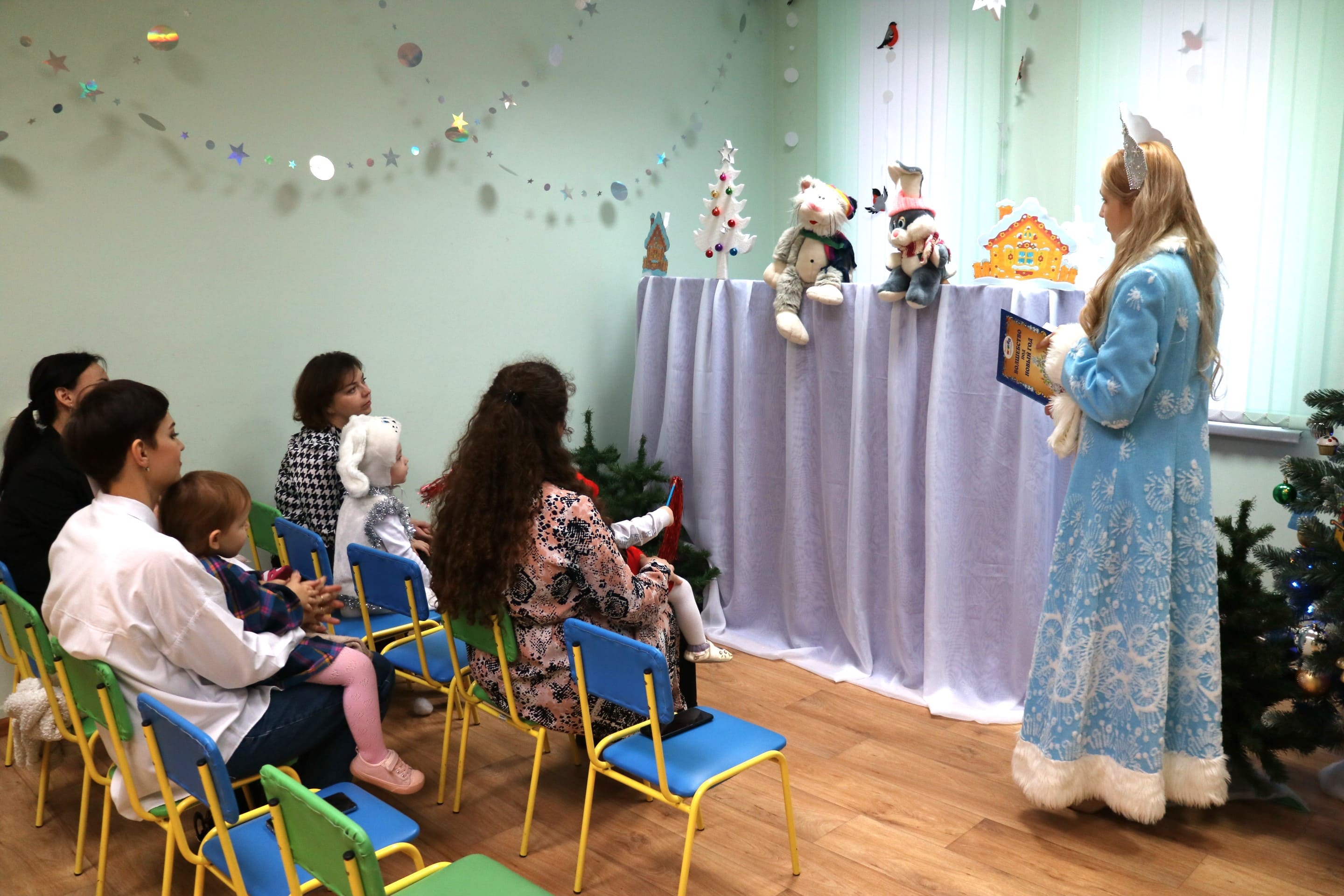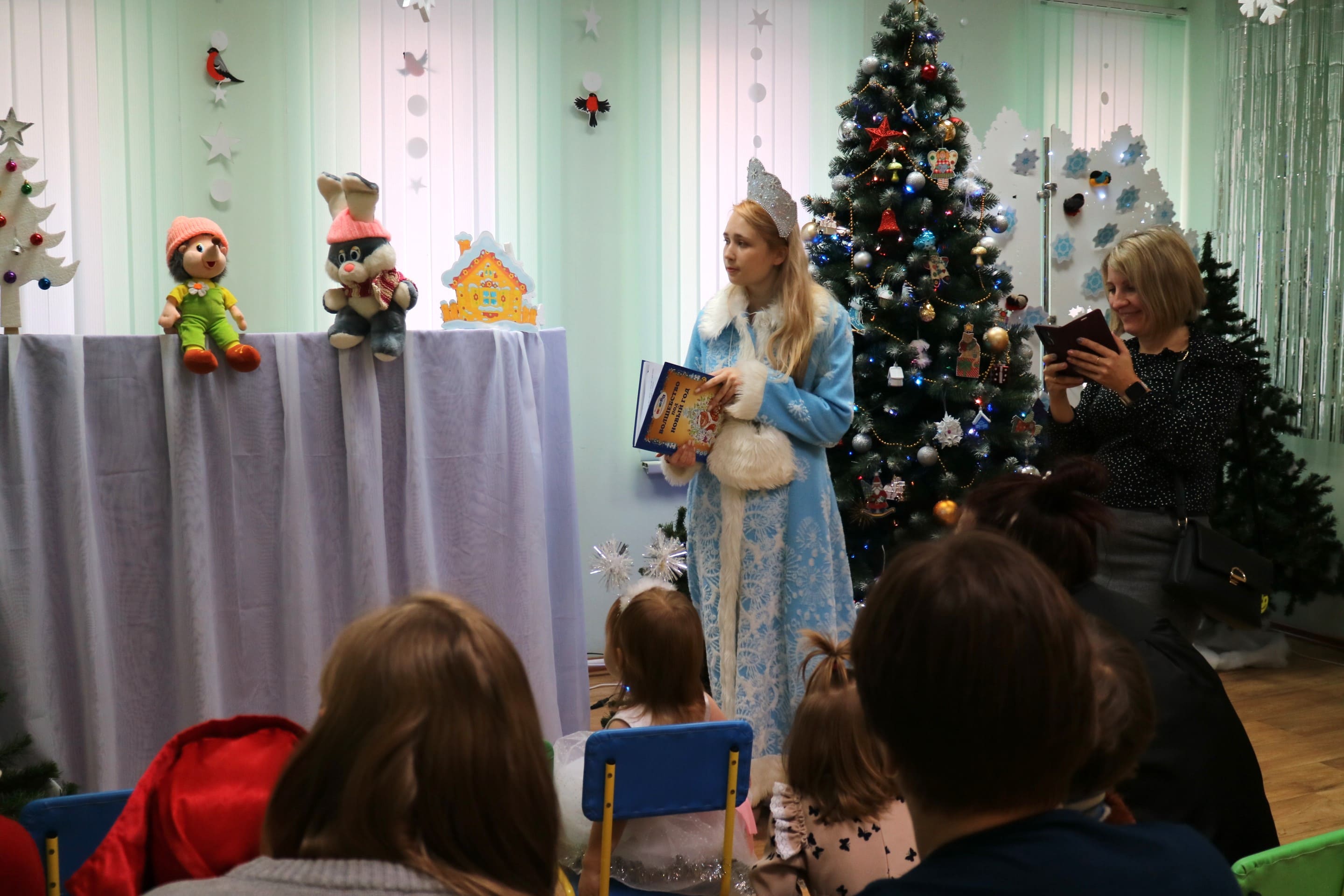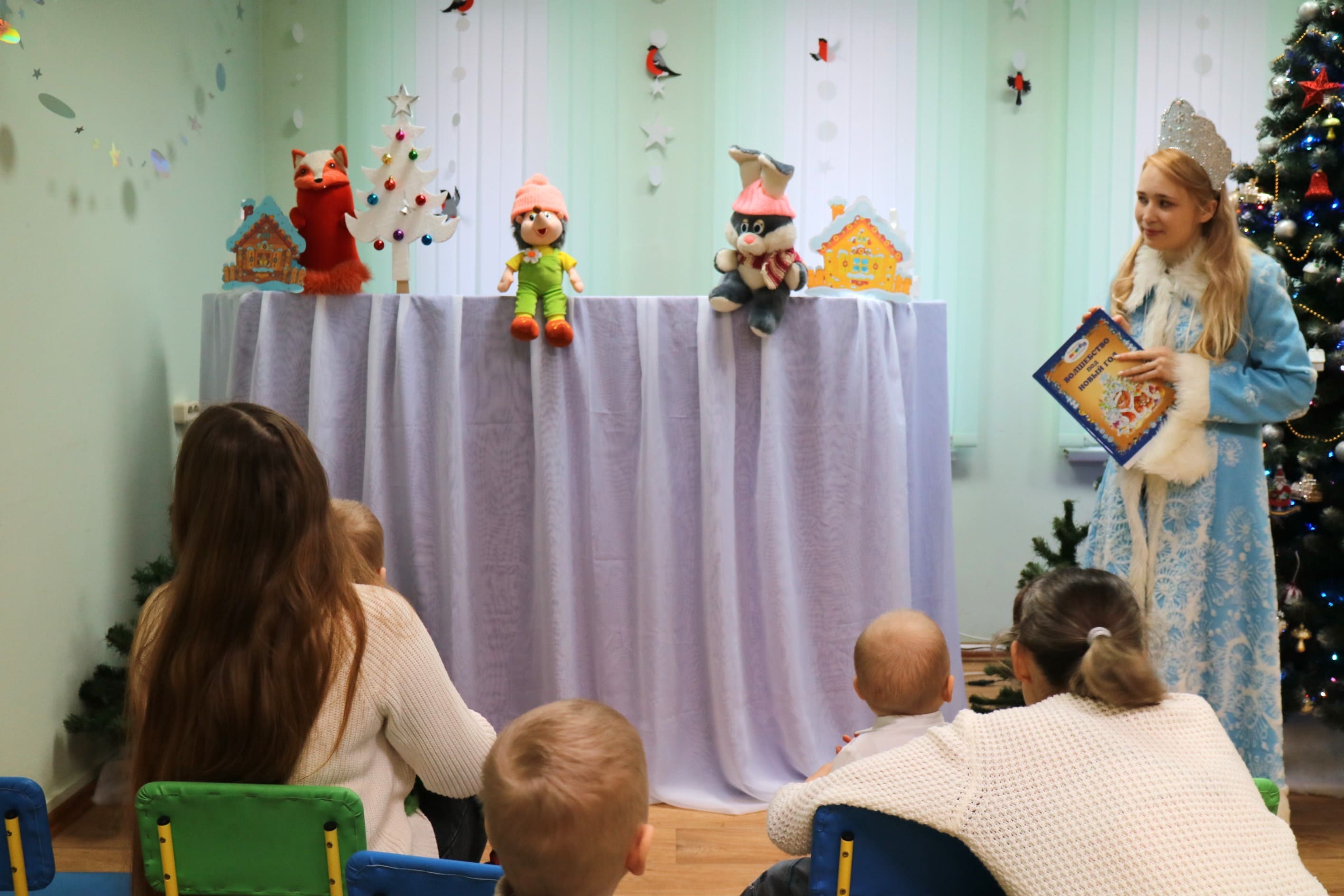 Вот и в нашей библиотеке царит приятная новогодняя атмосфера. Самых маленьких жителей нашего города мы пригласили на праздничное представление «Чудеса под Новый год».