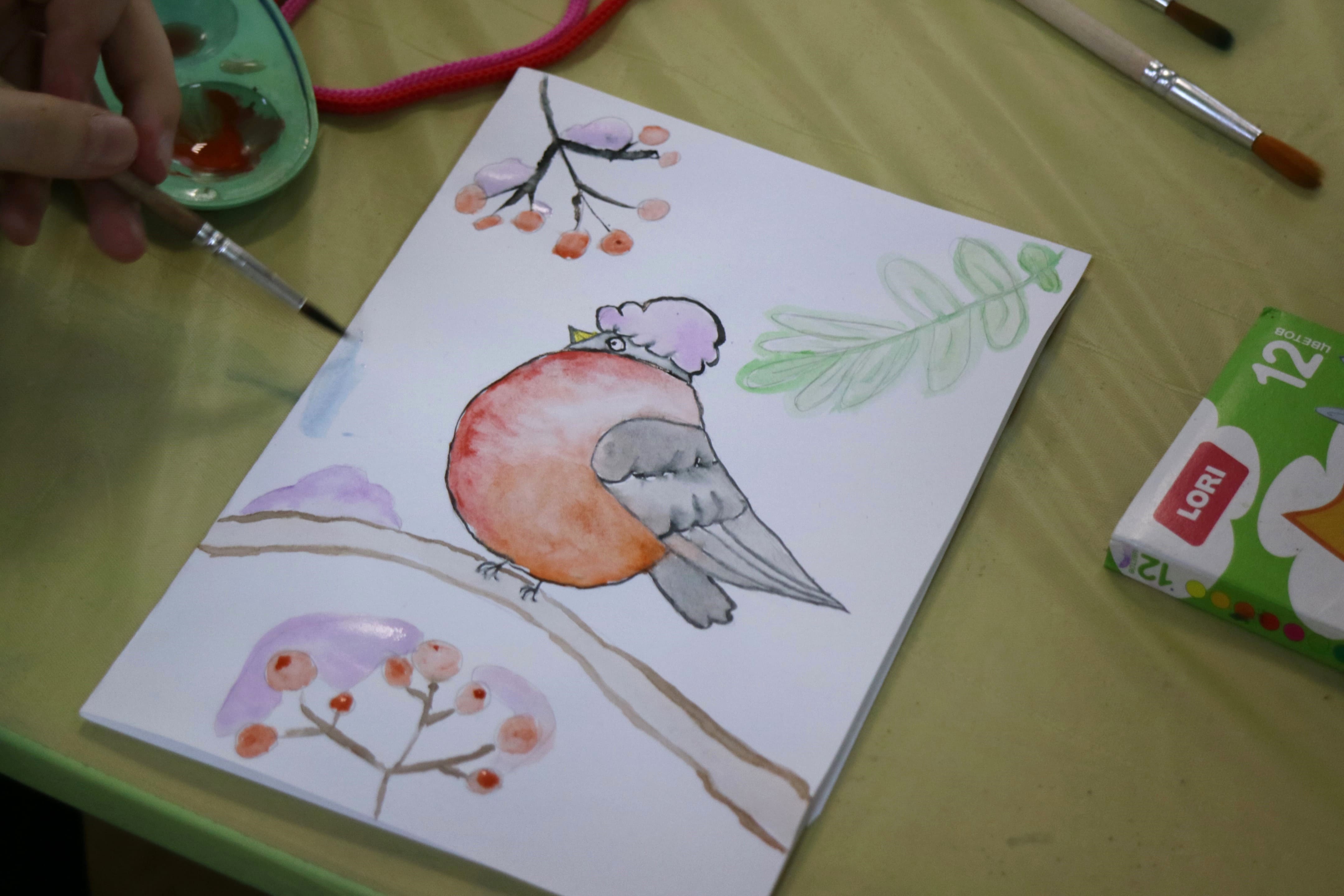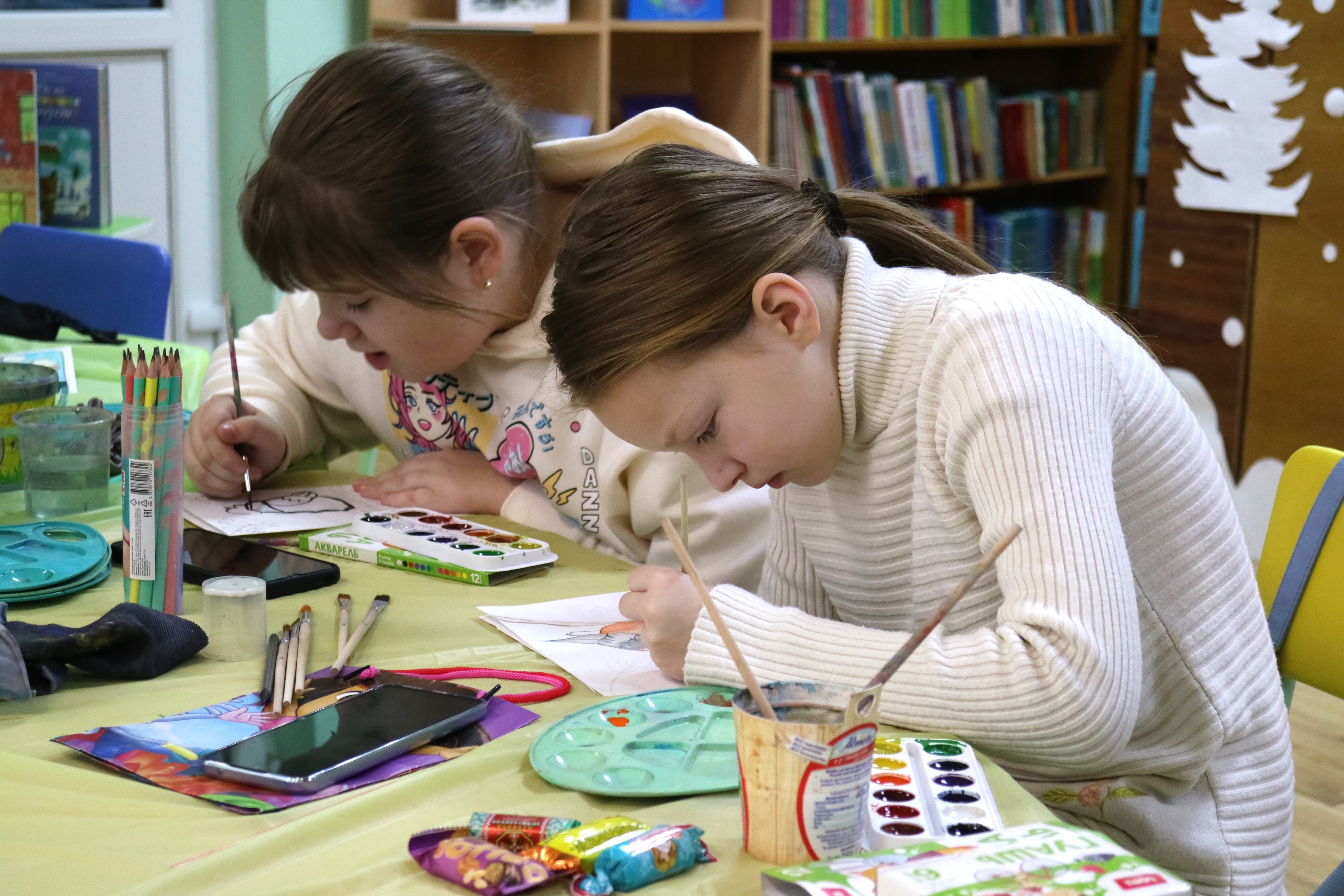 В Центральной городской библиотеке прошло занятие, где ребята с удовольствием воплощали на бумаге свои зимние фантазии. Девчонки и мальчишки создавали удивительные открытки, изображая на них снегирей, снежинки и другие символы зимы.
