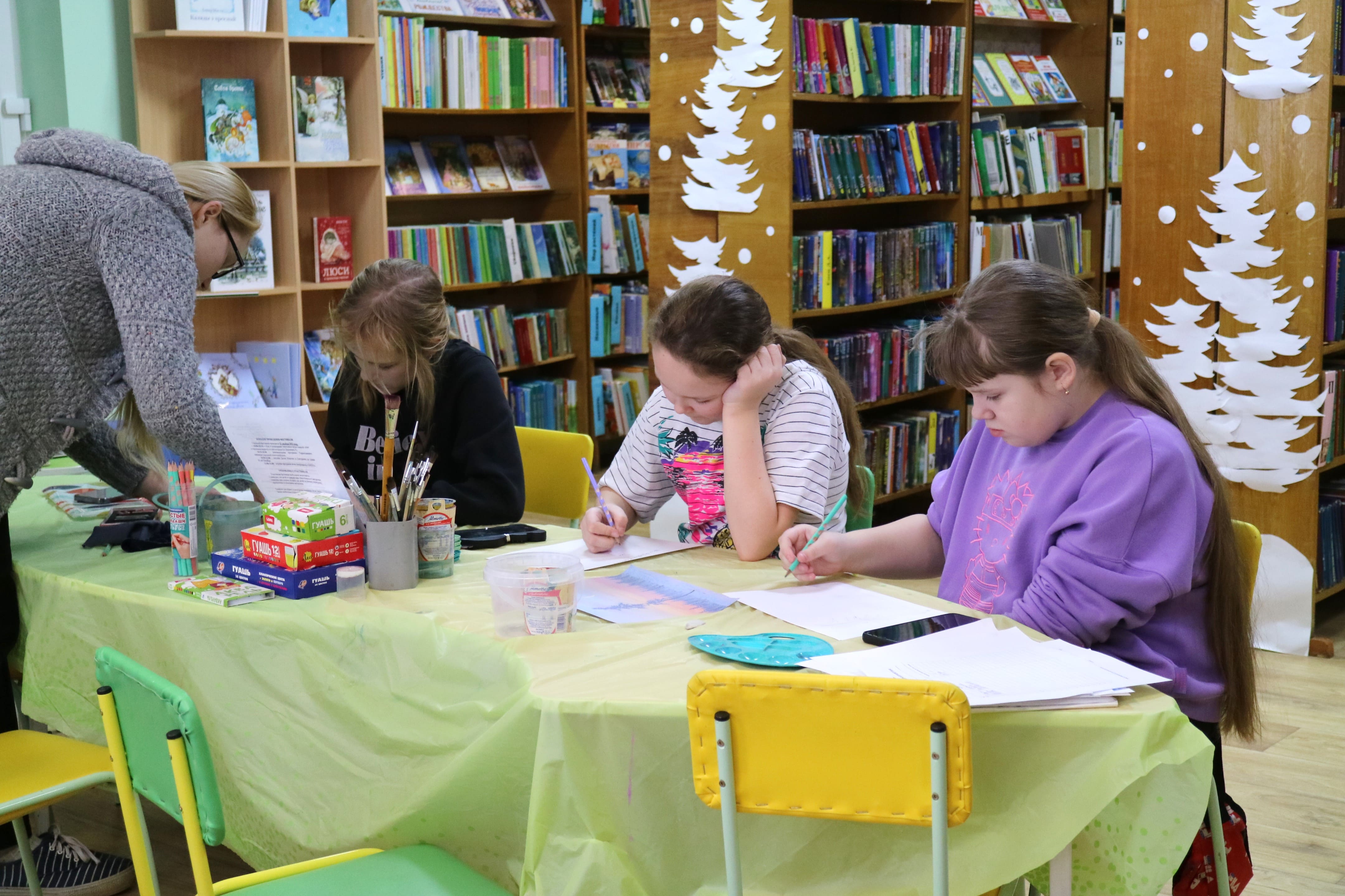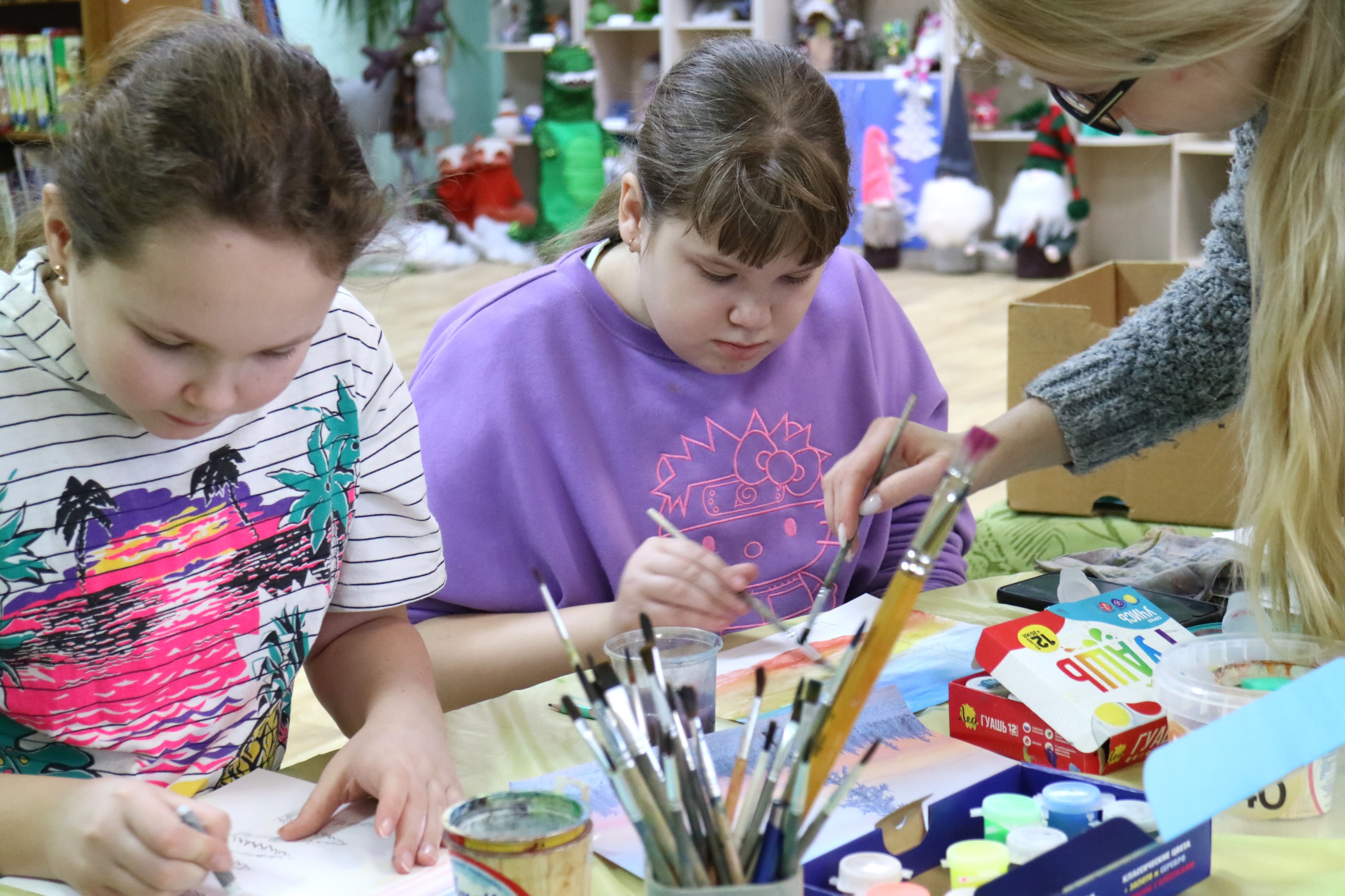 19 января занятие библиоАРТа «Букварельки» было посвящено рисованию зимнего пейзажа с применением разных техник.