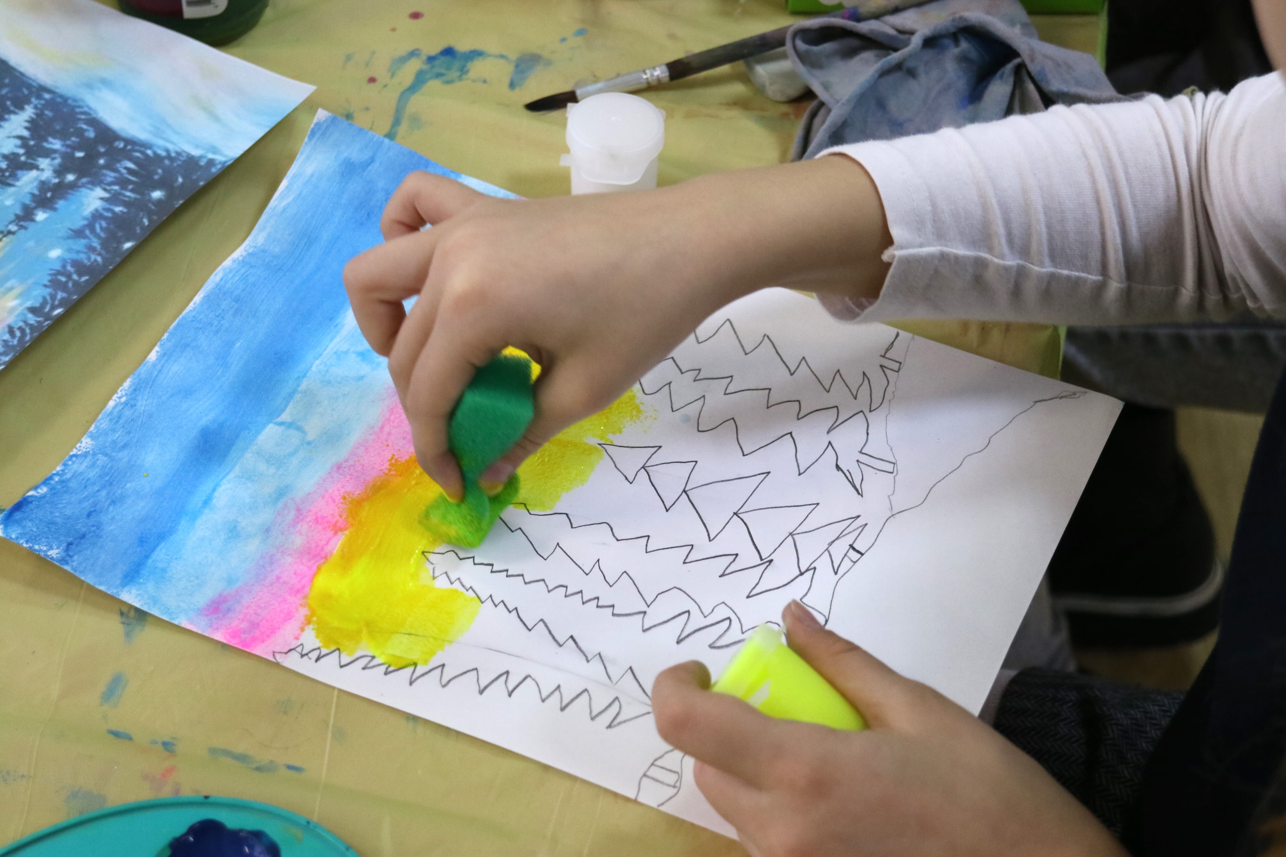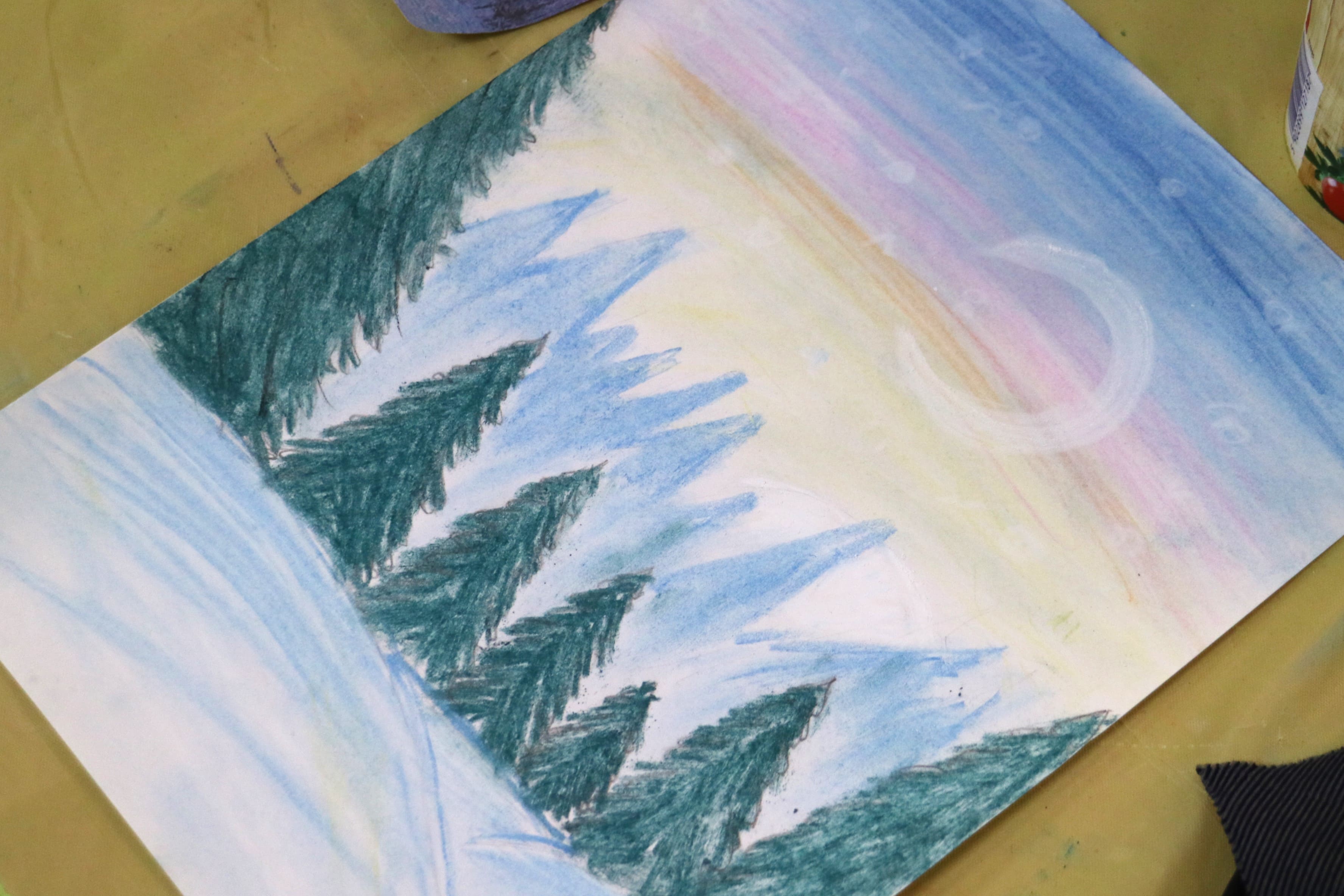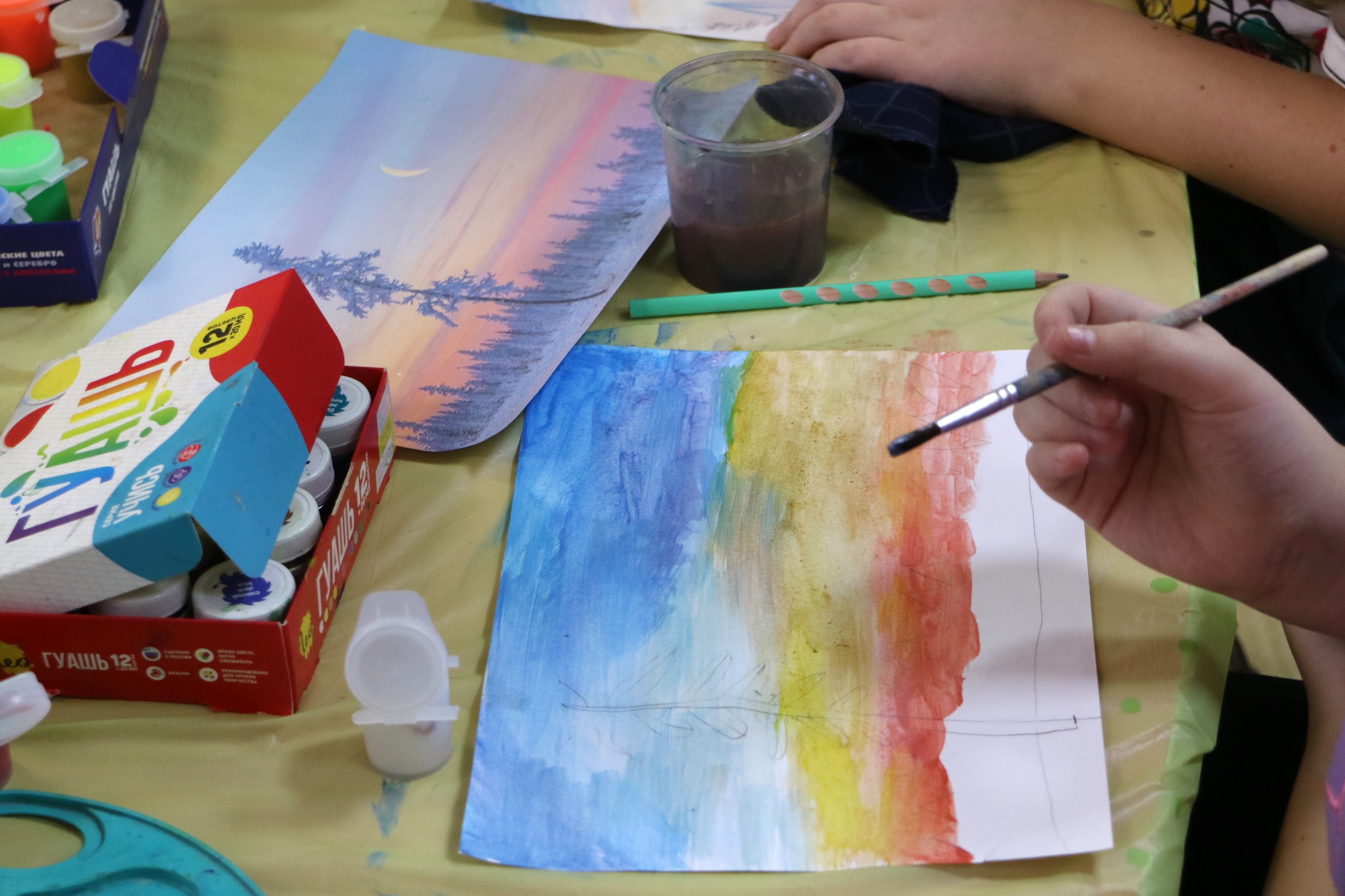 Каждый ребенок с увлечением приступил к работе, используя гуашь, акварельные краски или пастель. Снежные покровы, елки и ледяные озера нашли отражение в рисунках ребят.