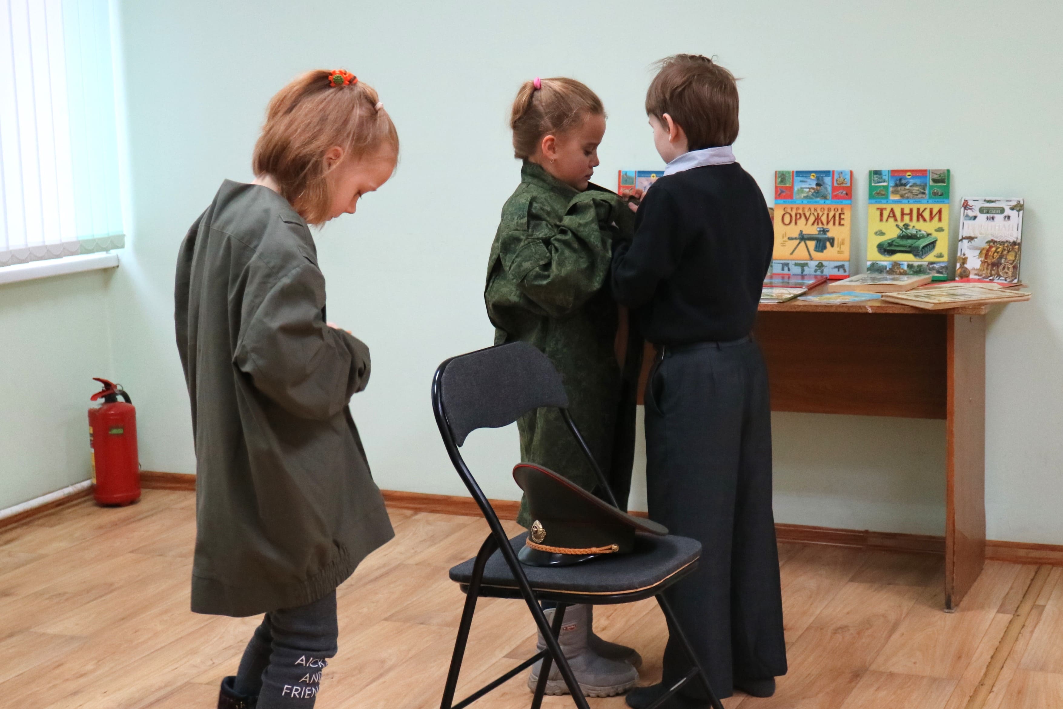 День защитников Отечества в библиотеке – хороший повод для воспитания у школьников чувства патриотизма, сопричастности к лучшим традициям своей Родины, формирования у детей гордости за славных защитников Отечества. Это праздник всех людей, которые стоят на страже нашей Родины. Это праздник настоящих мужчин — смелых и отважных, ловких и надёжных, а также праздник мальчиков, которые вырастут и станут защитниками Отечества, а пока мы знакомим детей и рассказываем, что такое армия, почему 23 февраля — День защитников Отечества. Воспитываем уважительное отношение к военному человеку, человеку в форме, прививаем любовь к Родине, и развиваем патриотические чувства. В ходе мероприятия ребята смогли перевоплотиться в будущих защитников, примерили военную форму, прошли ряд эстафет, проявили свою внимательность и смекалку.