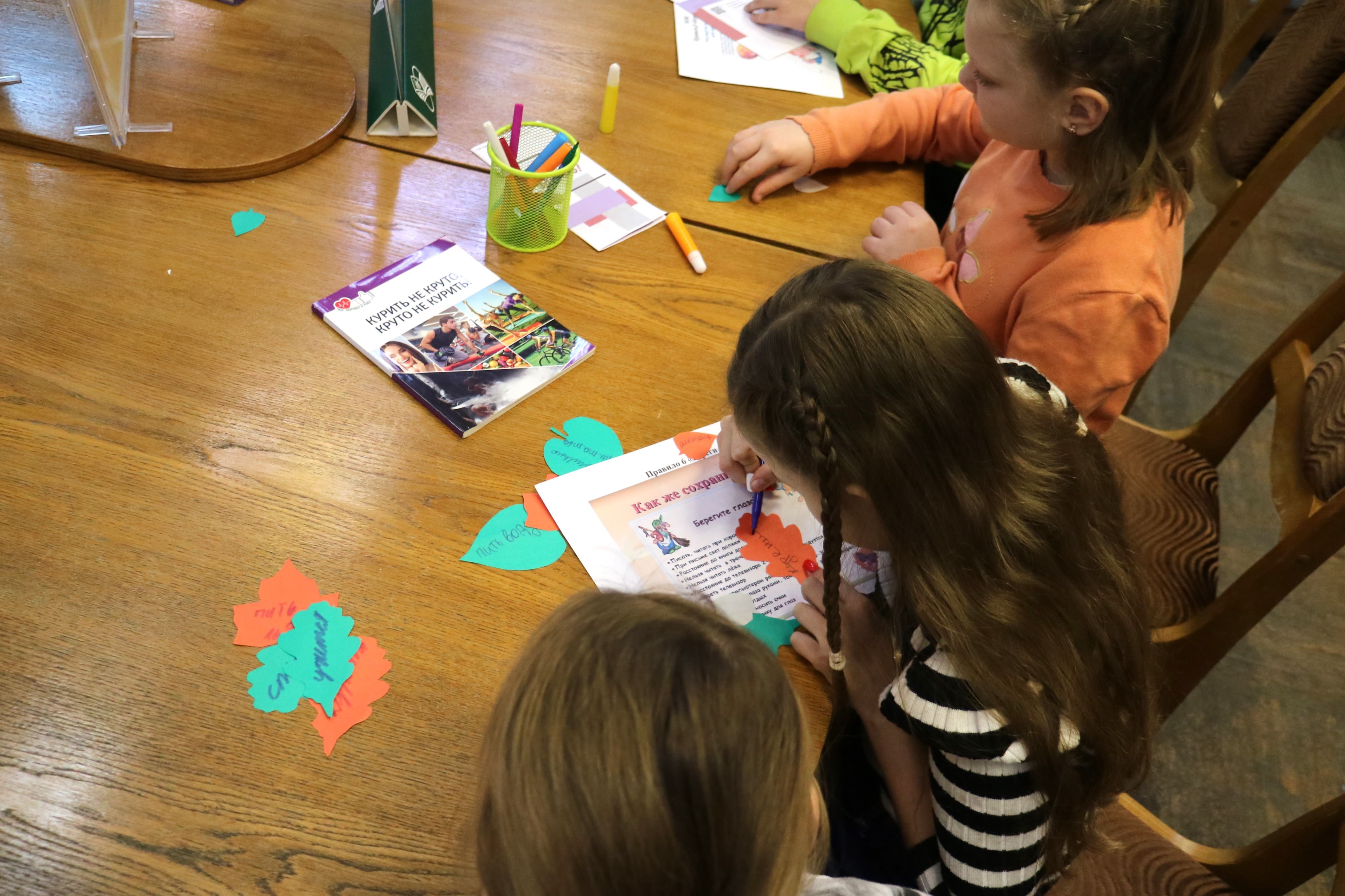 Занятие сопровождалось интерактивными моментами – комплексом гимнастики для глаз, тренингом для развития мозговой деятельности и т.д., а в завершение ребята создали свое «Дерево здоровья».