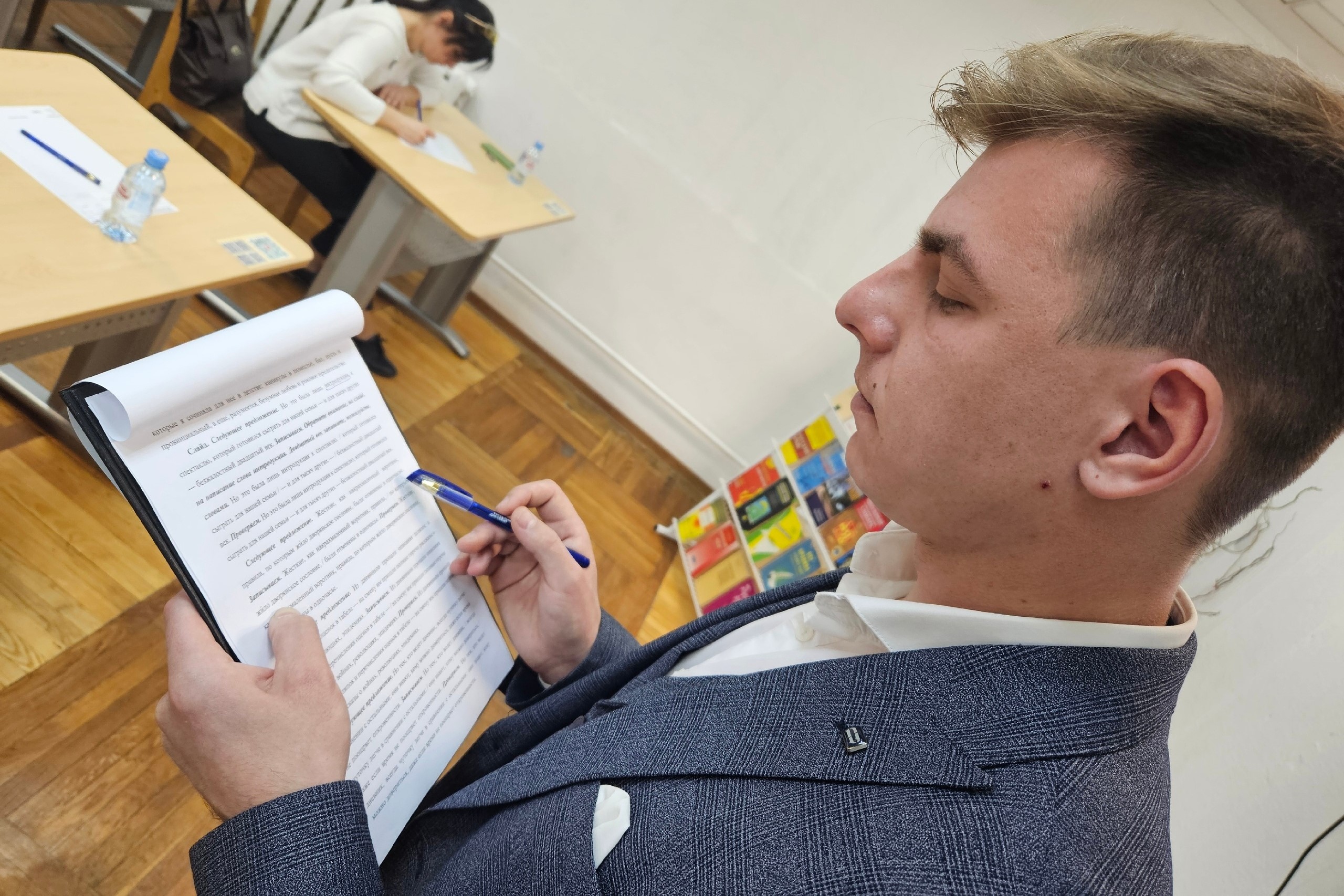 В этом году для проведения Тотального диктанта в Жодино был приглашен специальный гость: актер театра и кино, поэт и блогер Михаил Дементей.