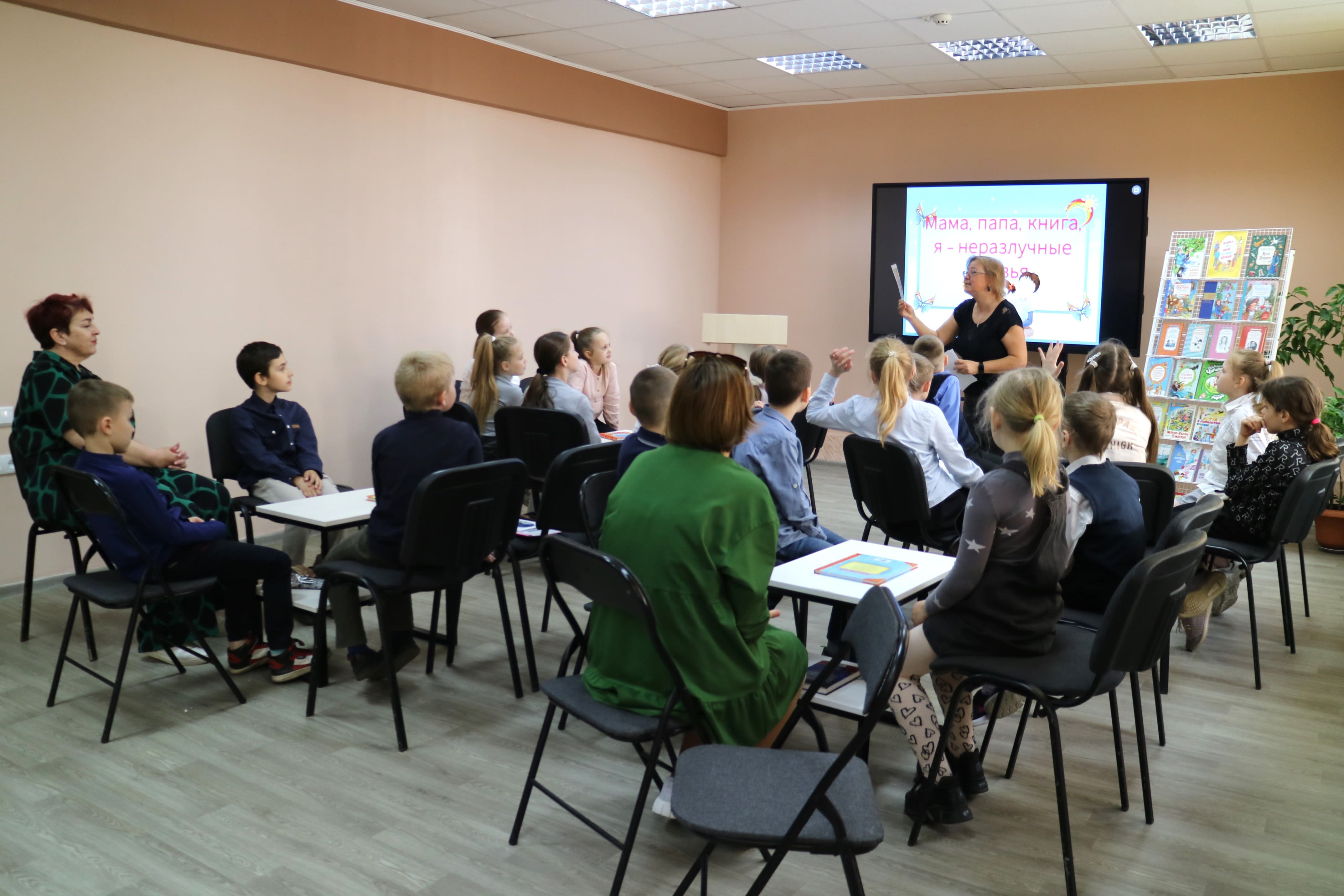 Сегодня учащиеся 3 «Г» класса гимназии №1 со своим классным руководителем Светланой Ивановной Локис пришли в библиотеку на праздник «Мама, папа, книги, я – неразлучные друзья». Ребята рассказывали о своих семьях, активно отвечали на литературные вопросы, дружно работали в командах.