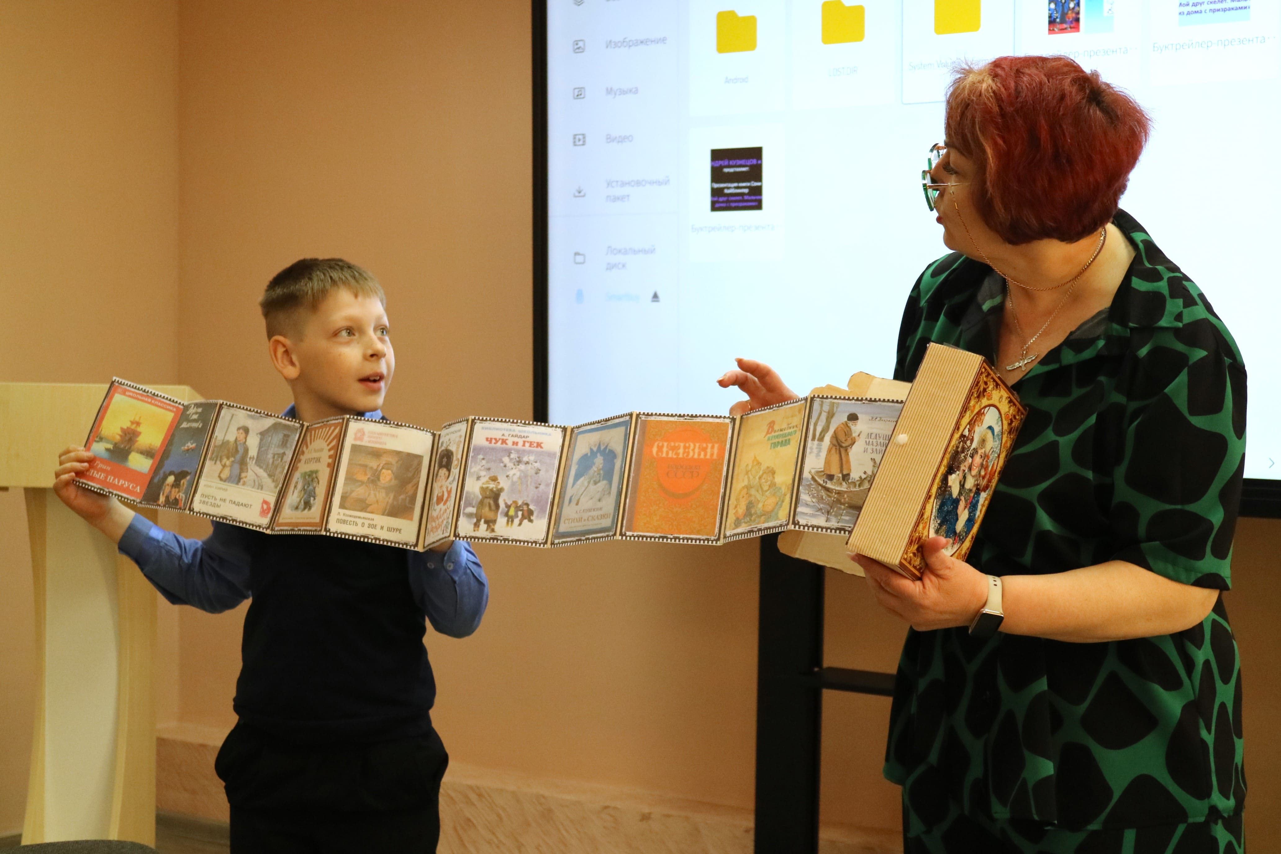 С особым интересом слушали мальчишки и девчонки выступления своих одноклассников. Олег Ильющенко рассказал о книге Екатерины Козловской «Расскажи мне сон», созданной при активном участии и поддержке его мамы и его самого. Андрей Кузнецов с мамой создал свой первый буктрейлер и замечательно прорекламировал только что прочитанную книгу С. Кайблингер «Мальчик из дома с призраками». Артём Богуцкий продемонстрировал книгу-раскладушку «Любимые книги моей мамы». А Милана Расчетина познакомила всех с буккроссингом.