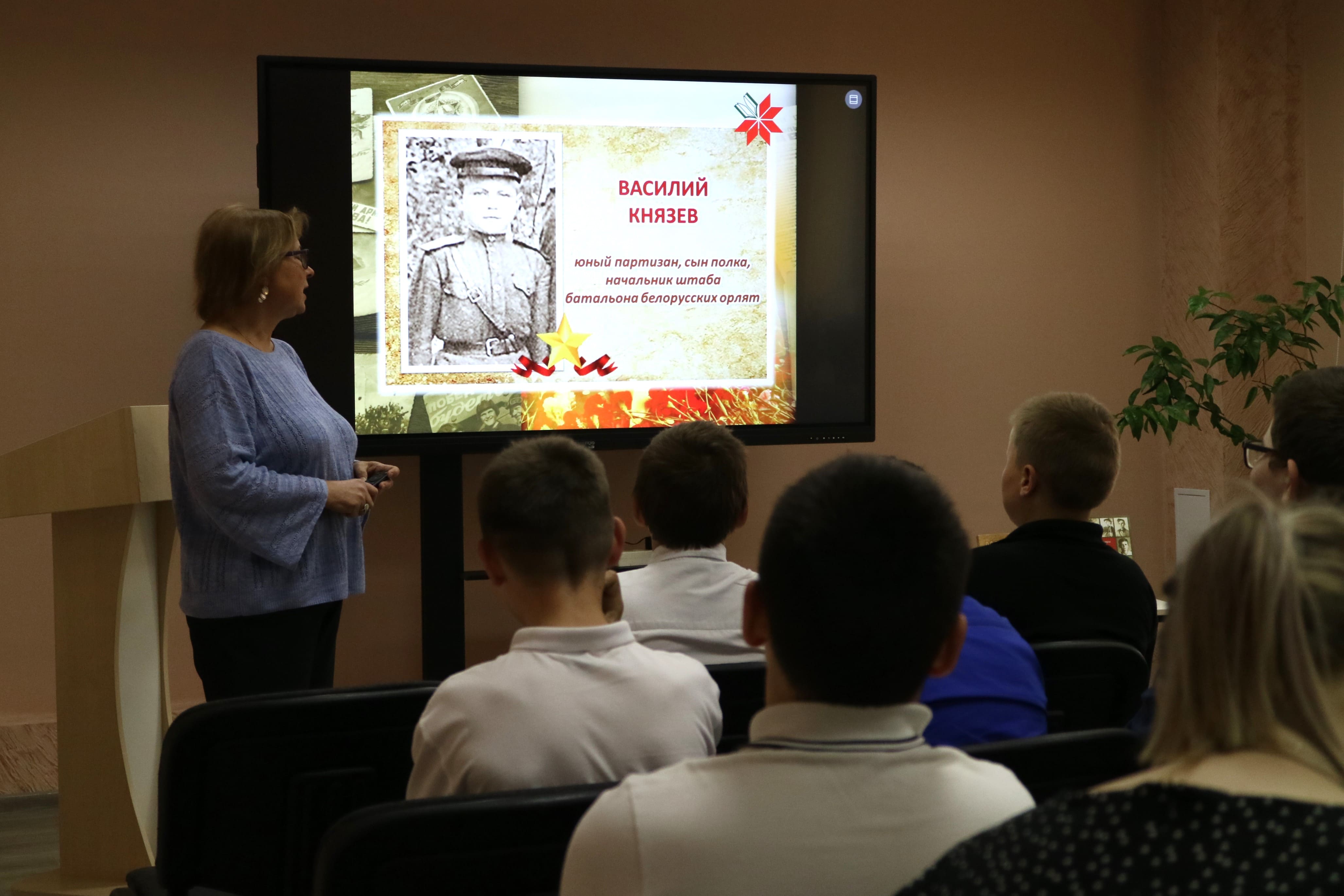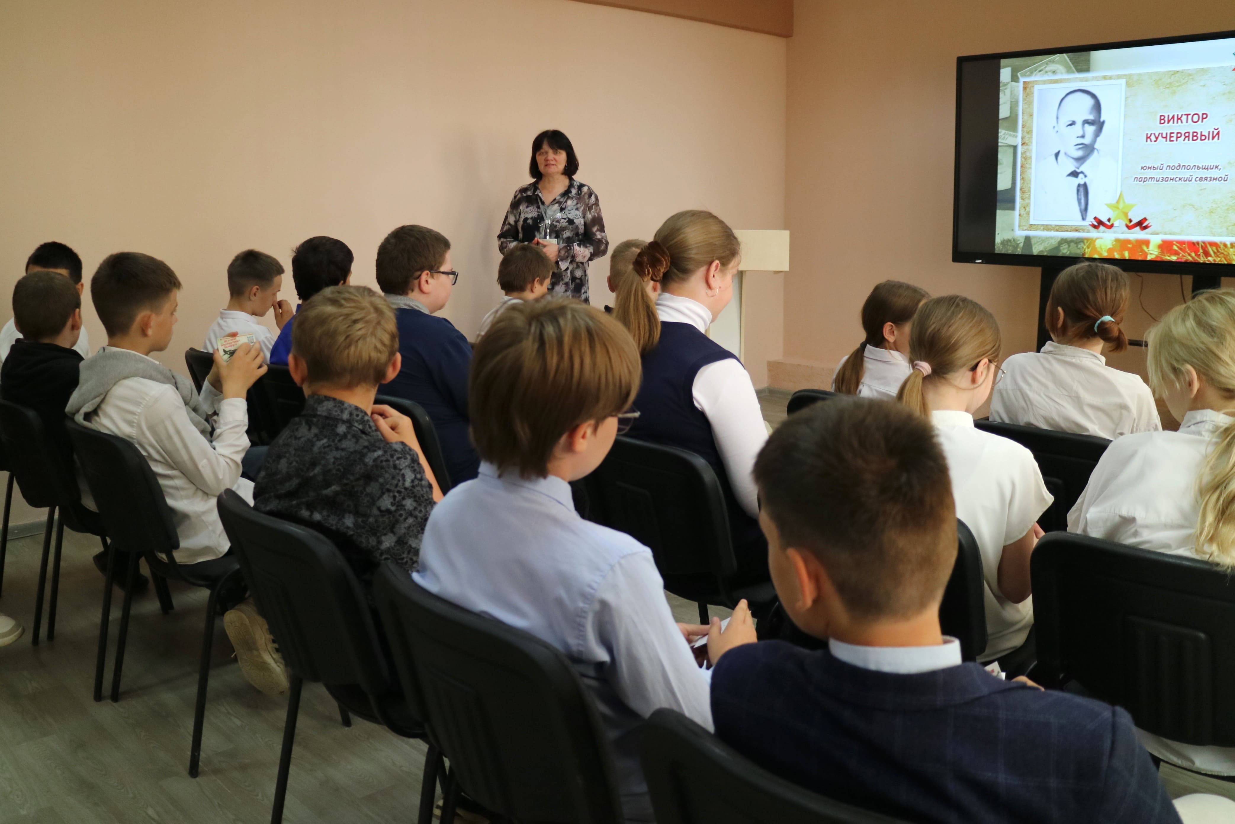 Разговор с шестиклассниками шел о том, как безжалостно Великая Отечественная война ворвалась в детство целого поколения, как в суровый час, желая отомстить фашистским захватчикам за гибель родителей, за сожженные деревни, за разрушенные города, плечом к плечу со взрослыми вставали мальчишки и девчонки. Имена не всех юных героев известны. Но память о них должна остаться в наших сердцах.
