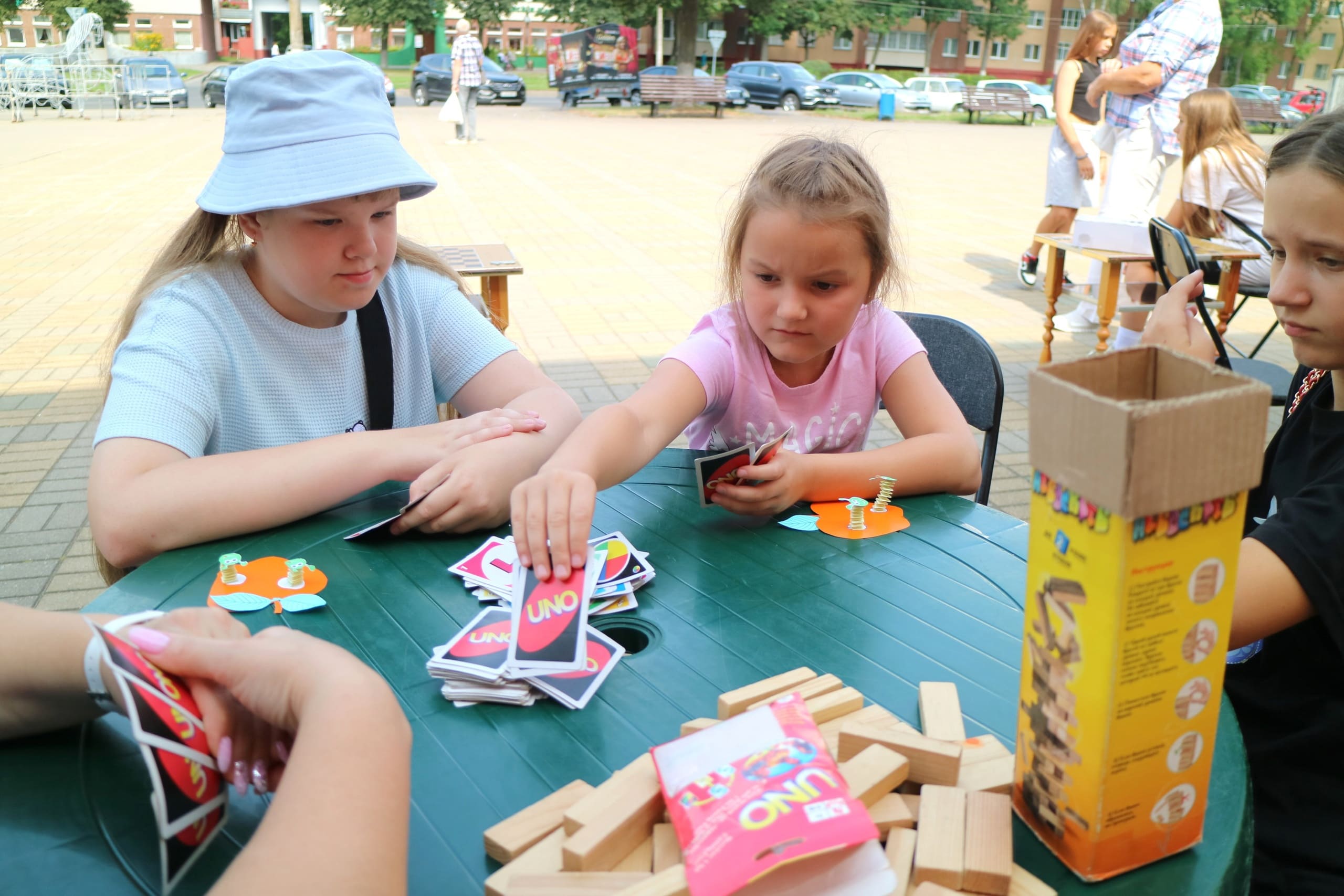 Но не только творчество привлекало ребят на площадке. В перерывах между занятиями они с удовольствием играли в настольные игры. «Уно», «Дженга», «Мемо» — каждая игра приносила массу положительных эмоций.