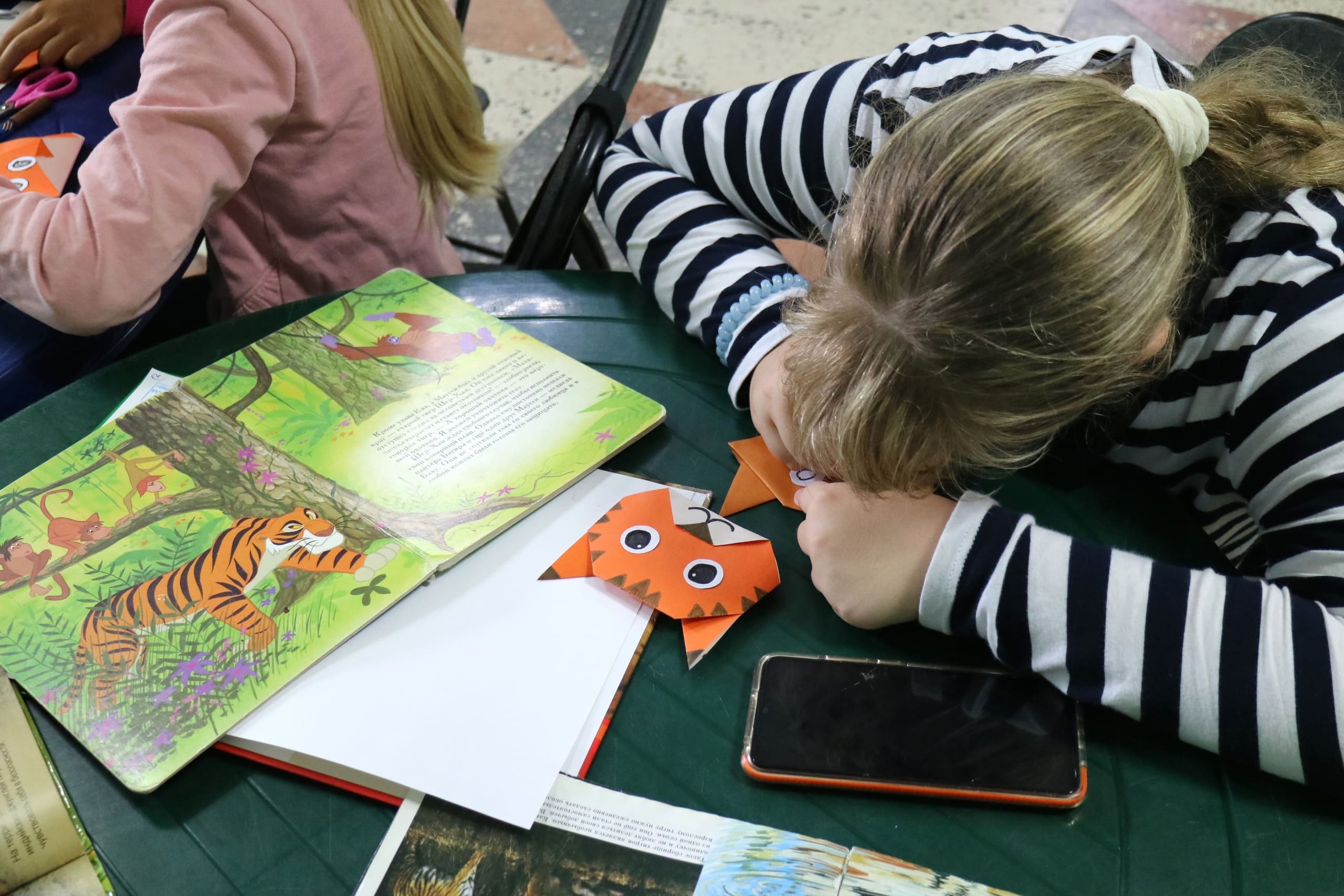После теоретической части девчонки и мальчишки с энтузиазмом приступили к практической деятельности. Каждый из них смог создать своего бумажного тигра. Яркая бумага, ножницы, клей, творческое воображение — и поделка готова!