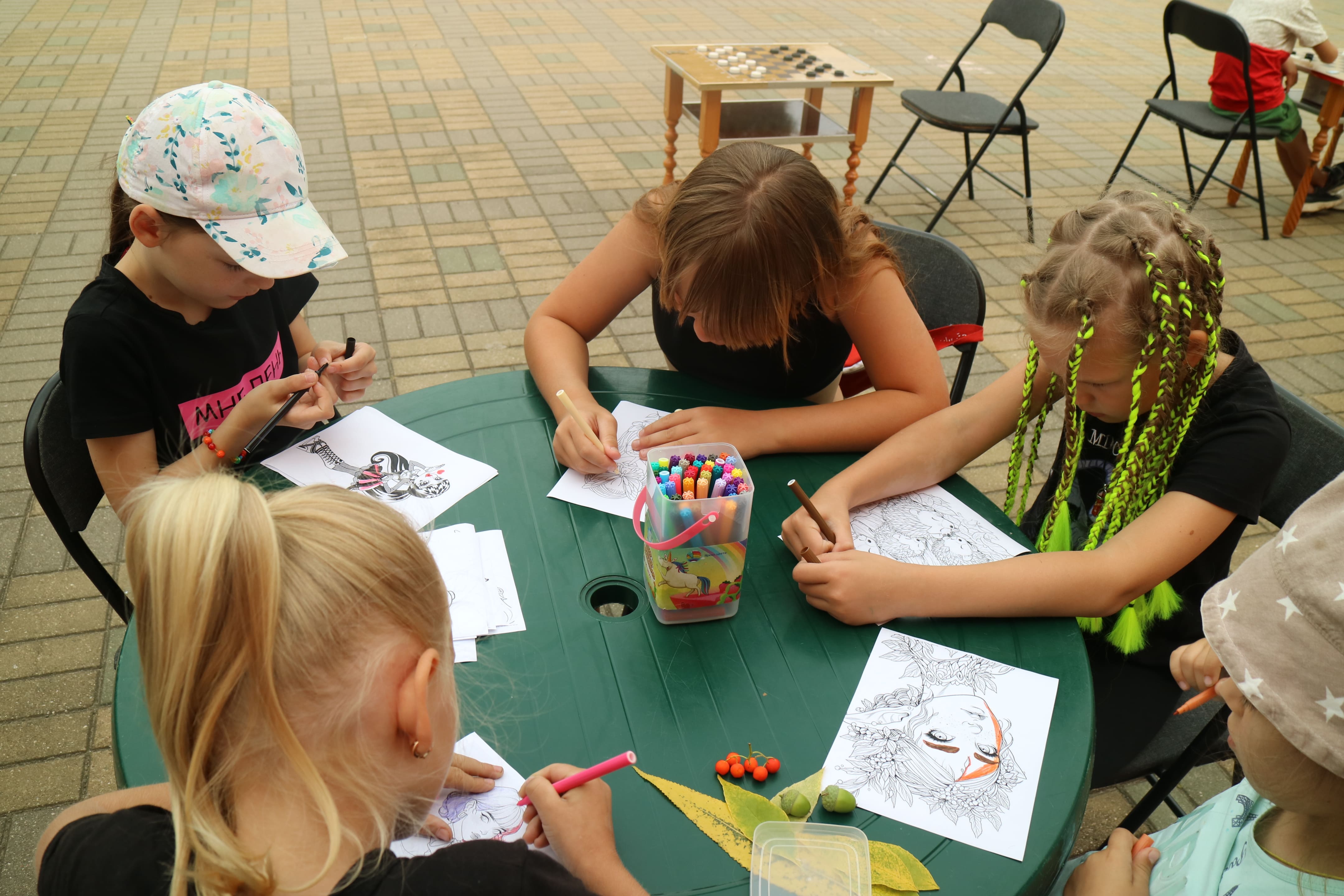 Интерактивная площадка «Библиотека без стен» продолжает свою работу. С азартом и увлечением ребята играют в настольные игры, мастерят поделки своими руками. Не обходятся мероприятия и без подвижных игр. Лабиринты, скакалки и дартс – отличные способы провести время активно и с удовольствием.