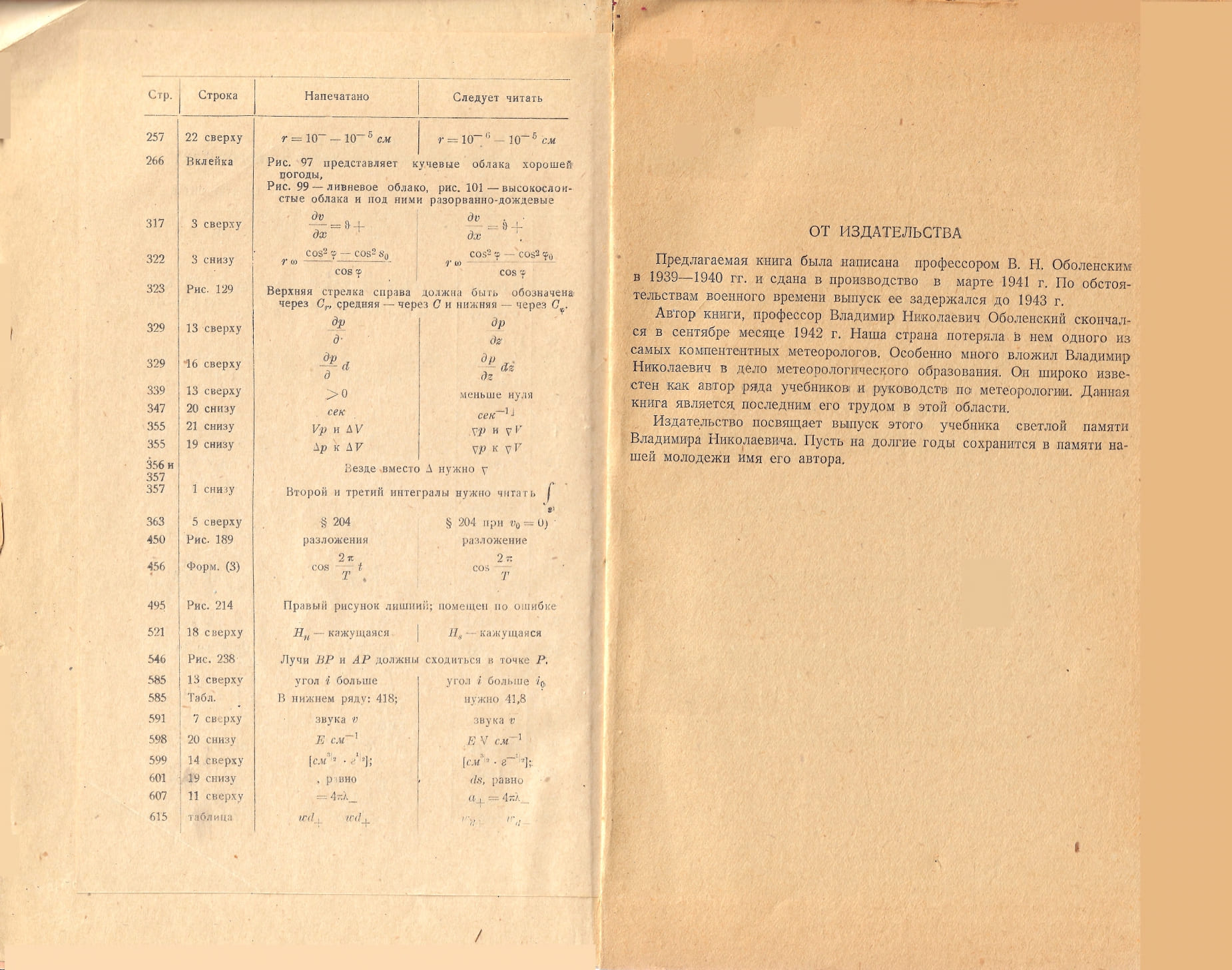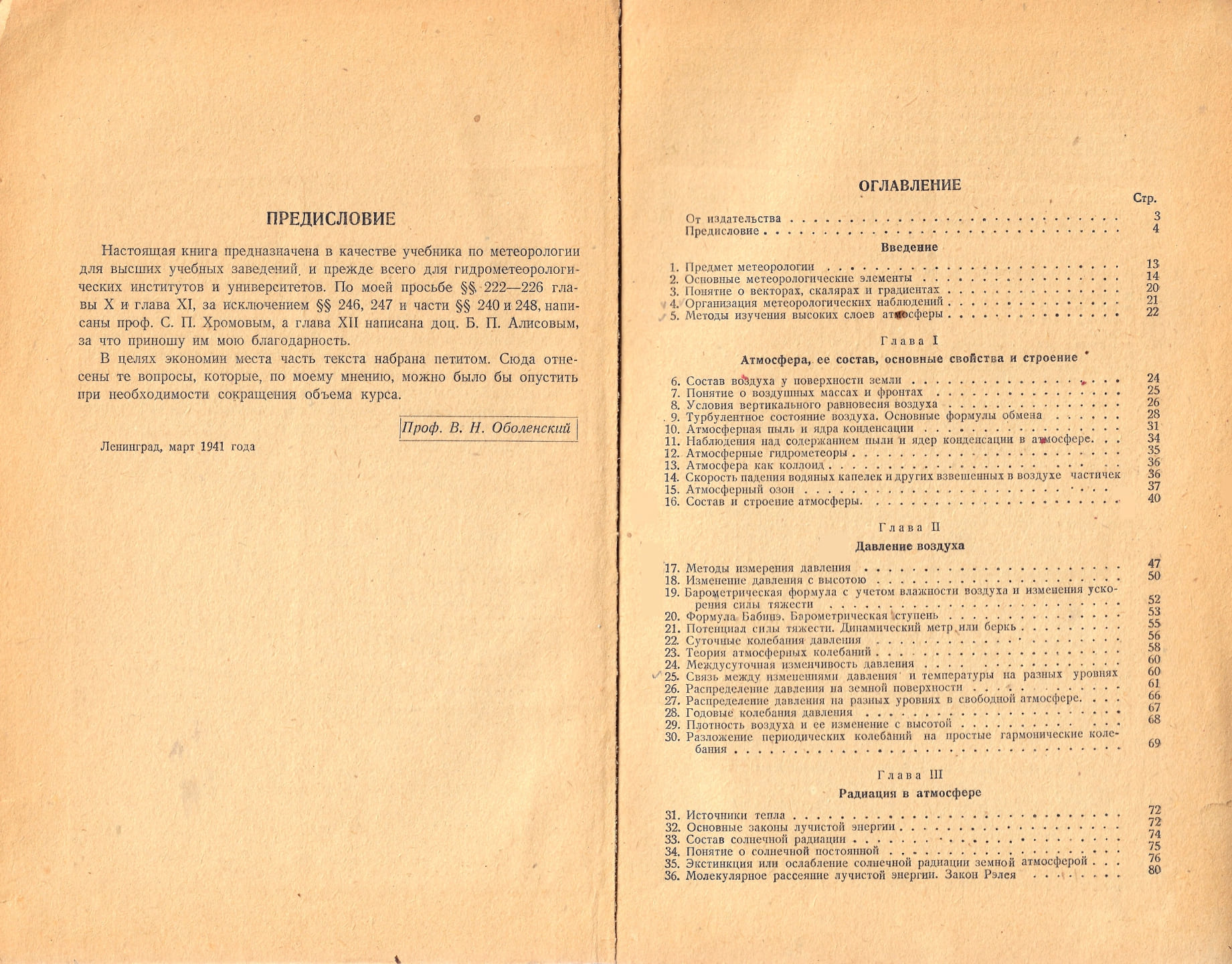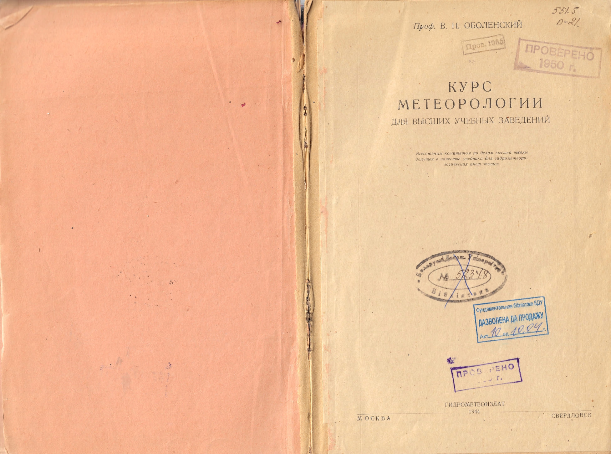 «Курс метеорологии» В. Н. Оболенского, изданный в 1944 году, представляет собой краткий курс метеорологии, состоящий из трёх отделов: «Атмосфера. Круговорот тепла в атмосфере», «Круговорот влаги в атмосфере» и «Динамика атмосферы». Книга была издана для практикующих специалистов и студентов.