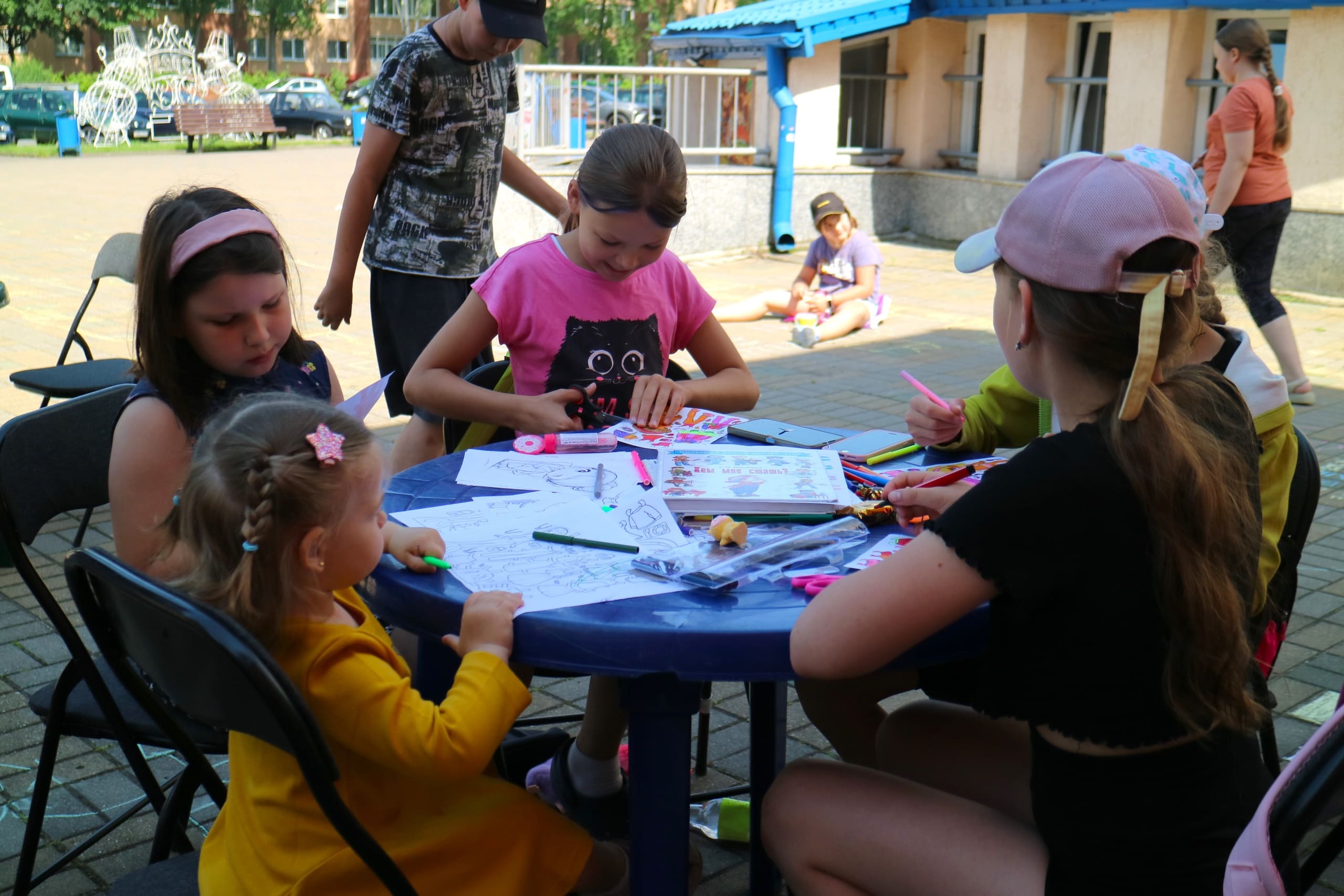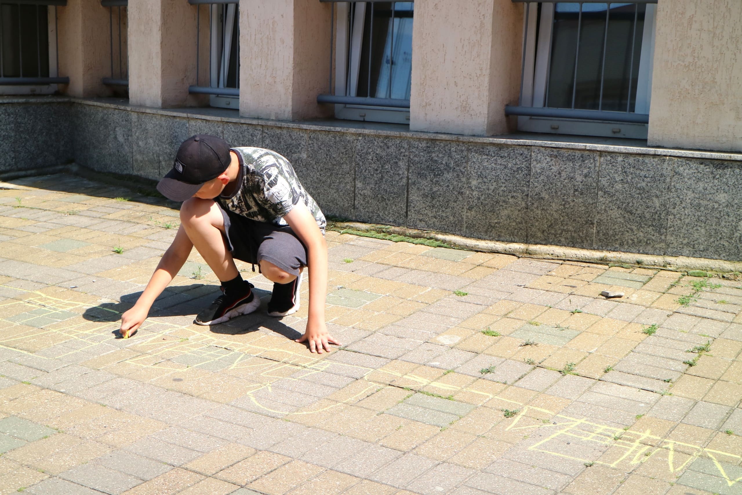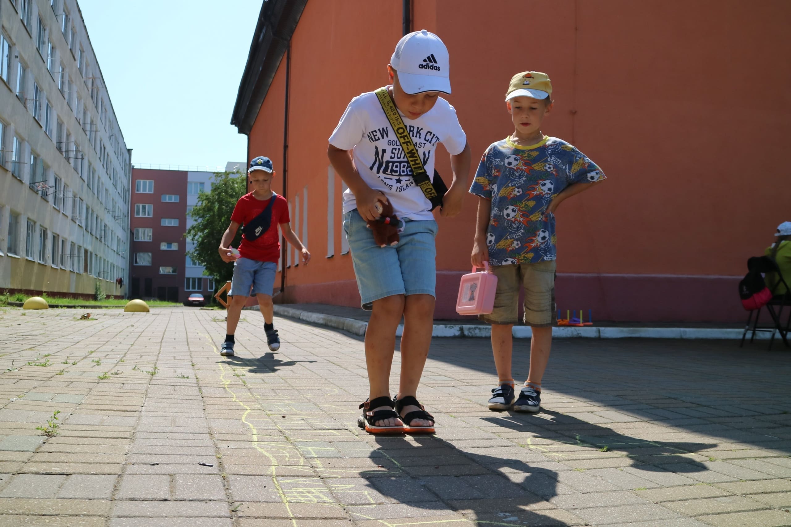 Помимо художественных активностей, мальчишки и девчонки нашли время для игры на свежем воздухе. Мелками они рисовали уровни на асфальте, создавая настоящий лабиринт для прохождения. Каждый мог попробовать свои силы в преодолении препятствий.