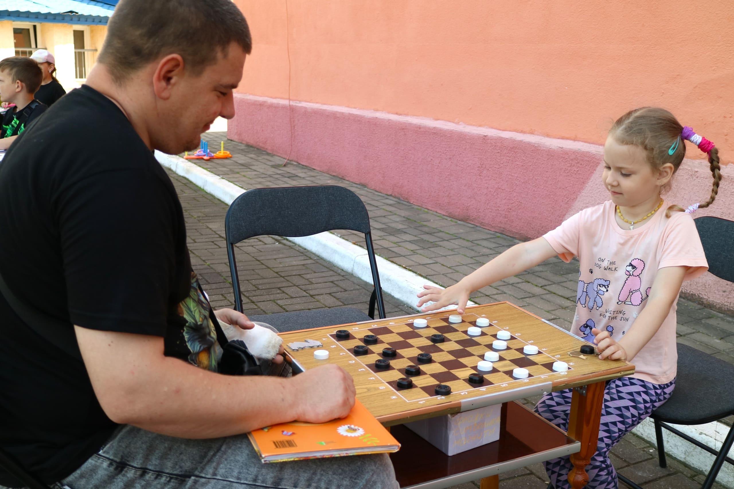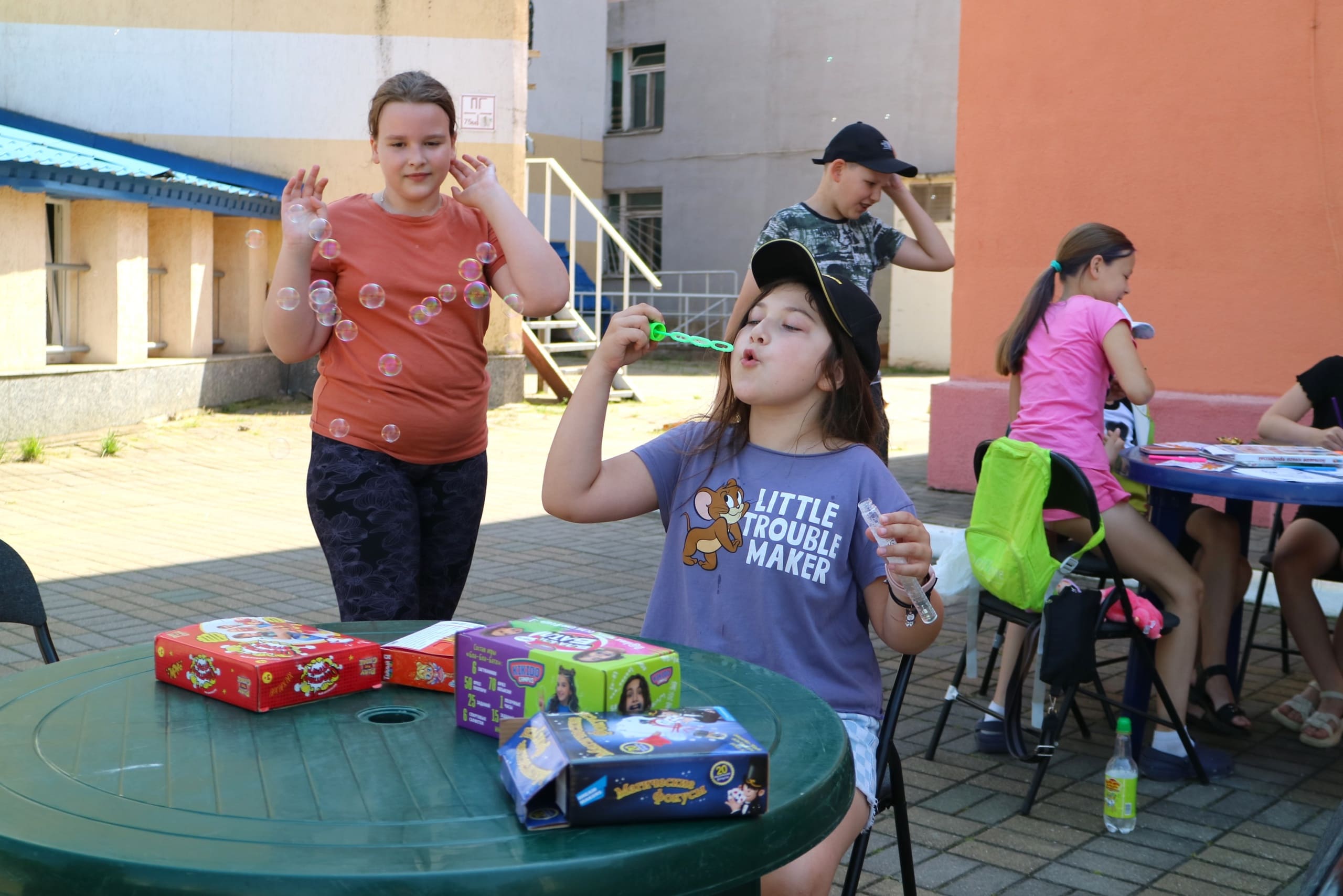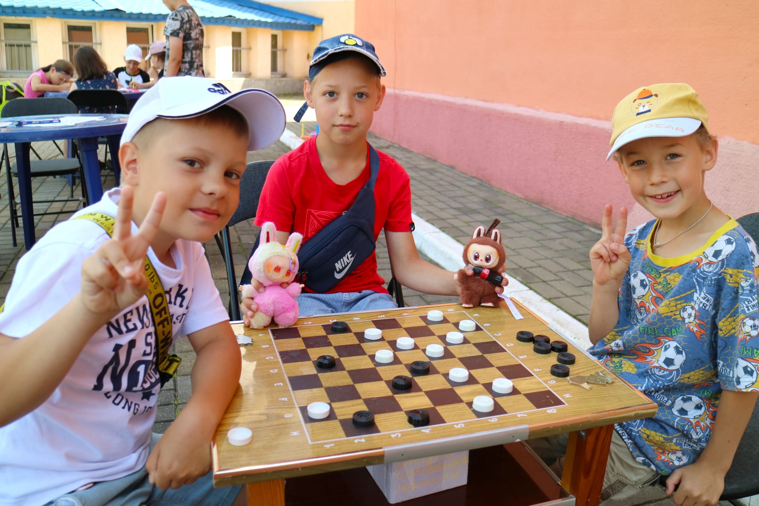 Помимо художественных активностей, мальчишки и девчонки нашли время для игры на свежем воздухе. Мелками они рисовали уровни на асфальте, создавая настоящий лабиринт для прохождения. Каждый мог попробовать свои силы в преодолении препятствий.