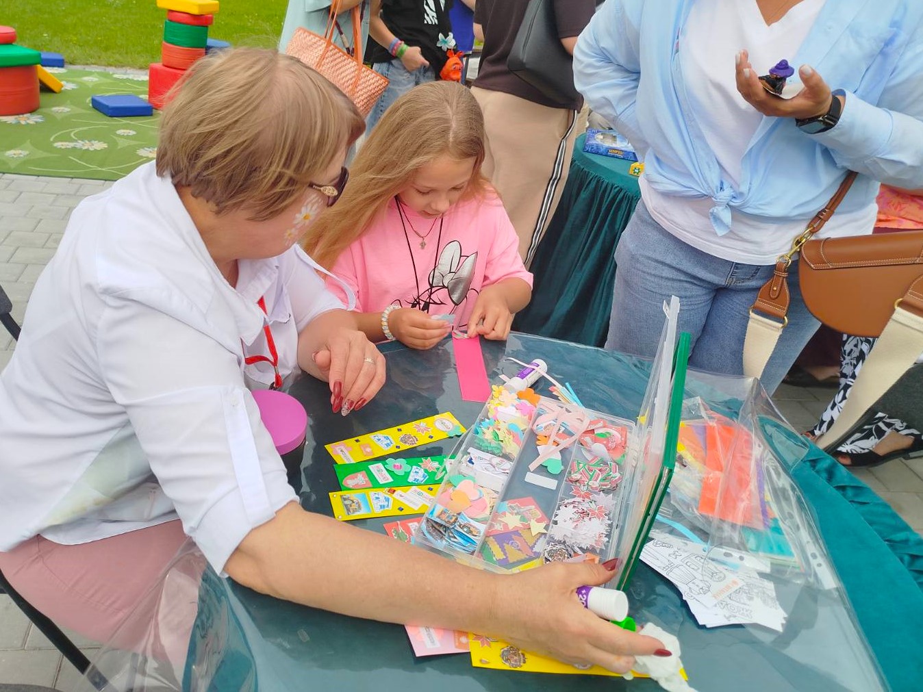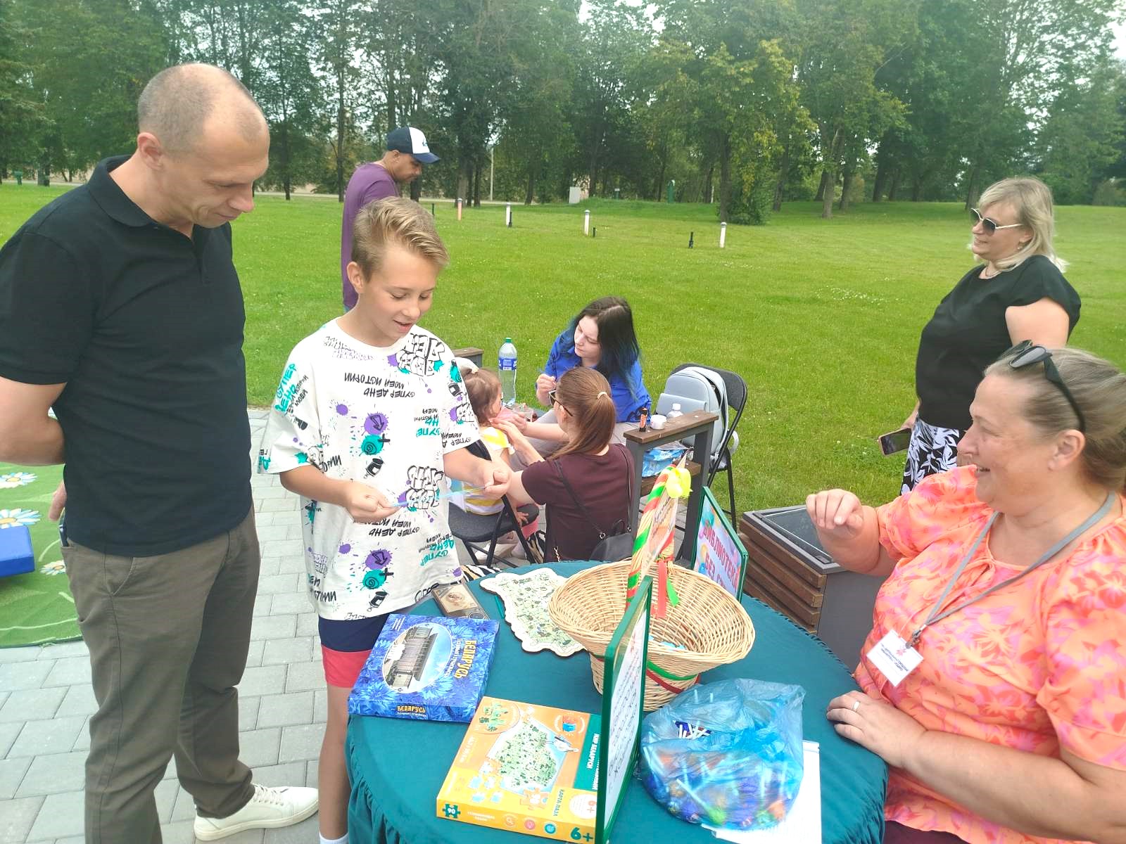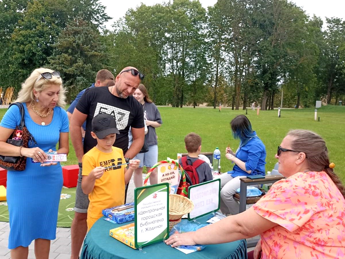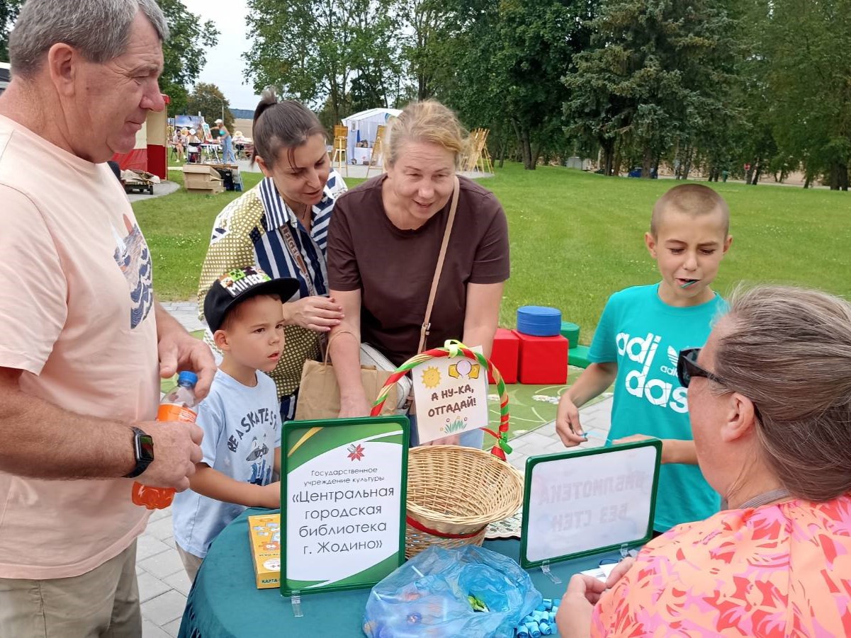 Центральная городская библиотека представила информационно-познавательную и развлекательную площадку «Библиотека без стен». Под отрытым небом разместились летний читальный зал с подборкой журналов и игровая зона, где гости могли провести время с пользой и интересом. Для желающих попробовать себя в творчестве был проведен мастер-класс «Жодино в моей книге», где участники своими руками создавали оригинальные закладки. Кроме того, сотрудники библиотеки подготовили интеллектуальные загадки, которые вызвали интерес у разных возрастных групп. Не остались без внимания аквагрим, пазлы и другие развлечения — эти активности привлекли немало ребят.