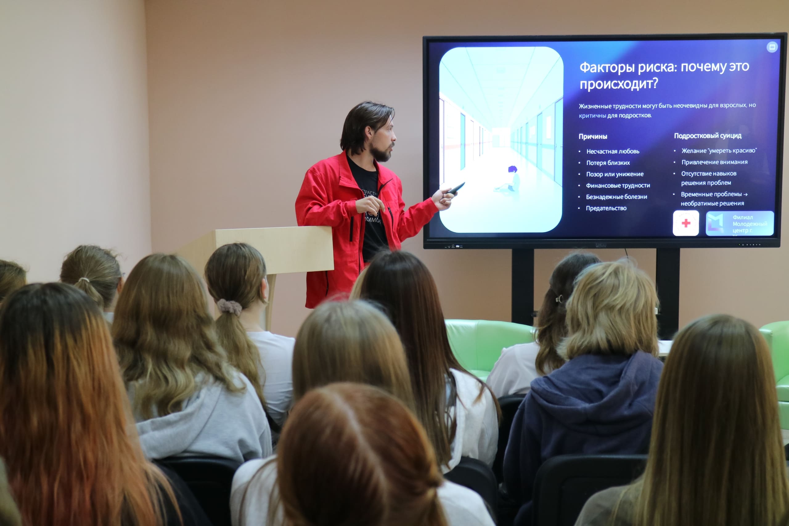 В разговоре с учащимися города принял участие председатель волонтерского совета Минской областной организации Белорусского Общества Красного Креста Всеволод Некрасов.