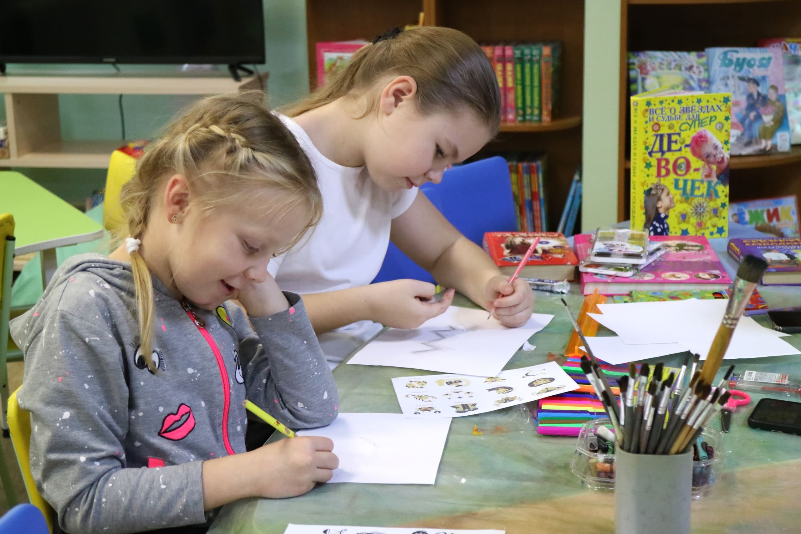 Сегодня занятие библиоАРТа «Букварельки» прошло под названием «Мой знак зодиака». Ребята оживленно делились, кто они по гороскопу, обсуждали свои черты характера, которые, как им казалось, совпадают с описаниями в звездных книгах. За кистями и карандашами развернулись настоящие звездные баталии: дети старались изобразить свой знак так, чтобы он отражал не только символ, но и характер. Участники делились теориями, смешивали цвета и придумывали необычные детали. Получился не просто урок рисования, а маленькое путешествие в мир астрологии и самопознания через творчество и призму детского воображения.
