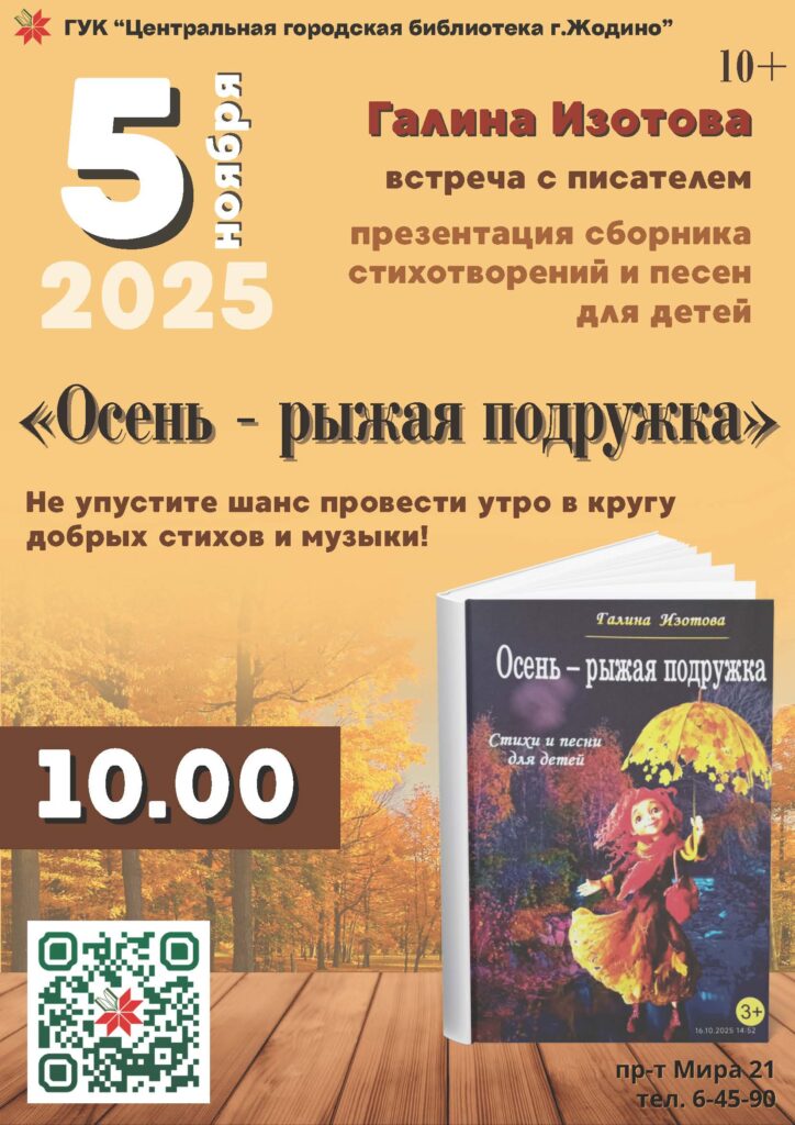 Приглашаем на встречу с писателем Галиной Изотовой, которая состоится 5 ноября в 10:00.