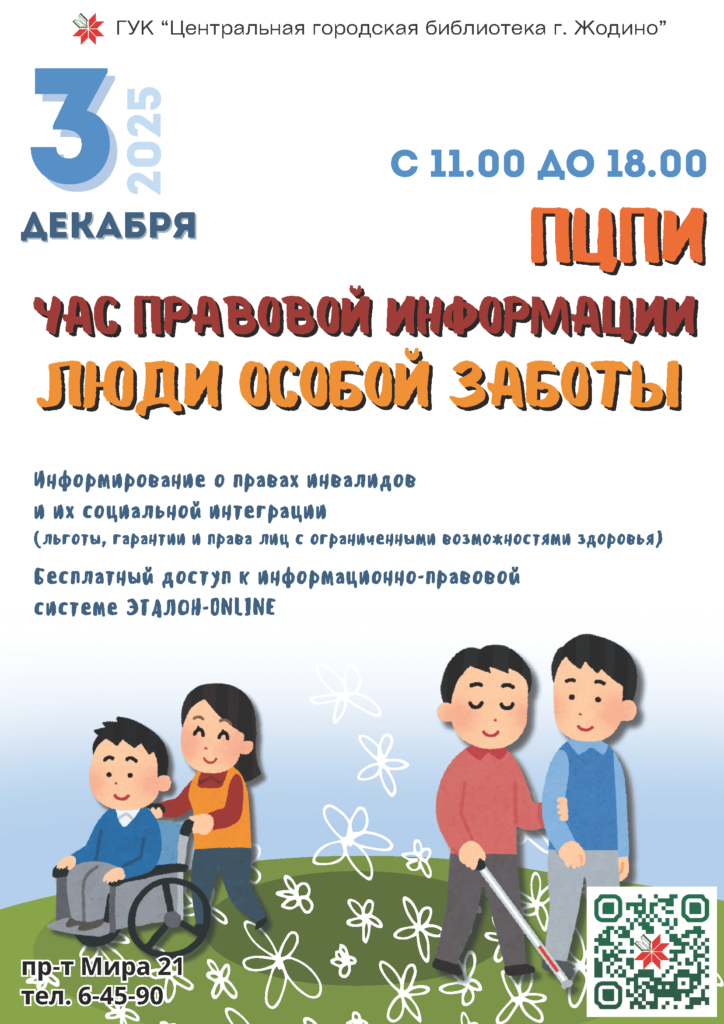 Публичный центр правовой информации (ПЦПИ) ГУК «Центральная городская библиотека г. Жодино» проведёт час правовой информации «Люди особой заботы», где проинформирует население данной категории и предоставит следующую информацию: