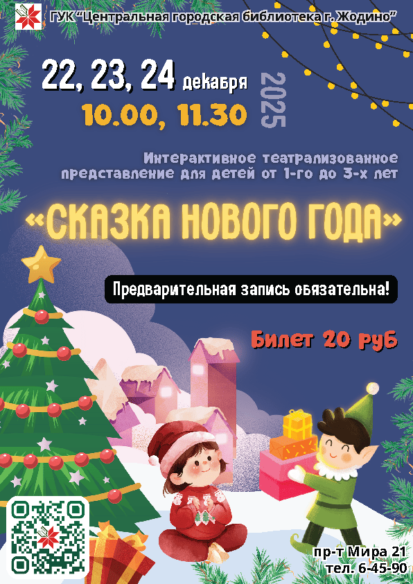 Увлекательные интерактивные театрализованные представления «Сказка Нового года» для малышей от одного года до трех лет пройдут в Центральной городской библиотеке 22, 23 и 24 декабря.