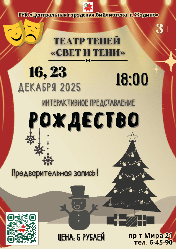Дорогие друзья! Приглашаем вас на интерактивное представление «Рождество», где вы сможете окунуться в таинственный мир волшебства света и теней.