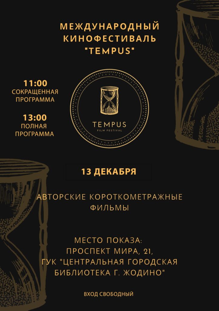 13 декабря в Центральной городской библиотеке г. Жодино пройдут показы работ международного кинофестиваля «Tempus».