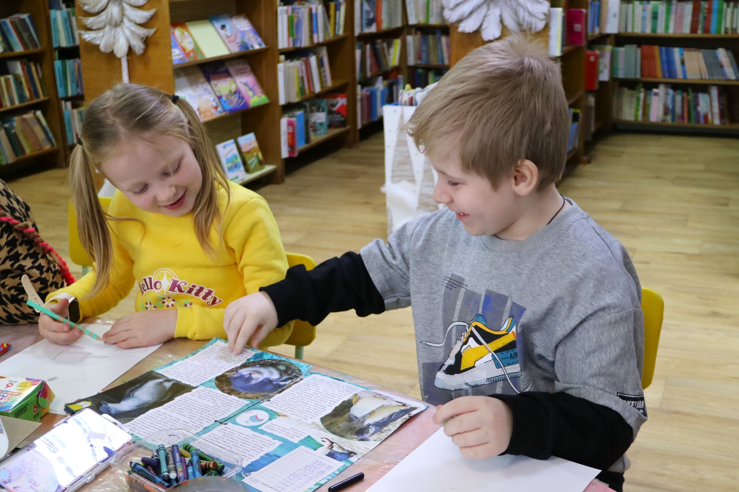 Творческое занятие под названием «Пингвинчики» прошло в библиотеке в рамках библиоАРТа «Букварельки». В этот раз ребята собрались, чтобы поближе познакомиться с удивительными обитателями южных широт – пингвинами. Знаете ли вы, что пингвины – единственные птицы, которые не умеют летать, зато прекрасно плавают? Их перепонки между пальцами помогают им ловко маневрировать под водой, а плотное оперение защищает от холода даже в самых суровых условиях Антарктиды. Интересно и то, что пингвины умеют распознавать друг друга по голосу среди тысяч сородичей.