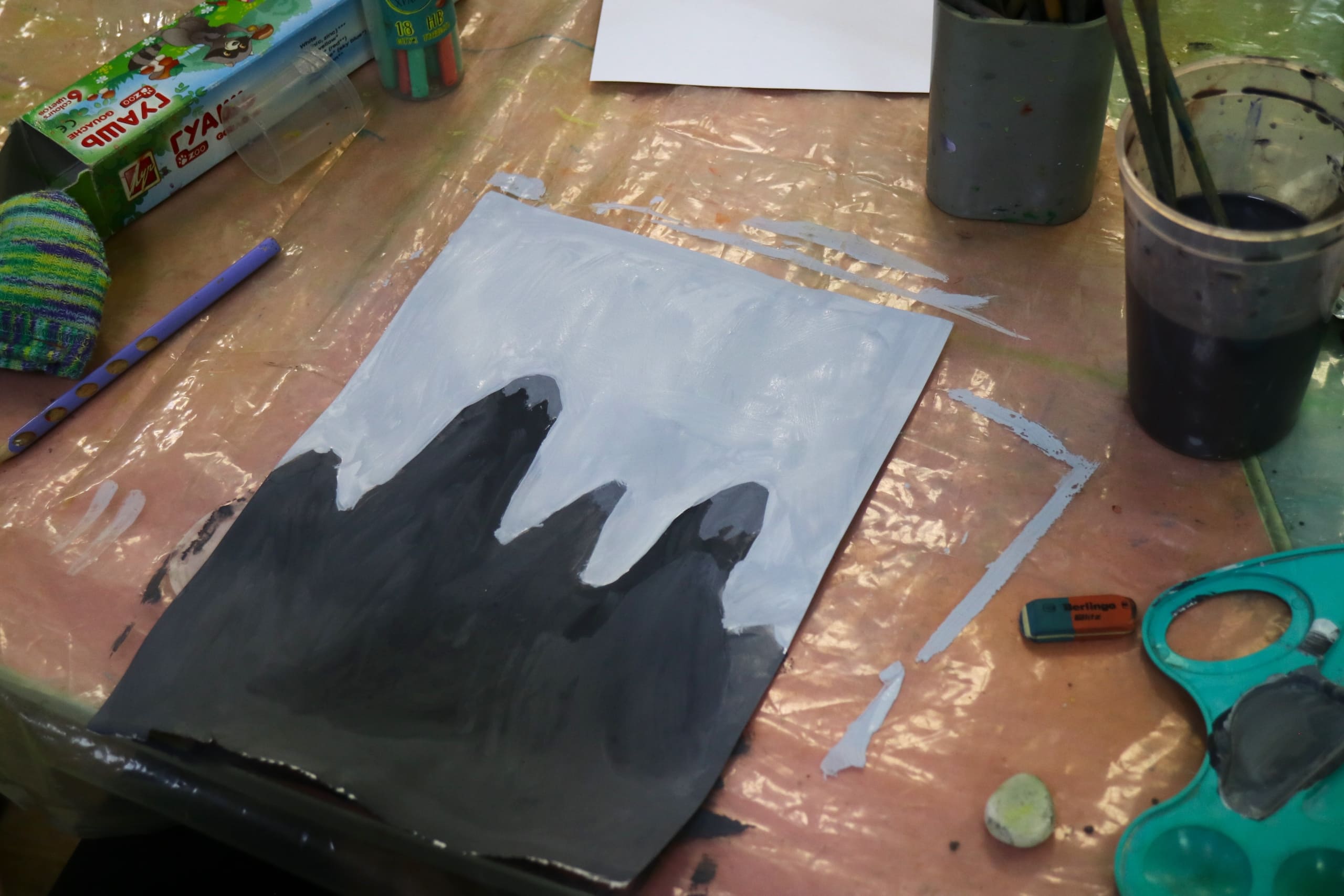 Занятие было построено так, чтобы каждый участник мог выразить собственное восприятие зимы: кто-то сосредоточился на мягких оттенках голубого и белого, другие – на контрасте темных гор и сверкающего снега. В процессе работы дети обсуждали особенности горного ландшафта, делились впечатлениями о зимних прогулках и рассказывали истории, связанные с холодным временем года.